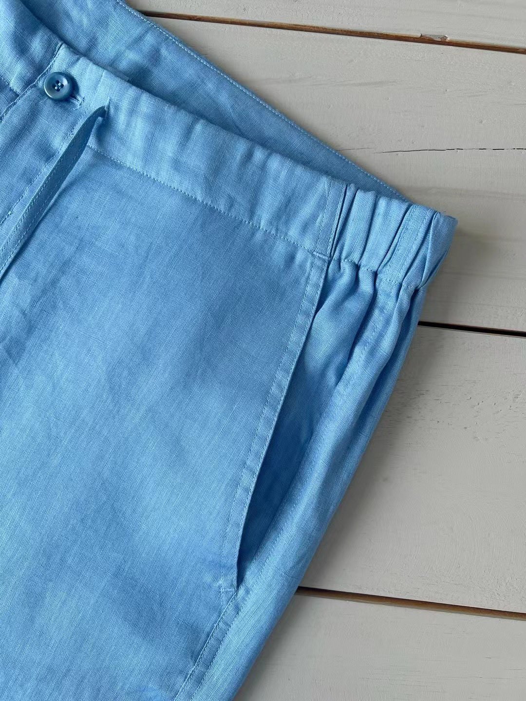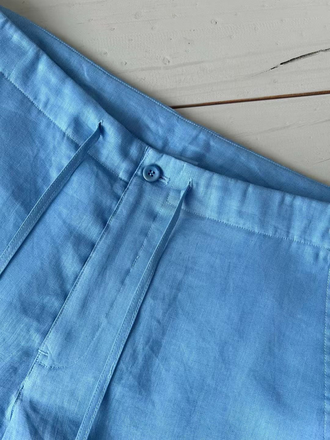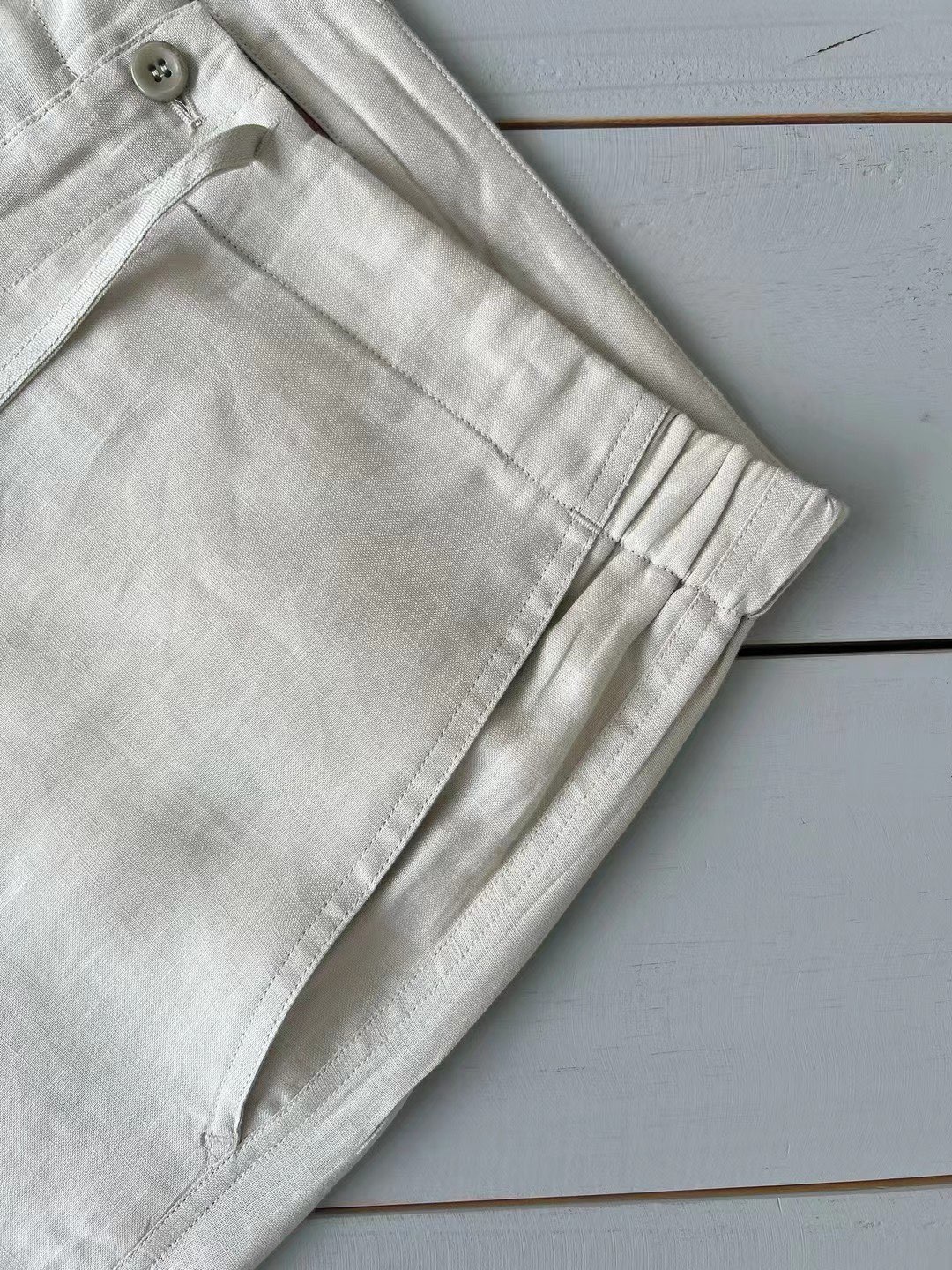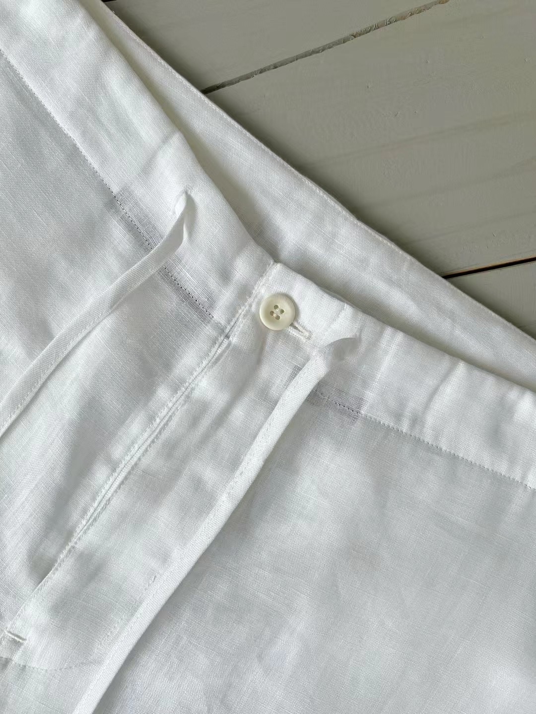 NIGO Loro Piana Men's Spring And Summer Trend Fashion Mid-waist Tie Shorts Linen Solid Color Casual Pants Ngvp #nigo8163