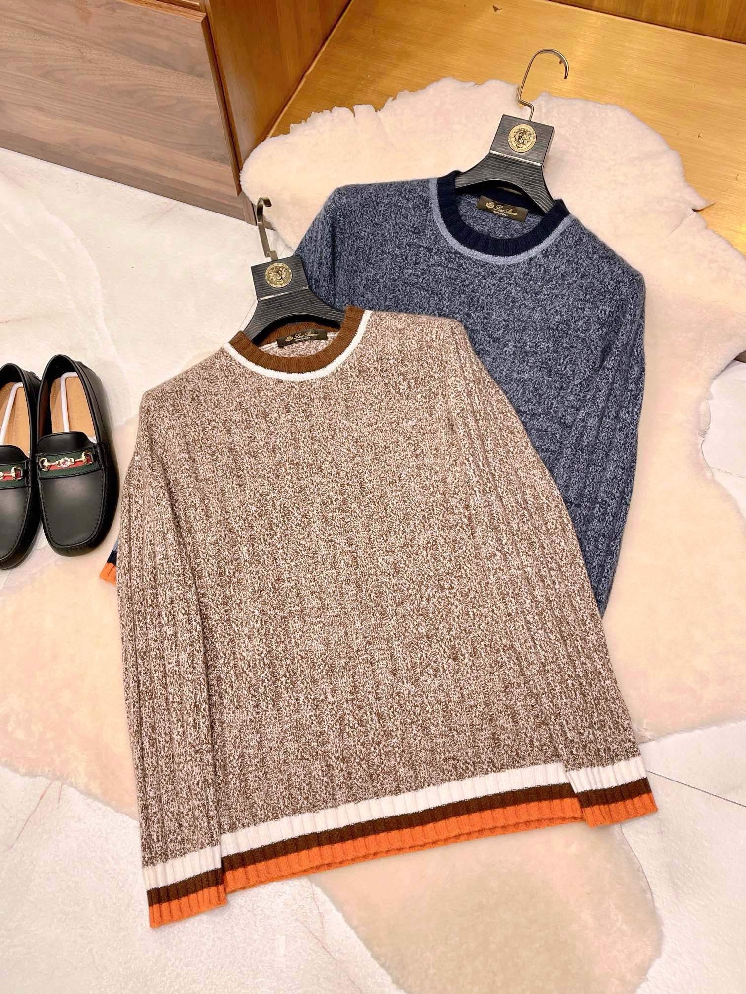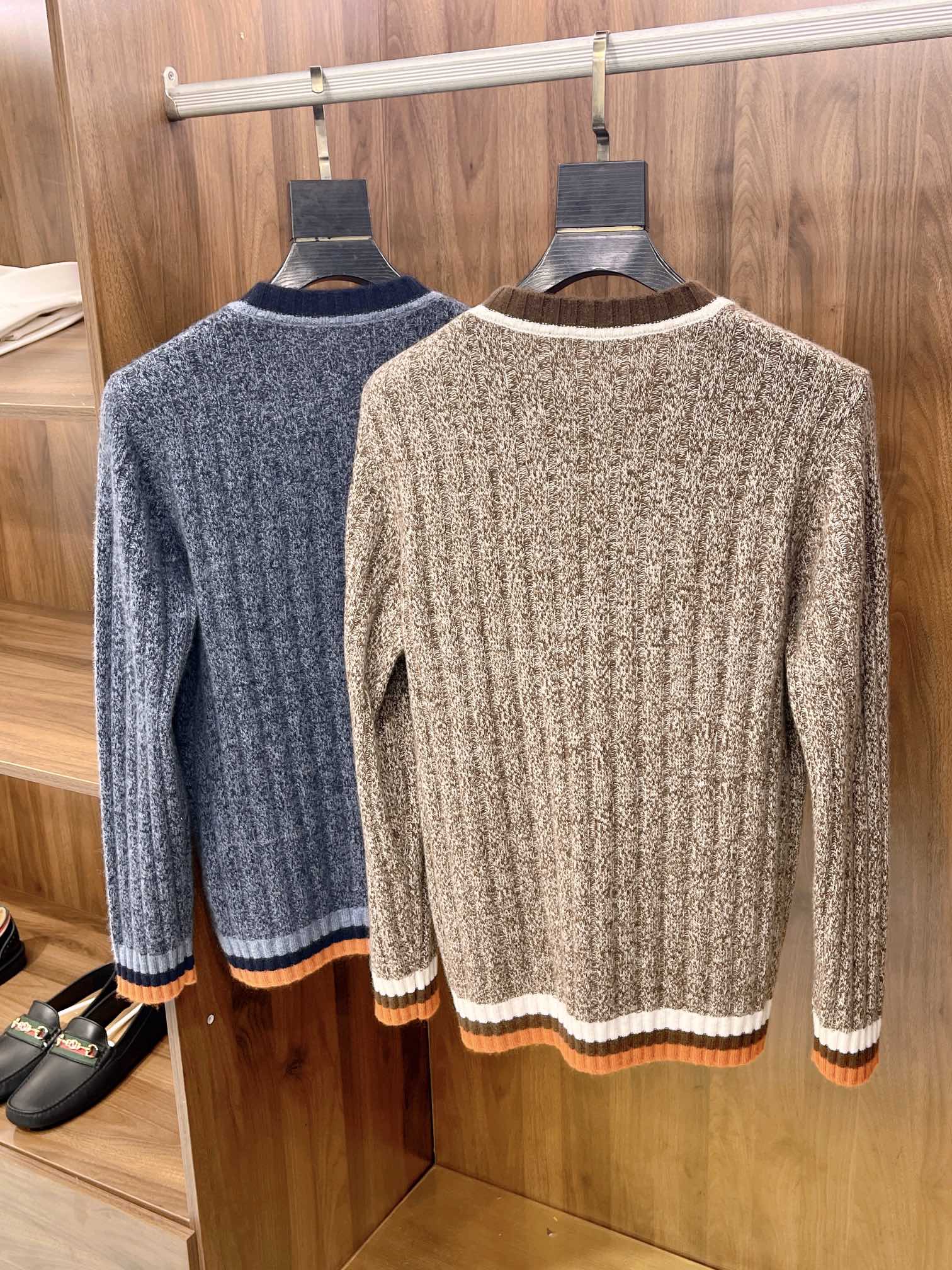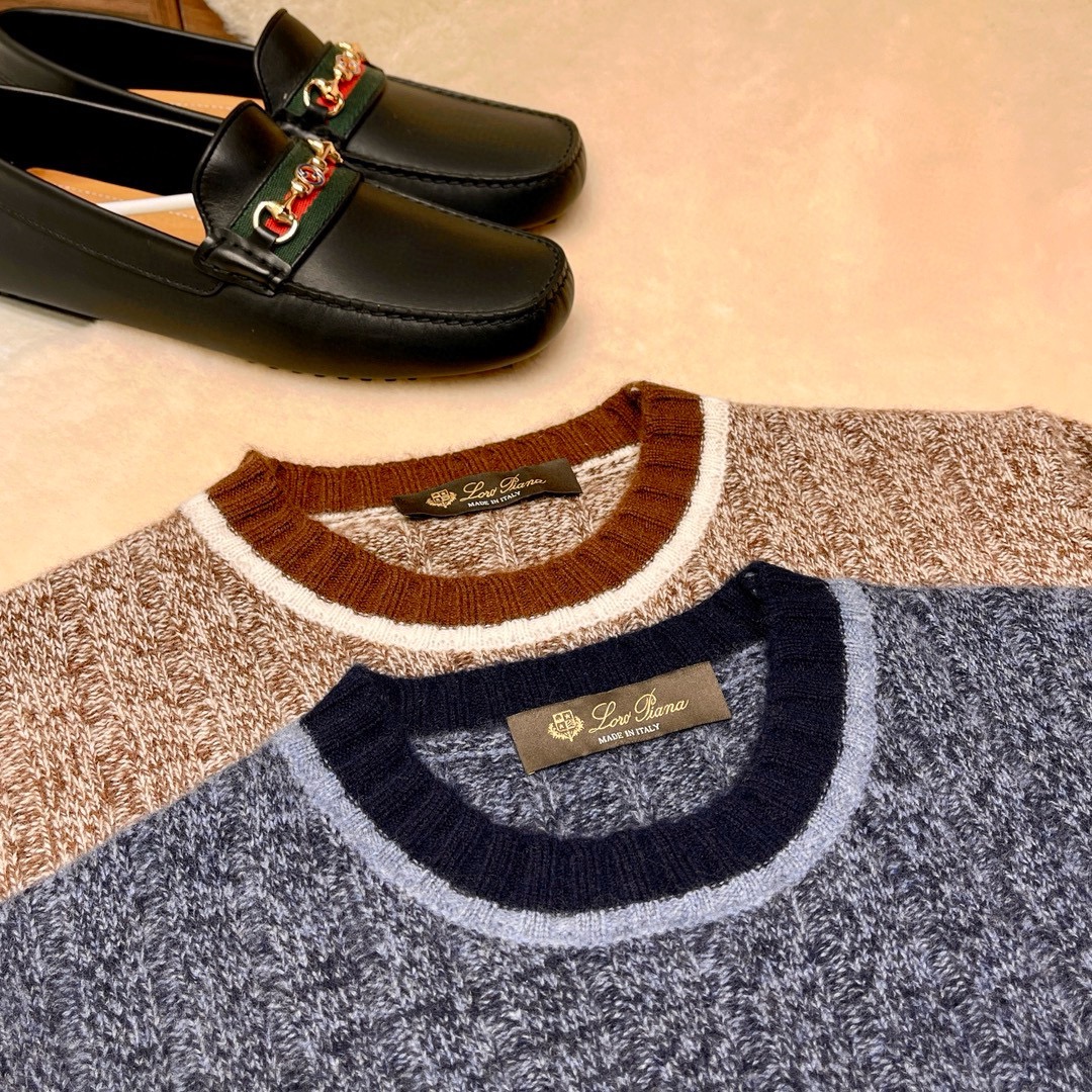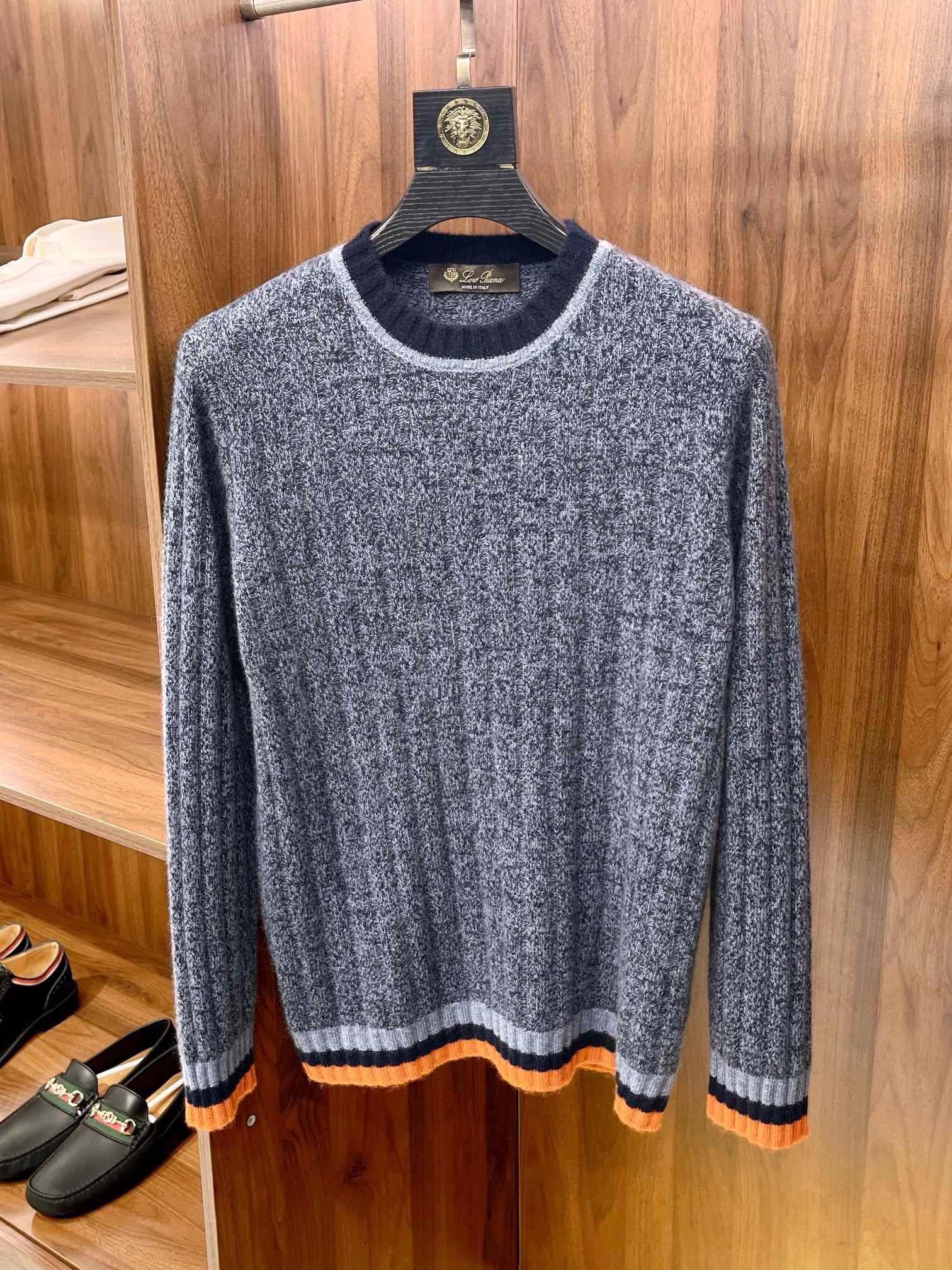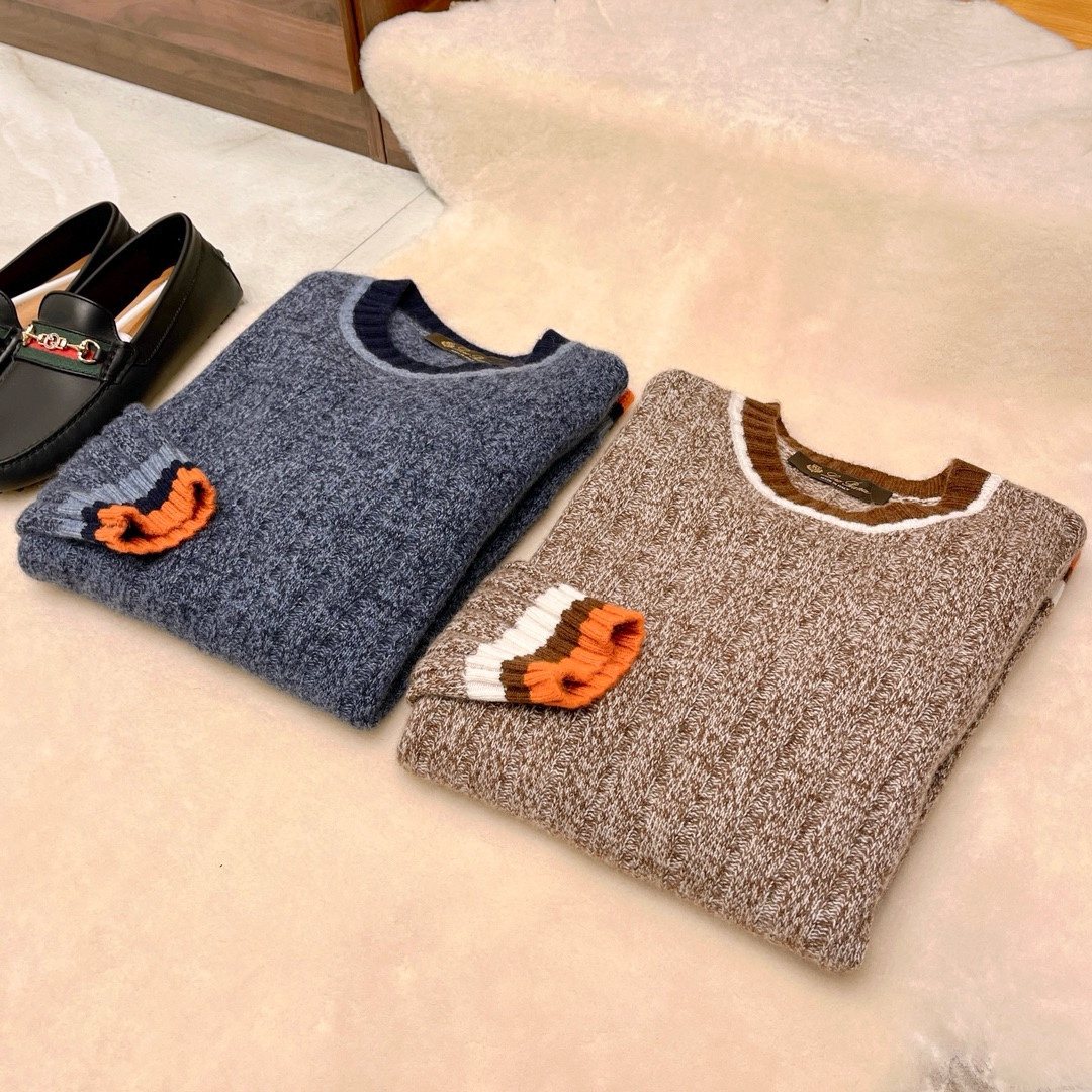 NIGO Loro Piana Men's Spring & Autumn Fashion Stripe Color Blocking Long Sleeve Knit Sweater Fit Cashmere Crew Neck Sweater Ngvp #nigo9475