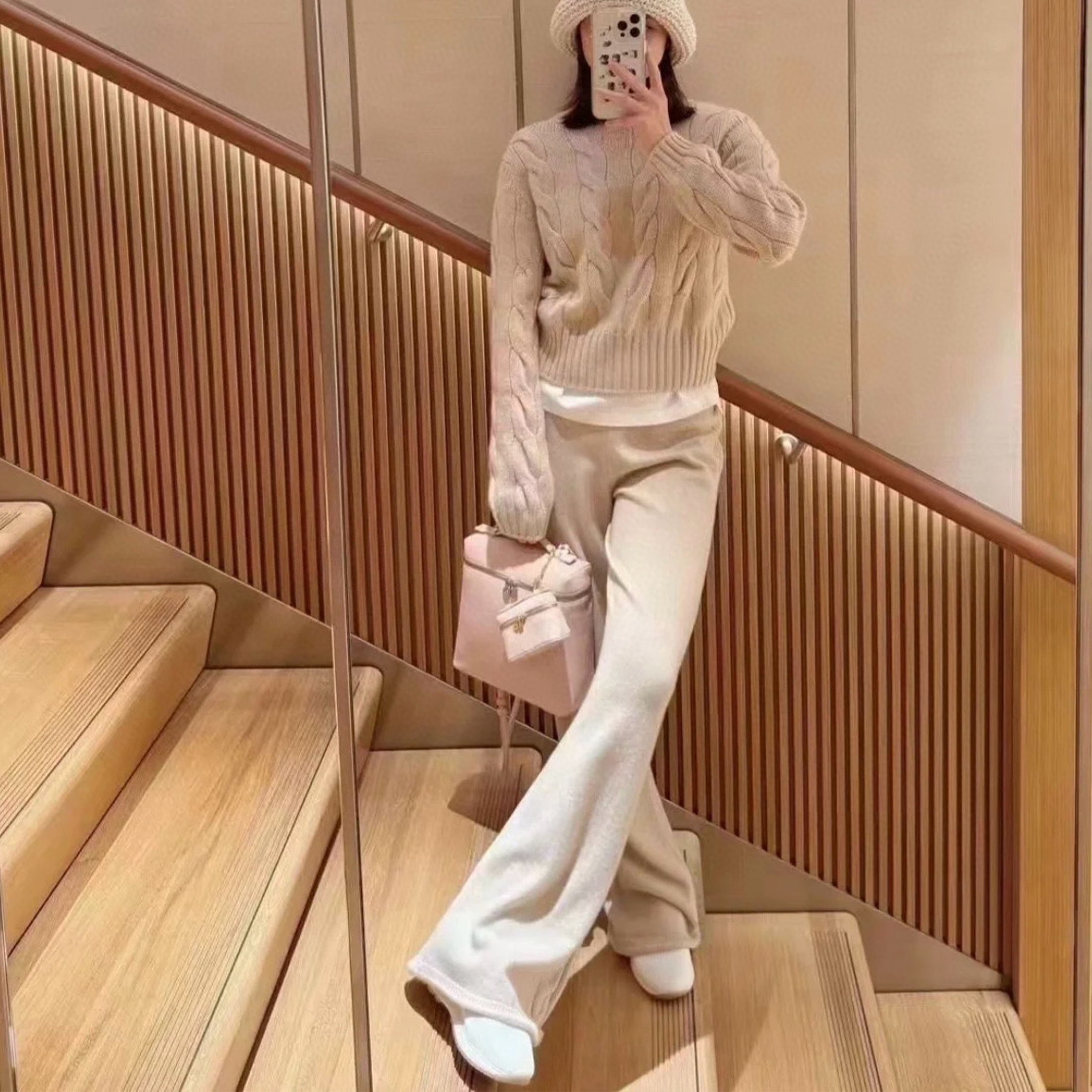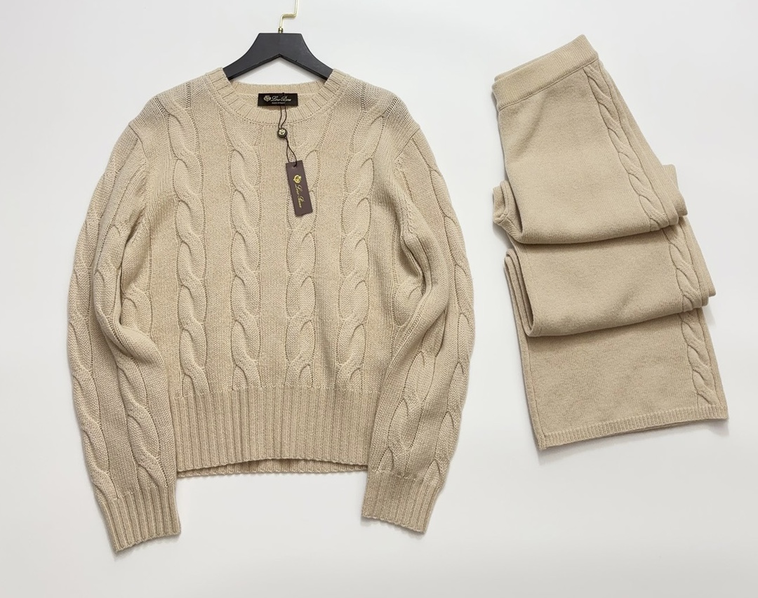 NIGO Loro Piana Napier Women's Spring And Autumn Chunky Knit Set High Elastic Solid Color Round Neck Long Sleeve Pullover Straight Leg Knit Casual Pants Suit Set Ngvp #nigo2164
