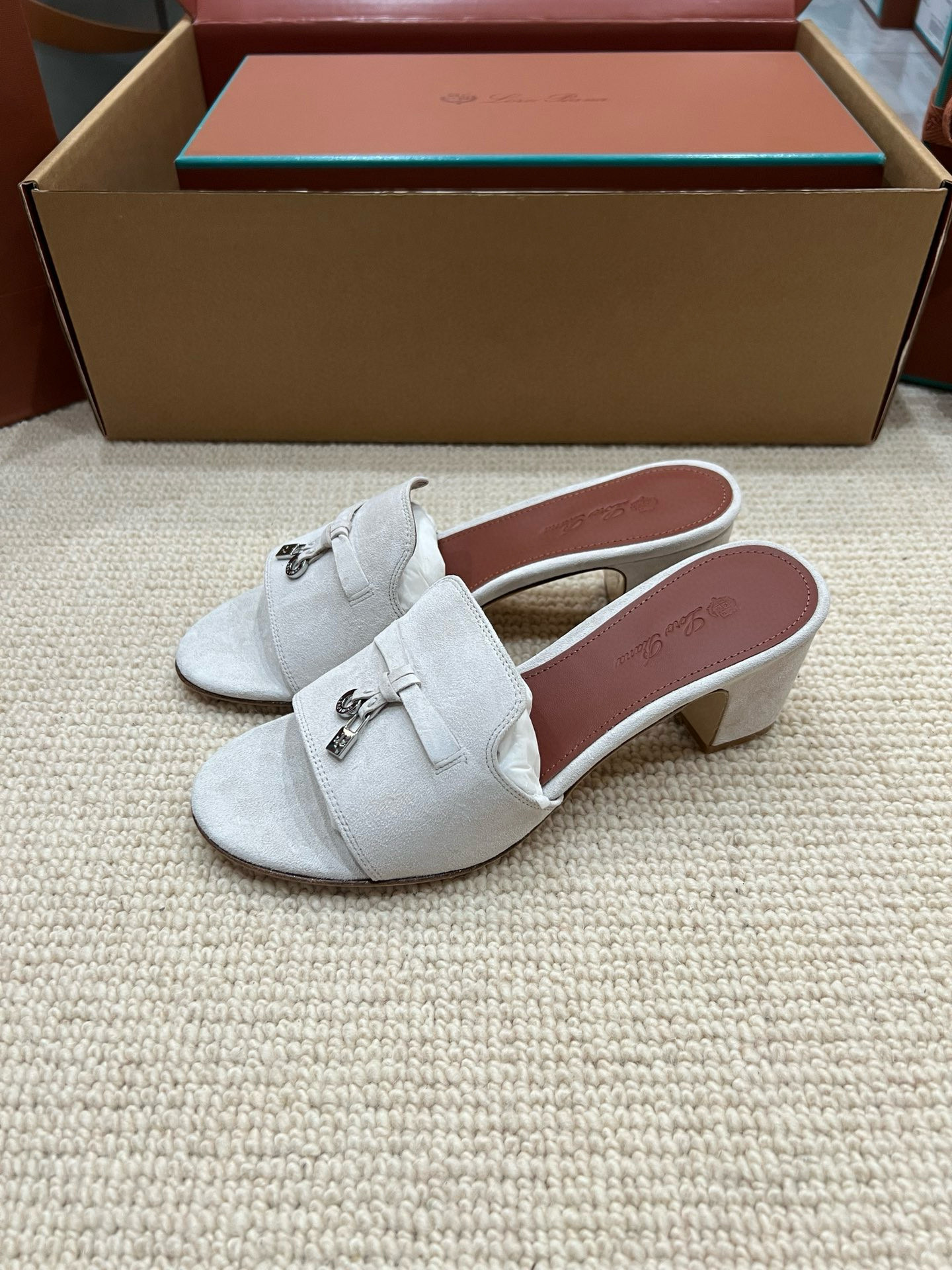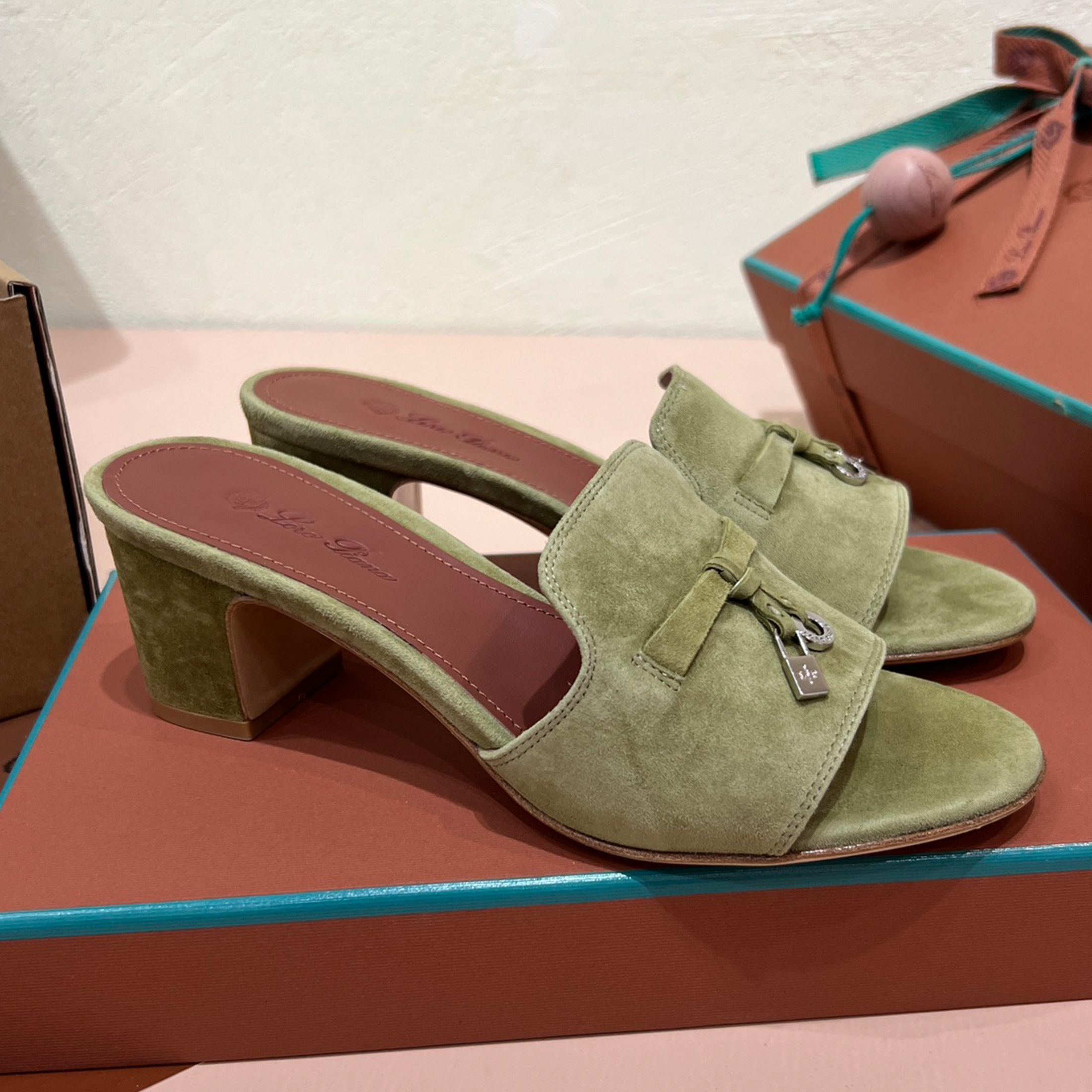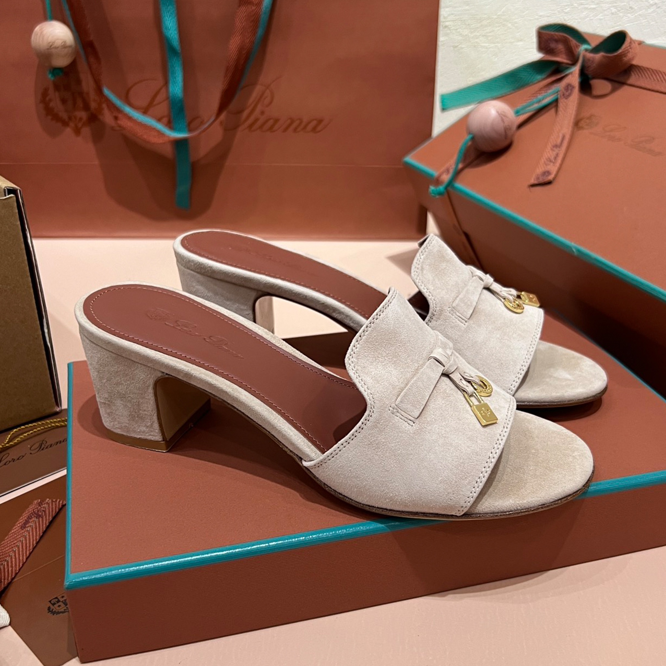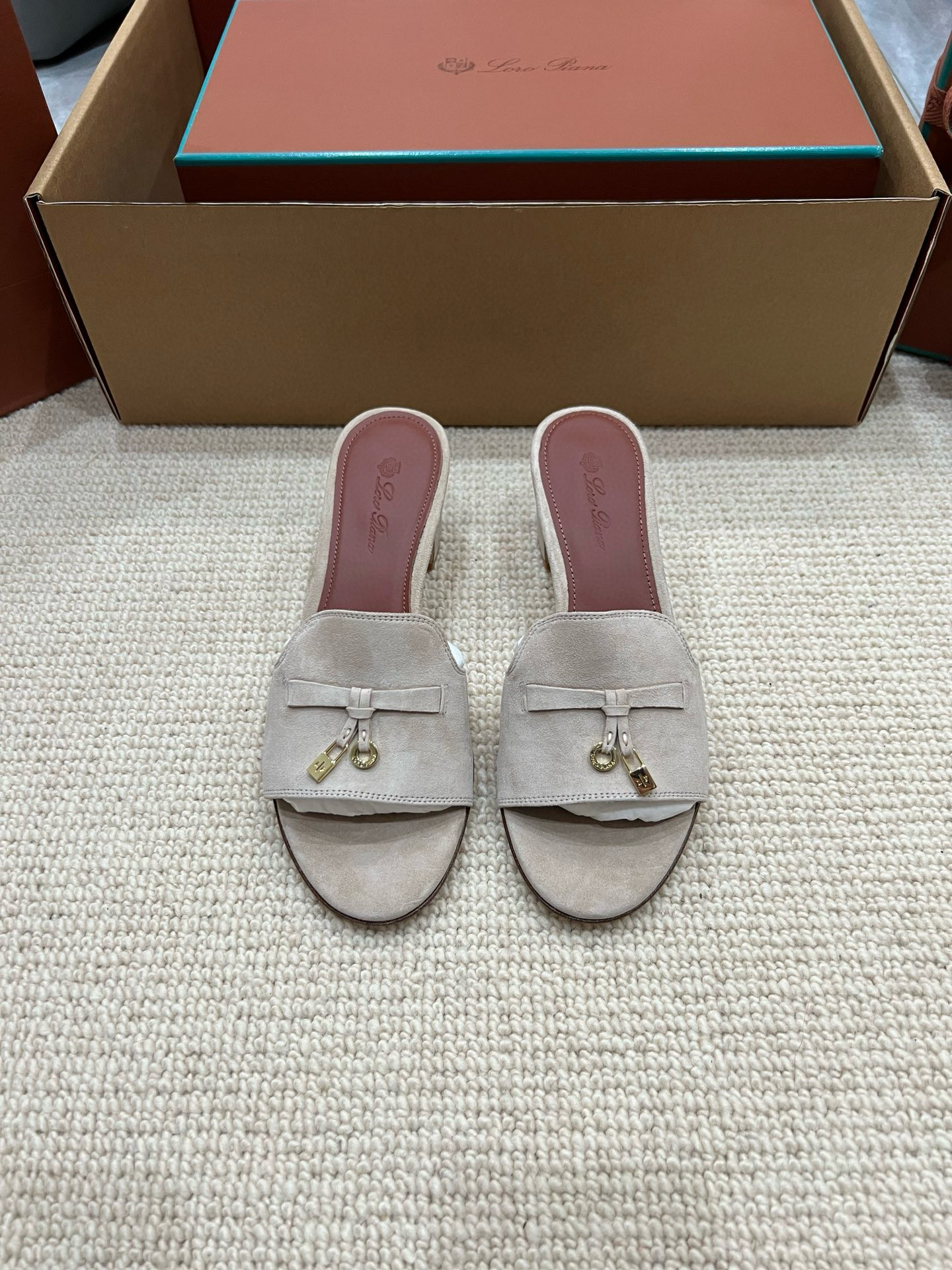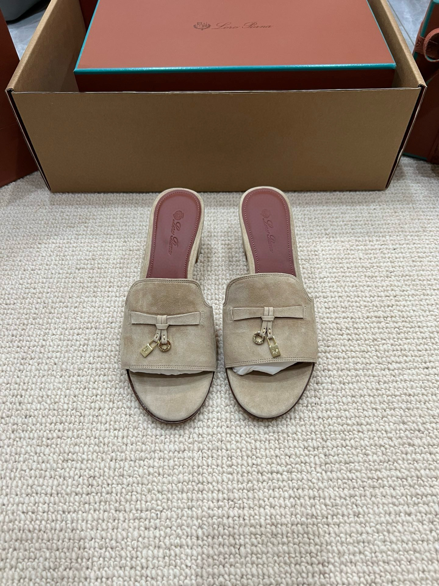 NIGO Loro Piana Summer Charms Women's Mid Heel Sandals Sheepskin Temperament Solid Color Slippers Vacation Style Luxury Comfort Women's Shoes #nigo81118