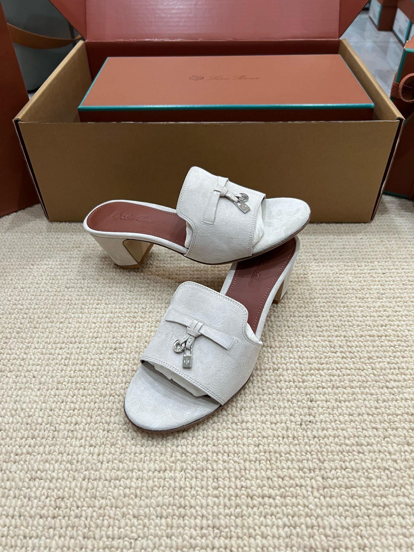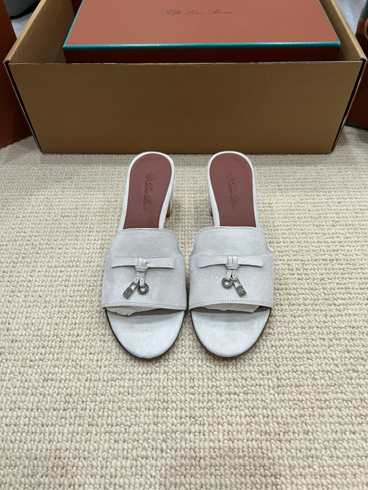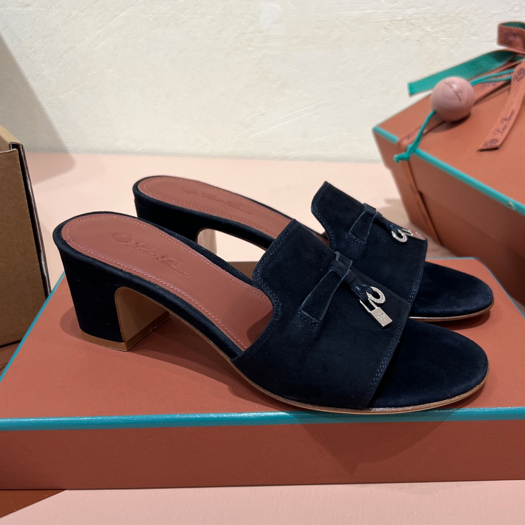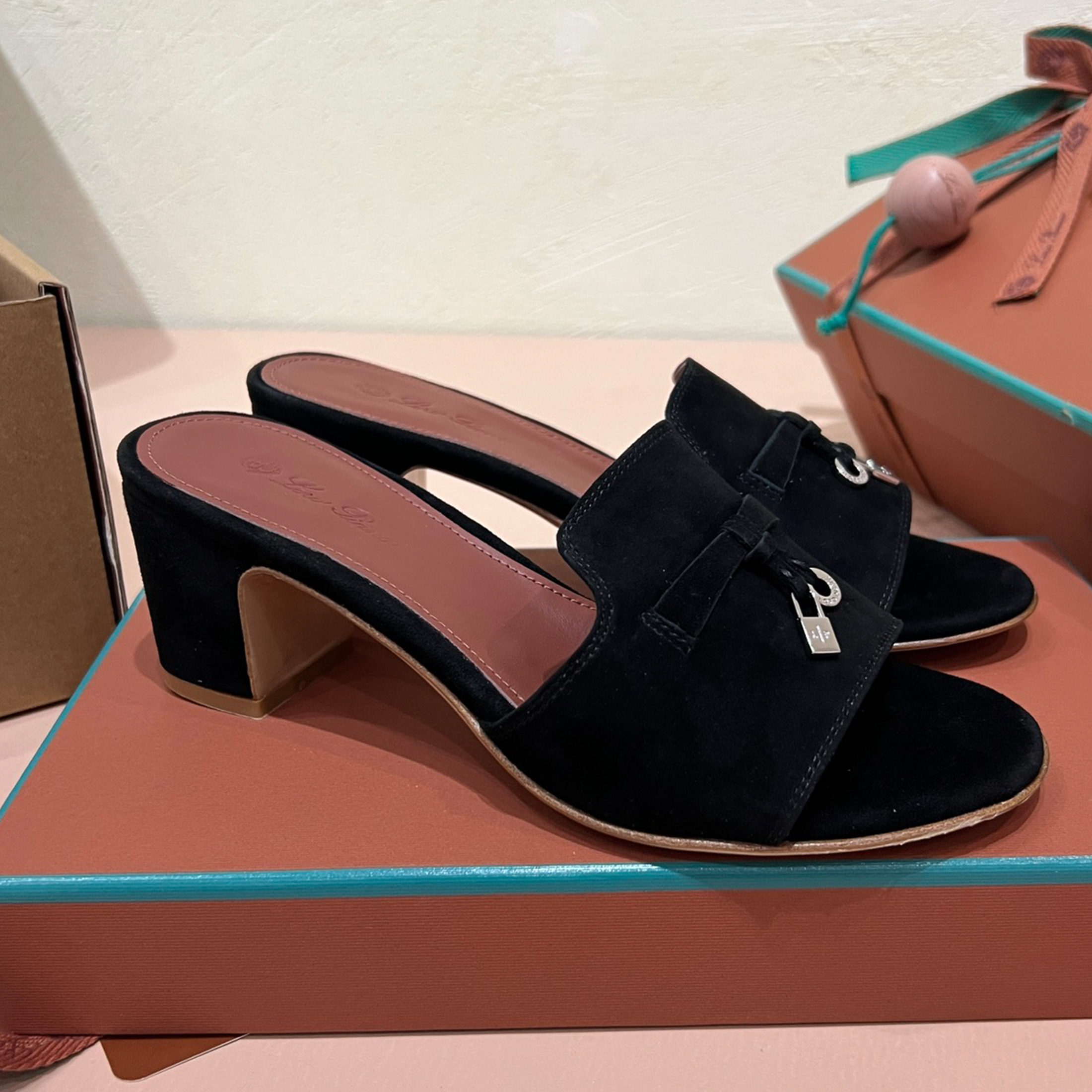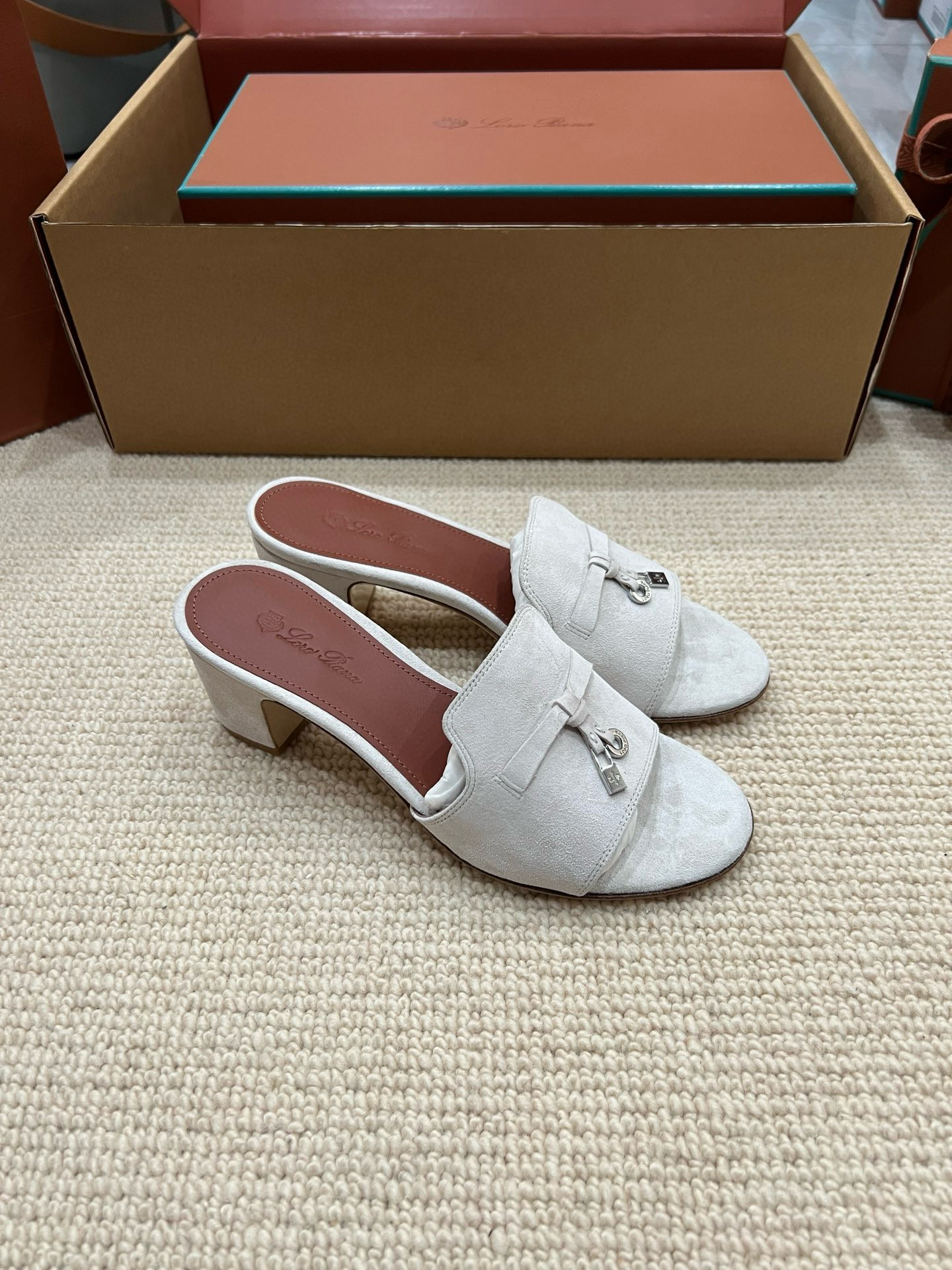 NIGO Loro Piana Summer Charms Women's Mid Heel Sandals Sheepskin Temperament Solid Color Slippers Vacation Style Luxury Comfort Women's Shoes #nigo81118