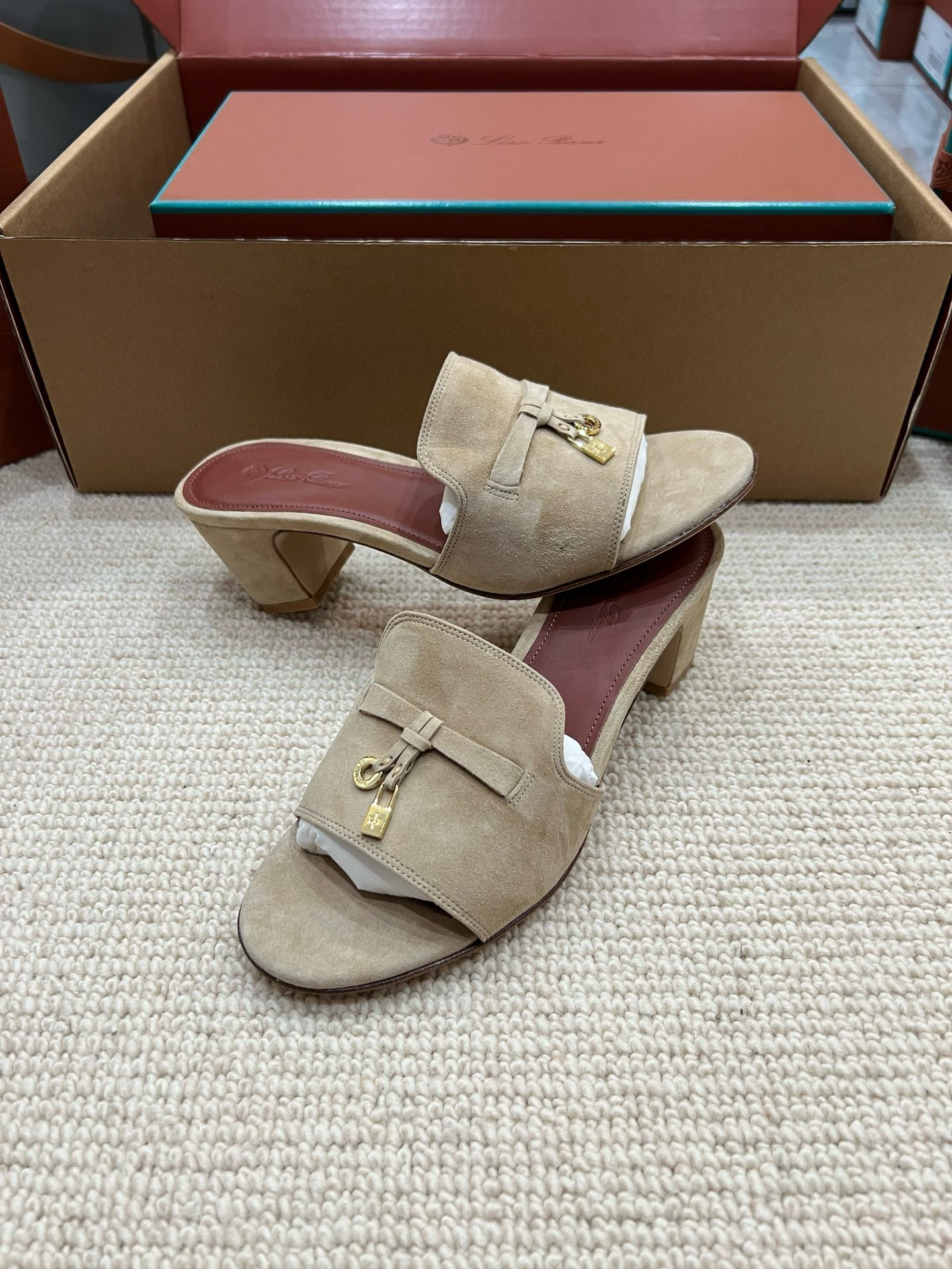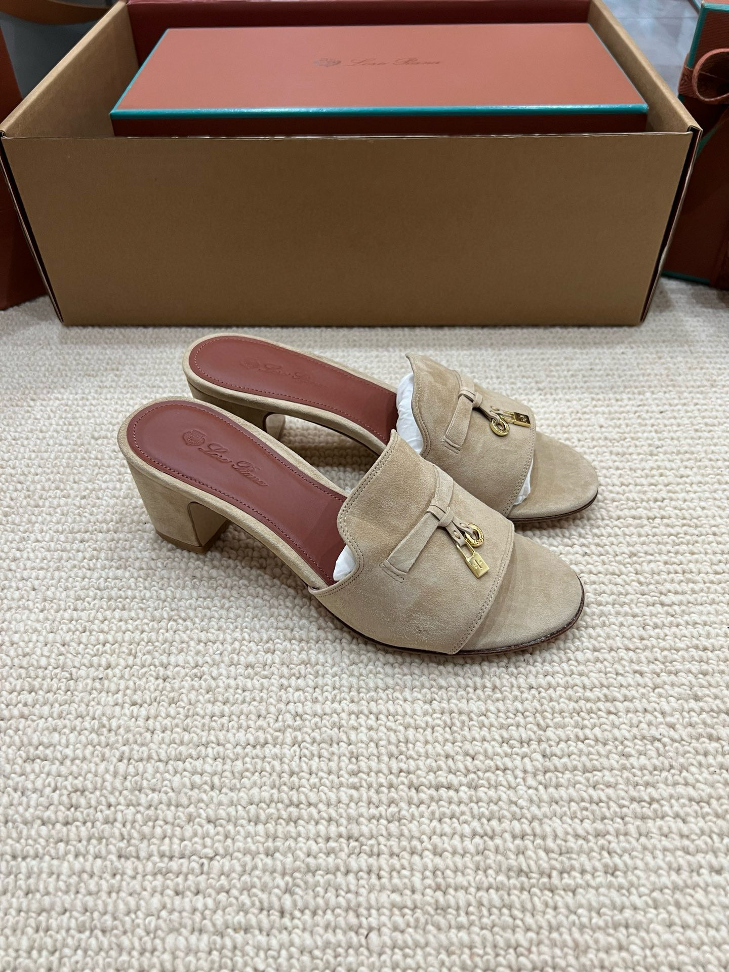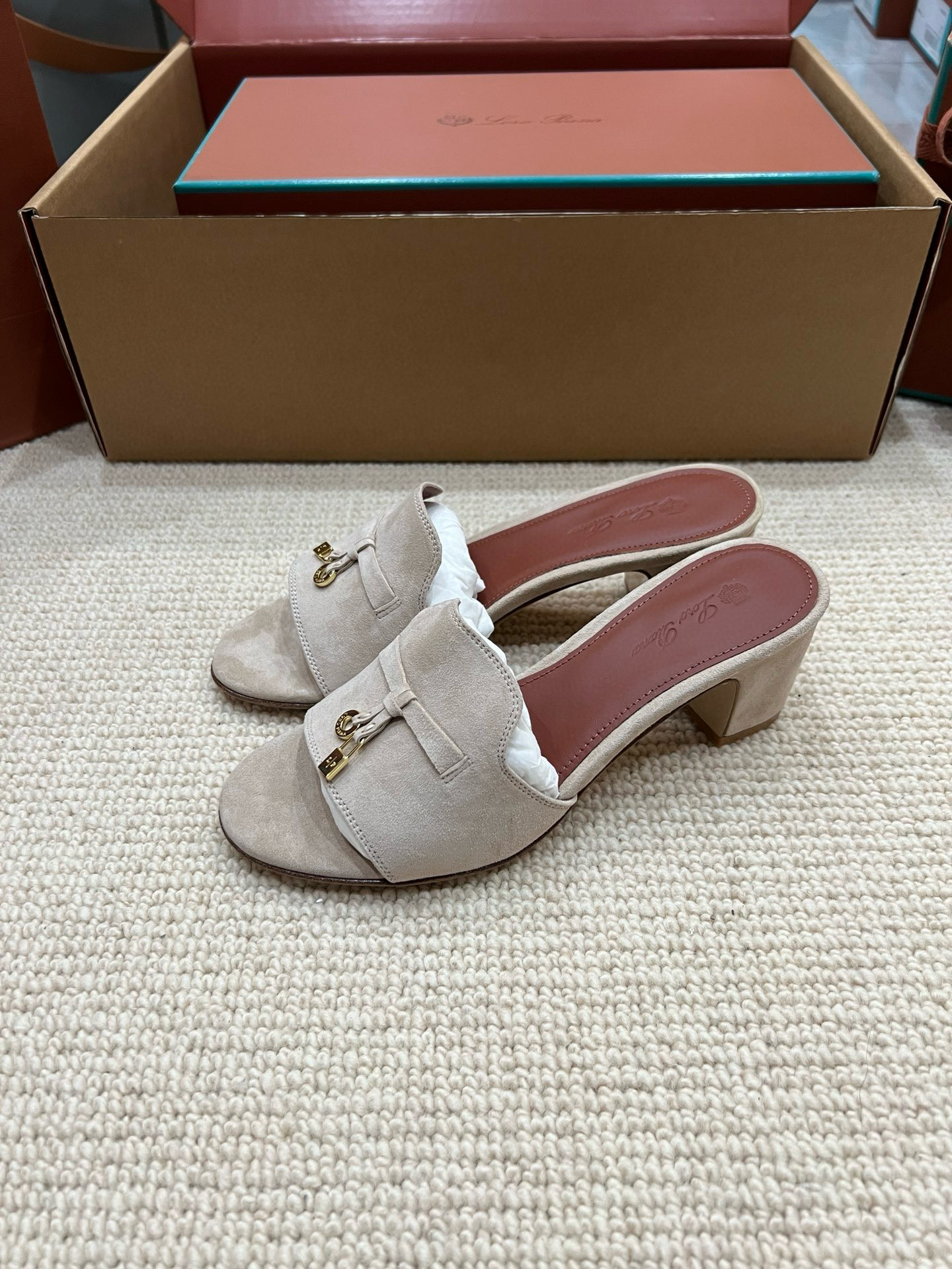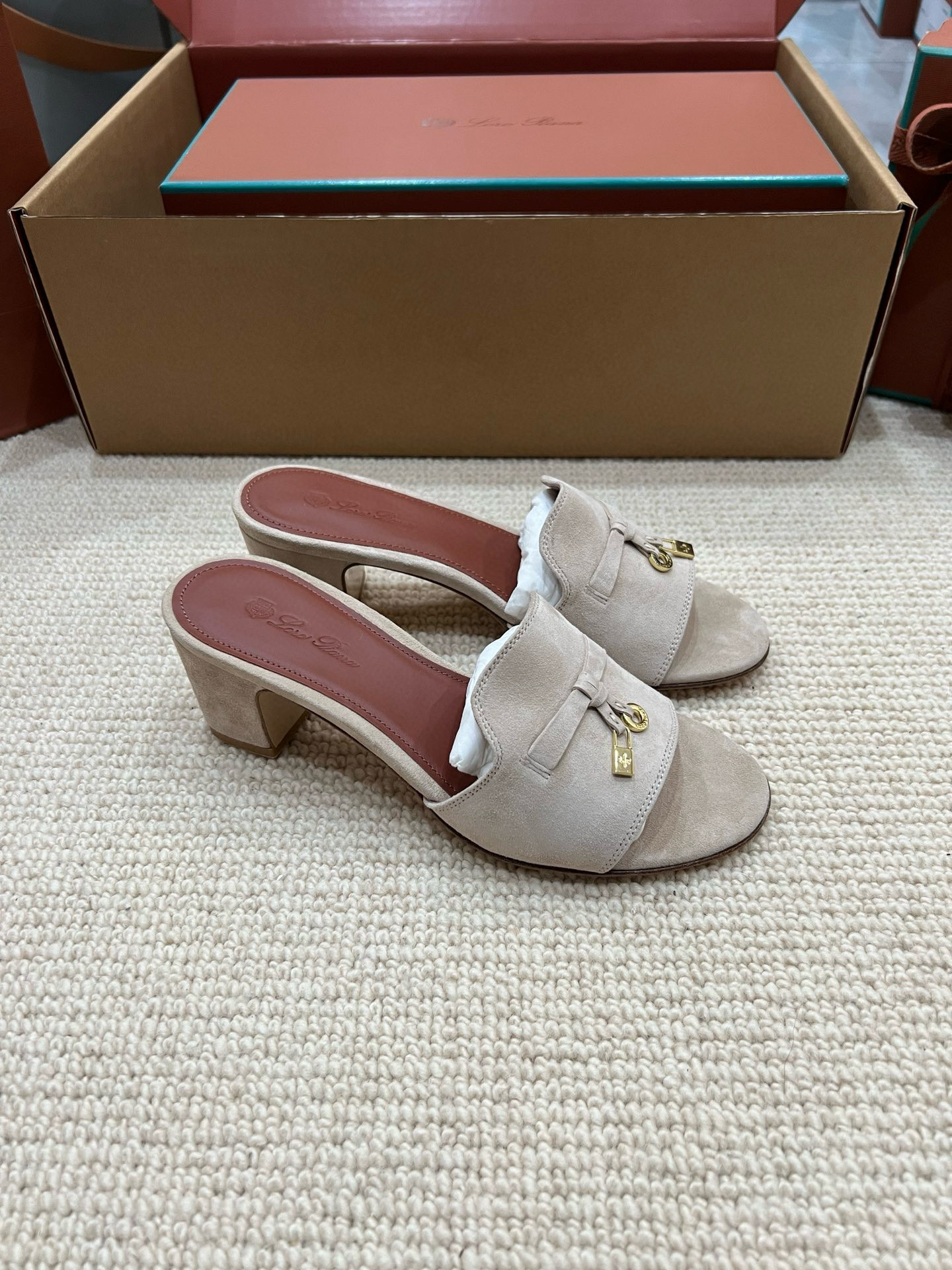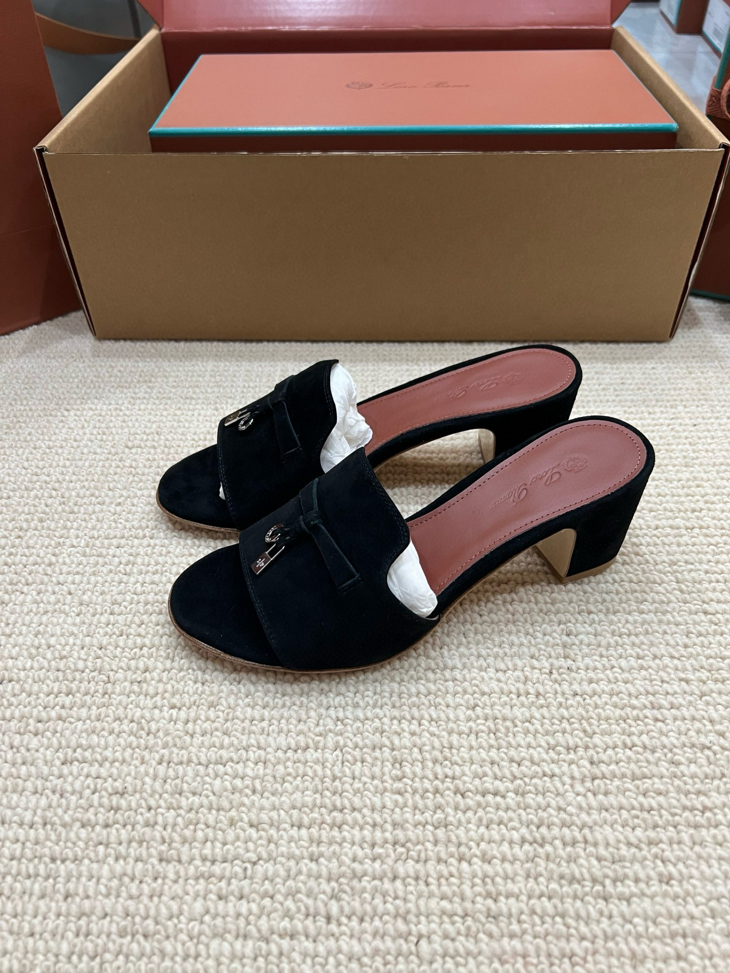 NIGO Loro Piana Summer Charms Women's Mid Heel Sandals Sheepskin Temperament Solid Color Slippers Vacation Style Luxury Comfort Women's Shoes #nigo81118