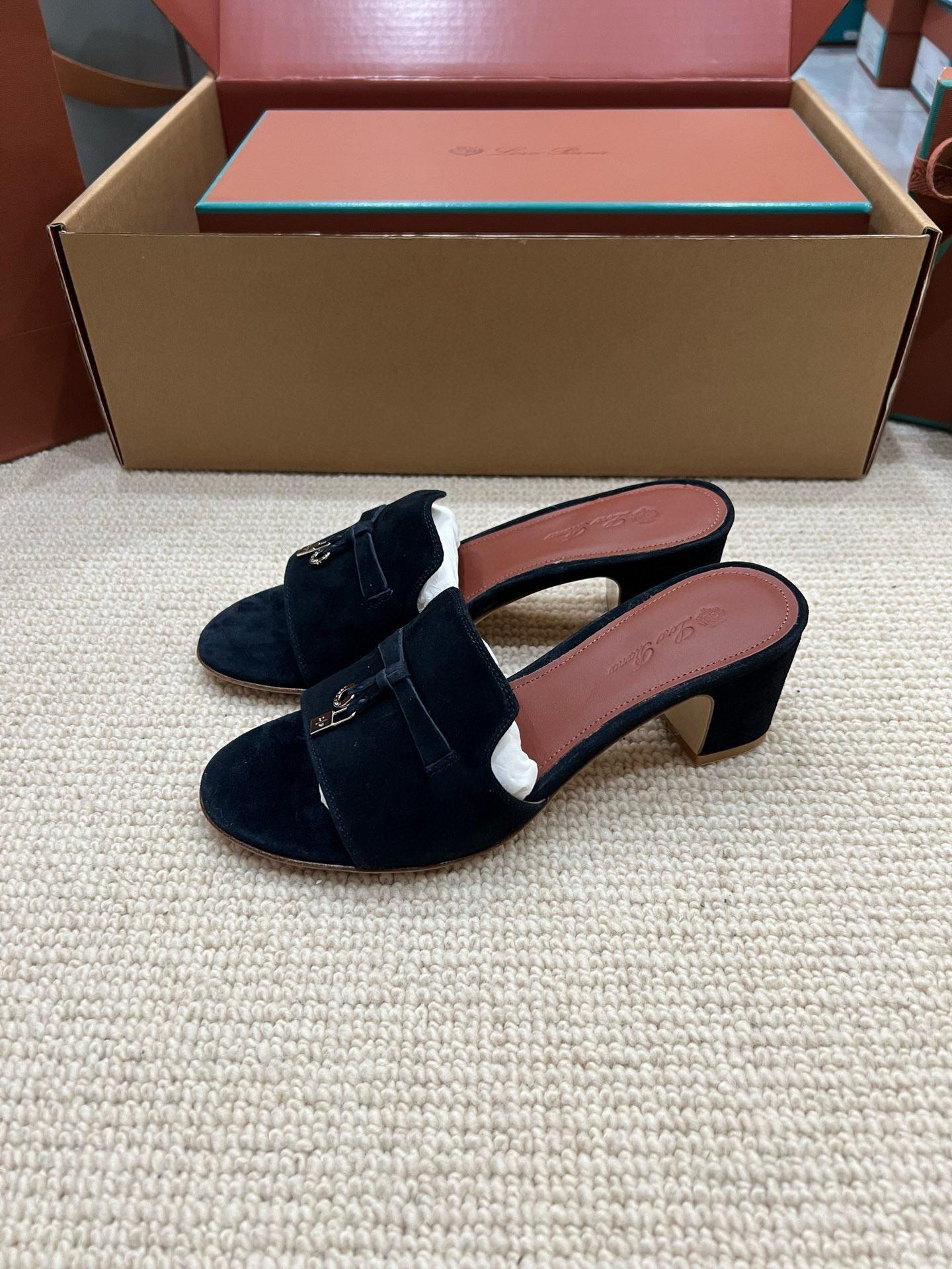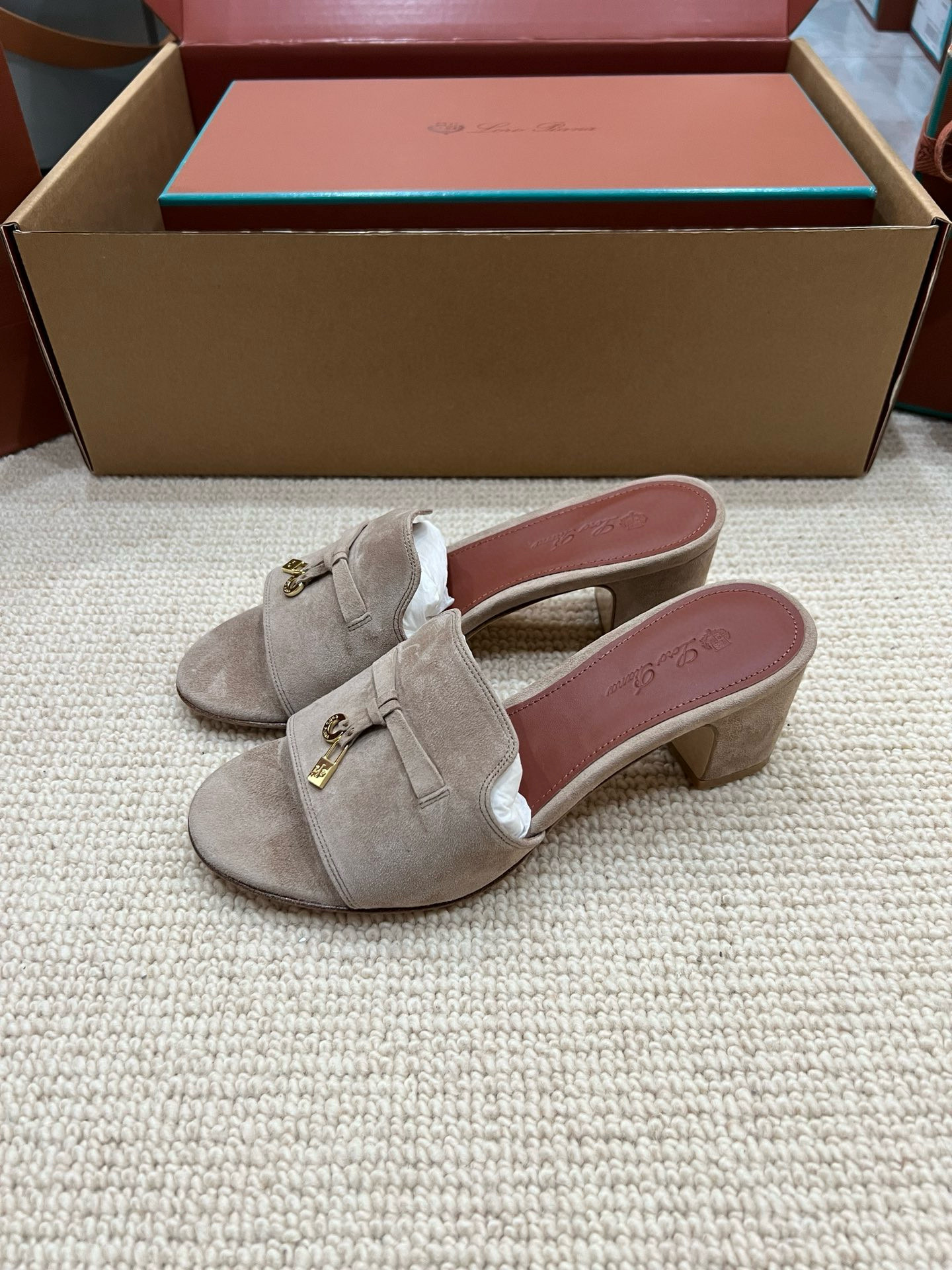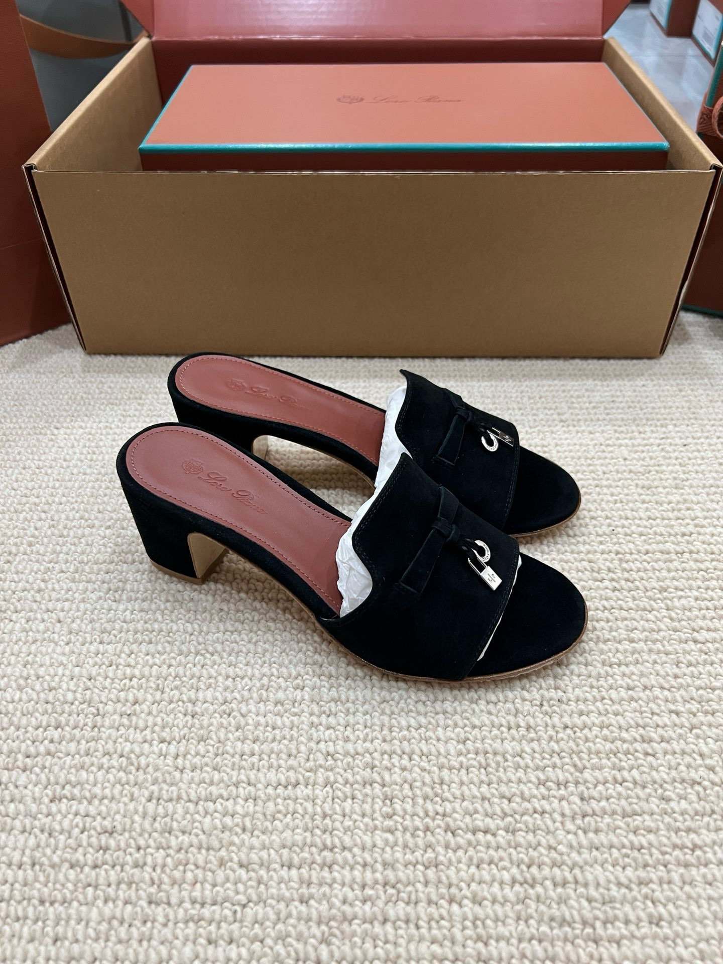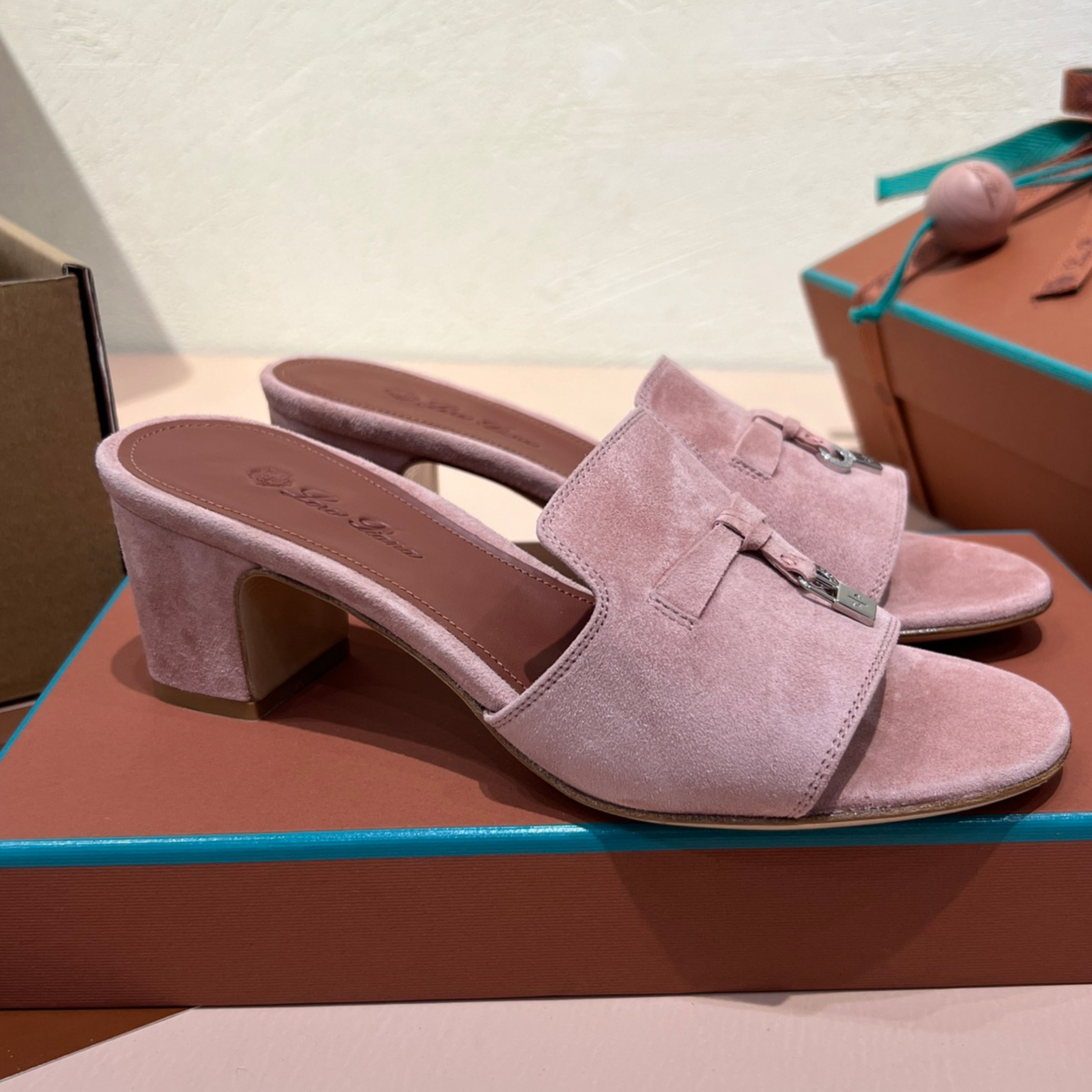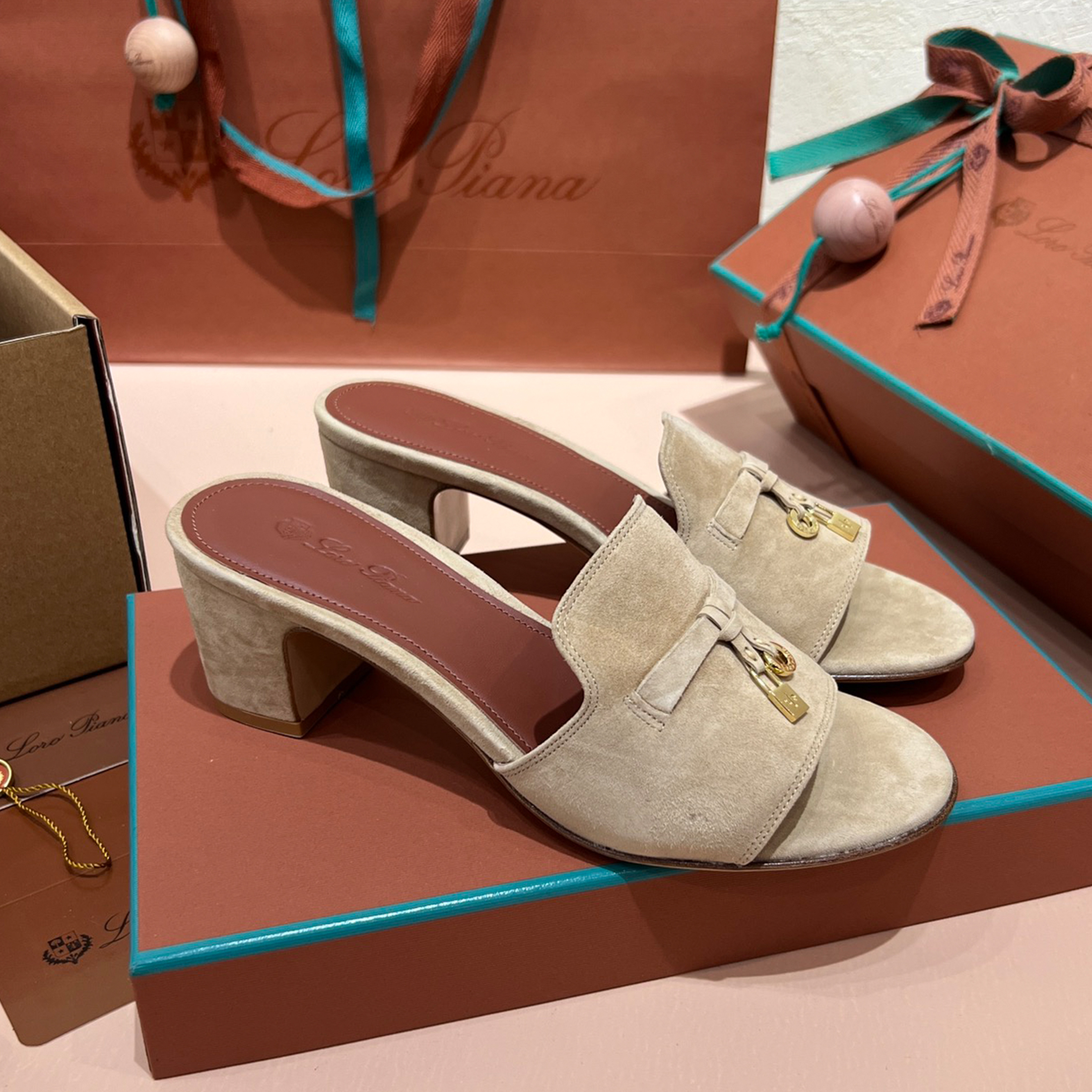NIGO Loro Piana Summer Charms Women's Mid Heel Sandals Sheepskin Temperament Solid Color Slippers Vacation Style Luxury Comfort Women's Shoes #nigo81118