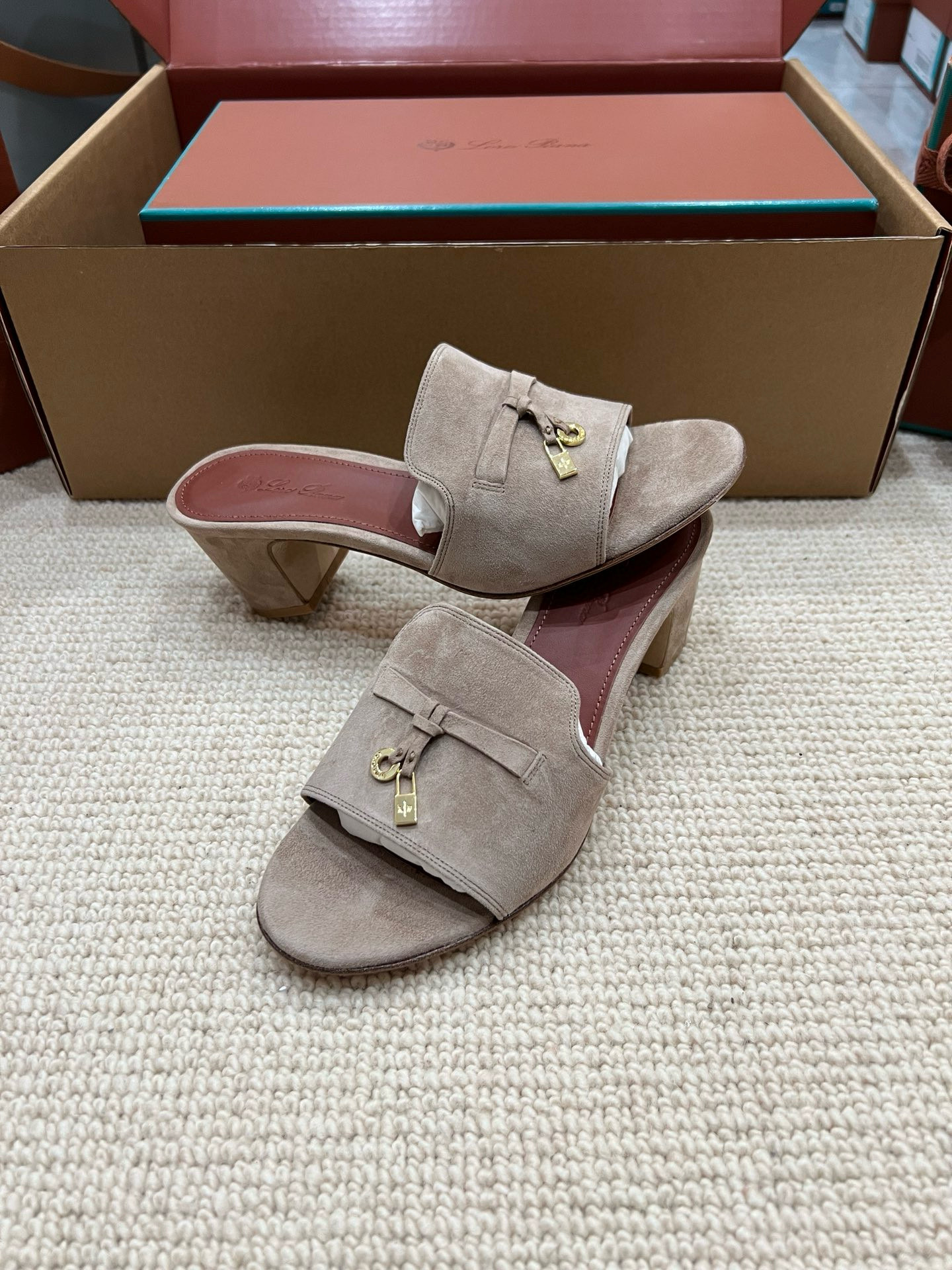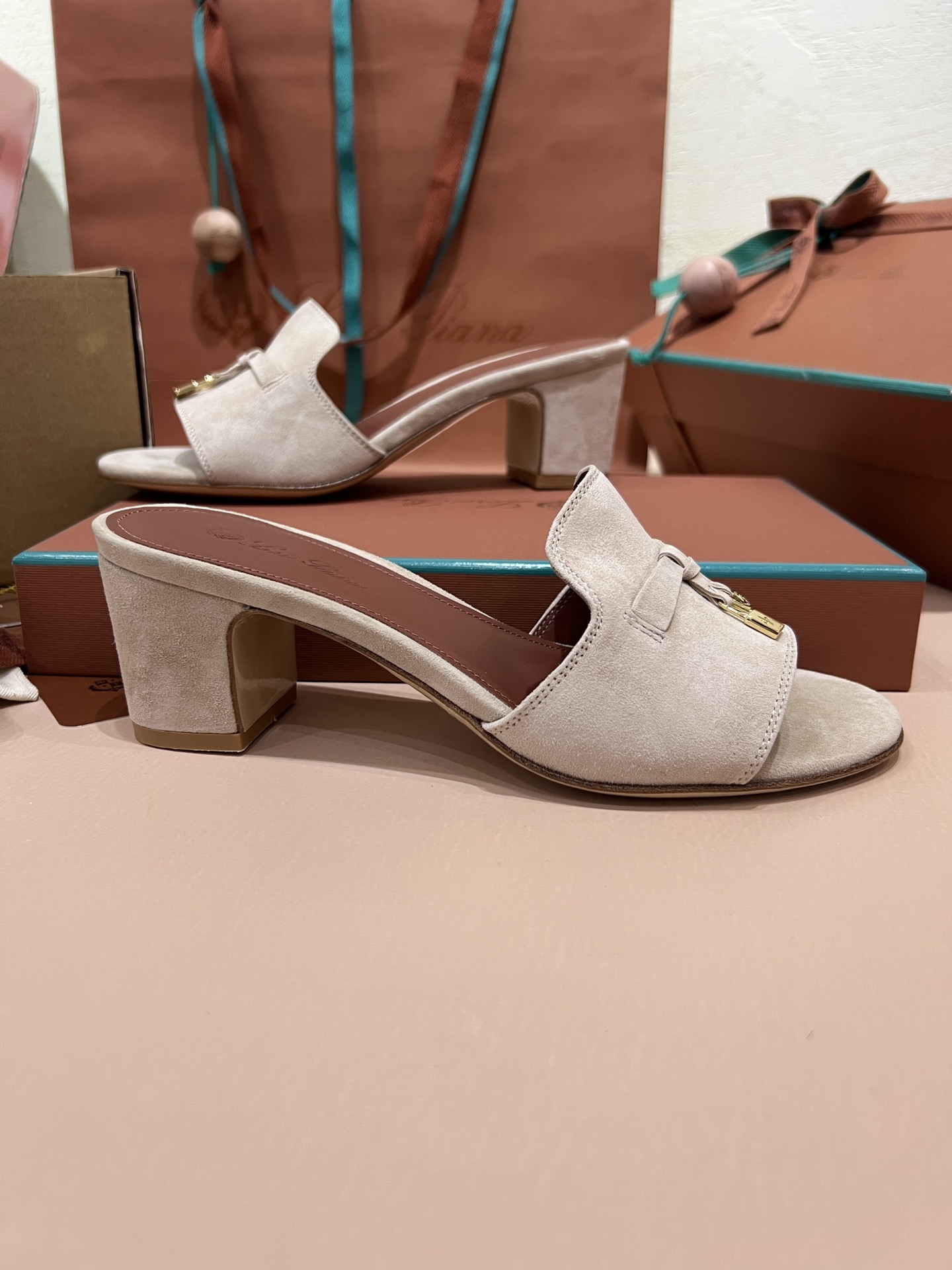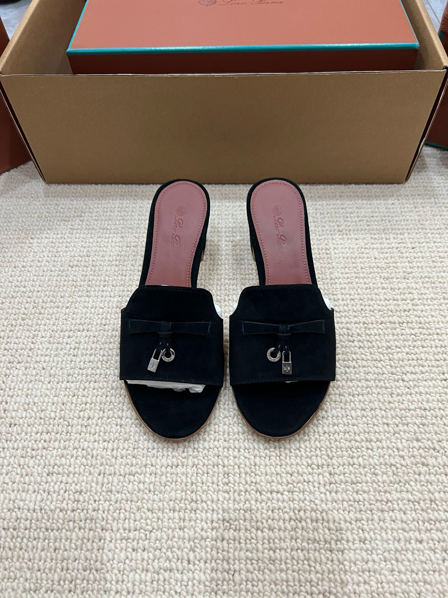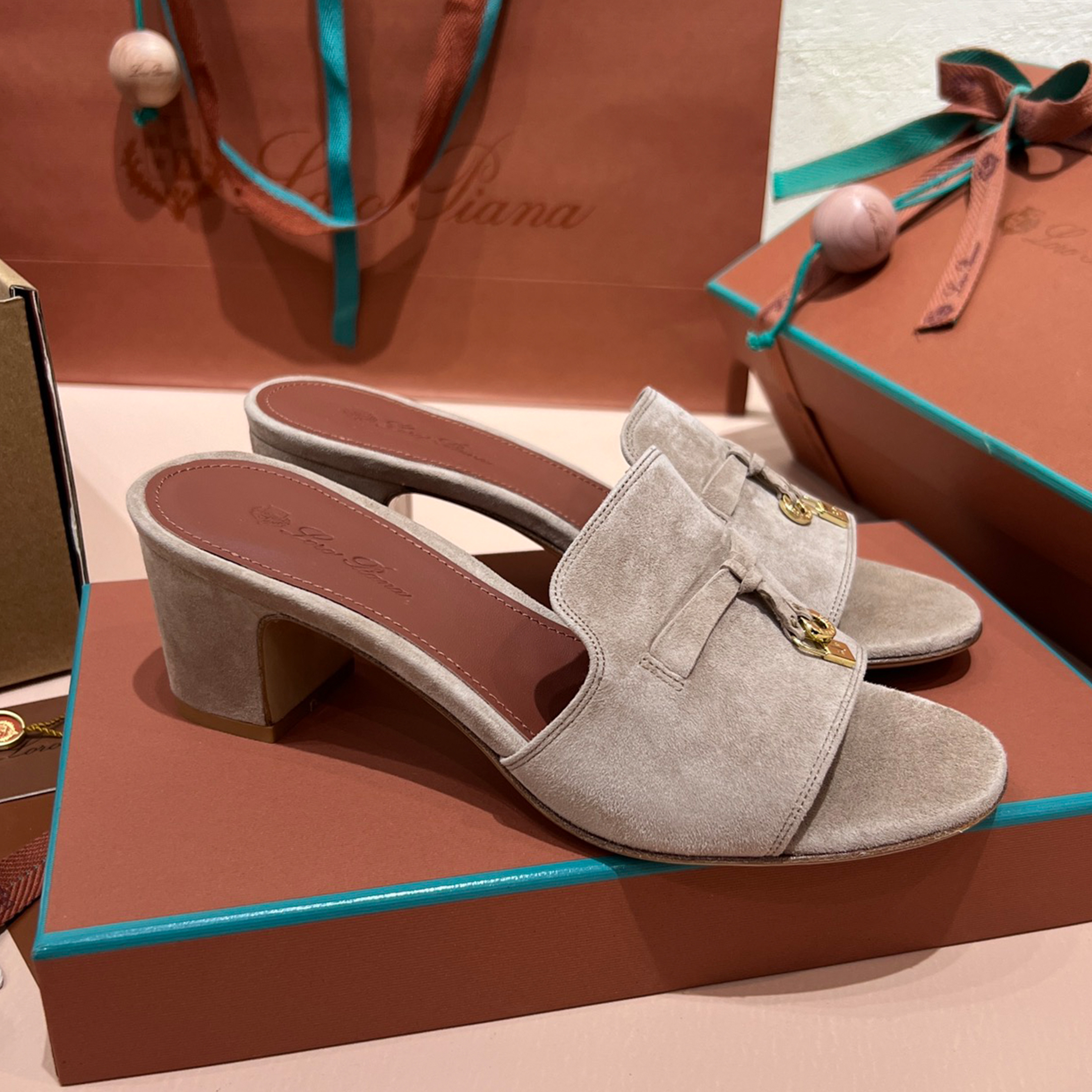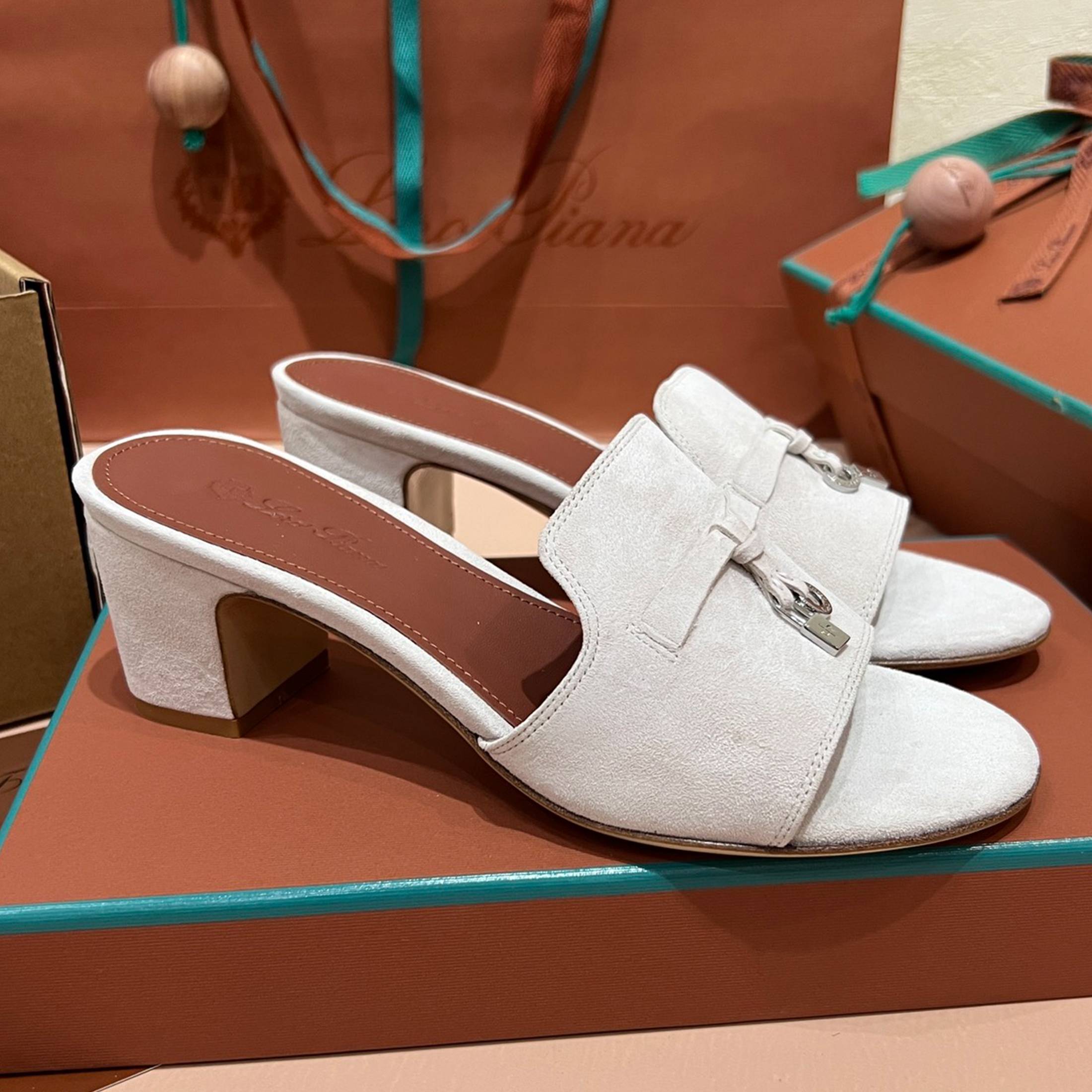 NIGO Loro Piana Summer Charms Women's Mid Heel Sandals Sheepskin Temperament Solid Color Slippers Vacation Style Luxury Comfort Women's Shoes #nigo81118