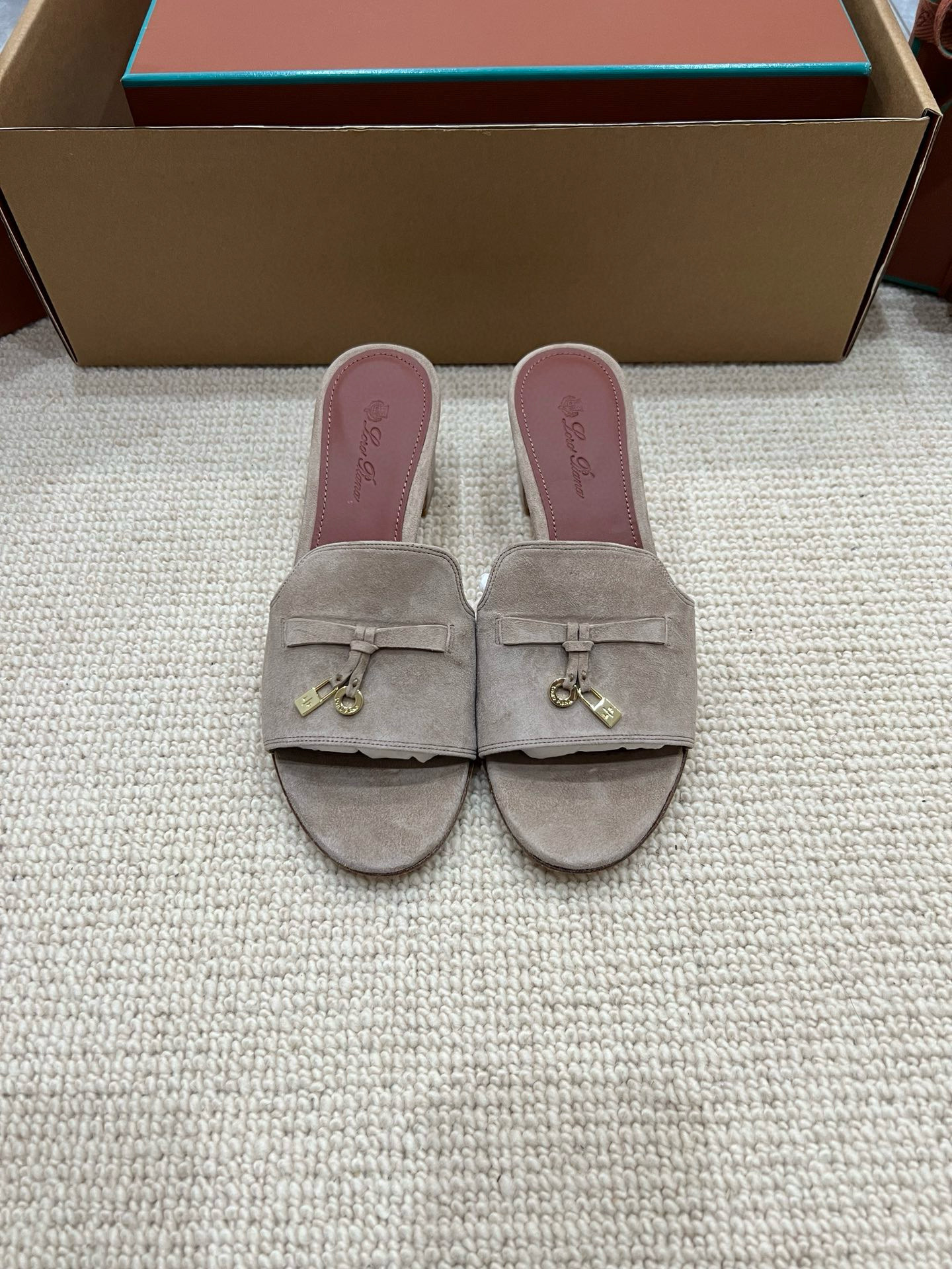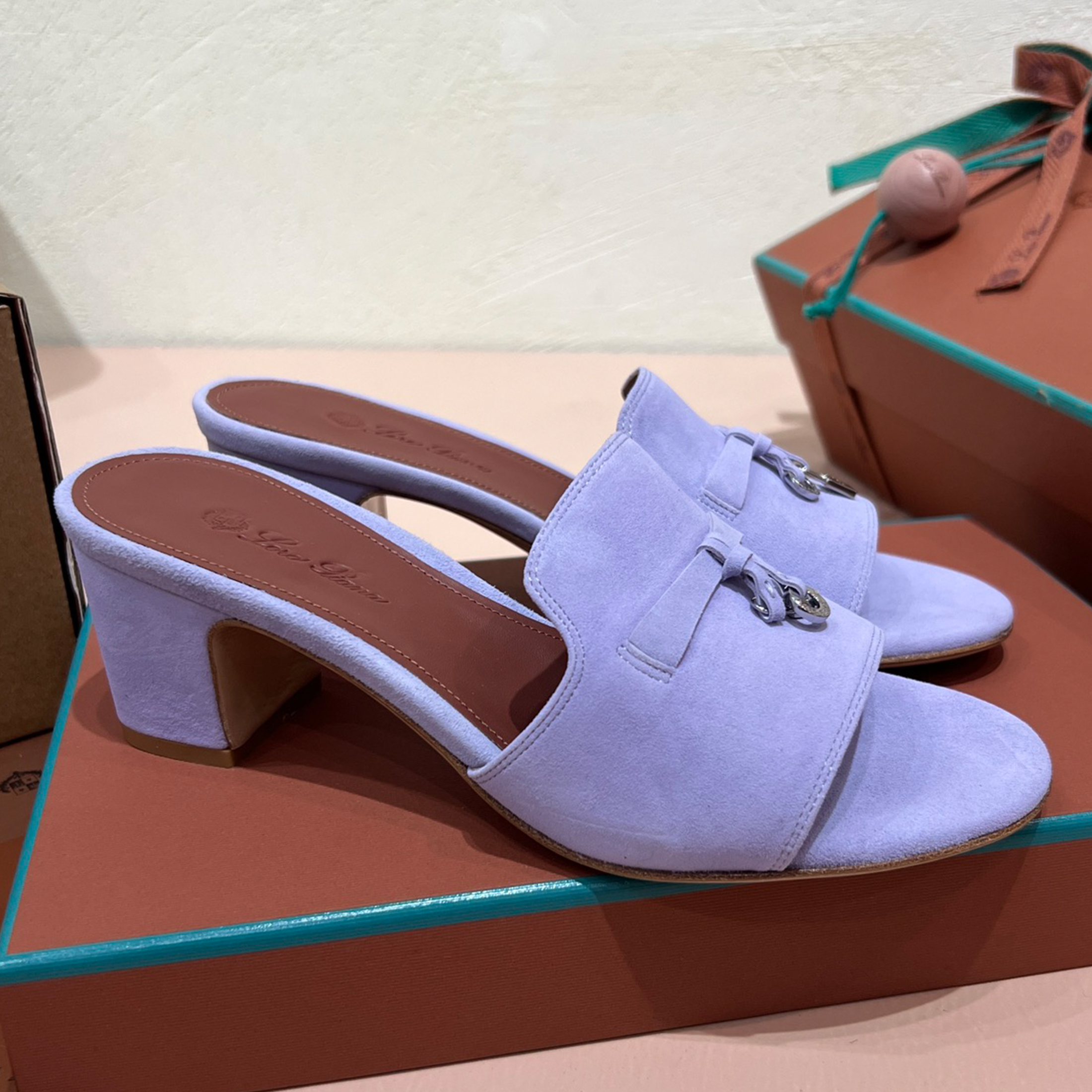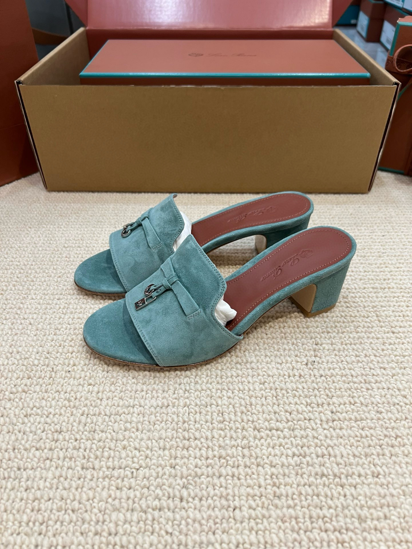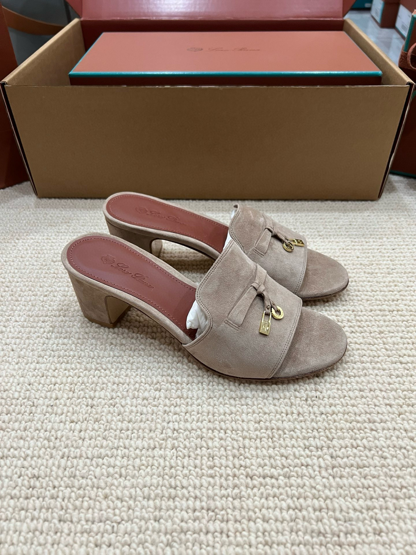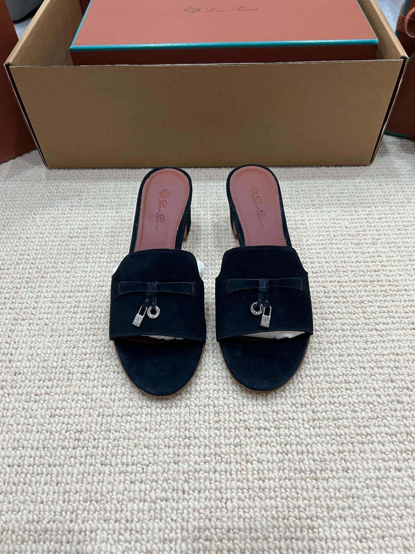 NIGO Loro Piana Summer Charms Women's Mid Heel Sandals Sheepskin Temperament Solid Color Slippers Vacation Style Luxury Comfort Women's Shoes #nigo81118