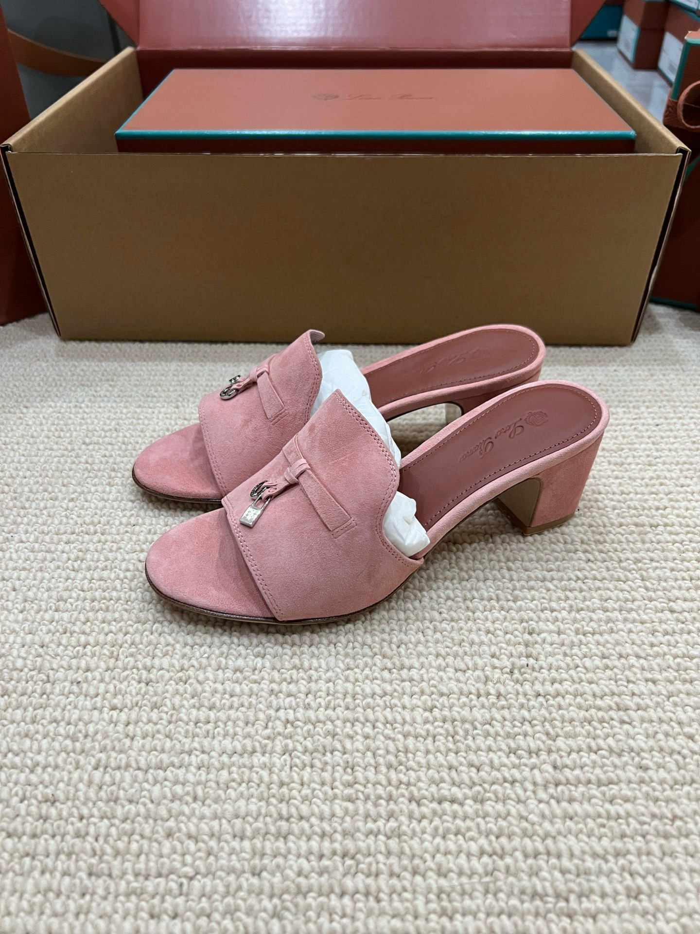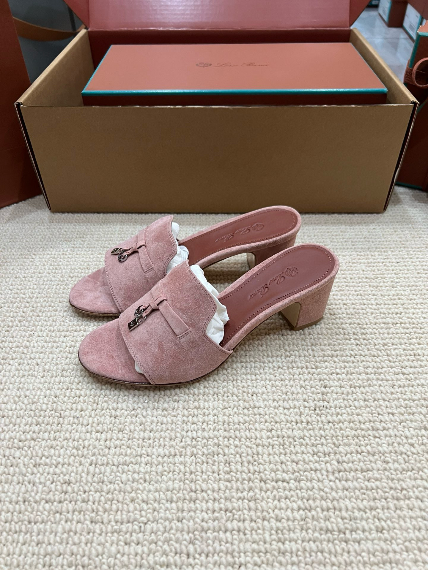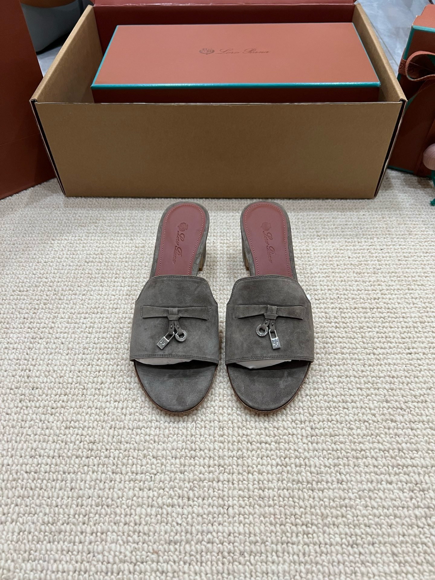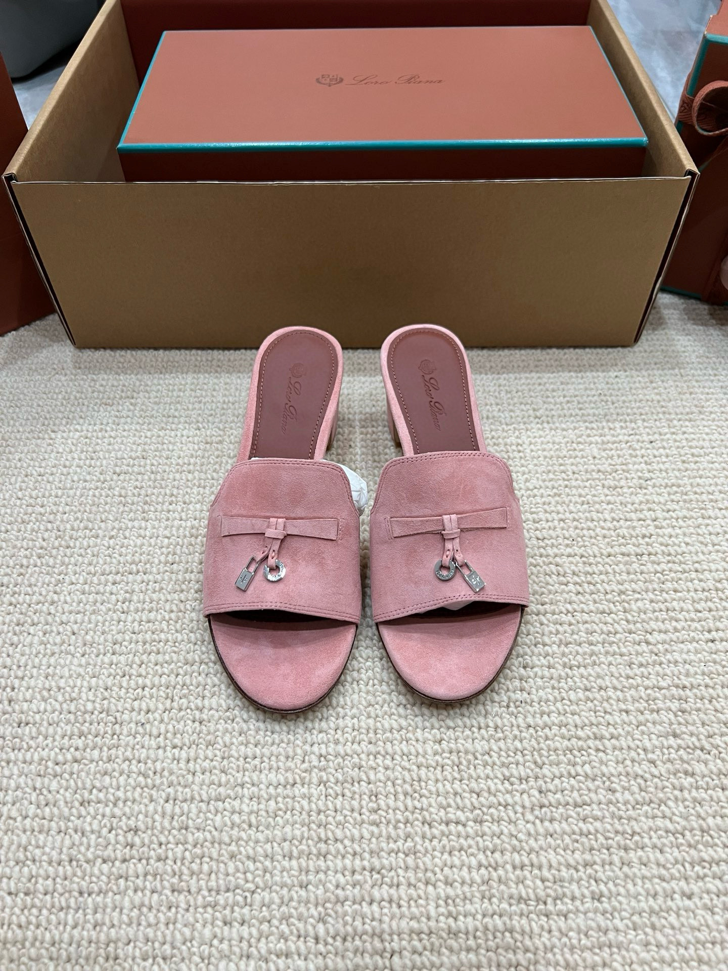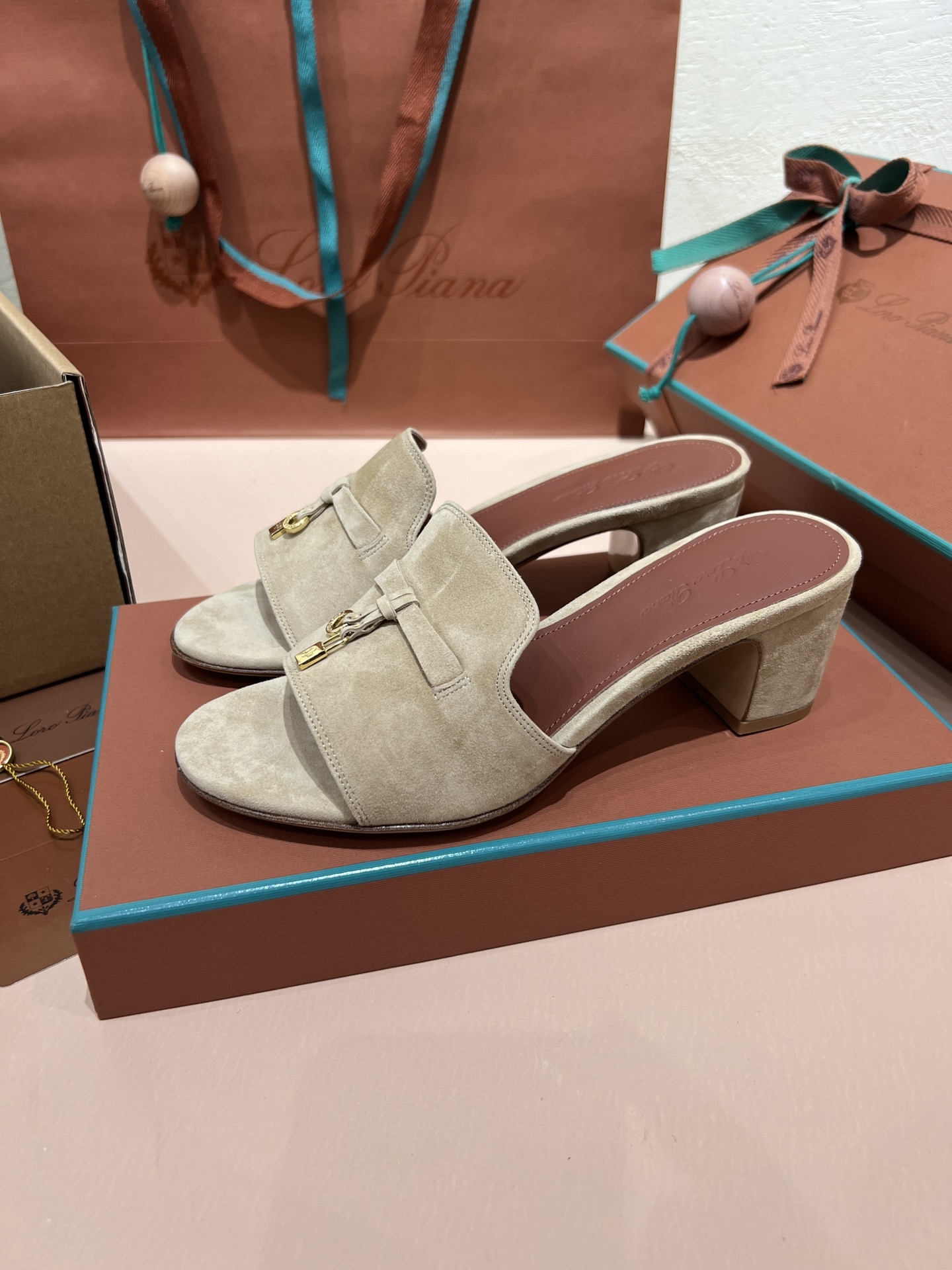 NIGO Loro Piana Summer Charms Women's Mid Heel Sandals Sheepskin Temperament Solid Color Slippers Vacation Style Luxury Comfort Women's Shoes #nigo81118