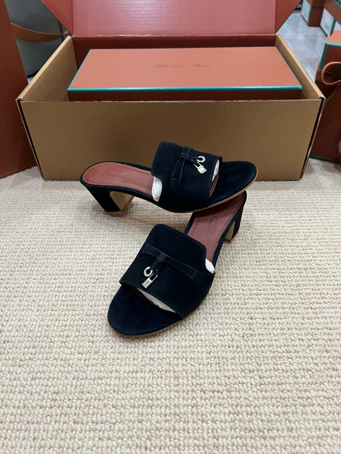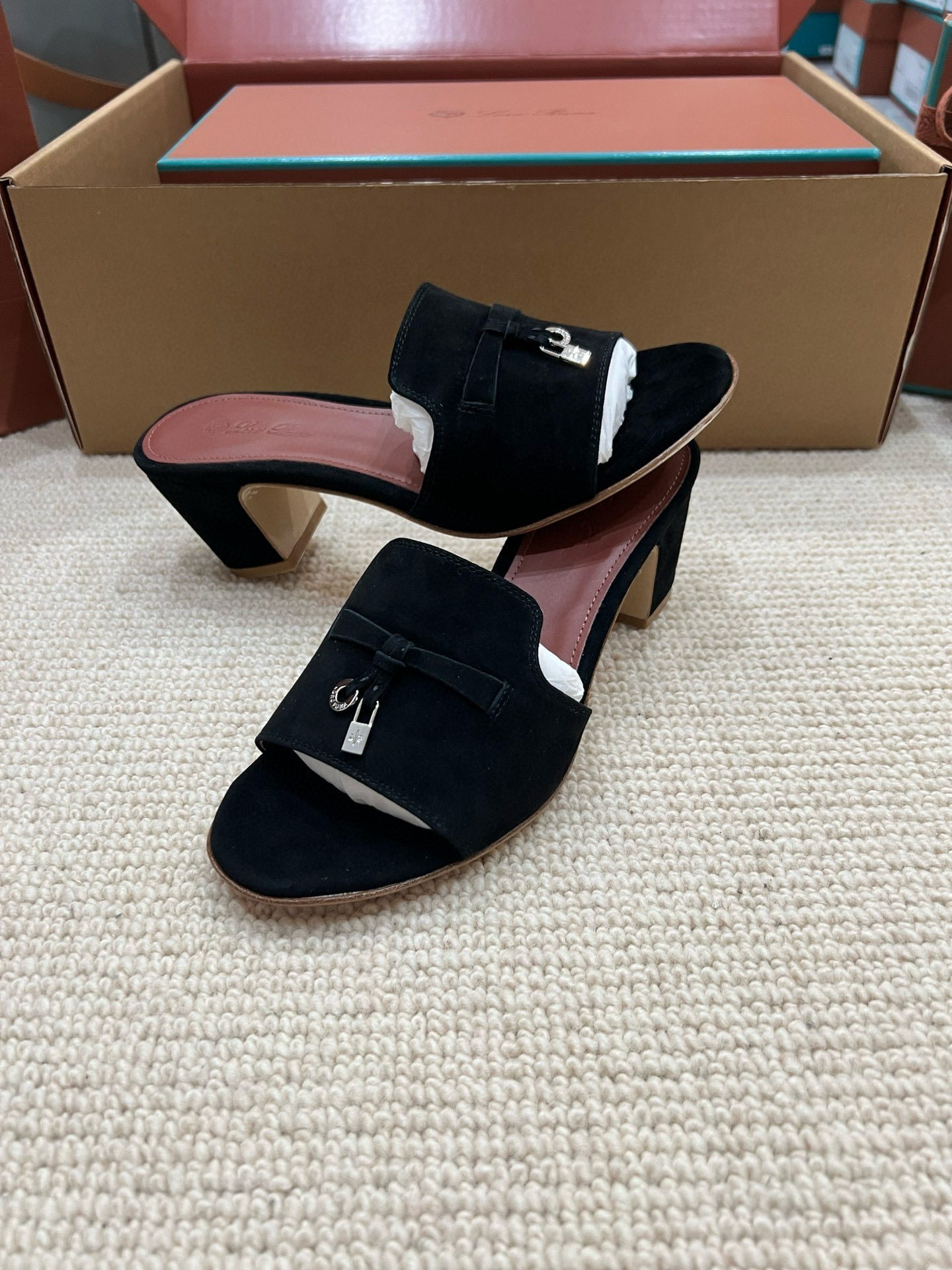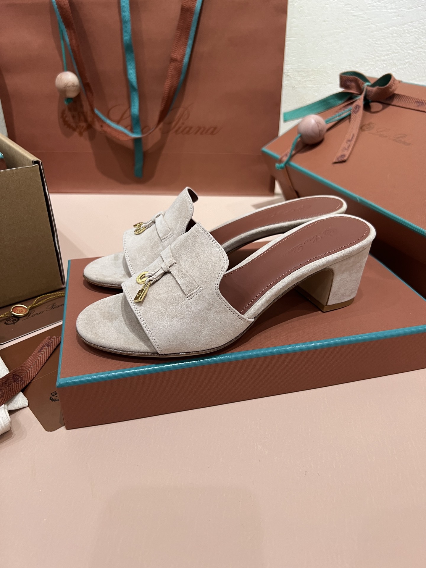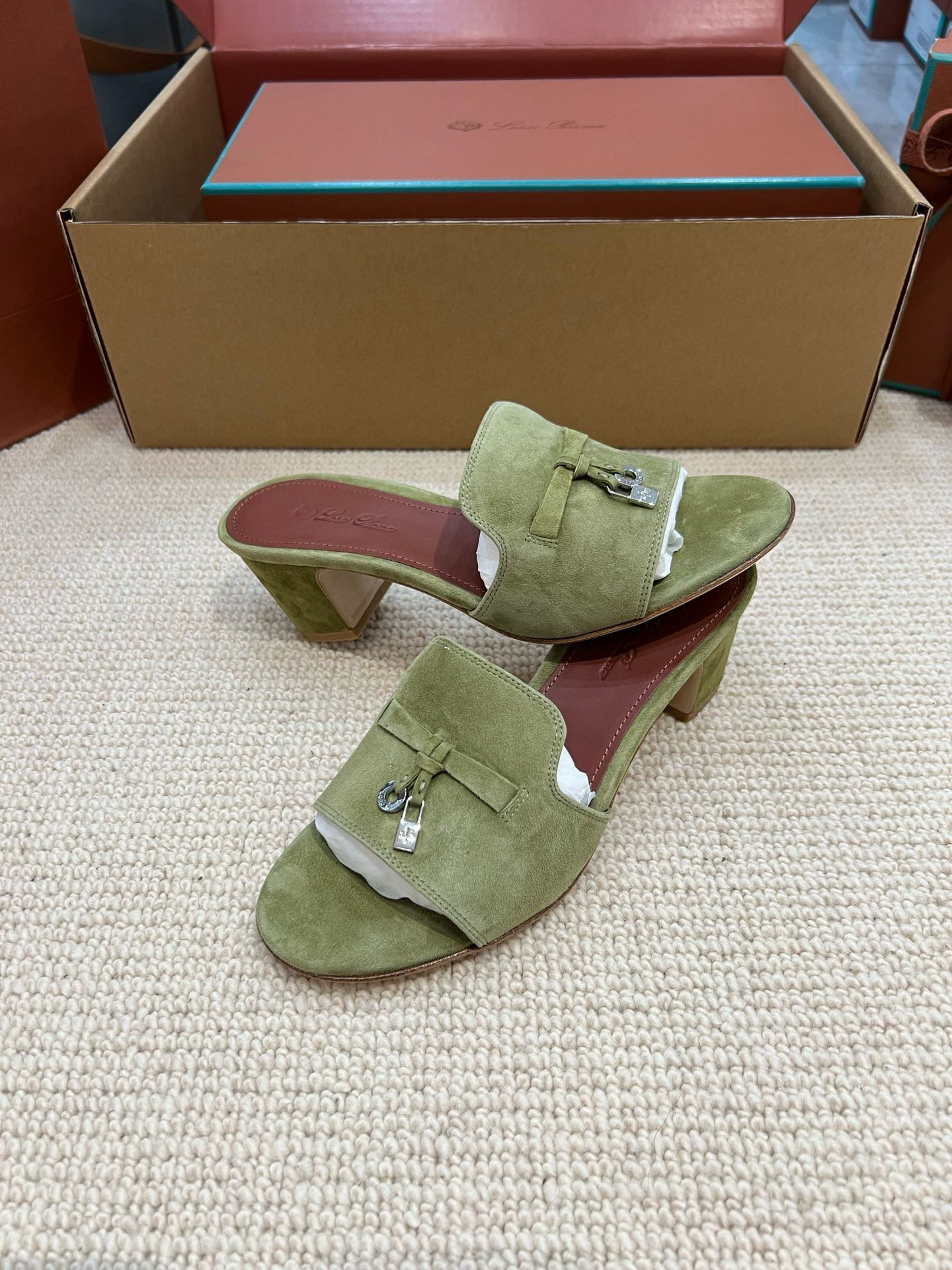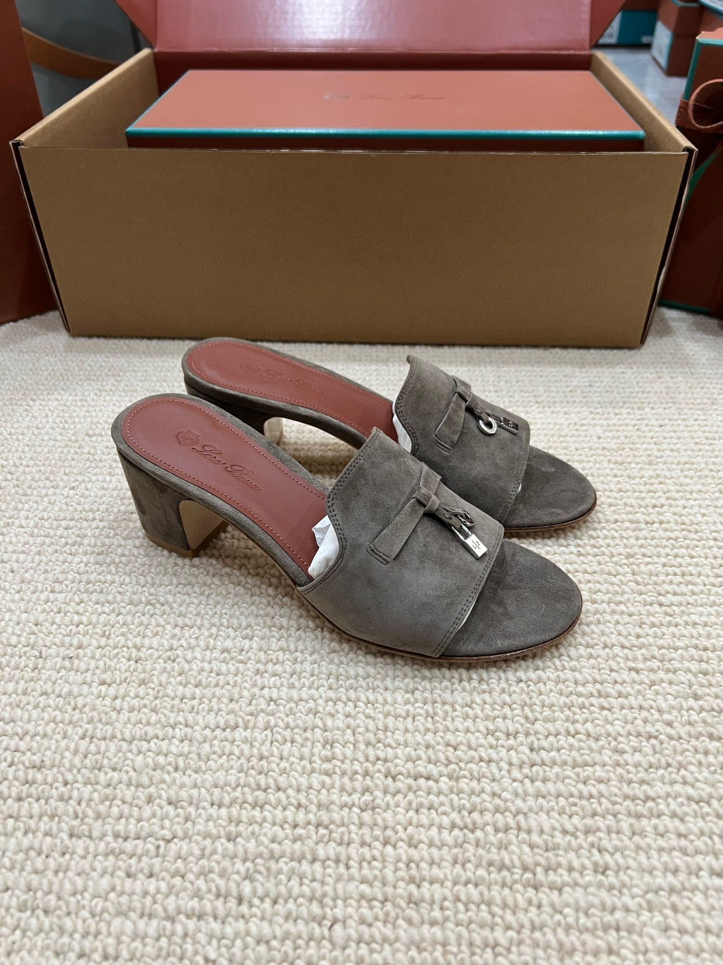 NIGO Loro Piana Summer Charms Women's Mid Heel Sandals Sheepskin Temperament Solid Color Slippers Vacation Style Luxury Comfort Women's Shoes #nigo81118