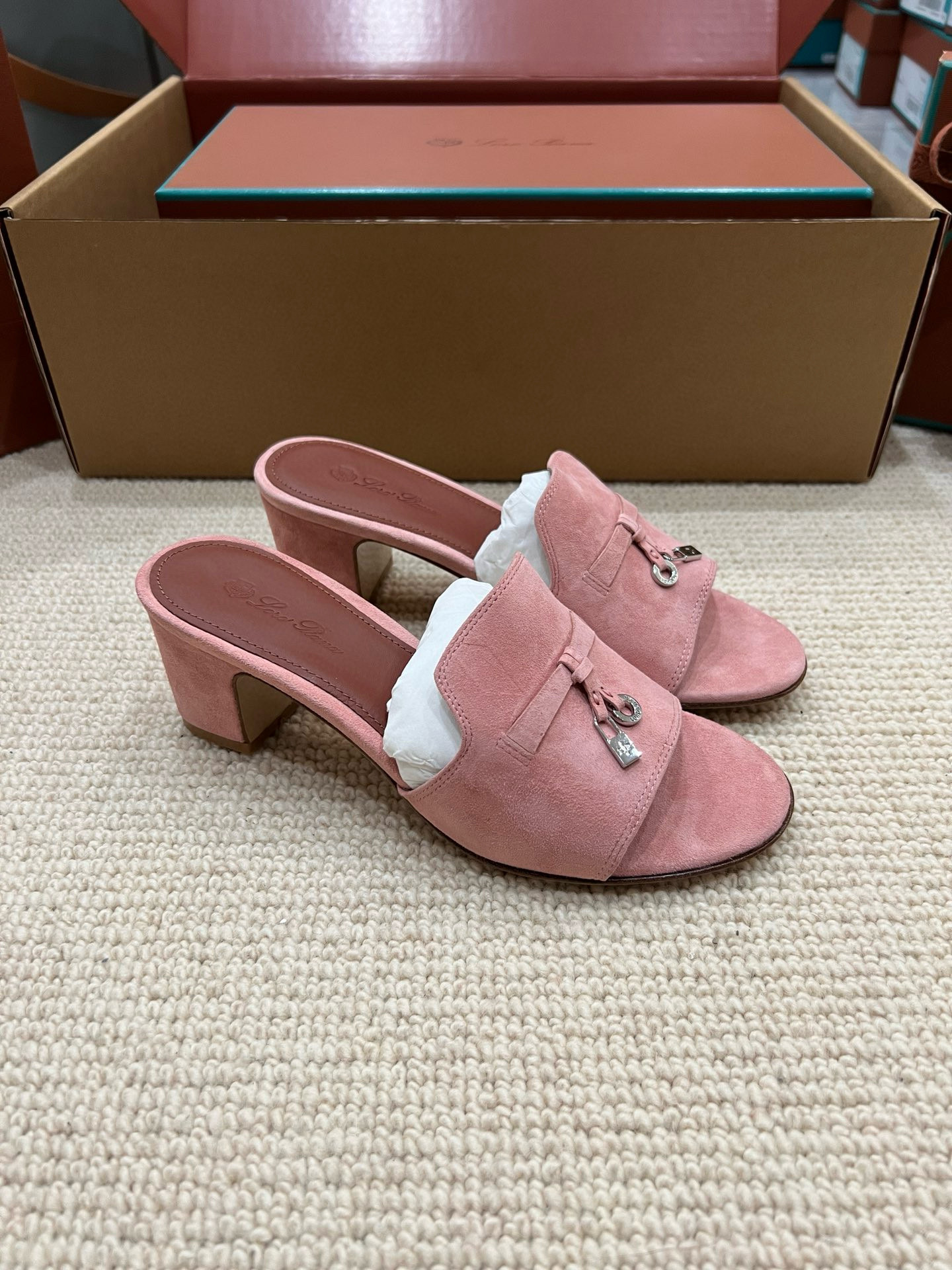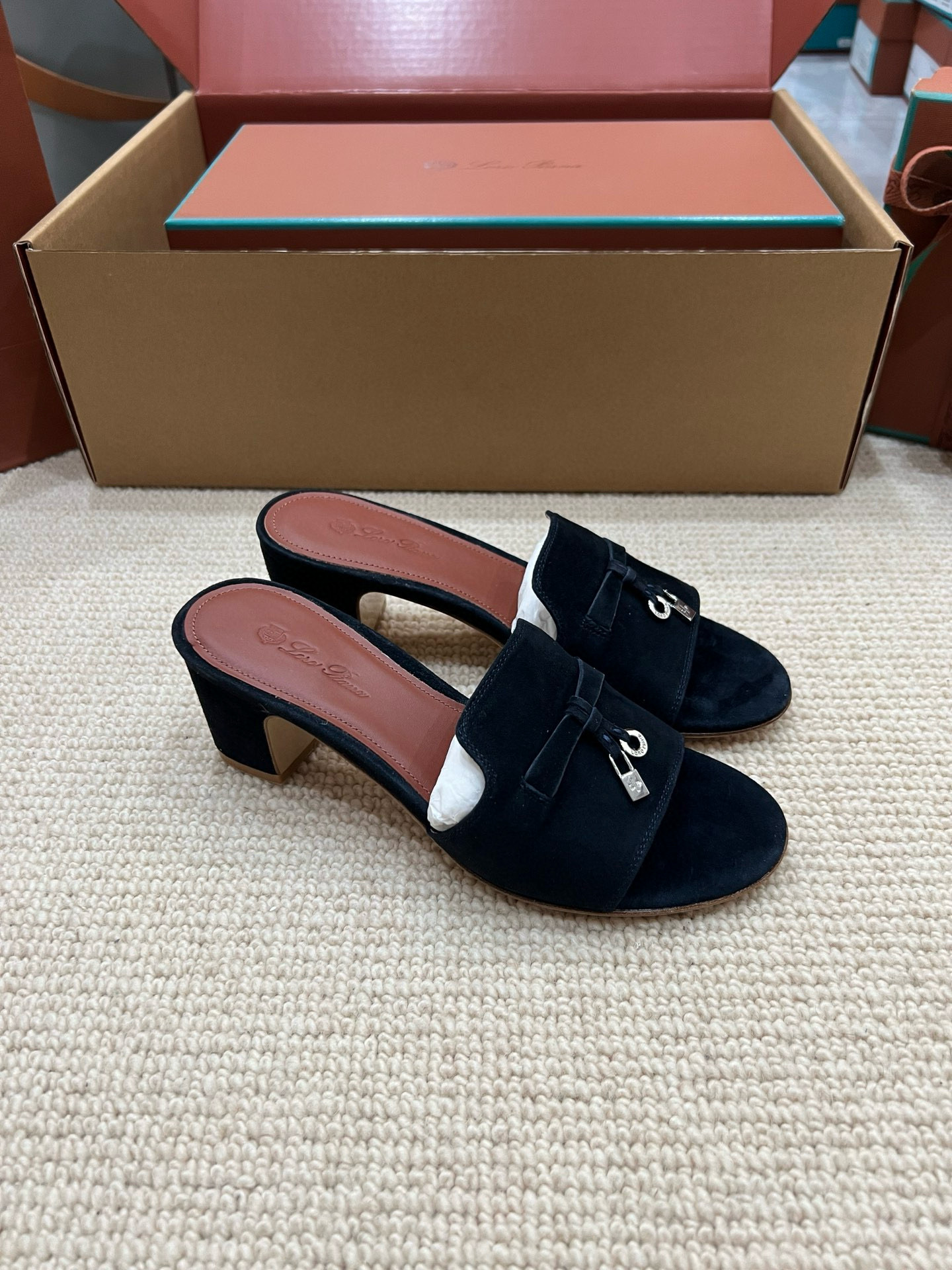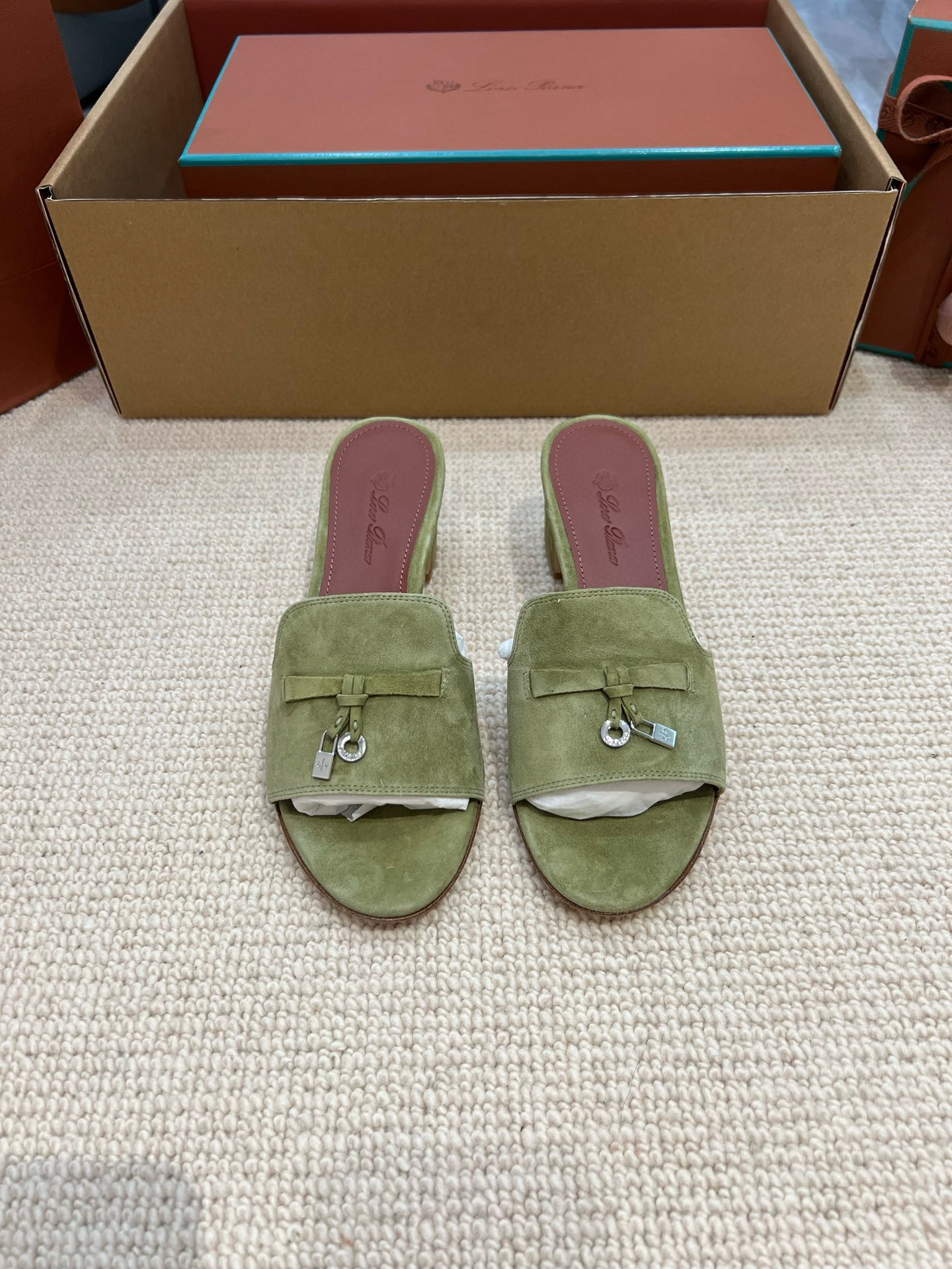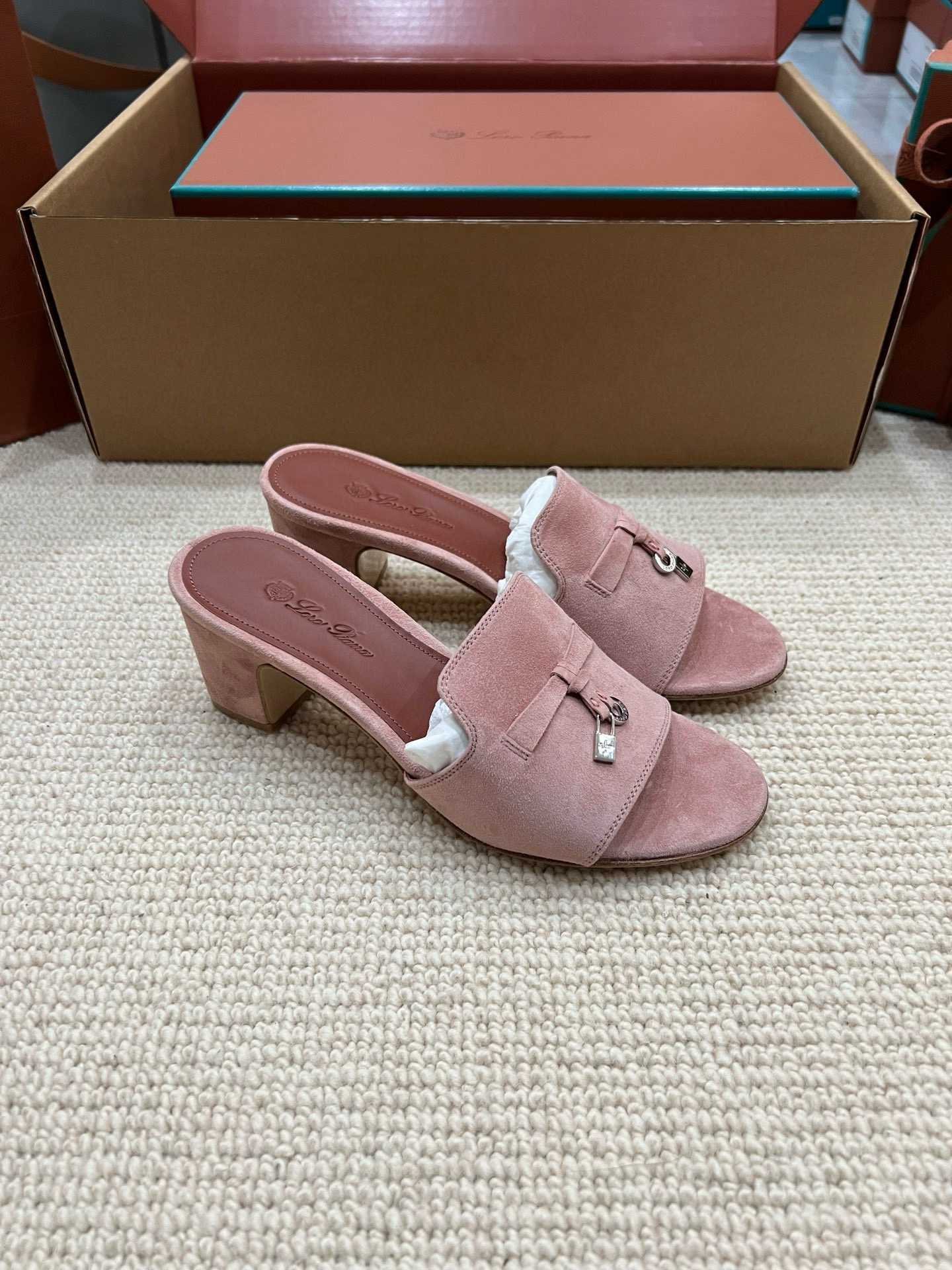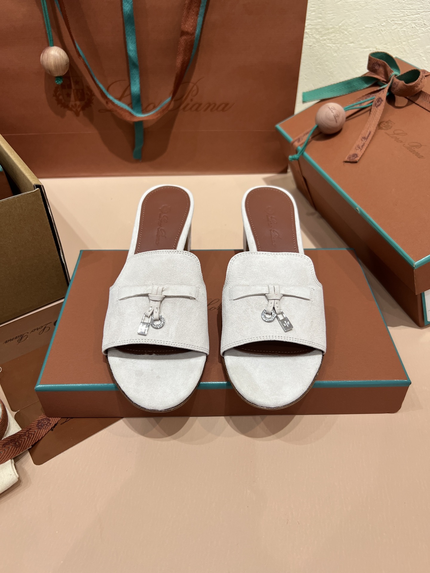NIGO Loro Piana Summer Charms Women's Mid Heel Sandals Sheepskin Temperament Solid Color Slippers Vacation Style Luxury Comfort Women's Shoes #nigo81118