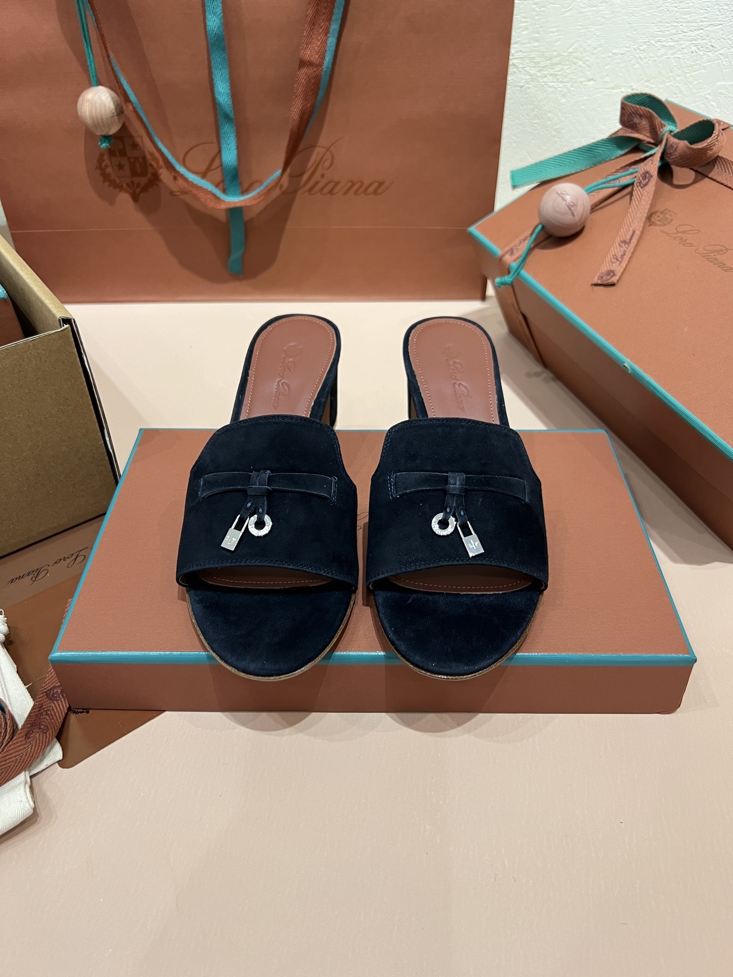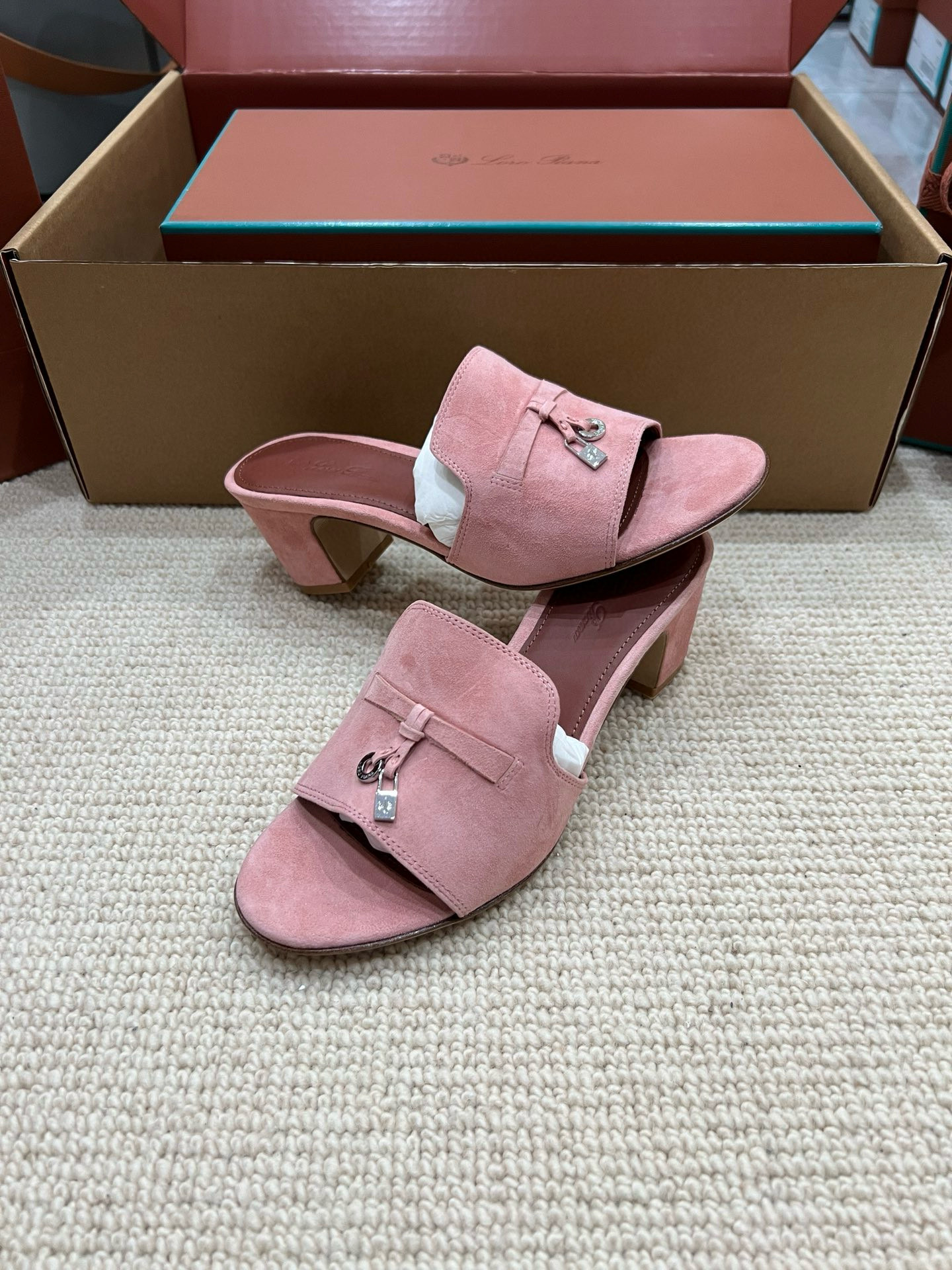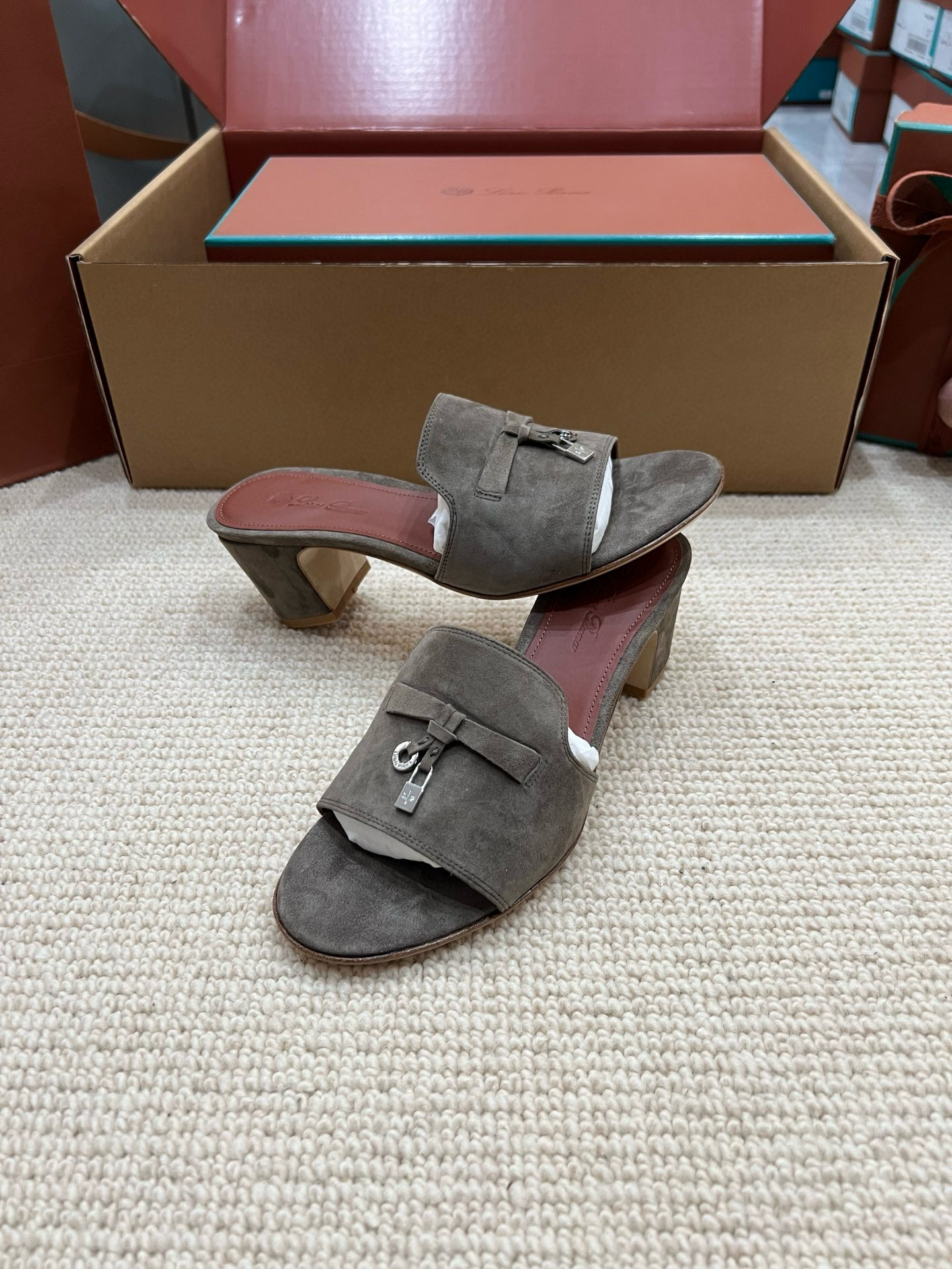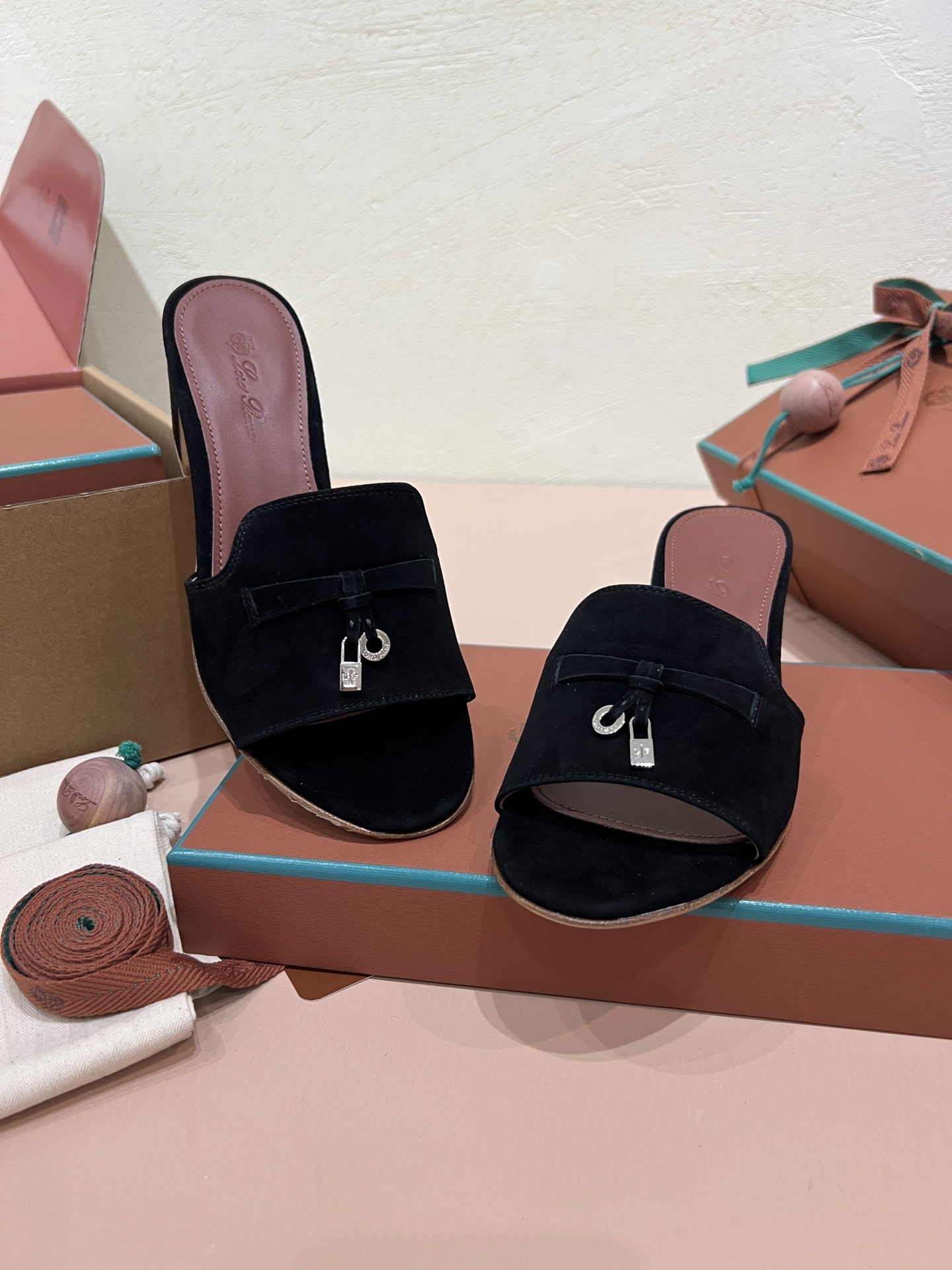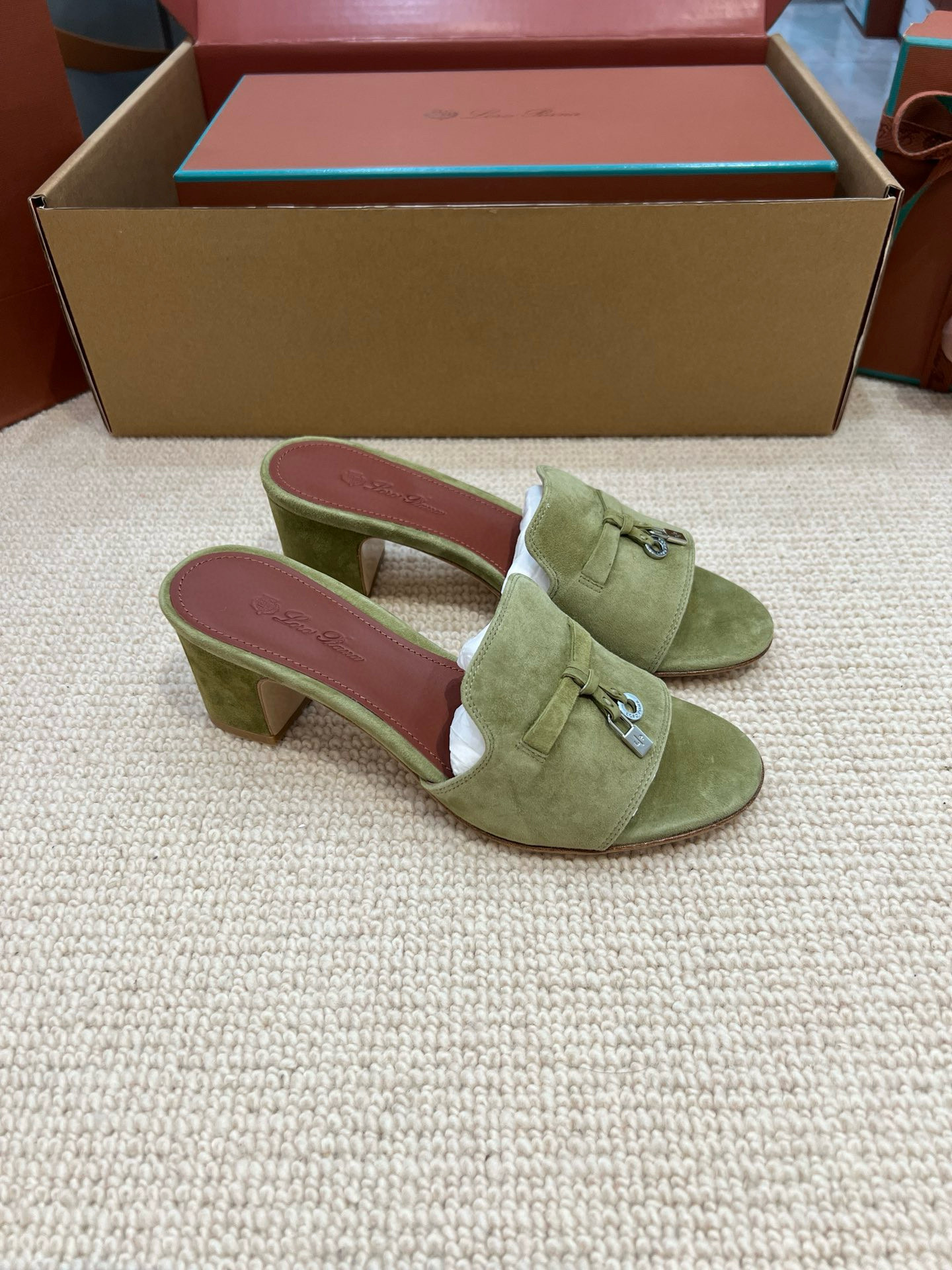 NIGO Loro Piana Summer Charms Women's Mid Heel Sandals Sheepskin Temperament Solid Color Slippers Vacation Style Luxury Comfort Women's Shoes #nigo81118