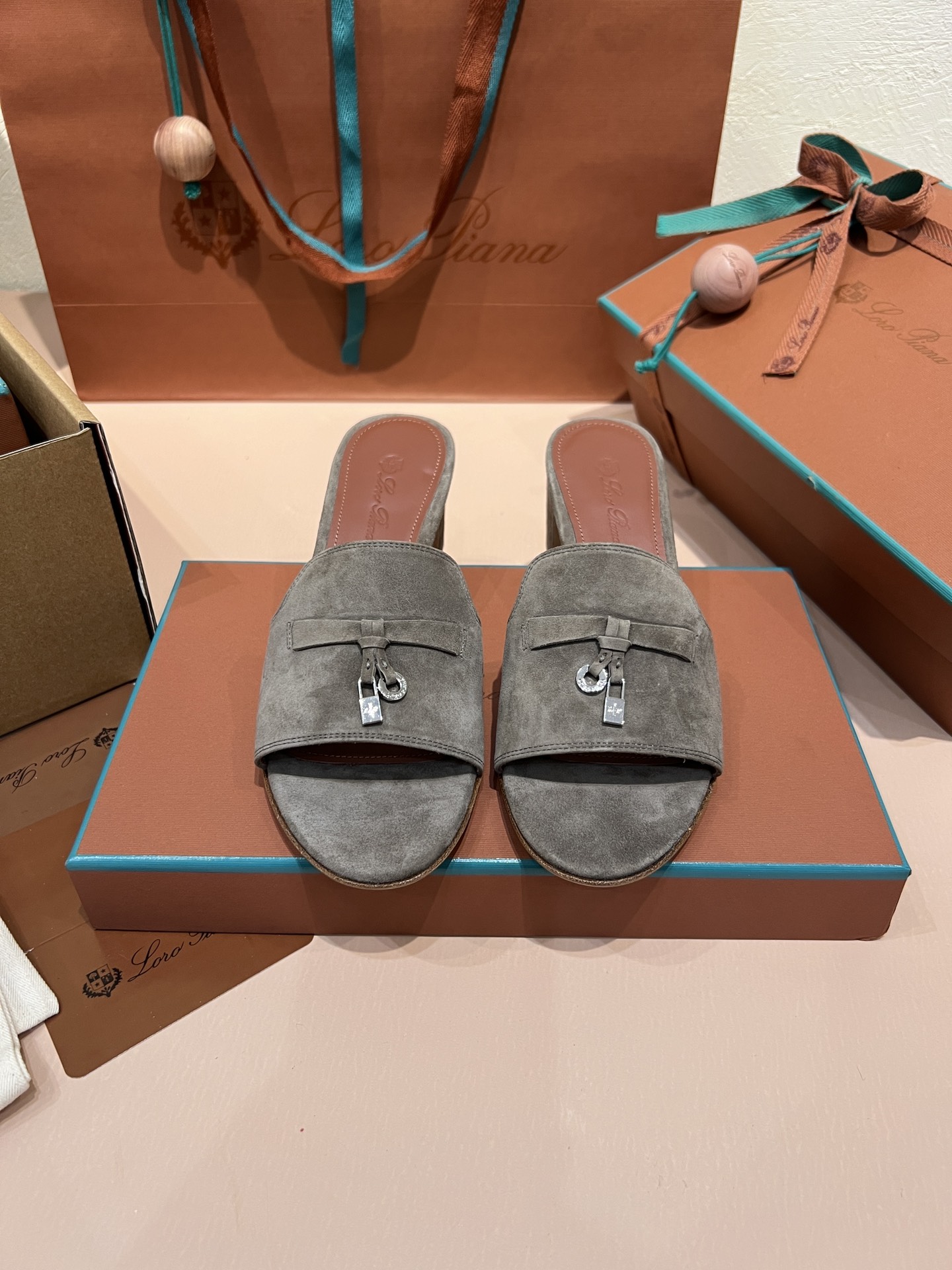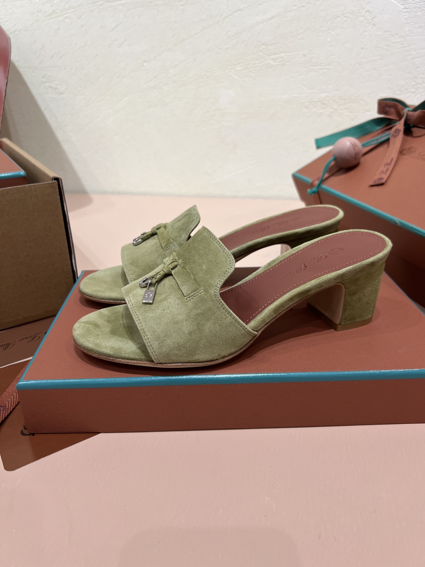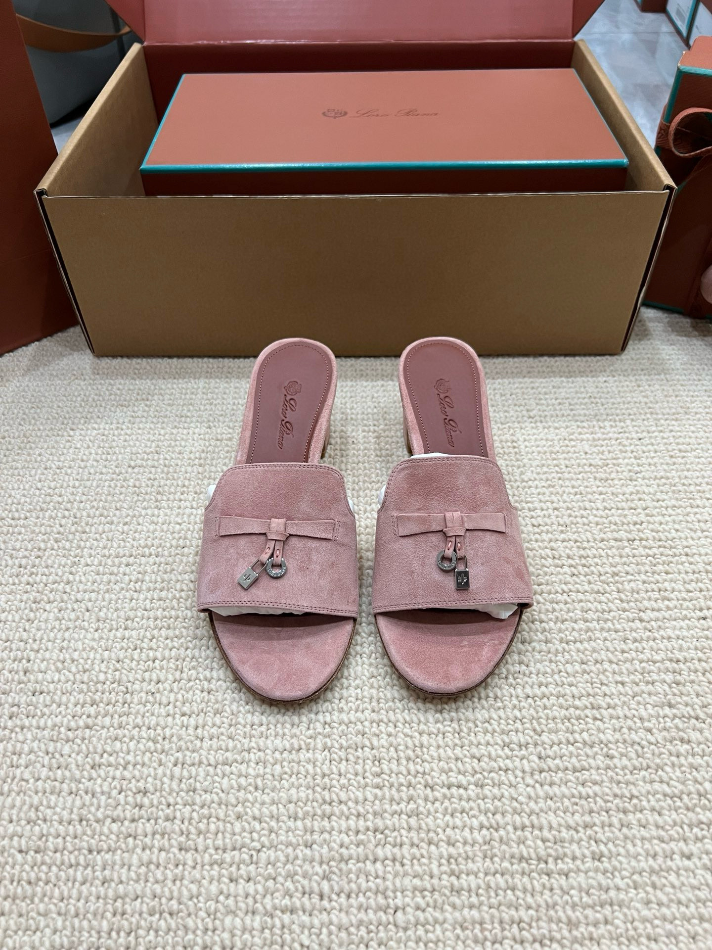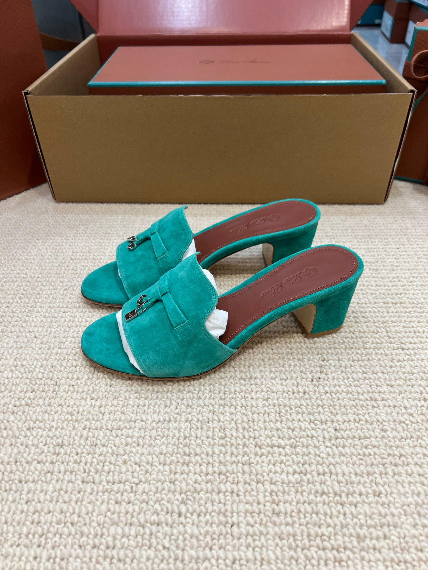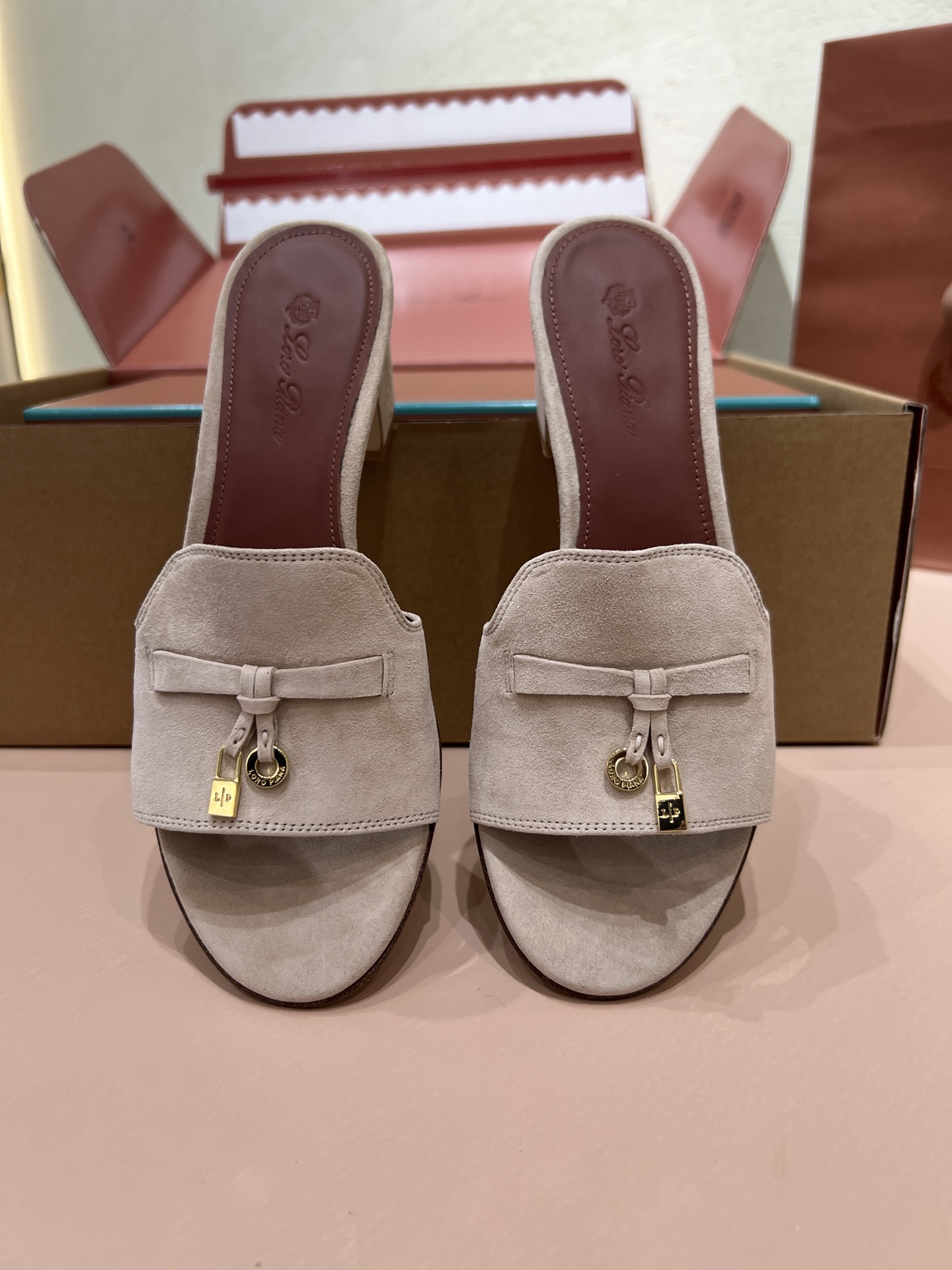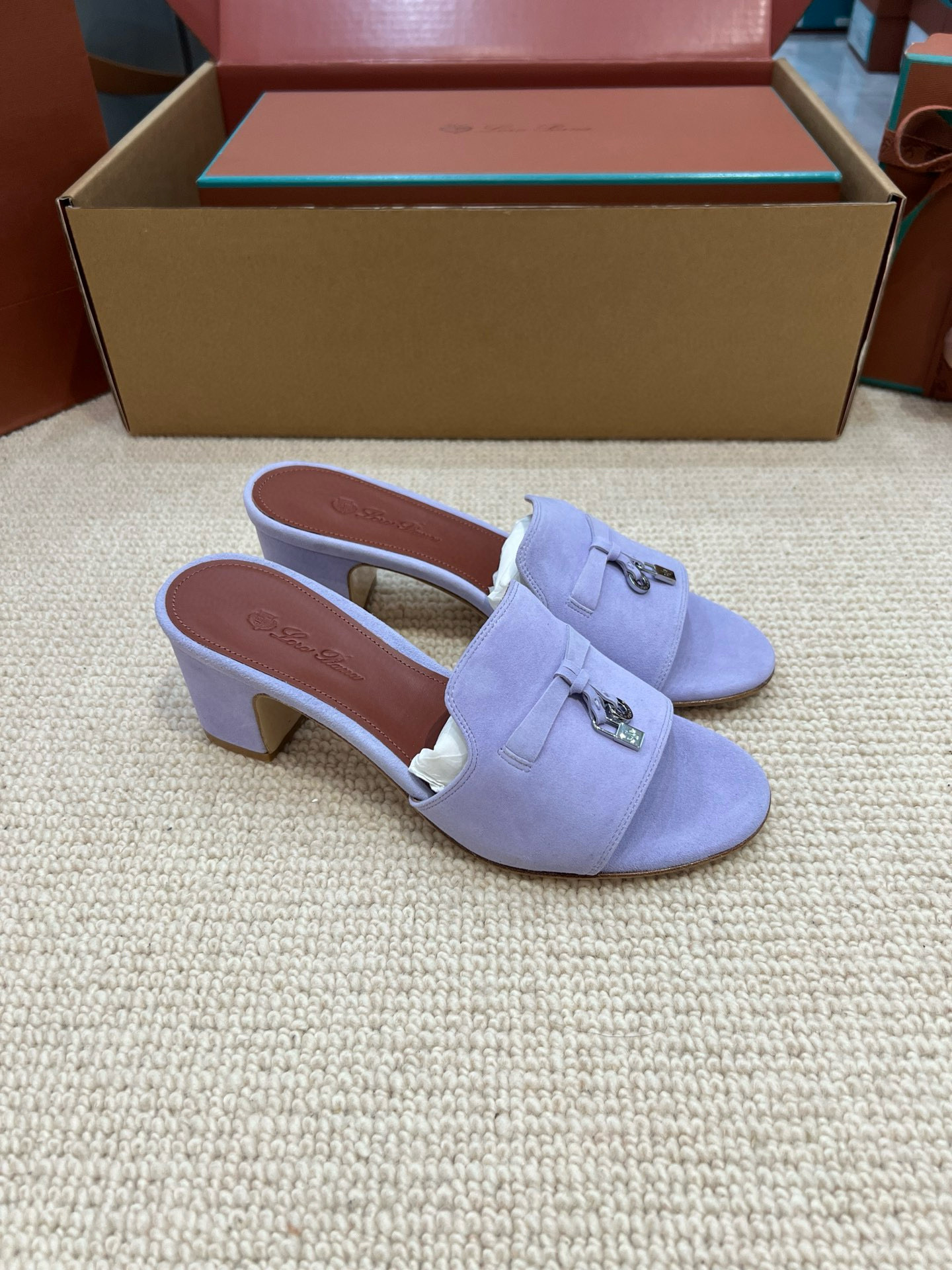 NIGO Loro Piana Summer Charms Women's Mid Heel Sandals Sheepskin Temperament Solid Color Slippers Vacation Style Luxury Comfort Women's Shoes #nigo81118