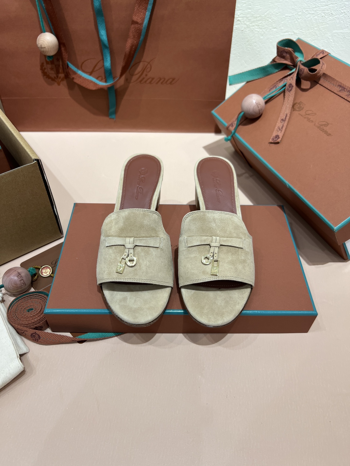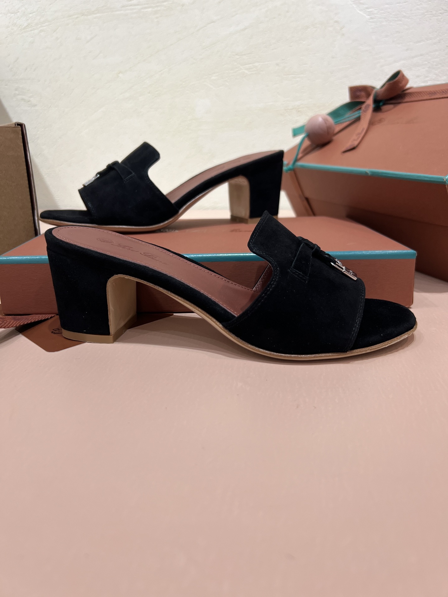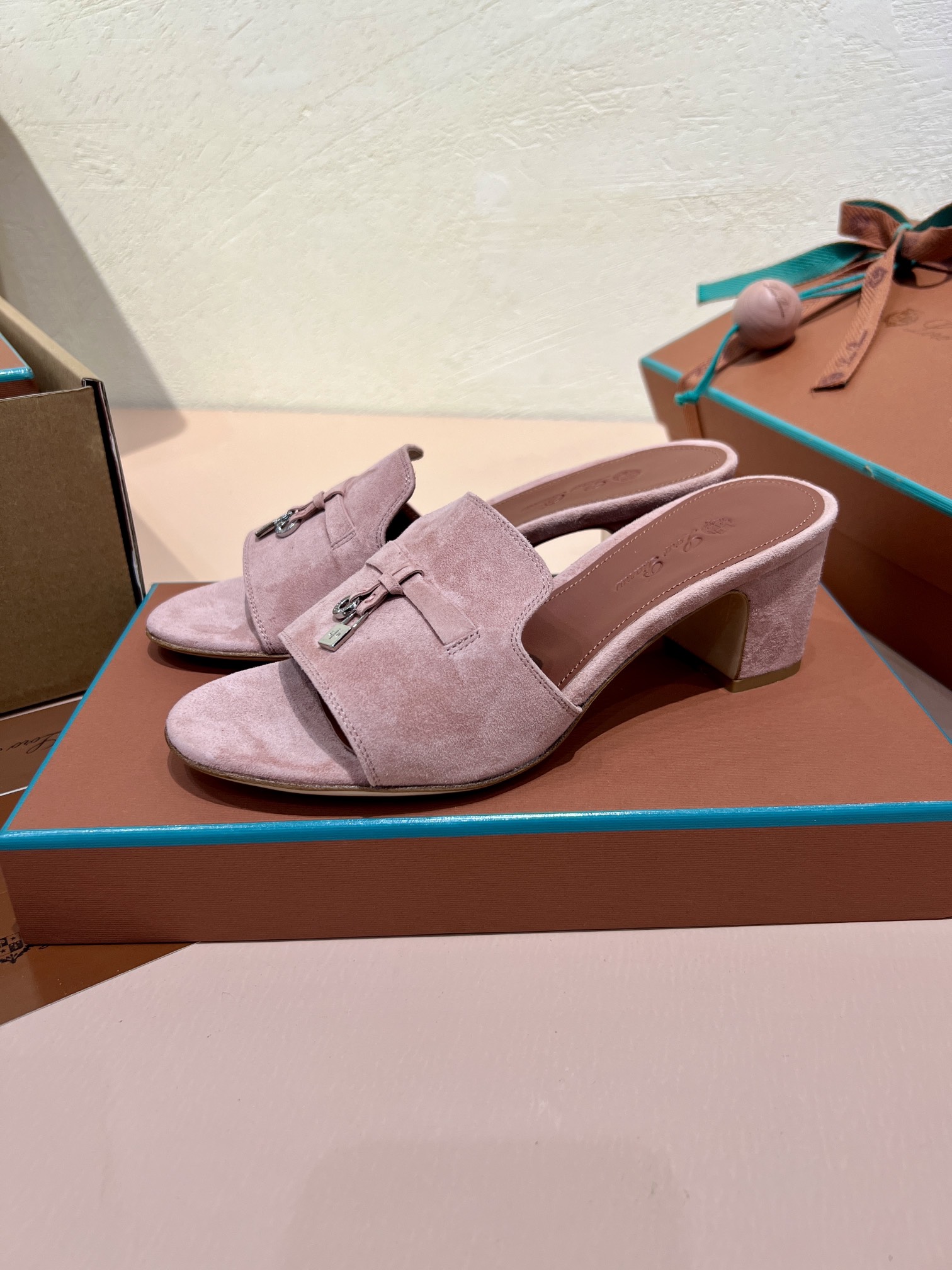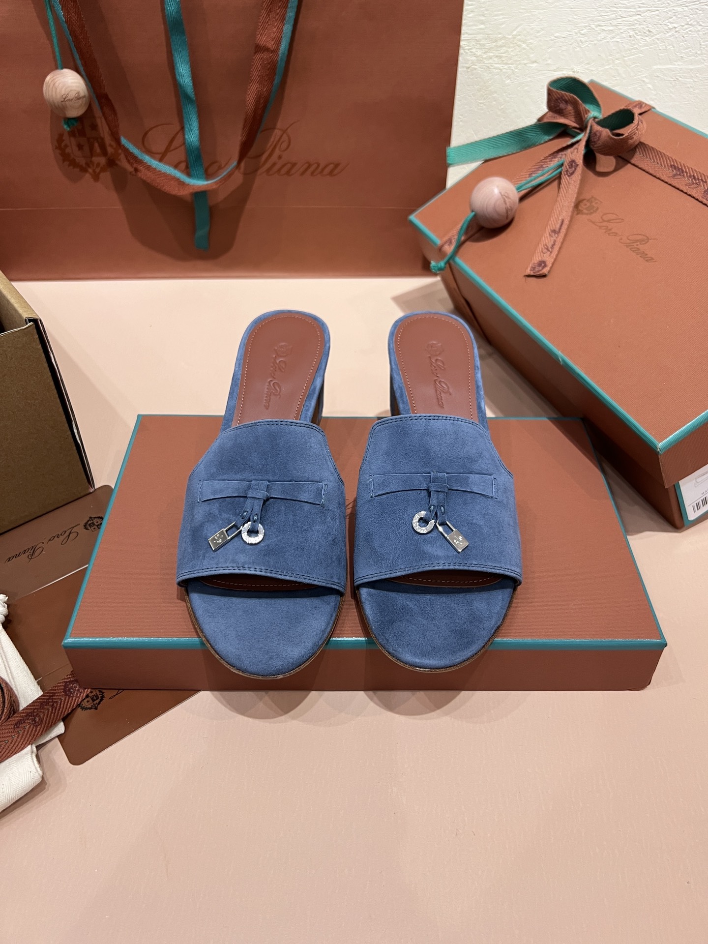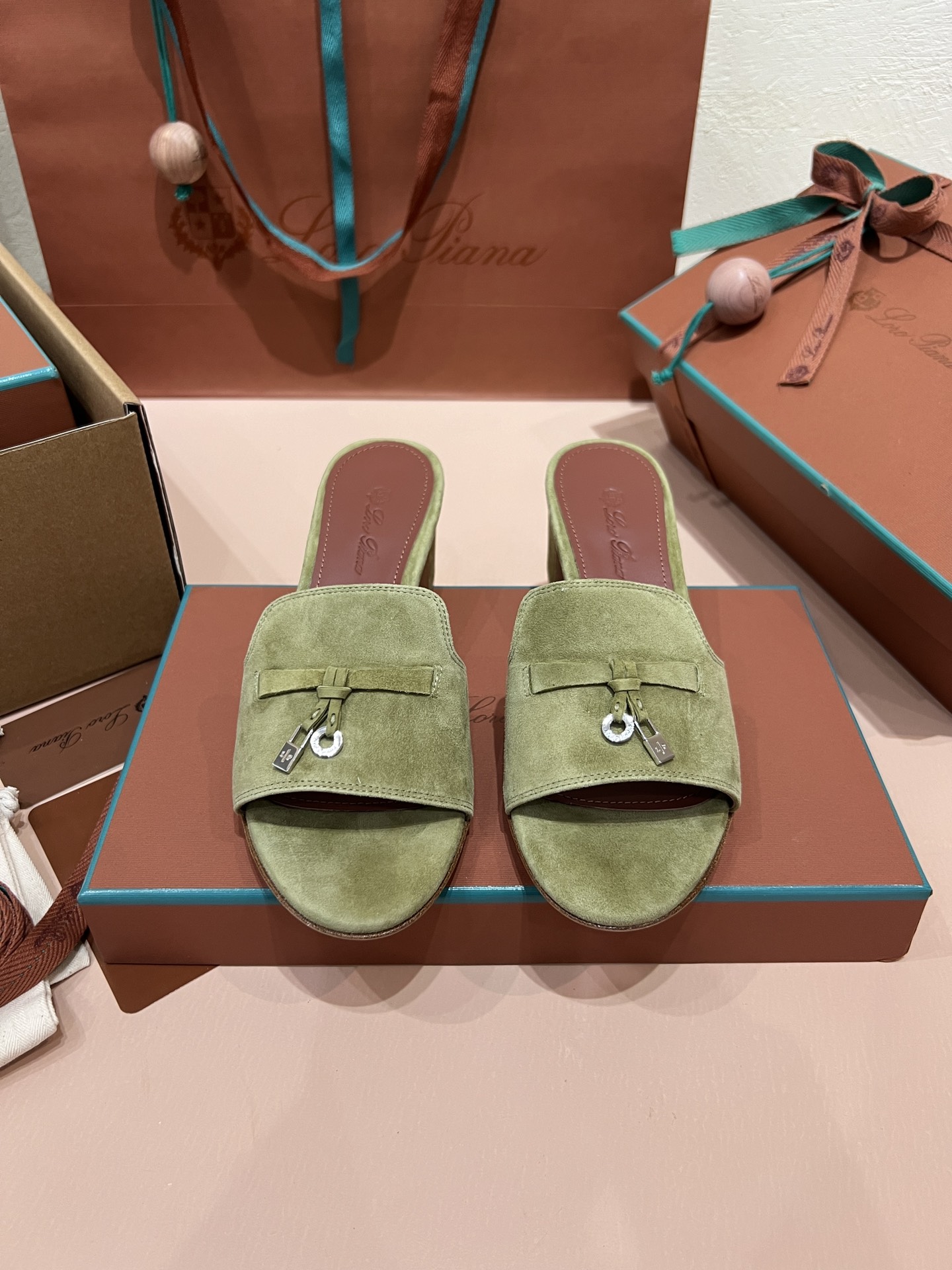 NIGO Loro Piana Summer Charms Women's Mid Heel Sandals Sheepskin Temperament Solid Color Slippers Vacation Style Luxury Comfort Women's Shoes #nigo81118