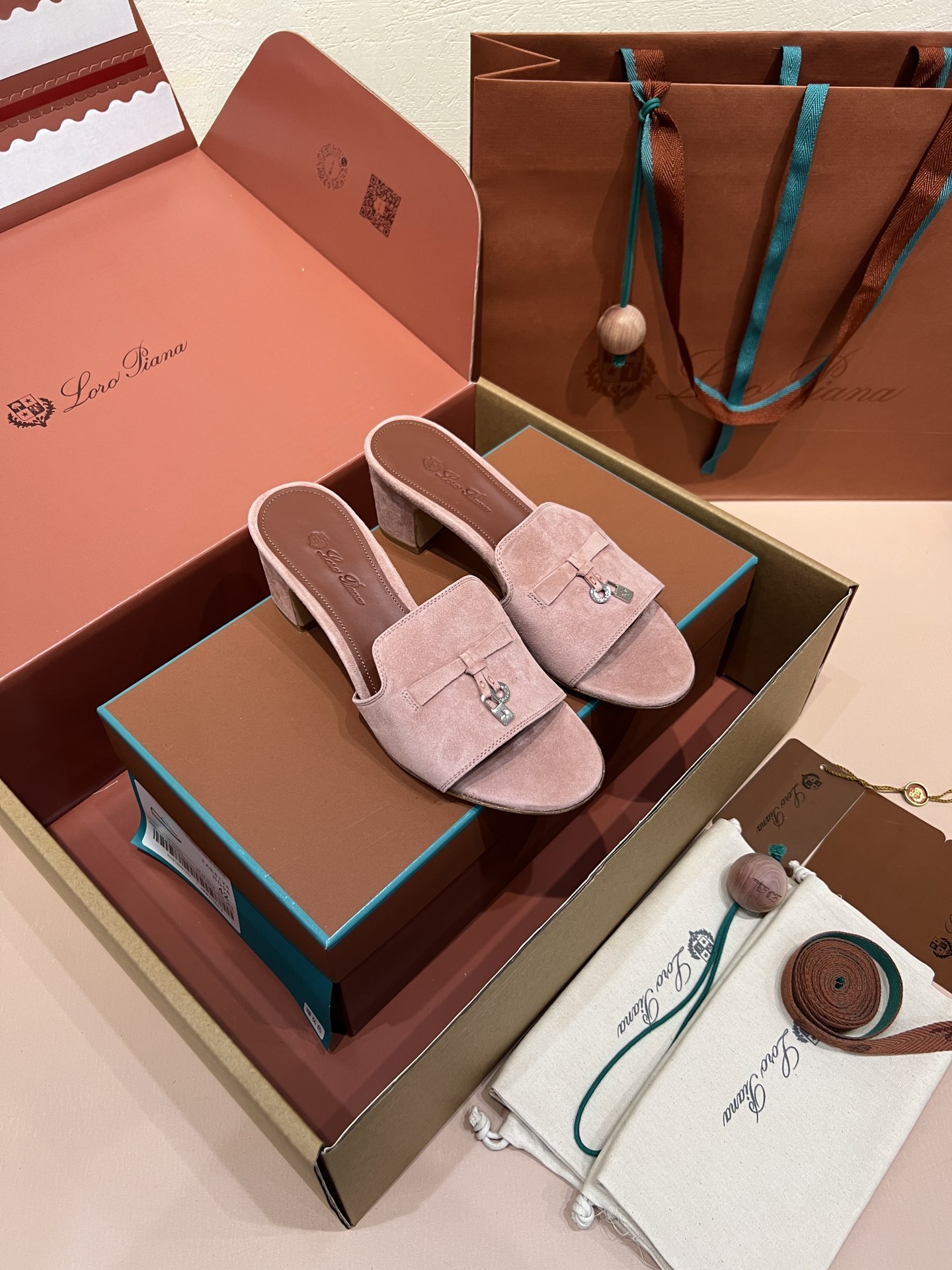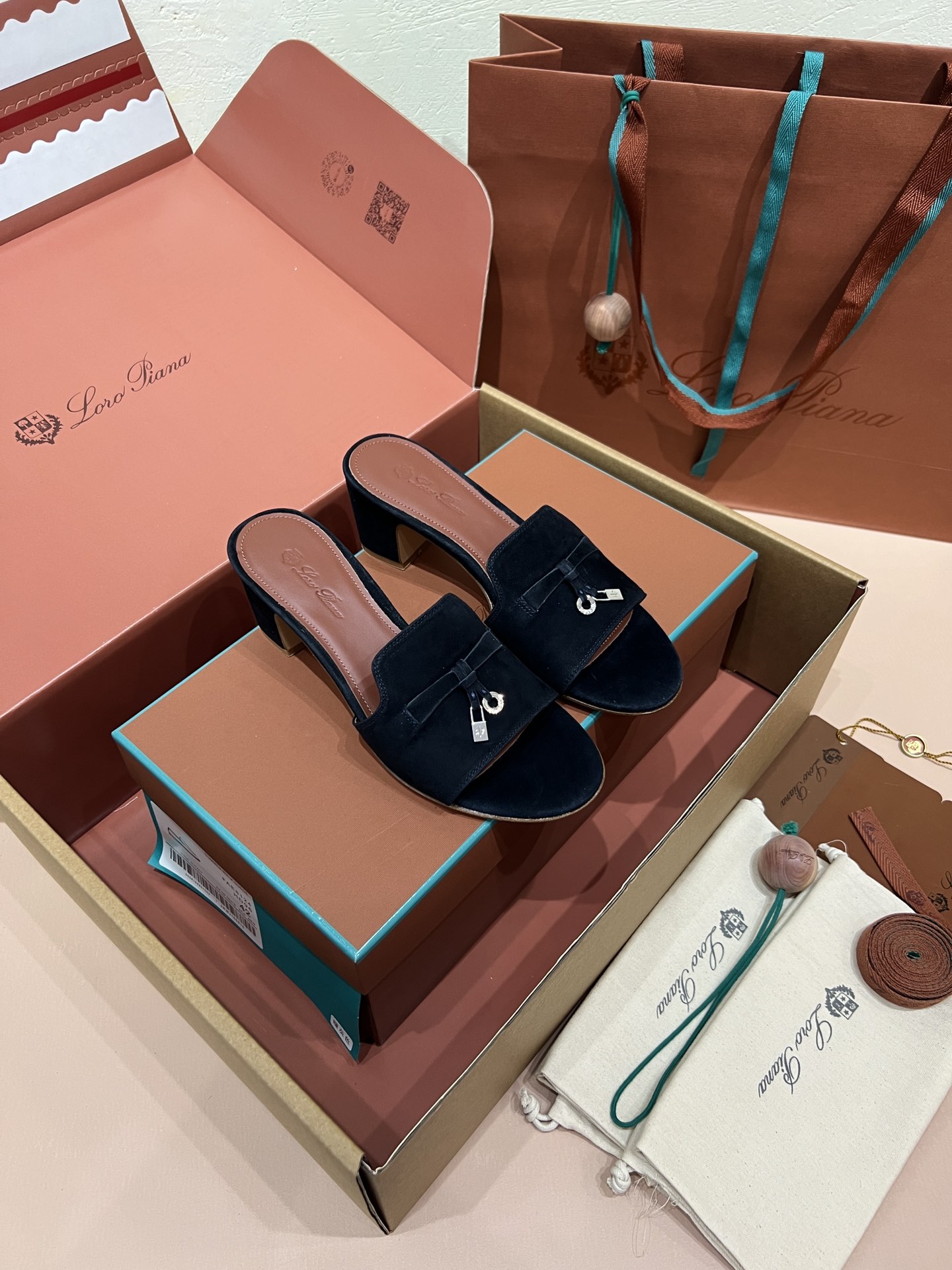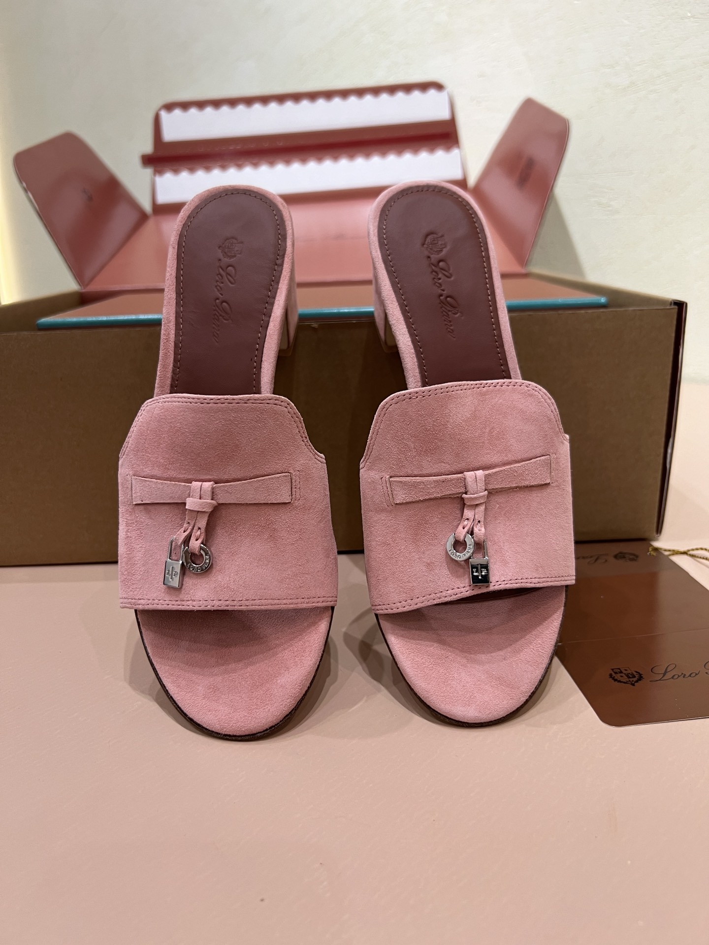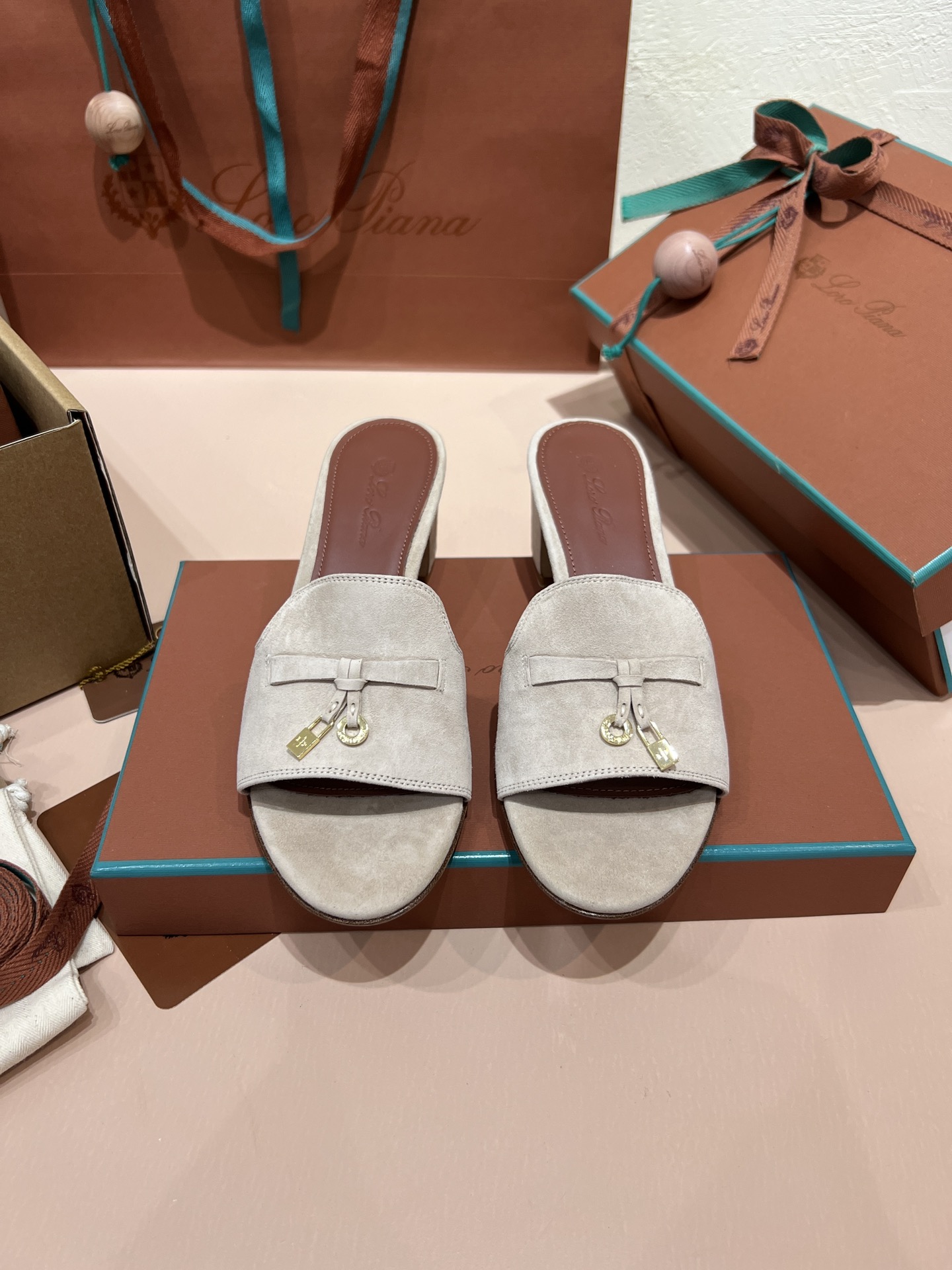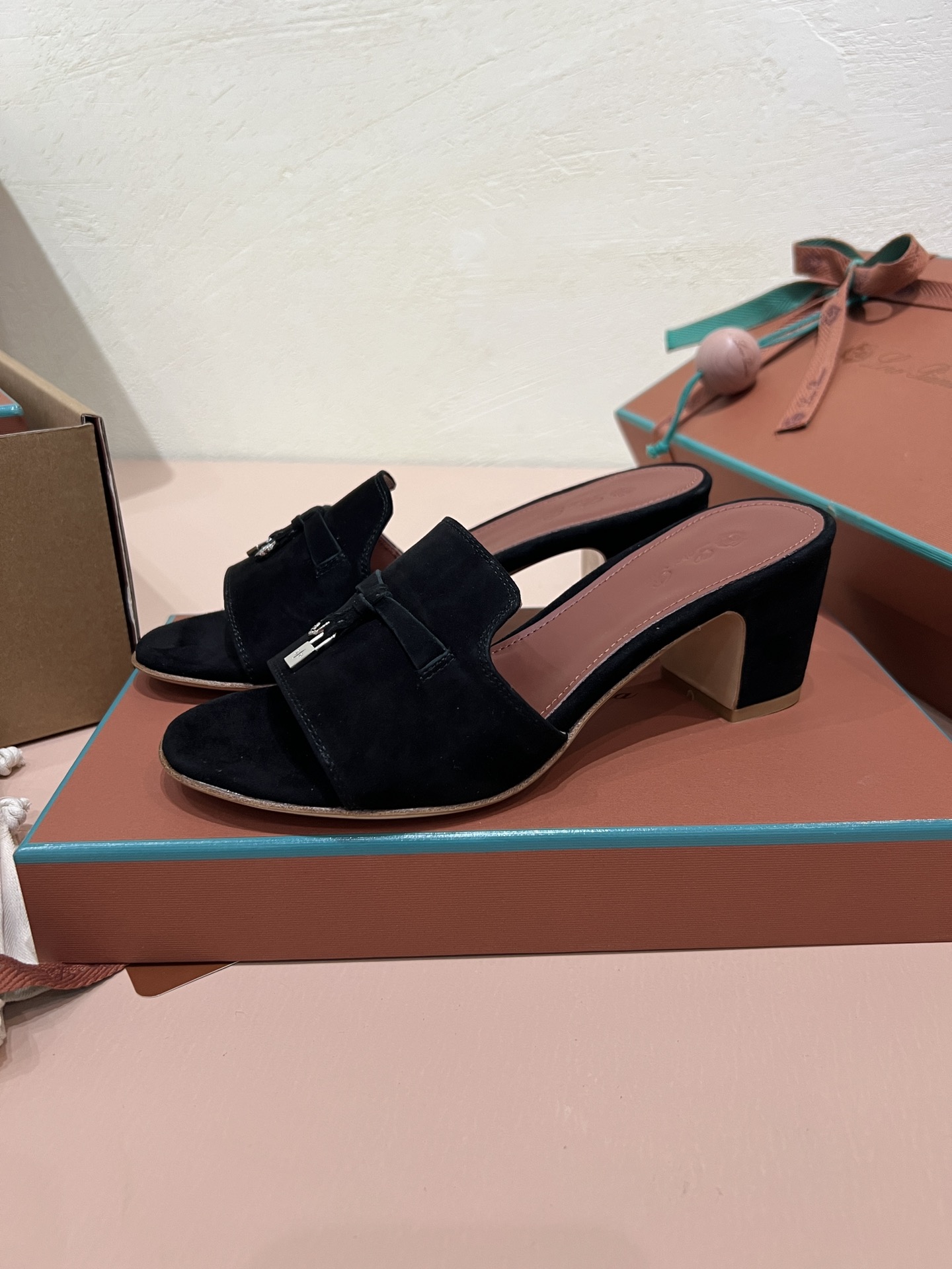 NIGO Loro Piana Summer Charms Women's Mid Heel Sandals Sheepskin Temperament Solid Color Slippers Vacation Style Luxury Comfort Women's Shoes #nigo81118