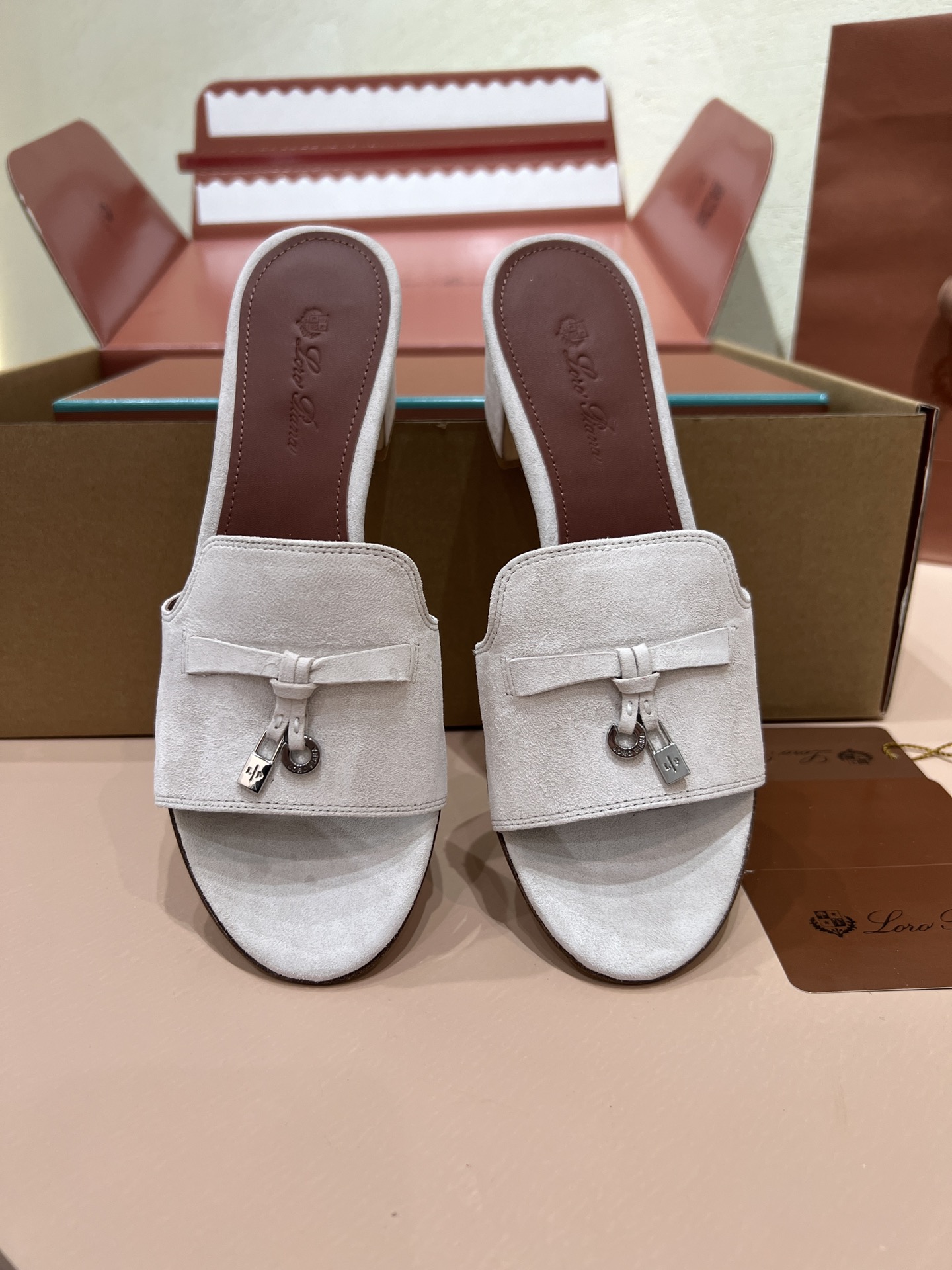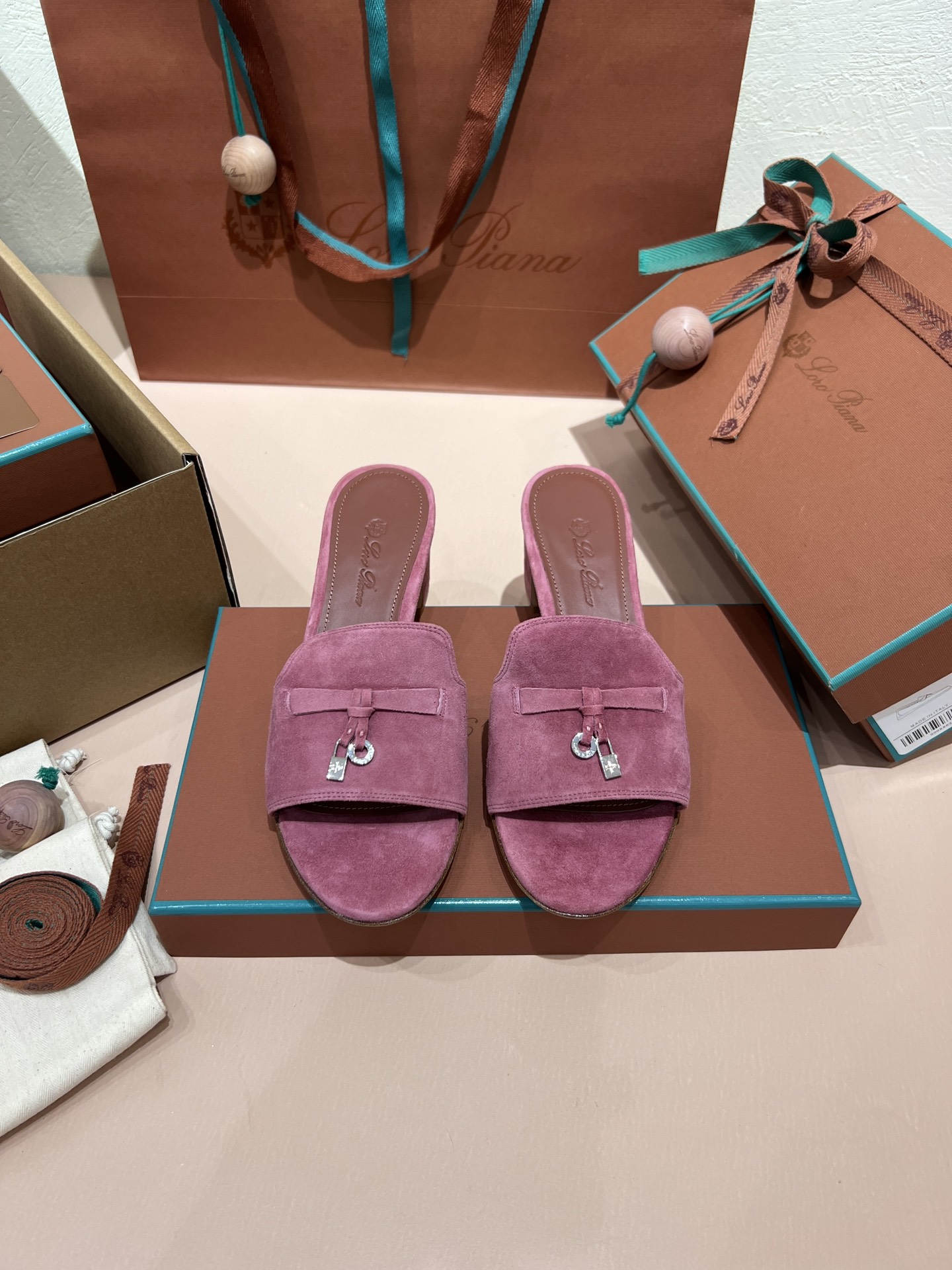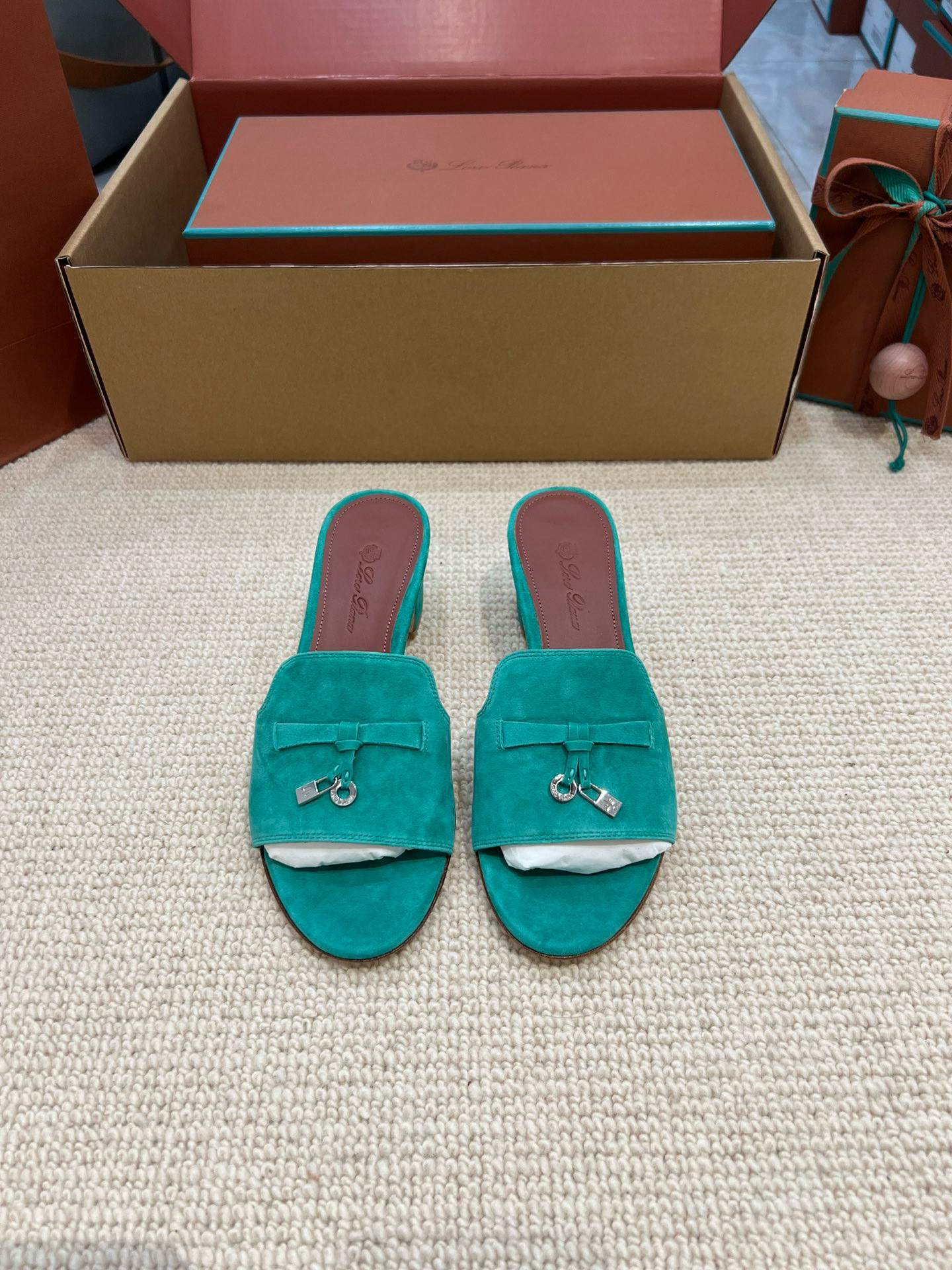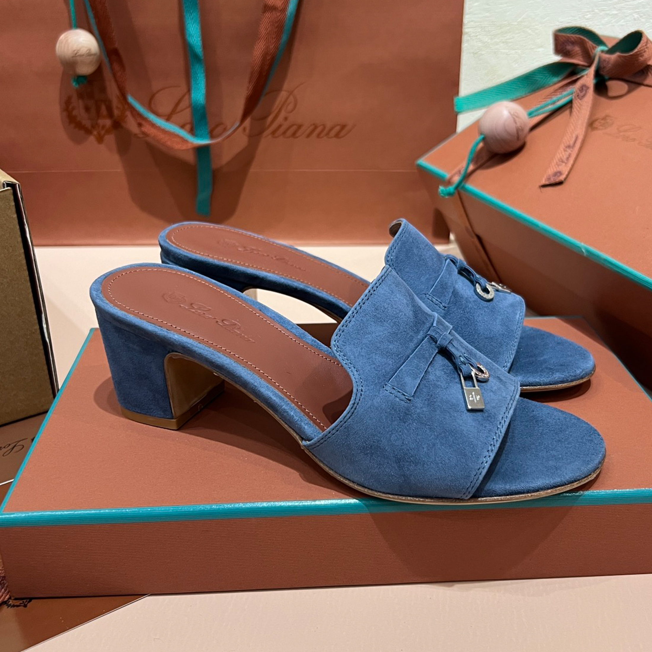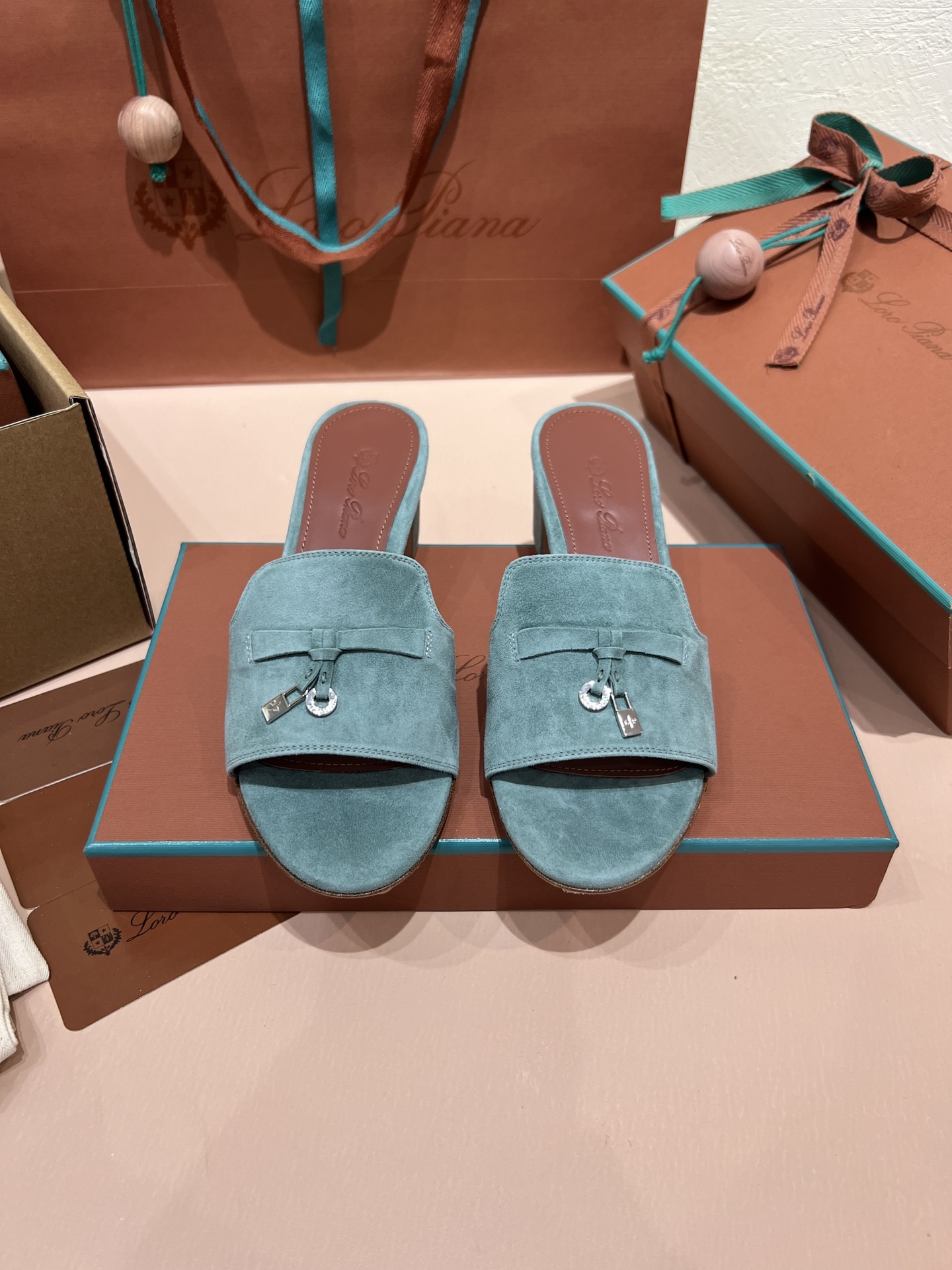 NIGO Loro Piana Summer Charms Women's Mid Heel Sandals Sheepskin Temperament Solid Color Slippers Vacation Style Luxury Comfort Women's Shoes #nigo81118