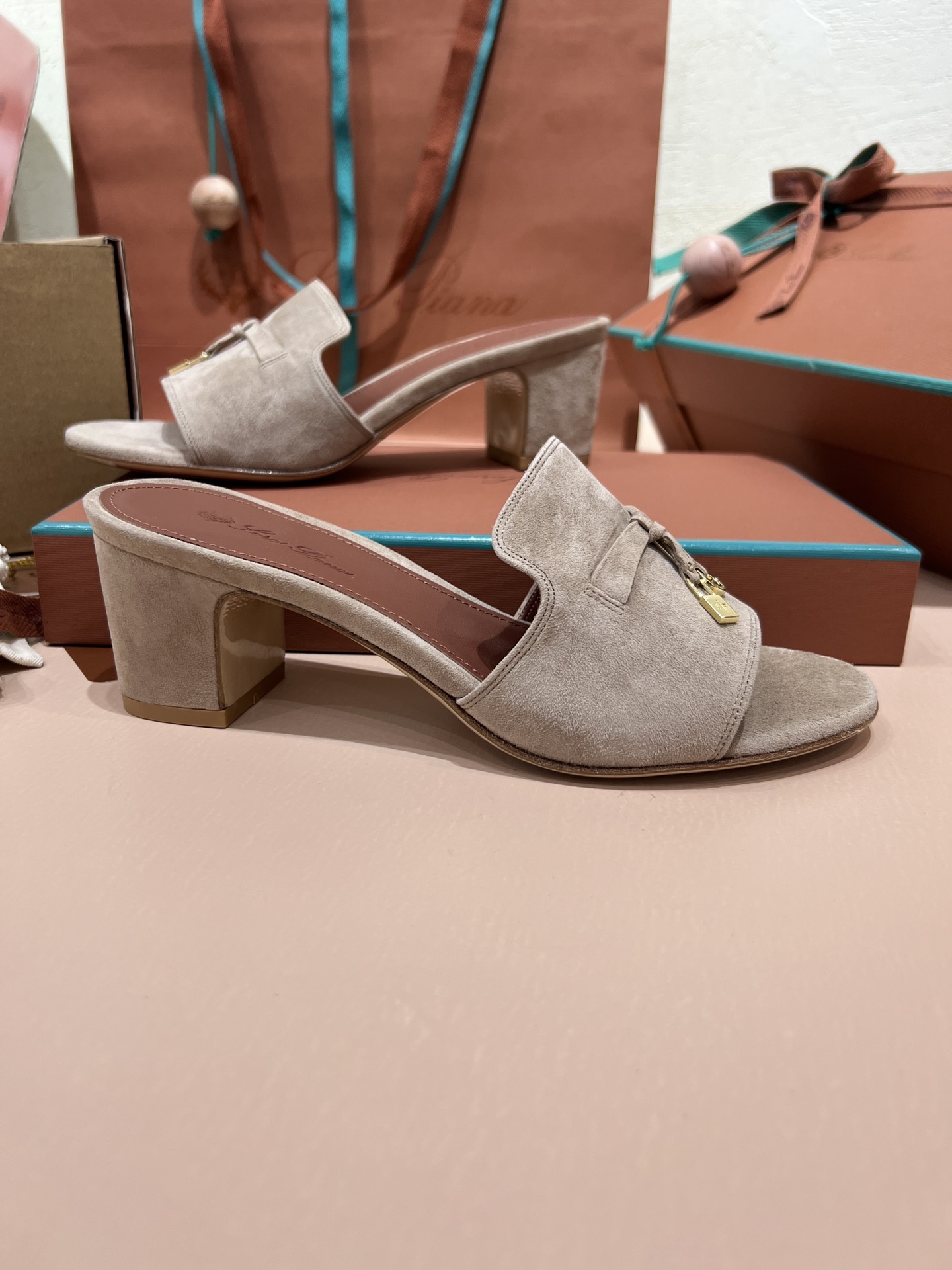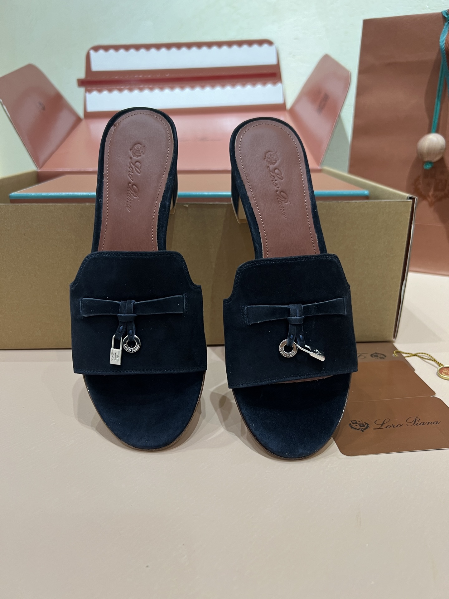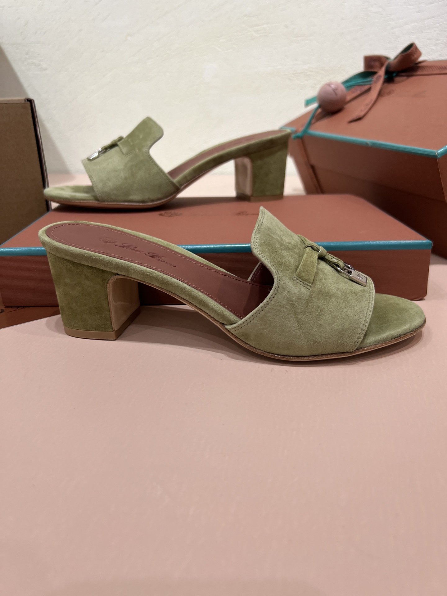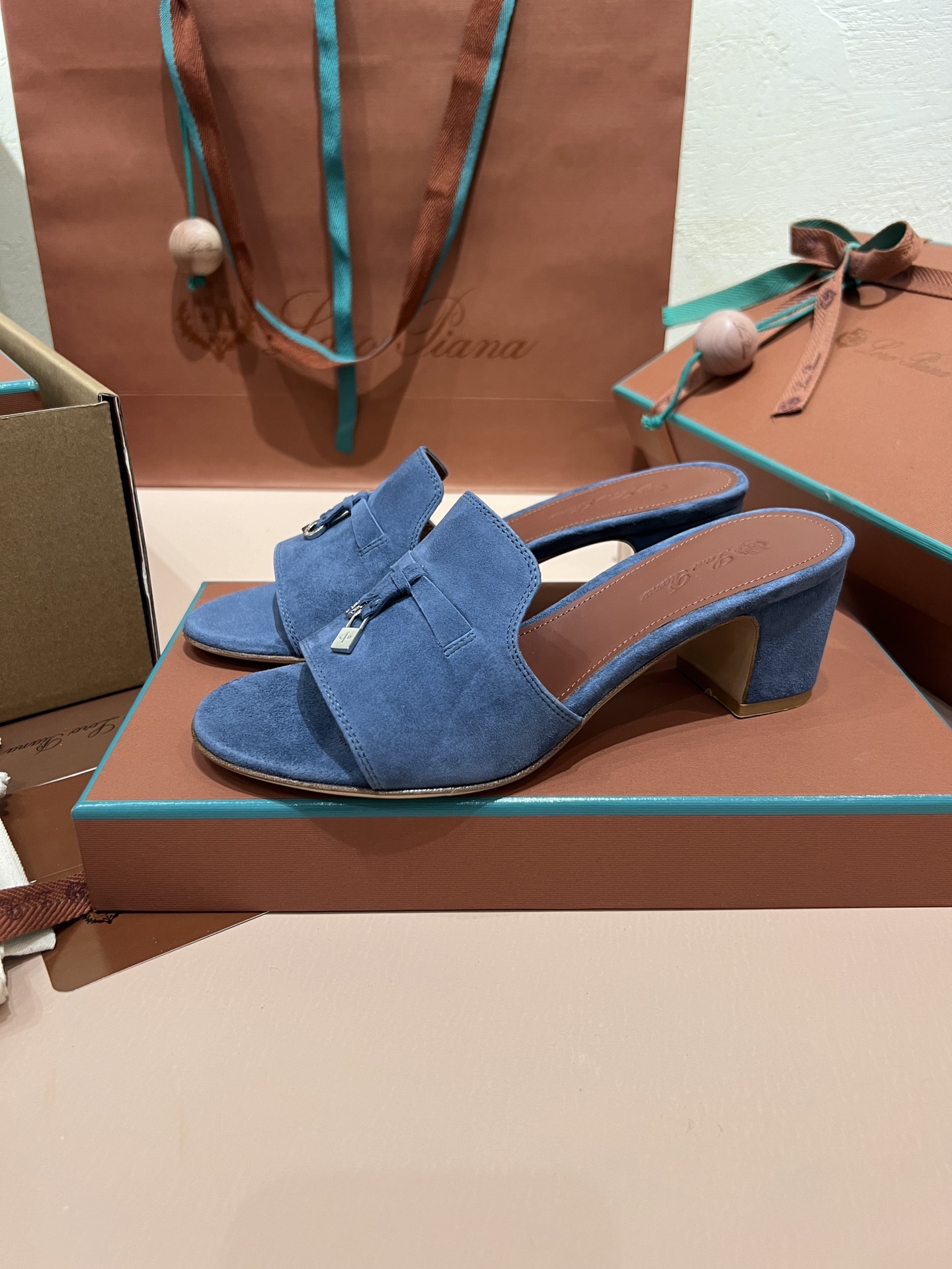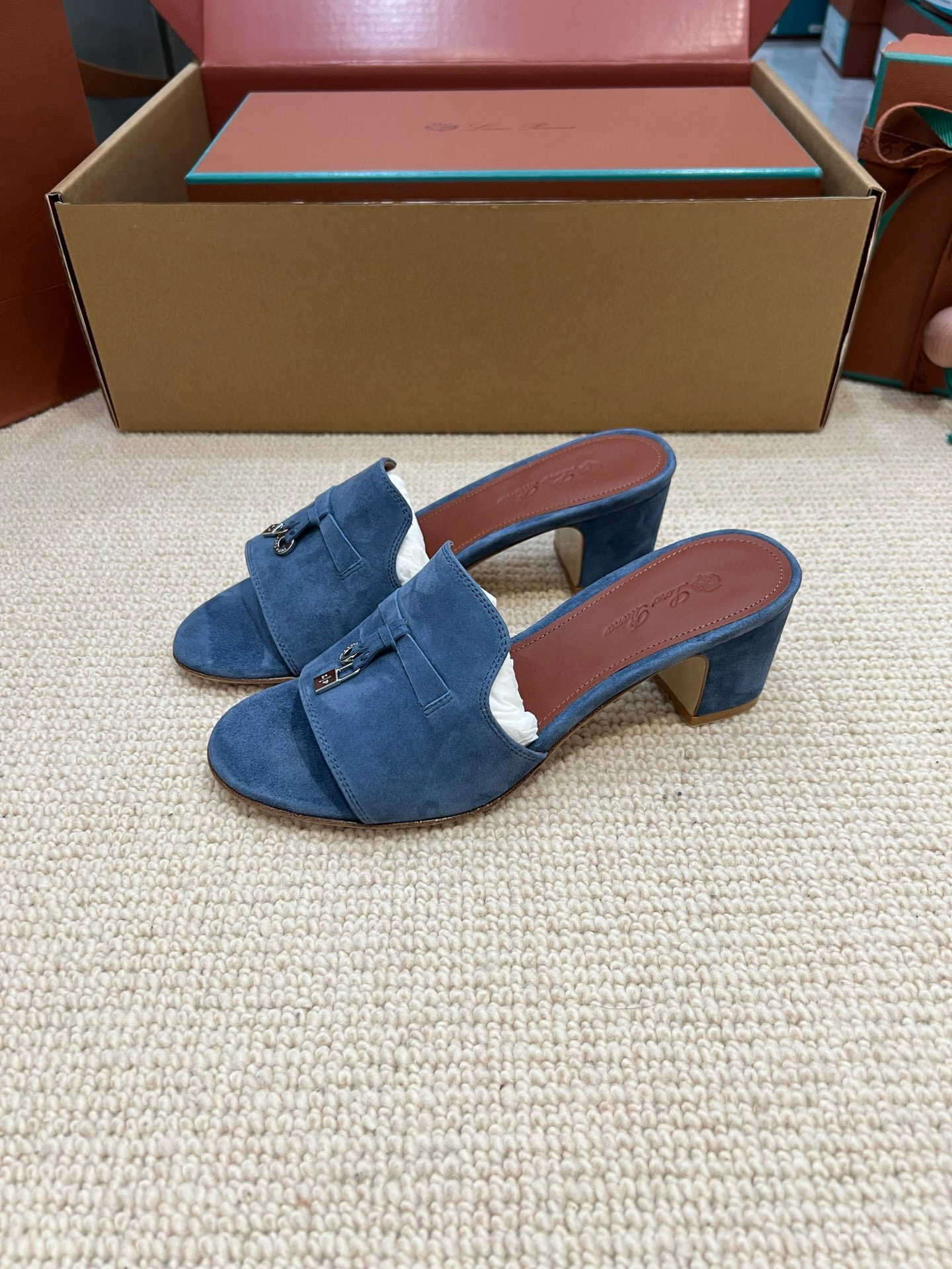 NIGO Loro Piana Summer Charms Women's Mid Heel Sandals Sheepskin Temperament Solid Color Slippers Vacation Style Luxury Comfort Women's Shoes #nigo81118