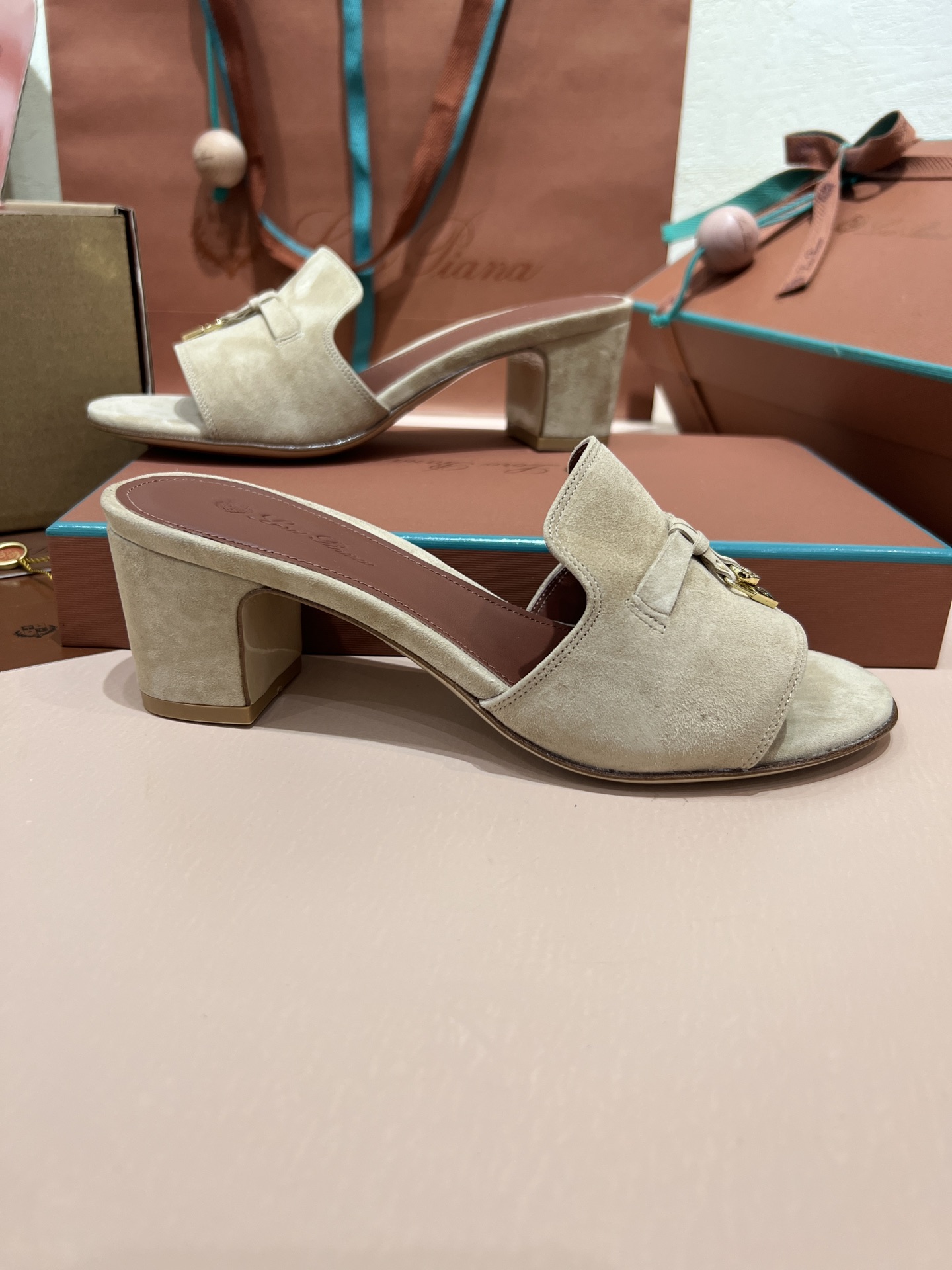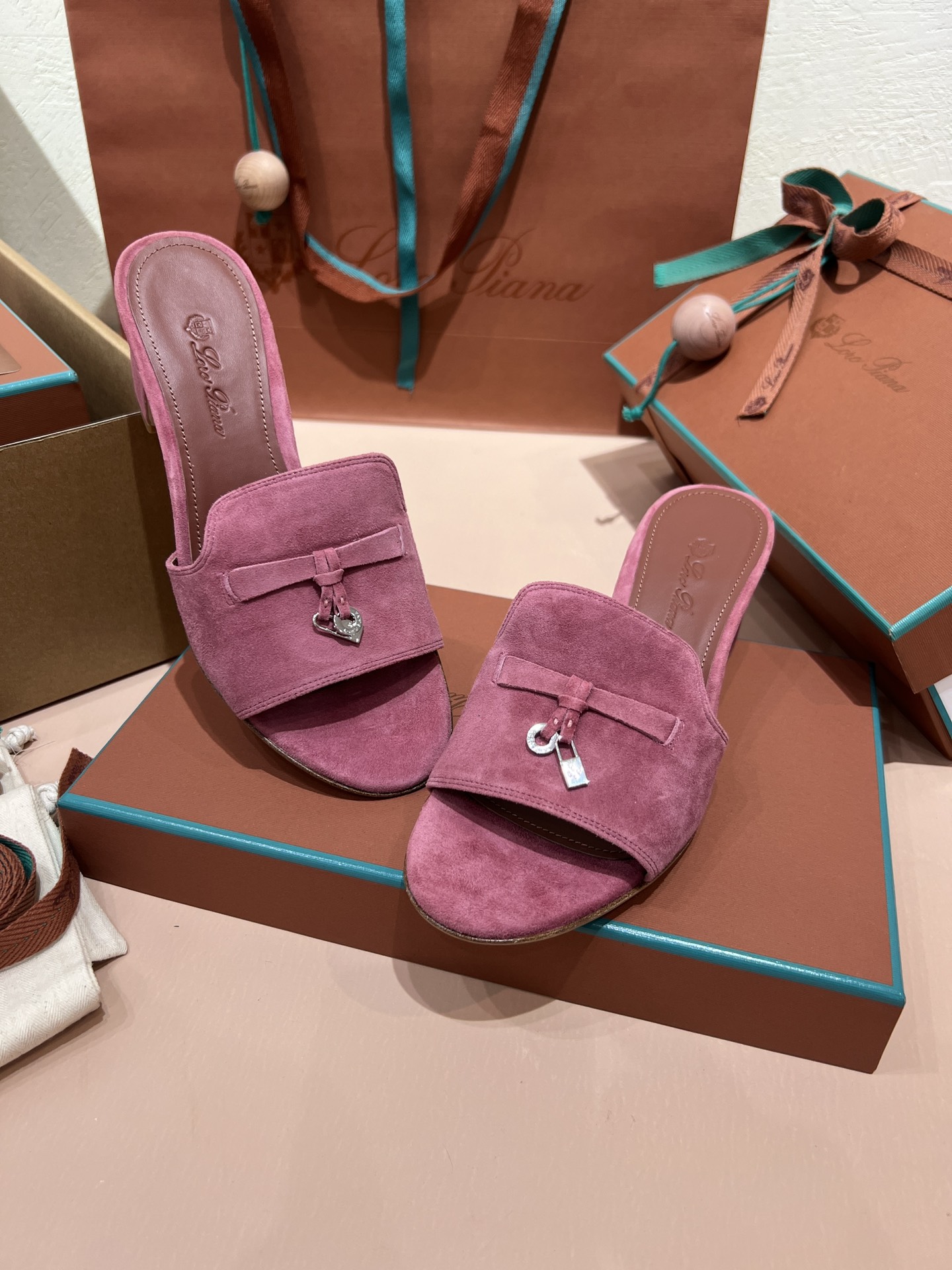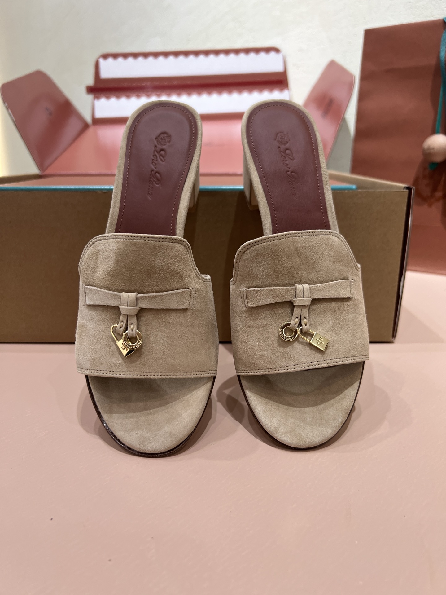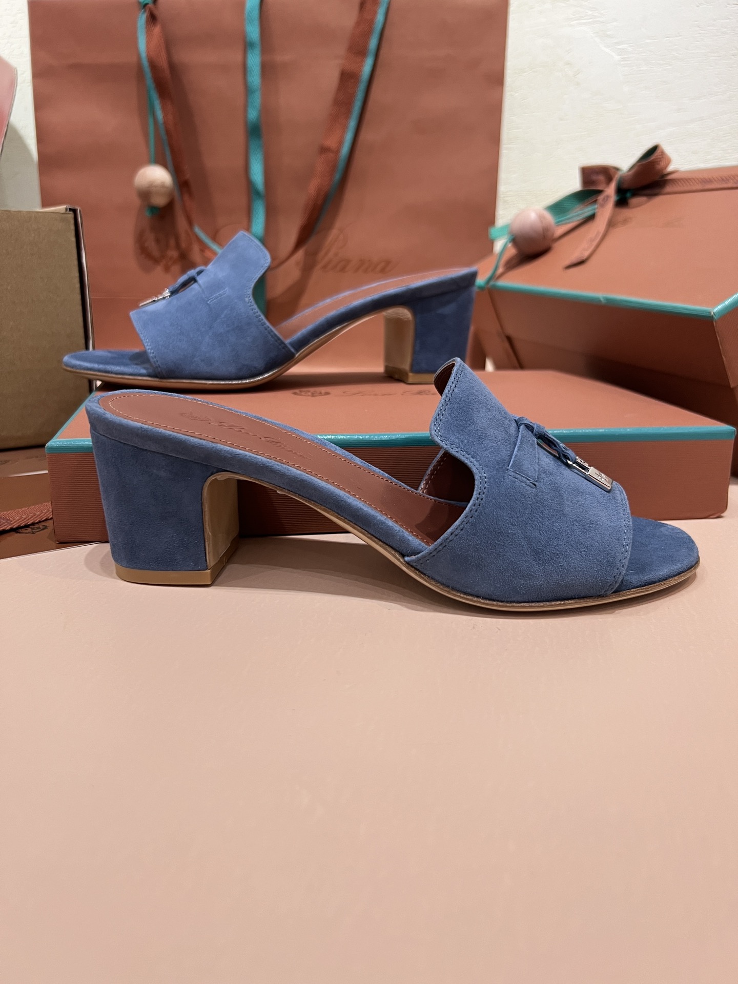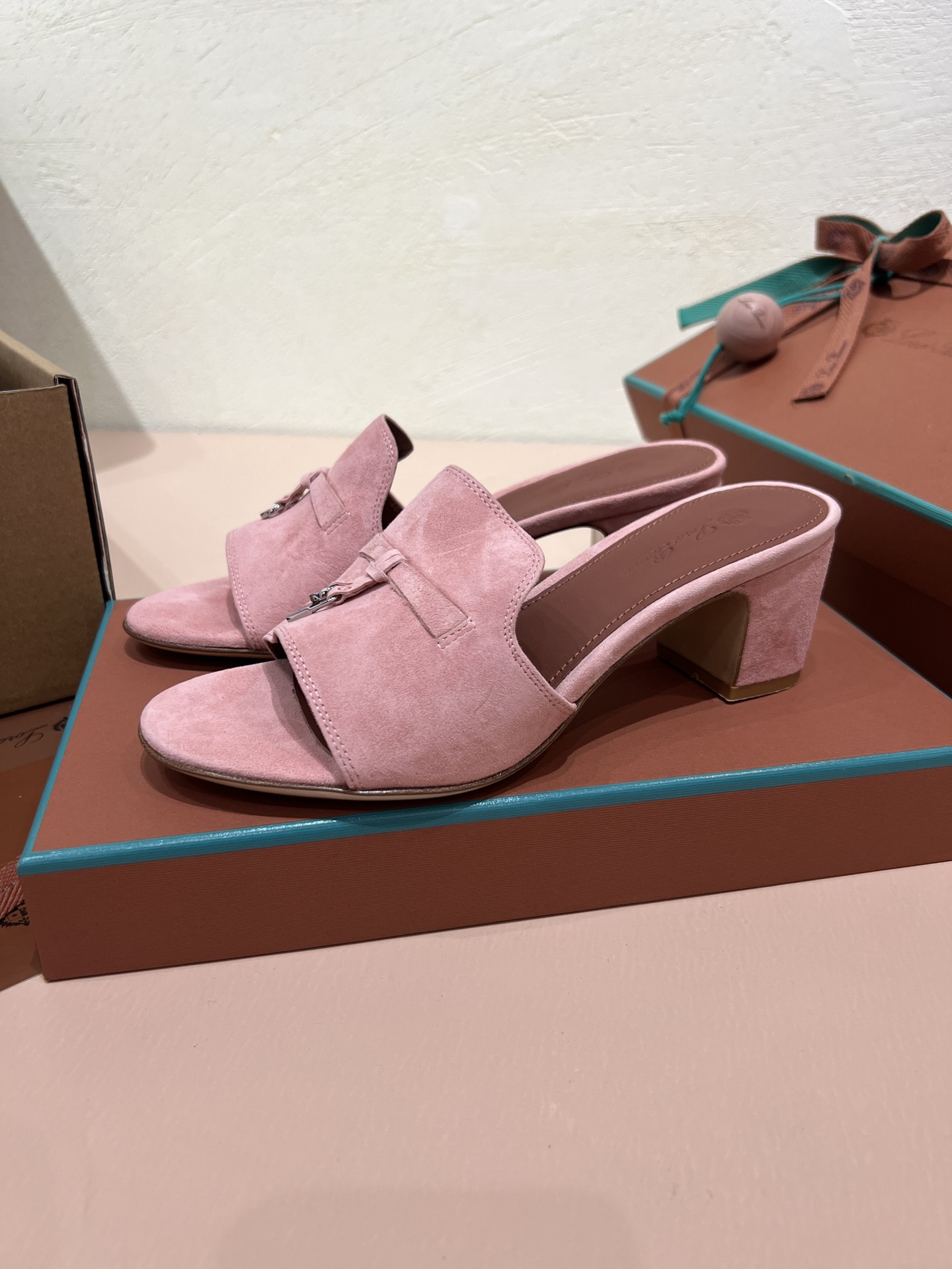 NIGO Loro Piana Summer Charms Women's Mid Heel Sandals Sheepskin Temperament Solid Color Slippers Vacation Style Luxury Comfort Women's Shoes #nigo81118