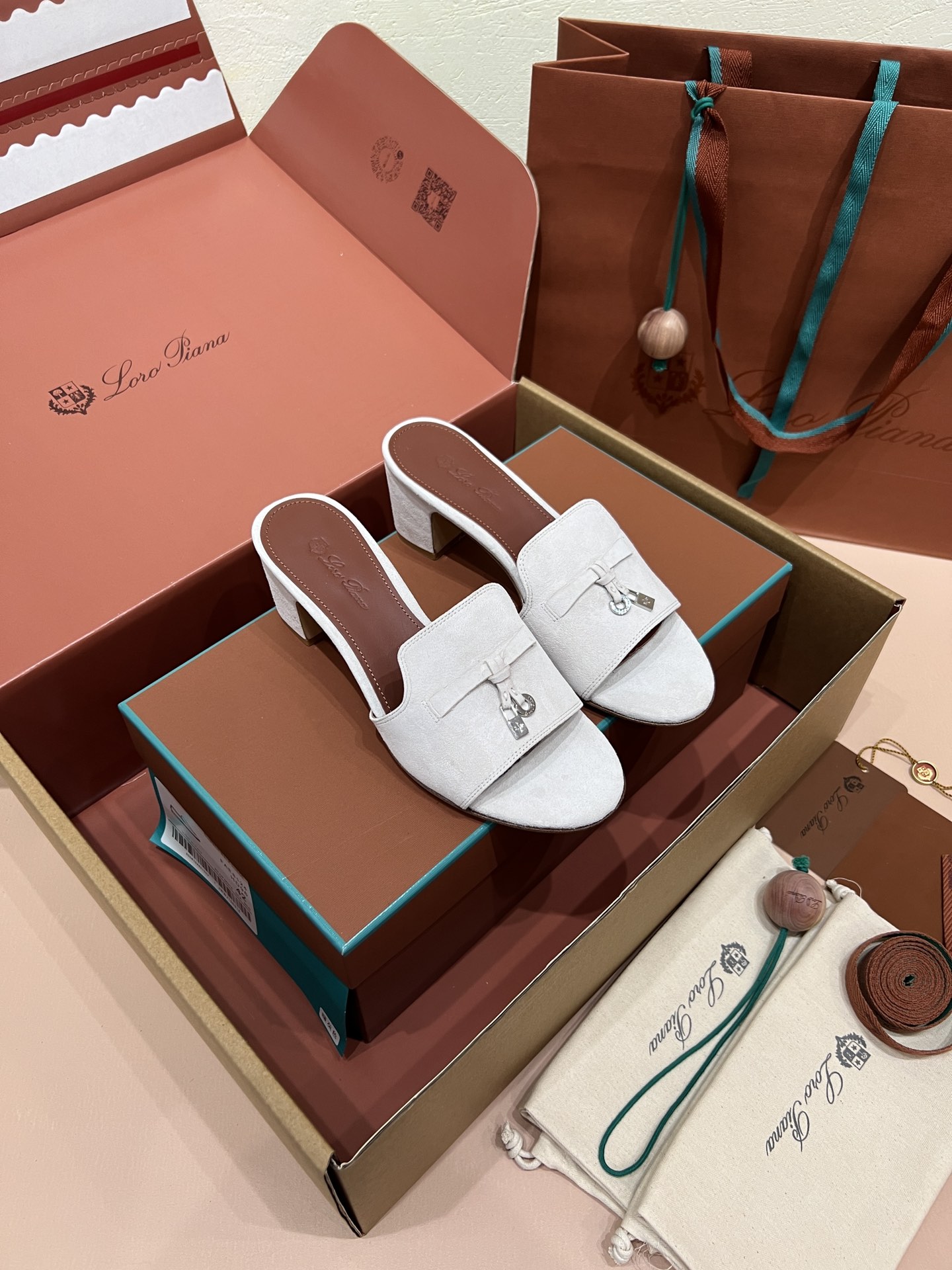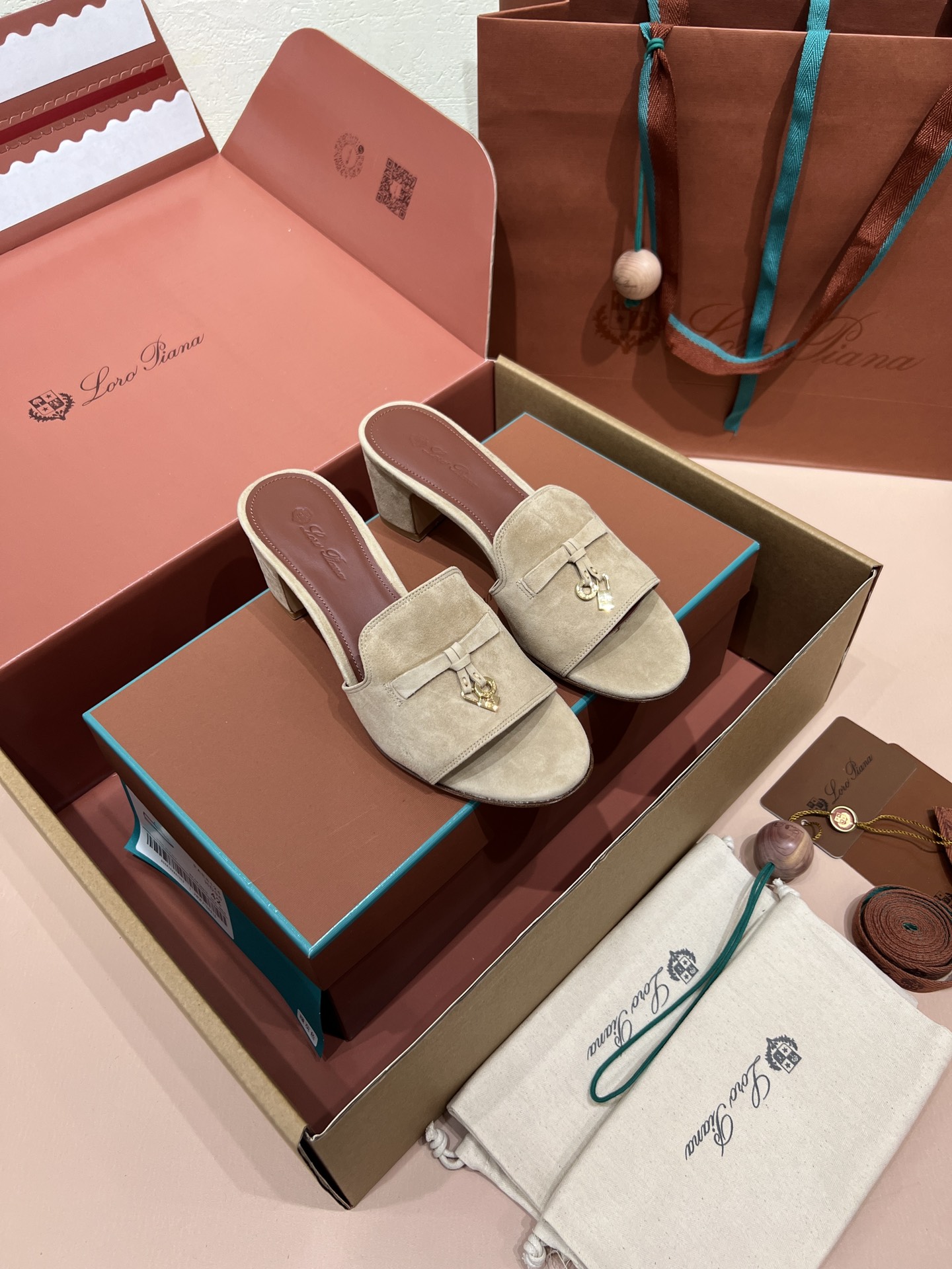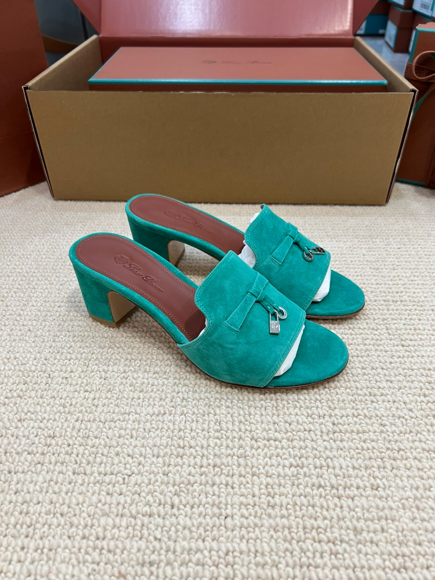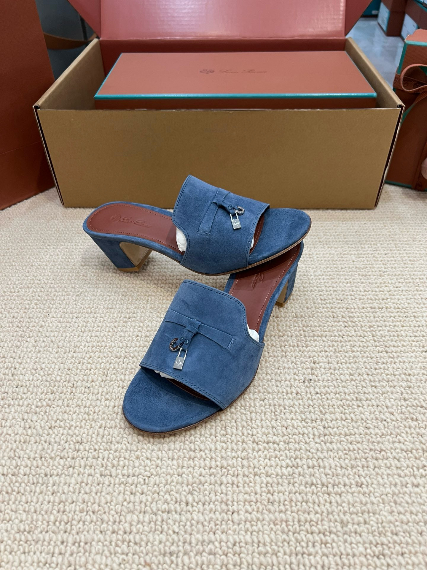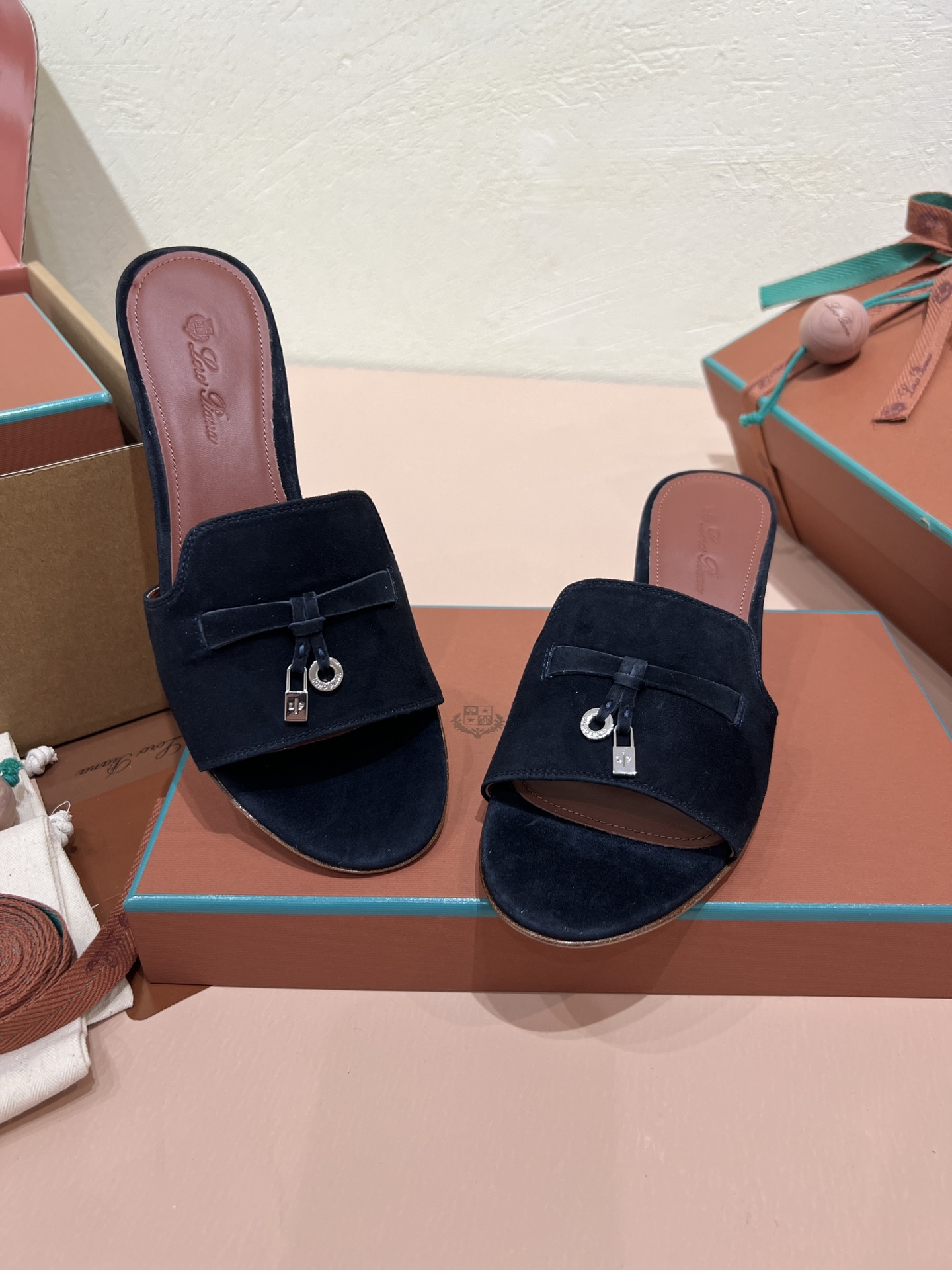 NIGO Loro Piana Summer Charms Women's Mid Heel Sandals Sheepskin Temperament Solid Color Slippers Vacation Style Luxury Comfort Women's Shoes #nigo81118