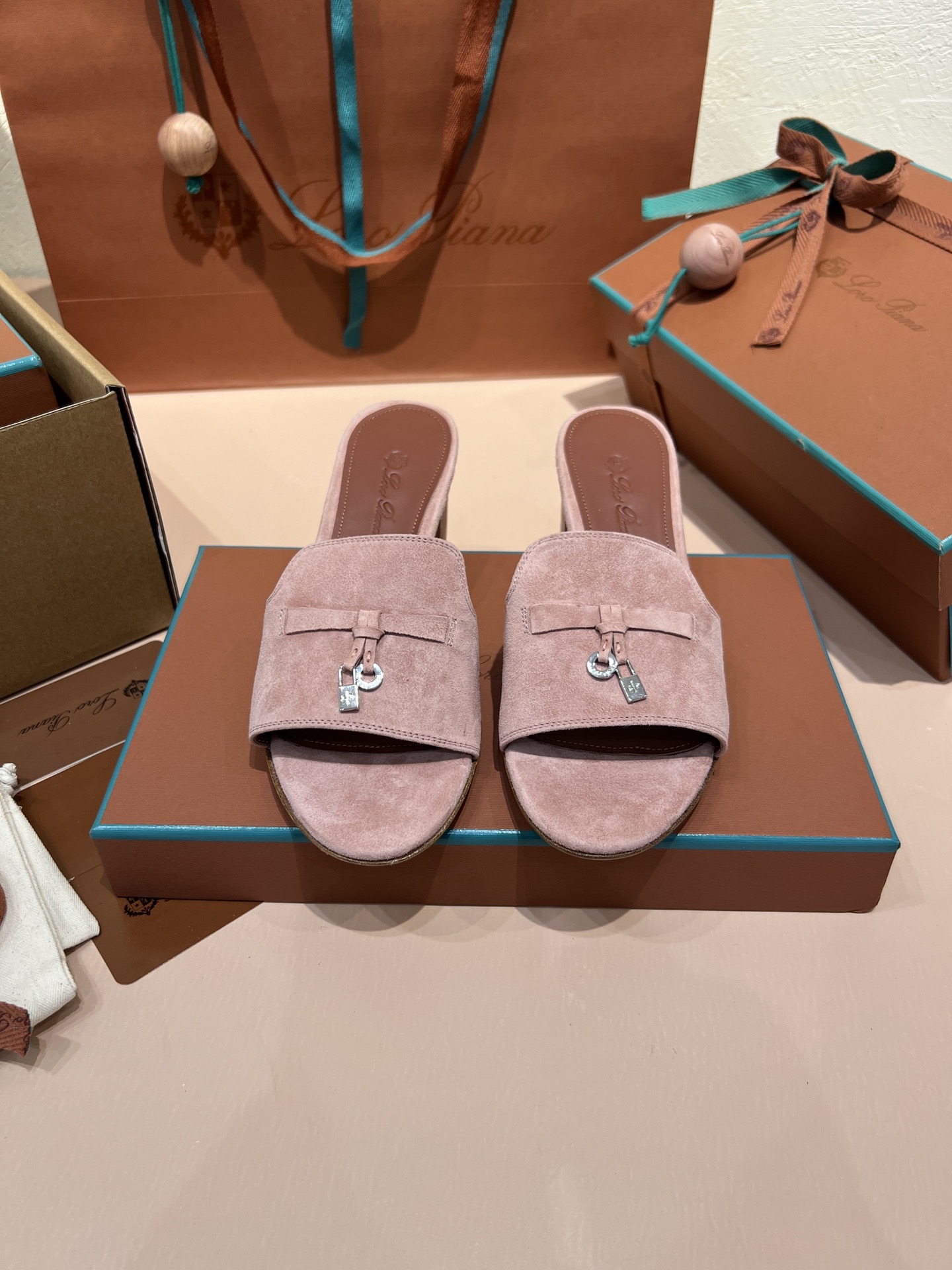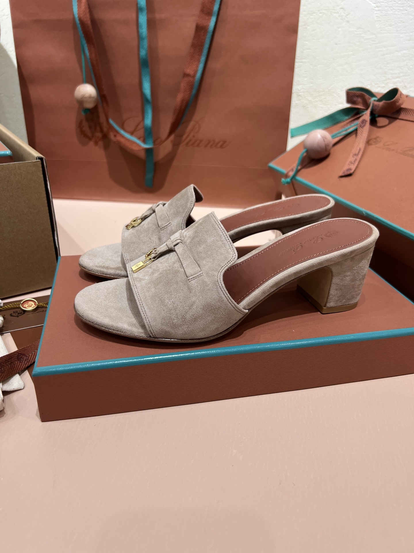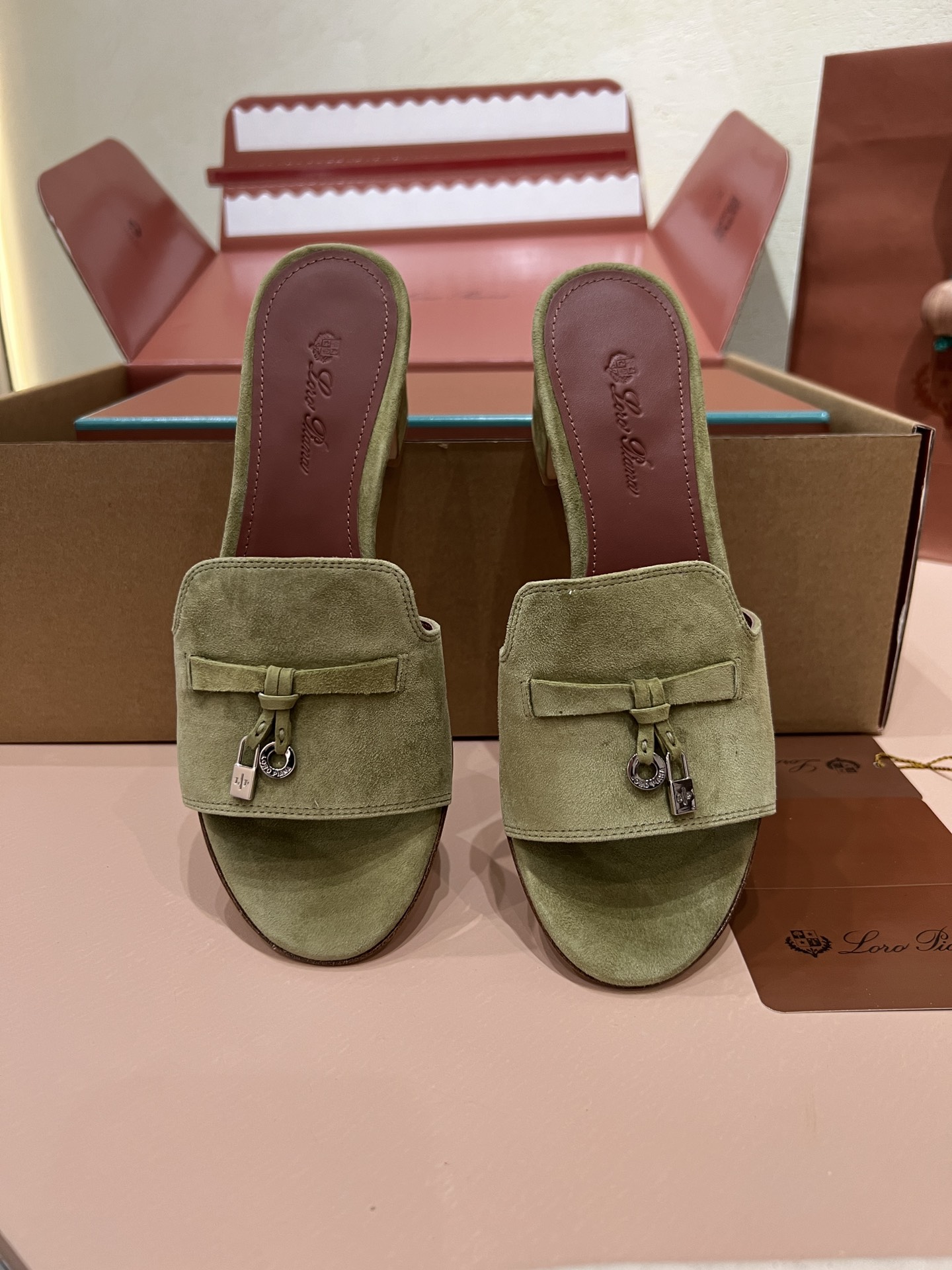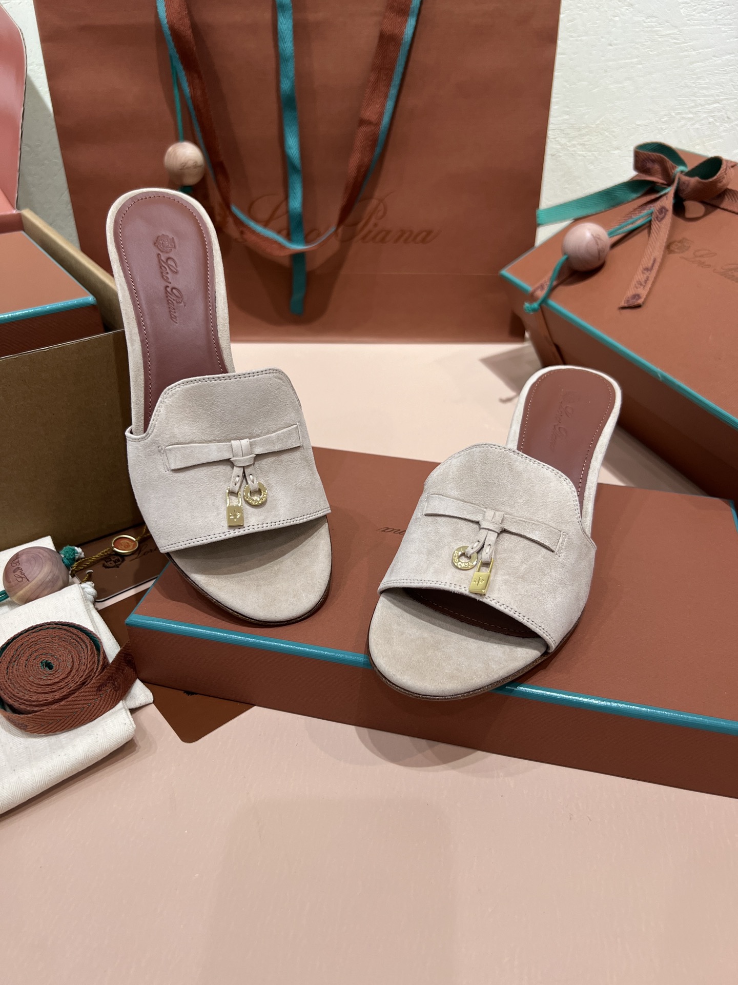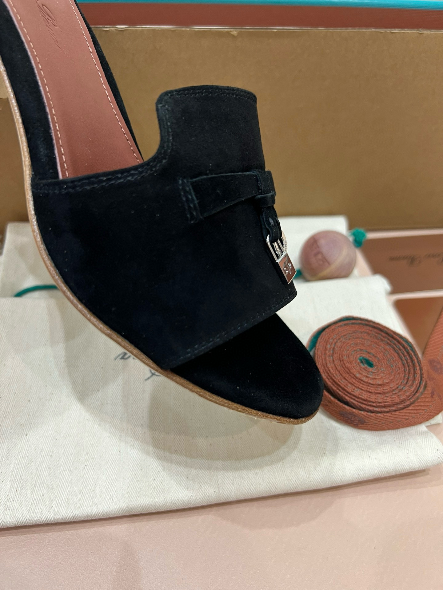 NIGO Loro Piana Summer Charms Women's Mid Heel Sandals Sheepskin Temperament Solid Color Slippers Vacation Style Luxury Comfort Women's Shoes #nigo81118