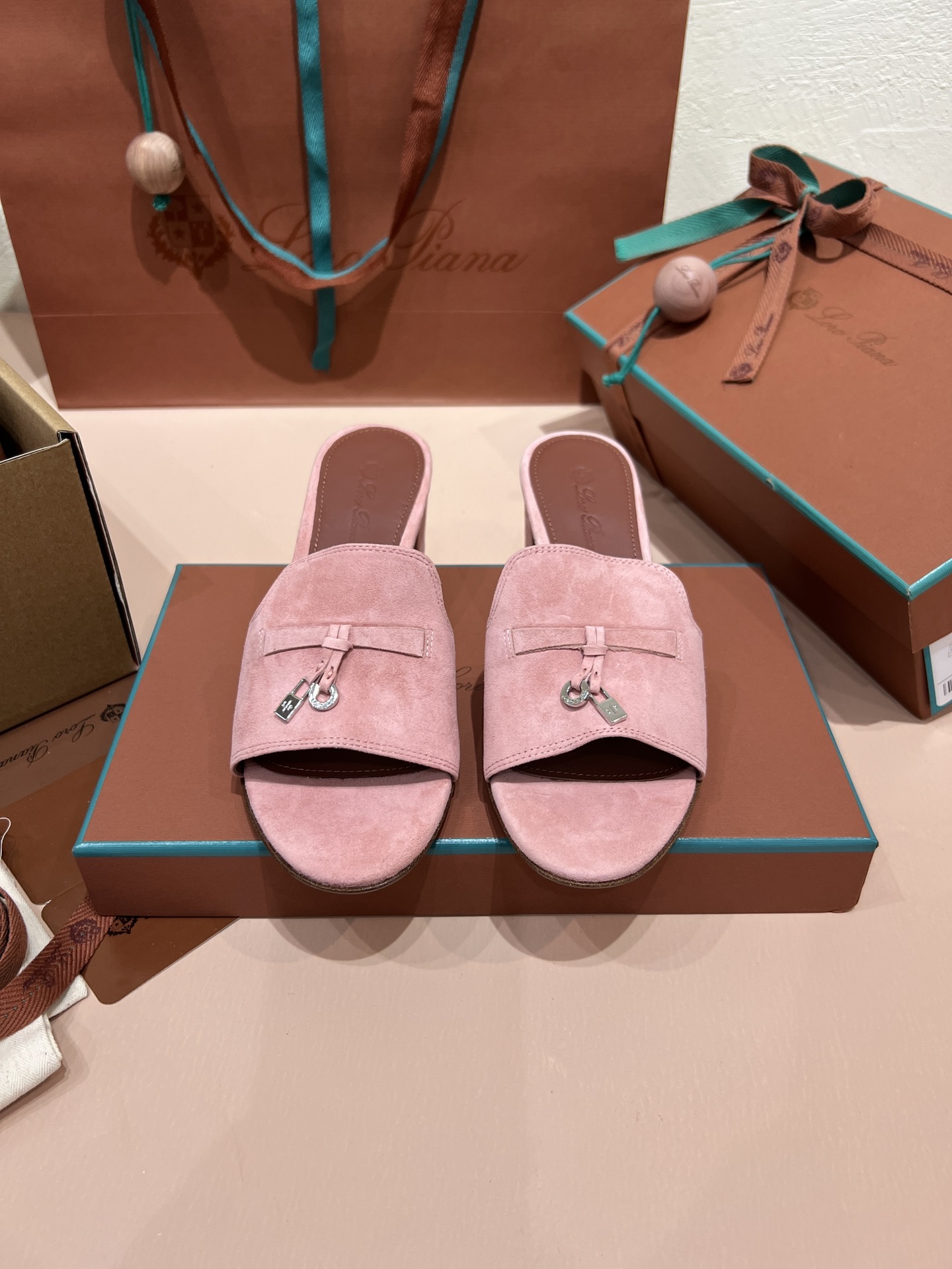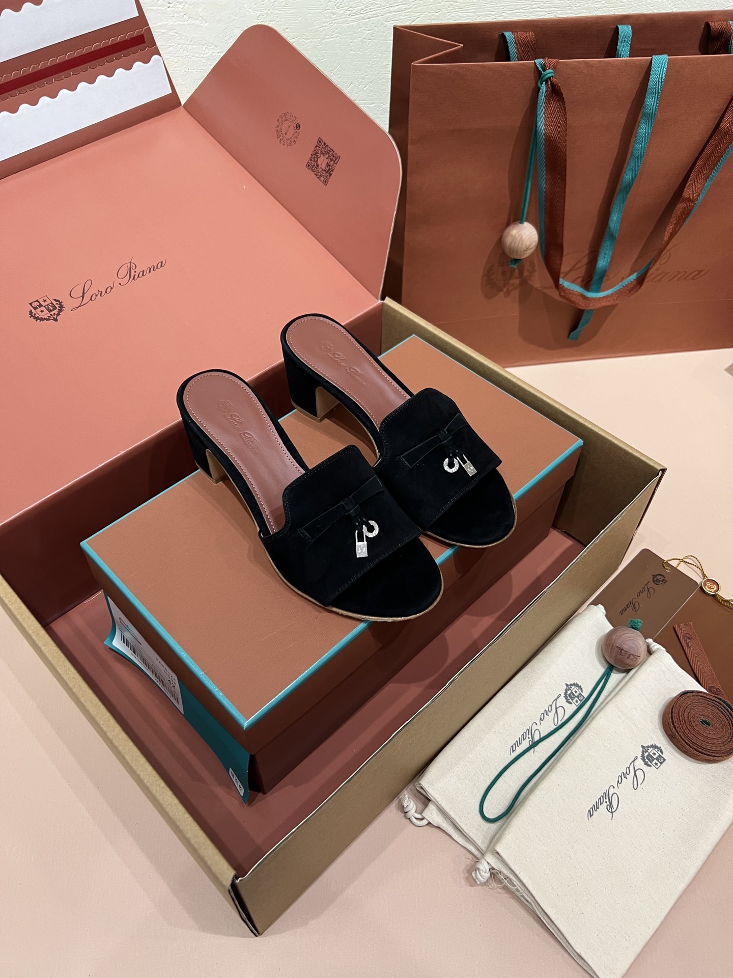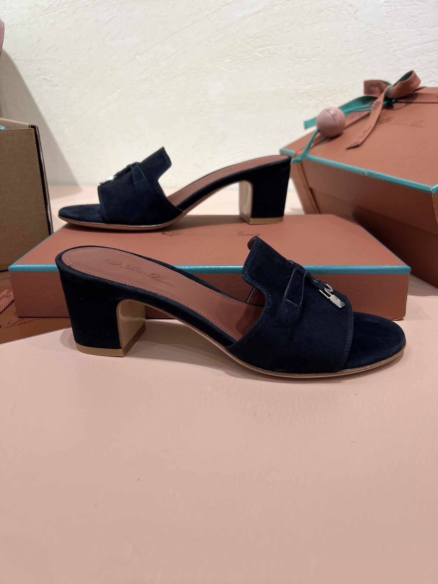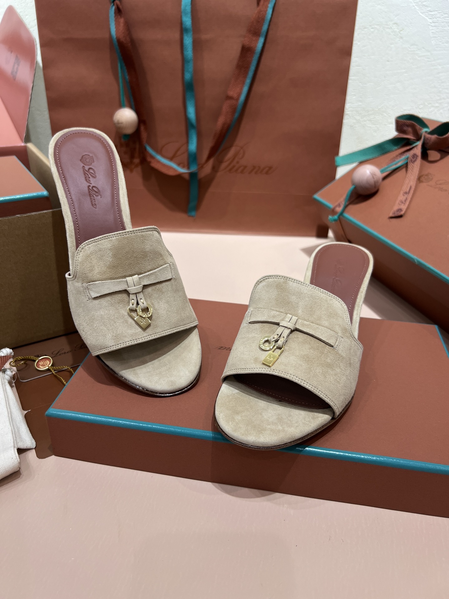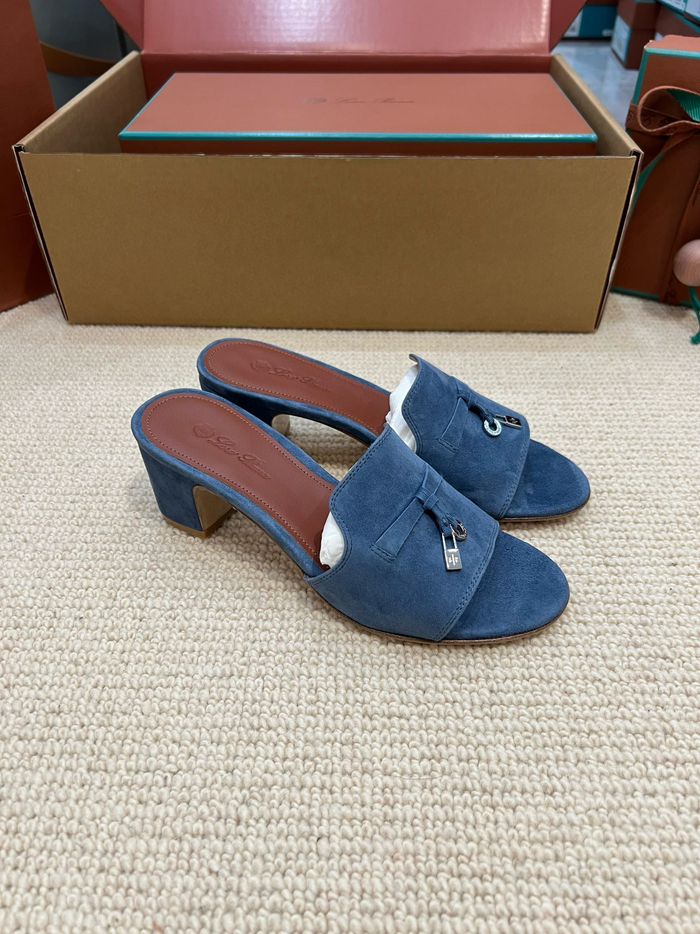 NIGO Loro Piana Summer Charms Women's Mid Heel Sandals Sheepskin Temperament Solid Color Slippers Vacation Style Luxury Comfort Women's Shoes #nigo81118