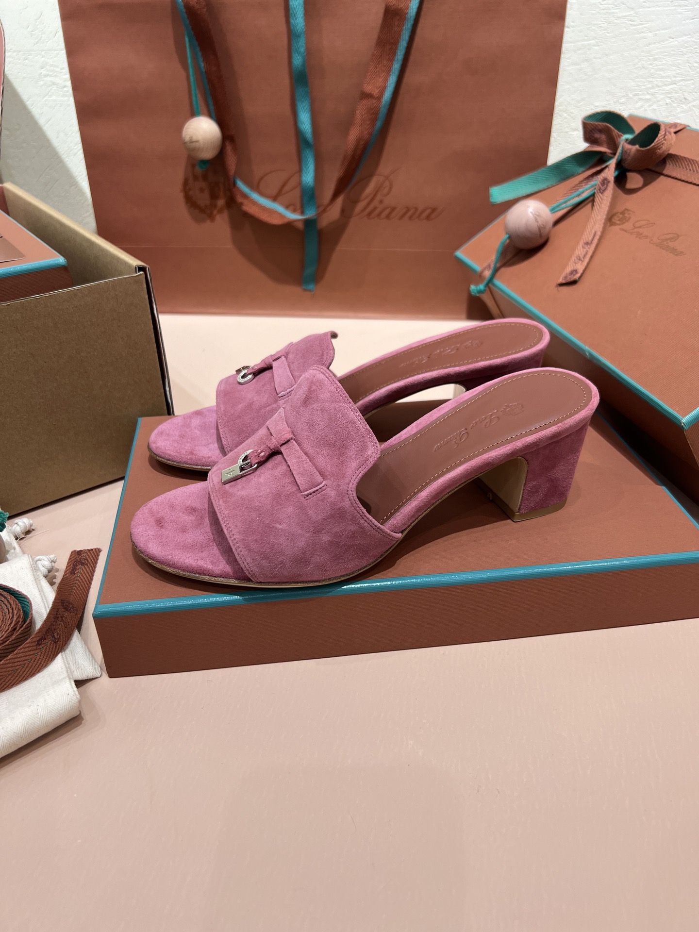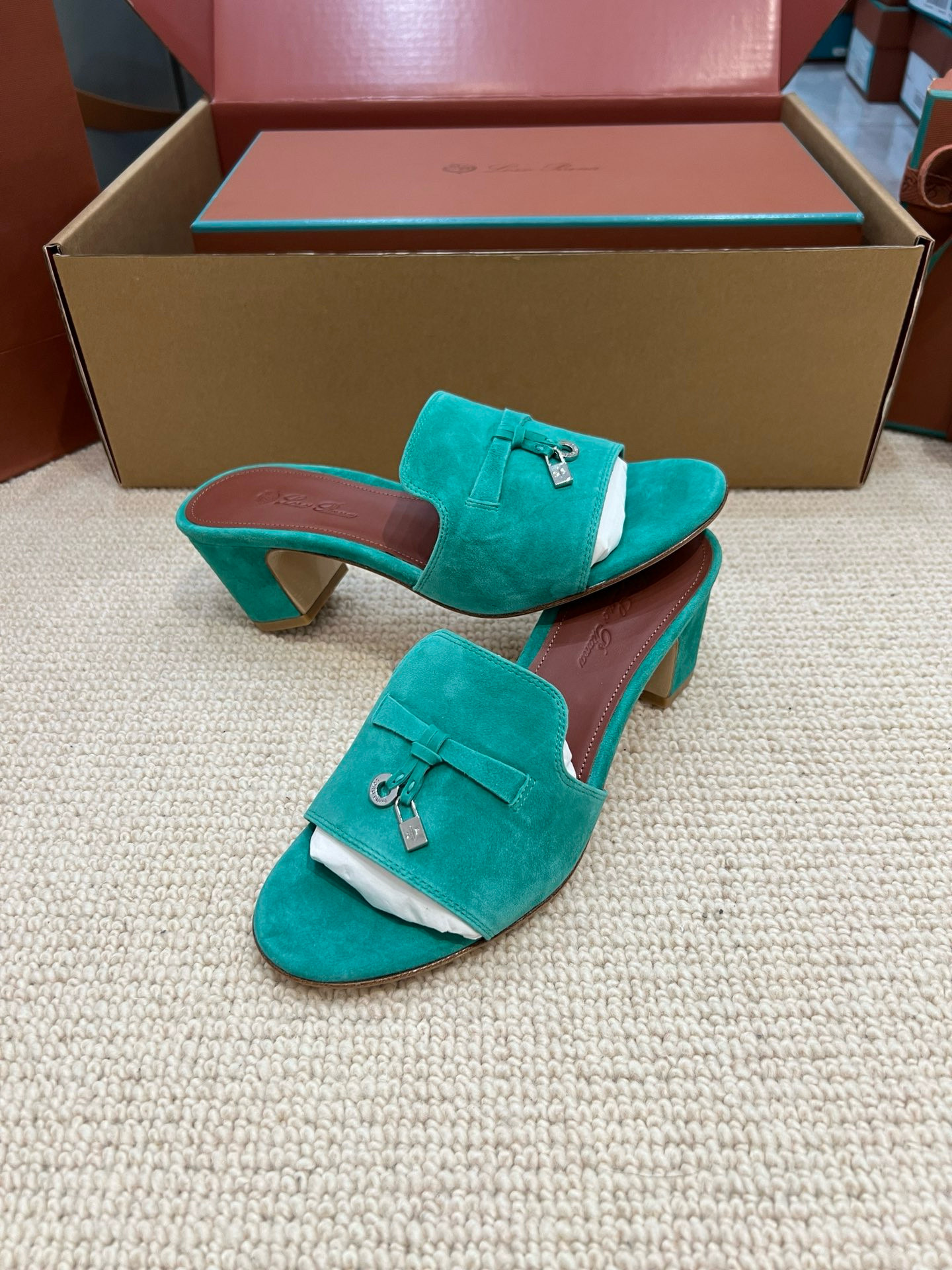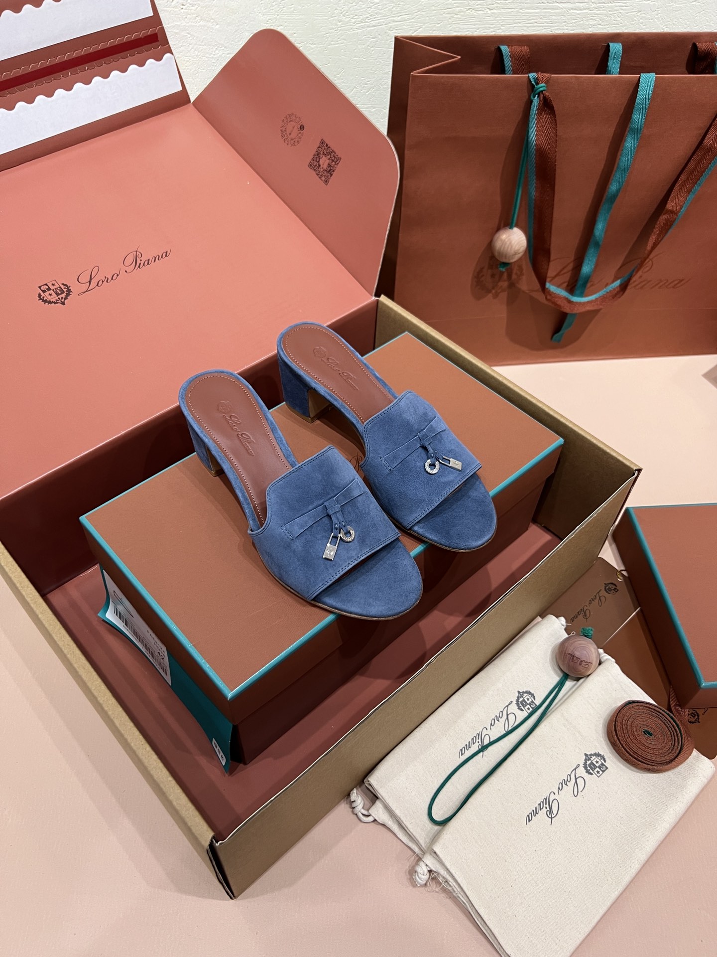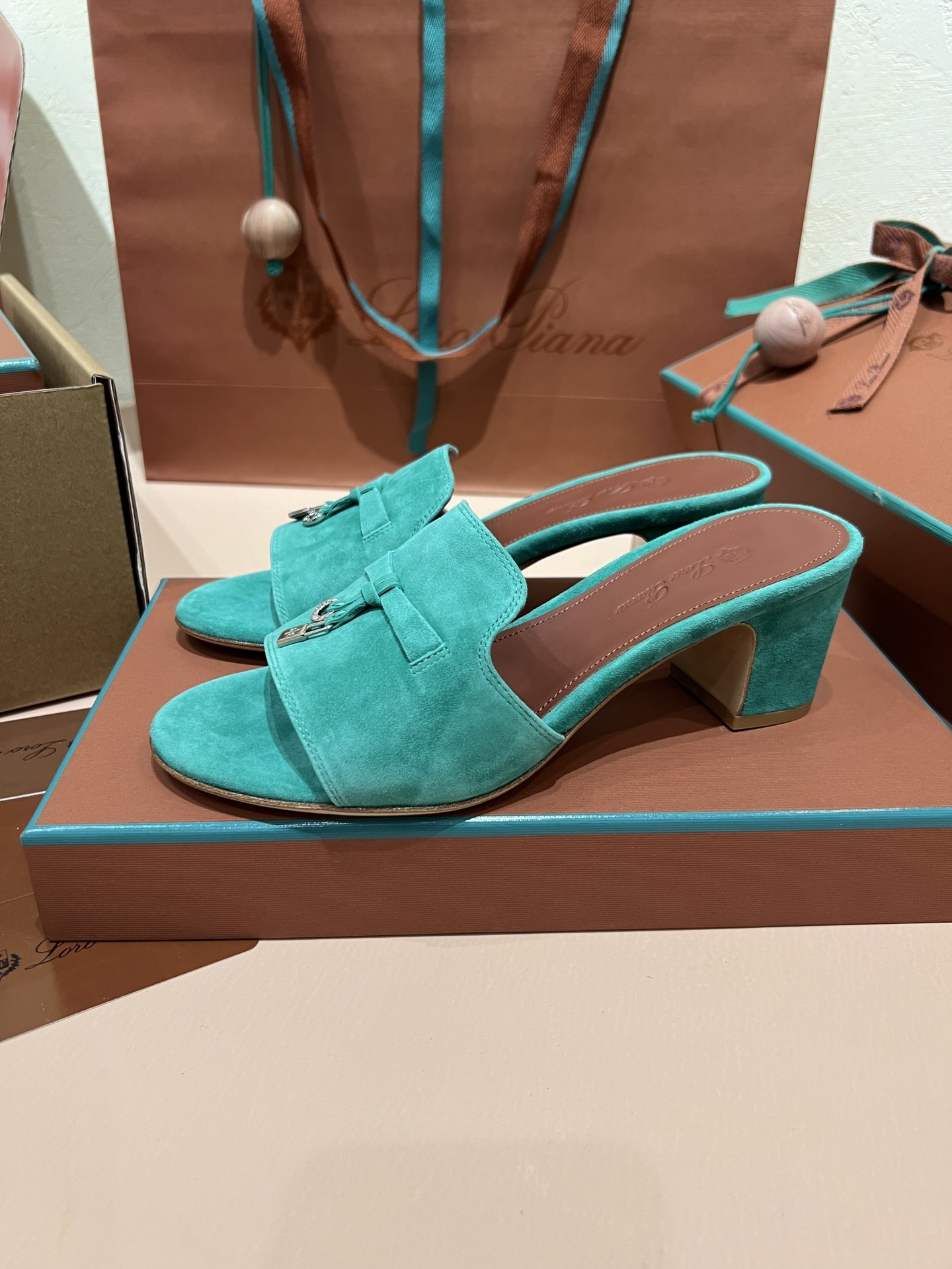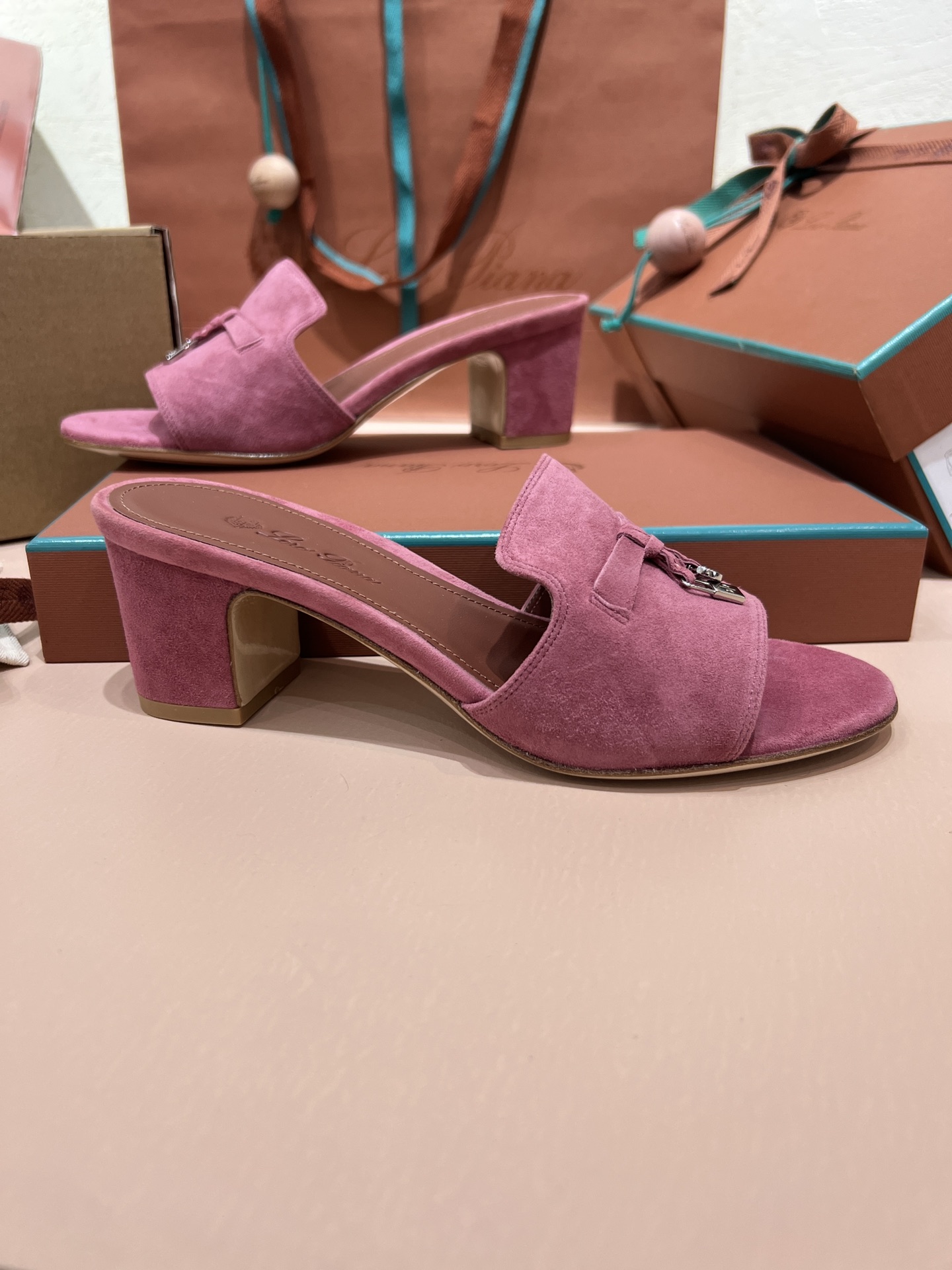 NIGO Loro Piana Summer Charms Women's Mid Heel Sandals Sheepskin Temperament Solid Color Slippers Vacation Style Luxury Comfort Women's Shoes #nigo81118