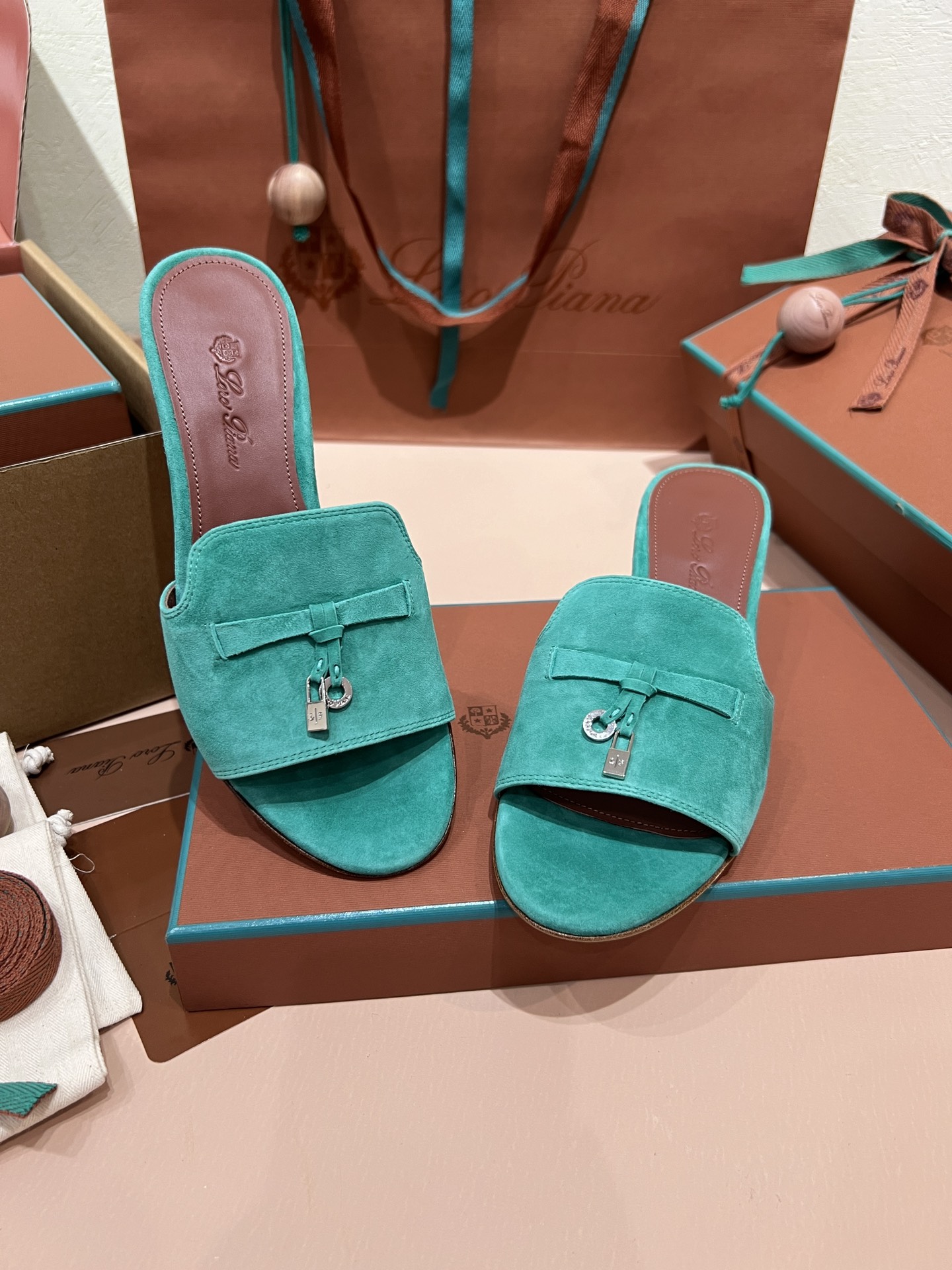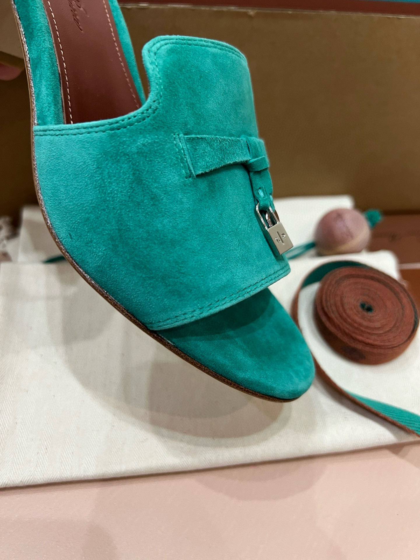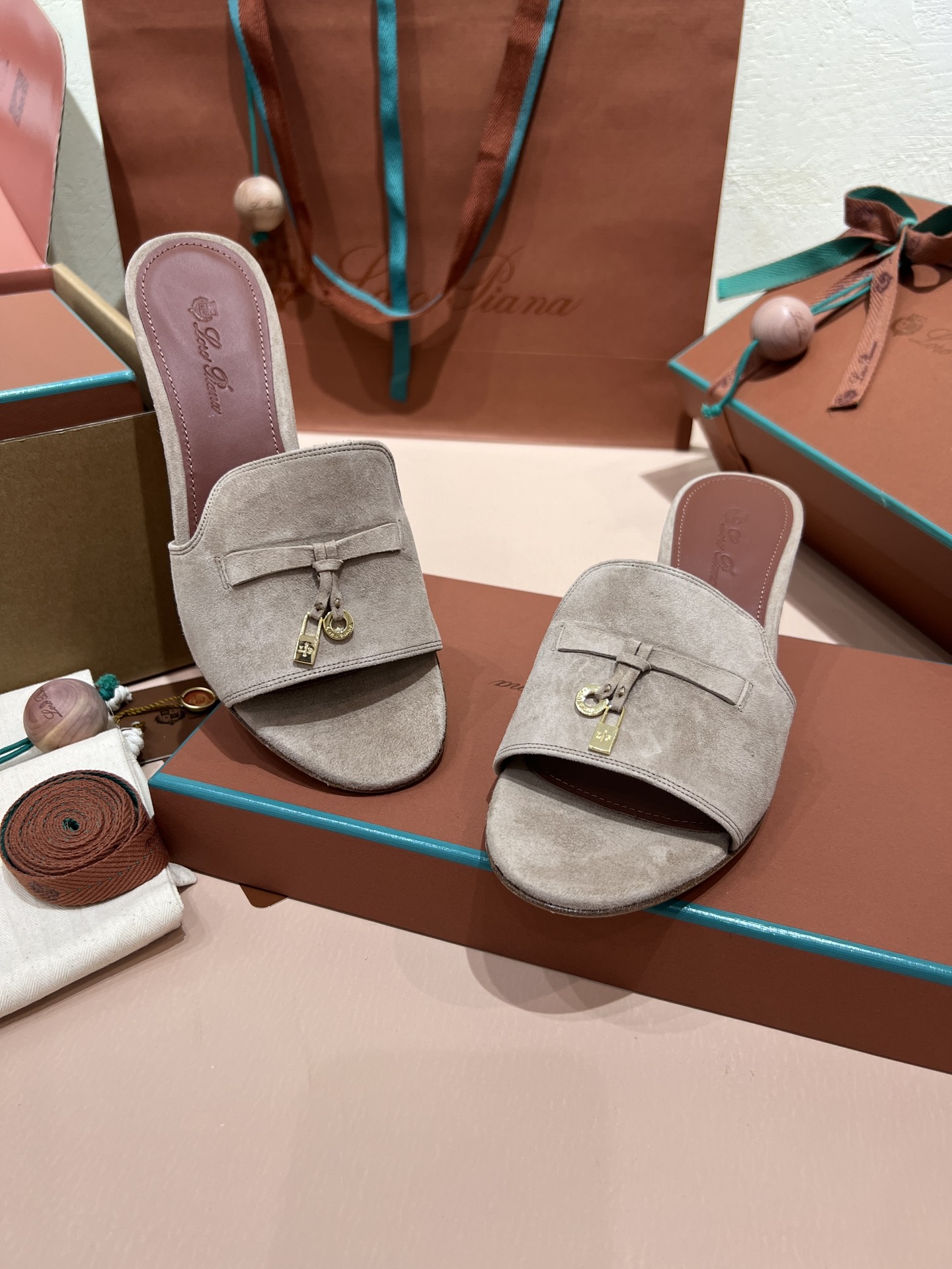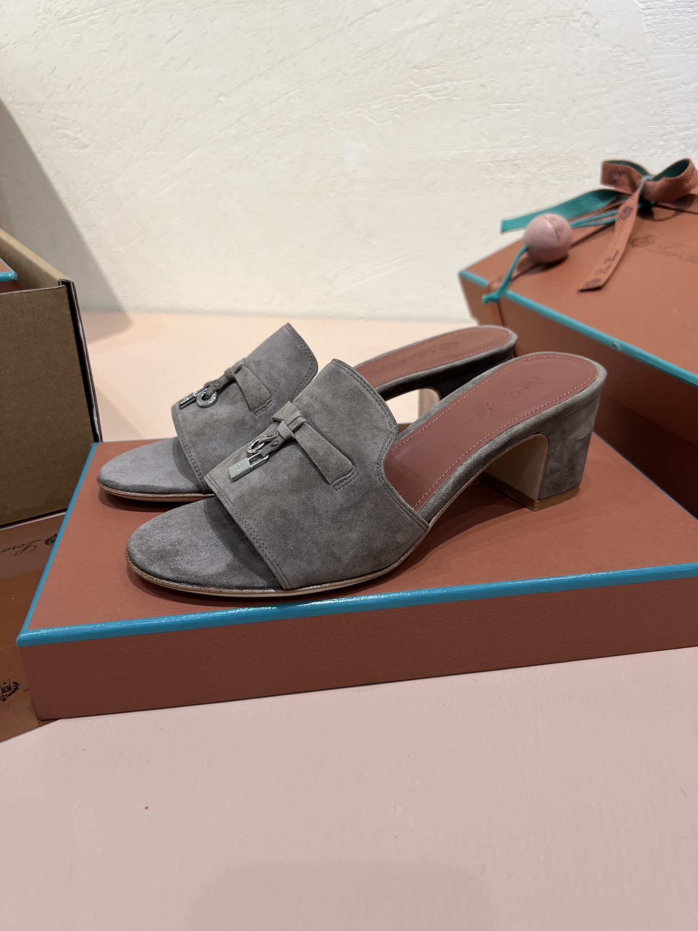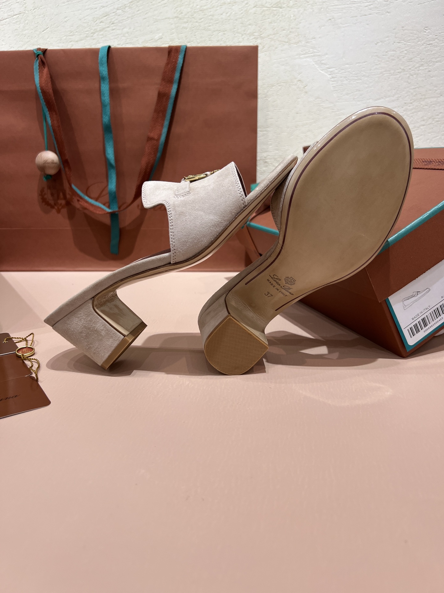 NIGO Loro Piana Summer Charms Women's Mid Heel Sandals Sheepskin Temperament Solid Color Slippers Vacation Style Luxury Comfort Women's Shoes #nigo81118