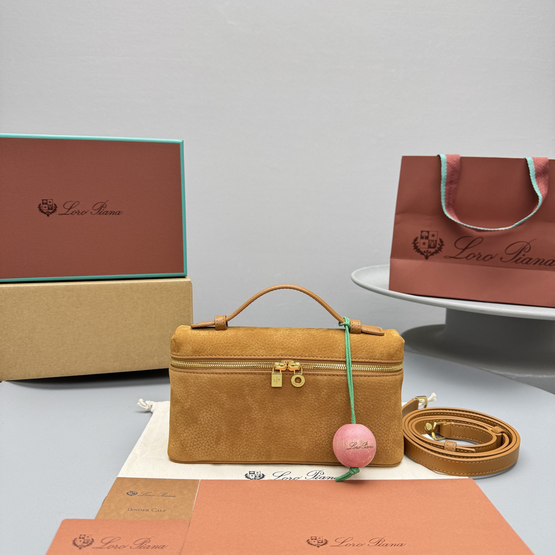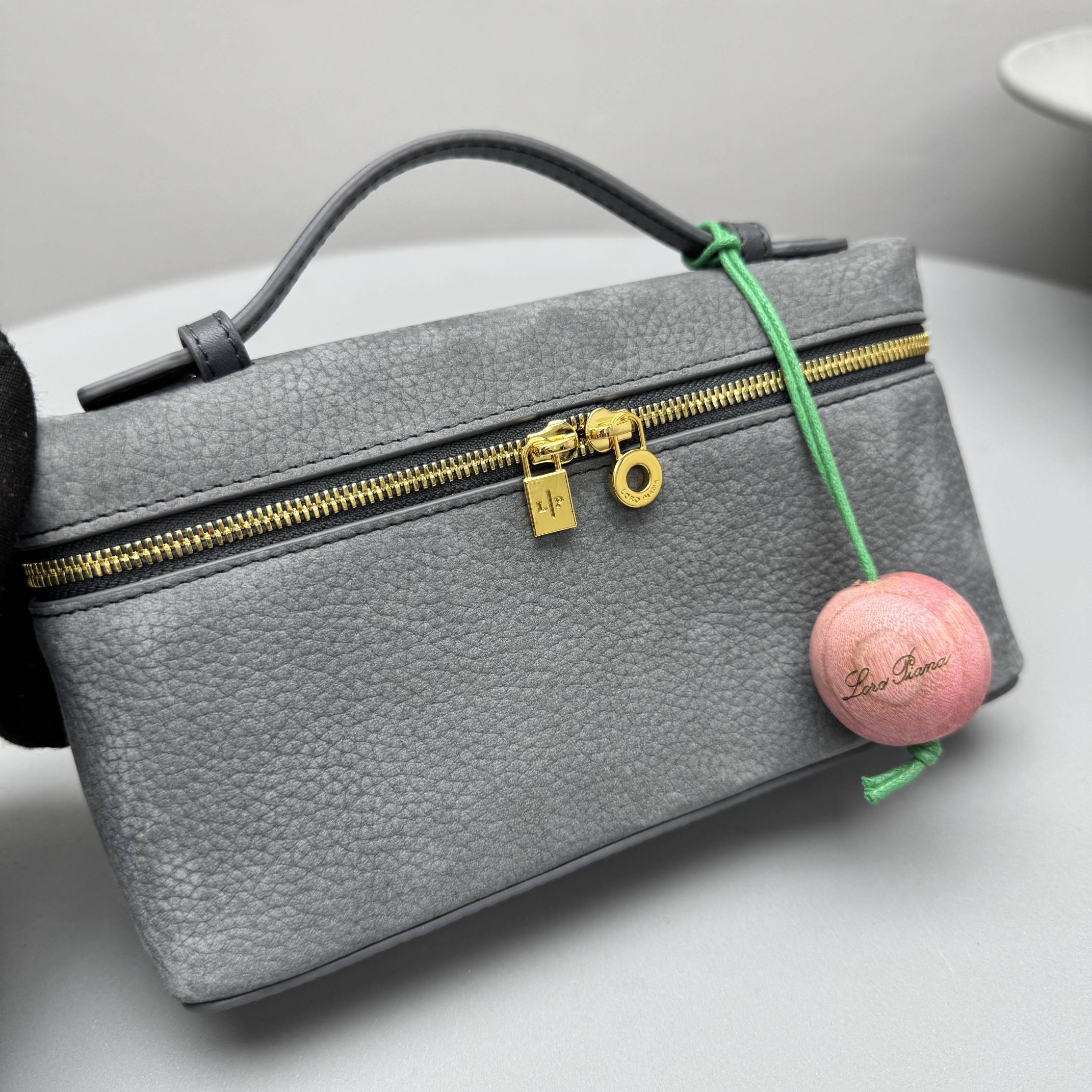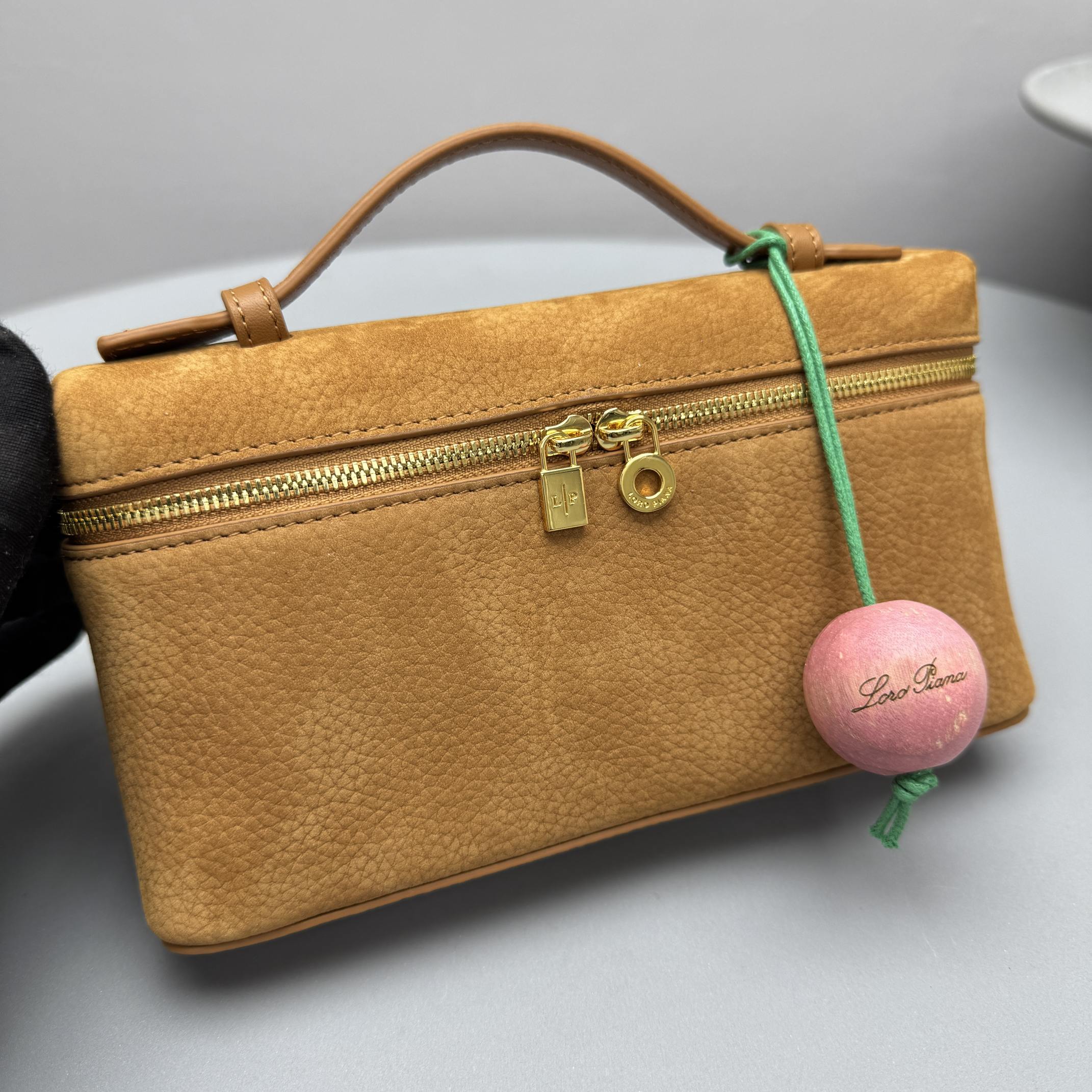 NIGO Loro Piana Women's Extra Pocket L19 Clutch Solid-Color Grained Zipper-Closure Cowhide Shoulder Crossbody Bag Bags FAP6658 #nigo81533