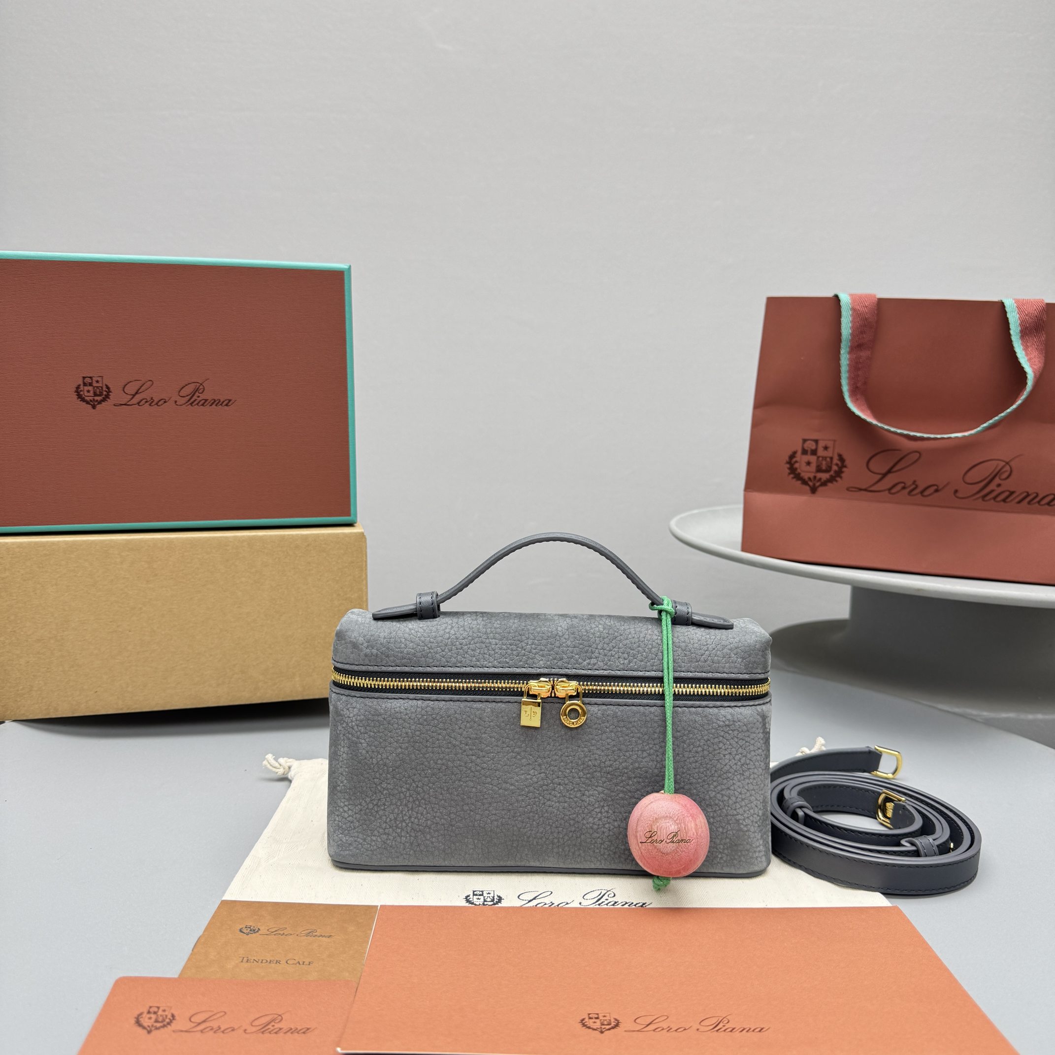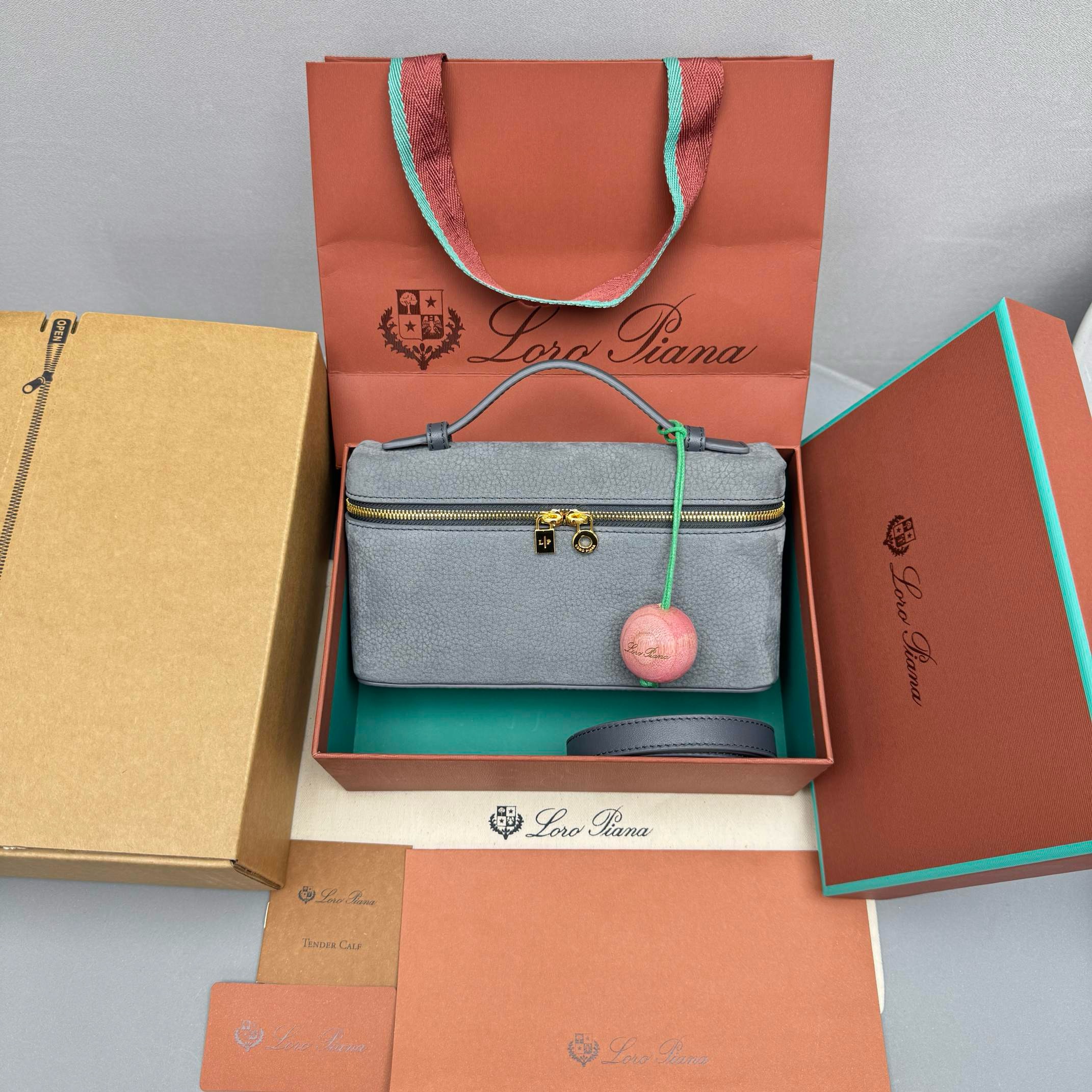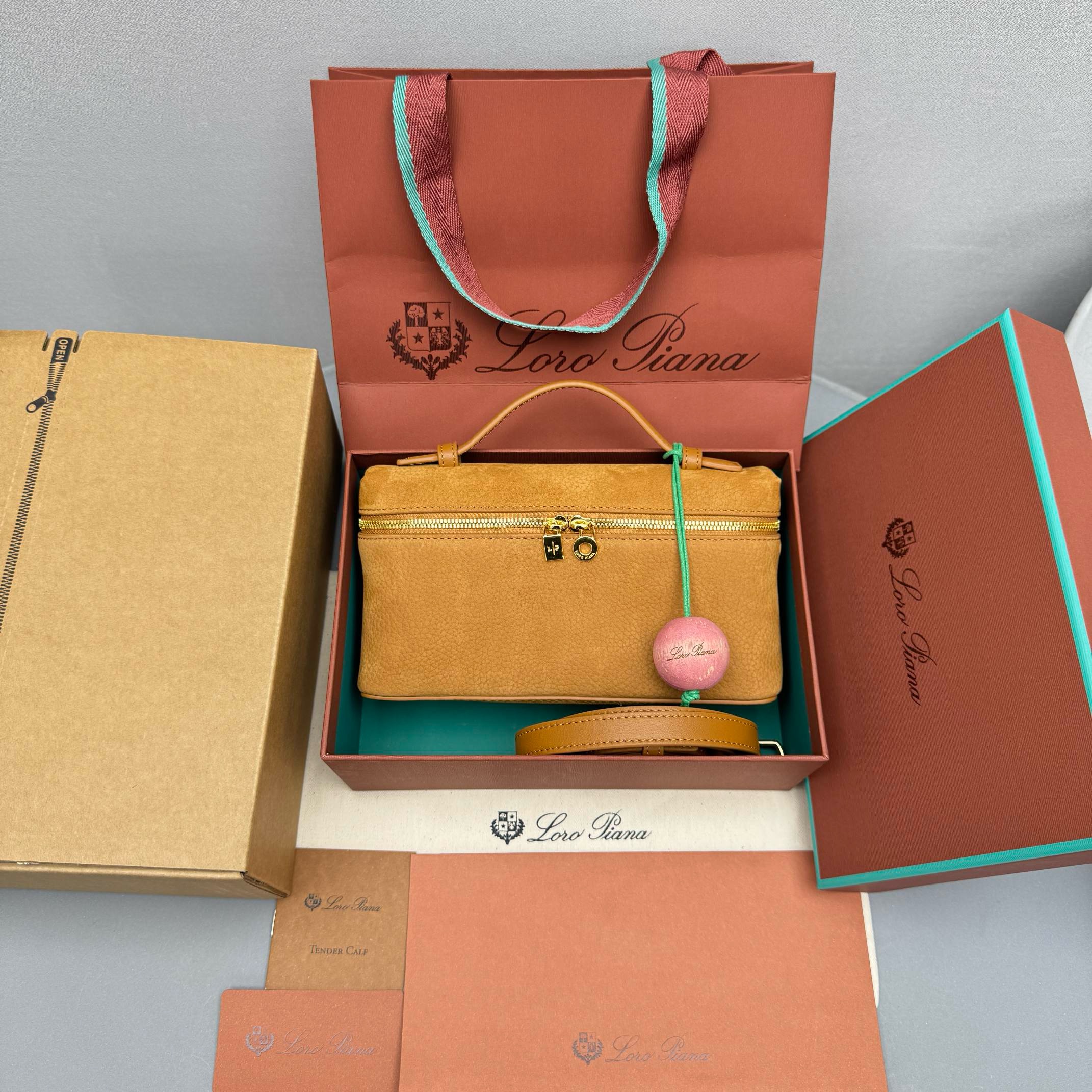 NIGO Loro Piana Women's Extra Pocket L19 Clutch Solid-Color Grained Zipper-Closure Cowhide Shoulder Crossbody Bag Bags FAP6658 #nigo81533