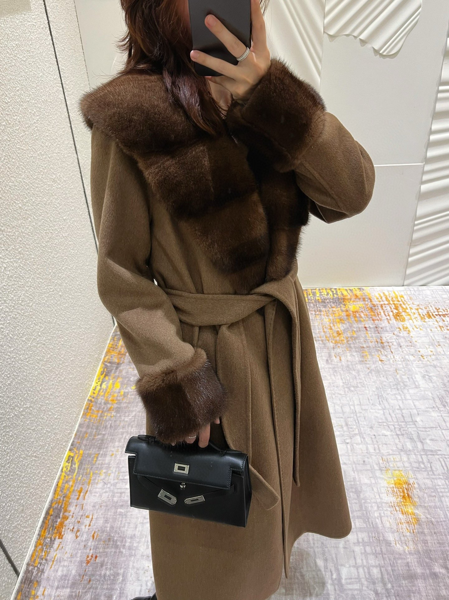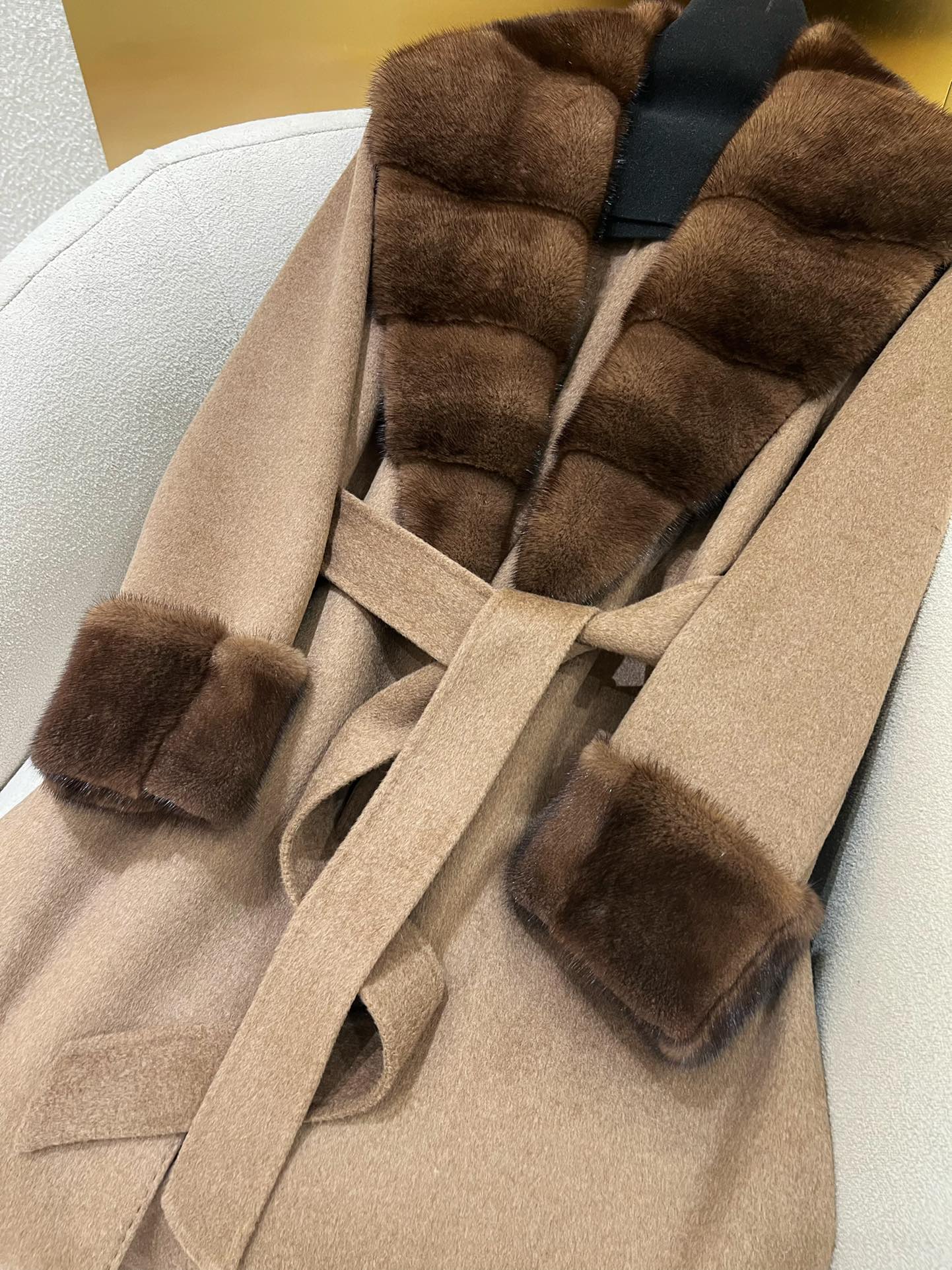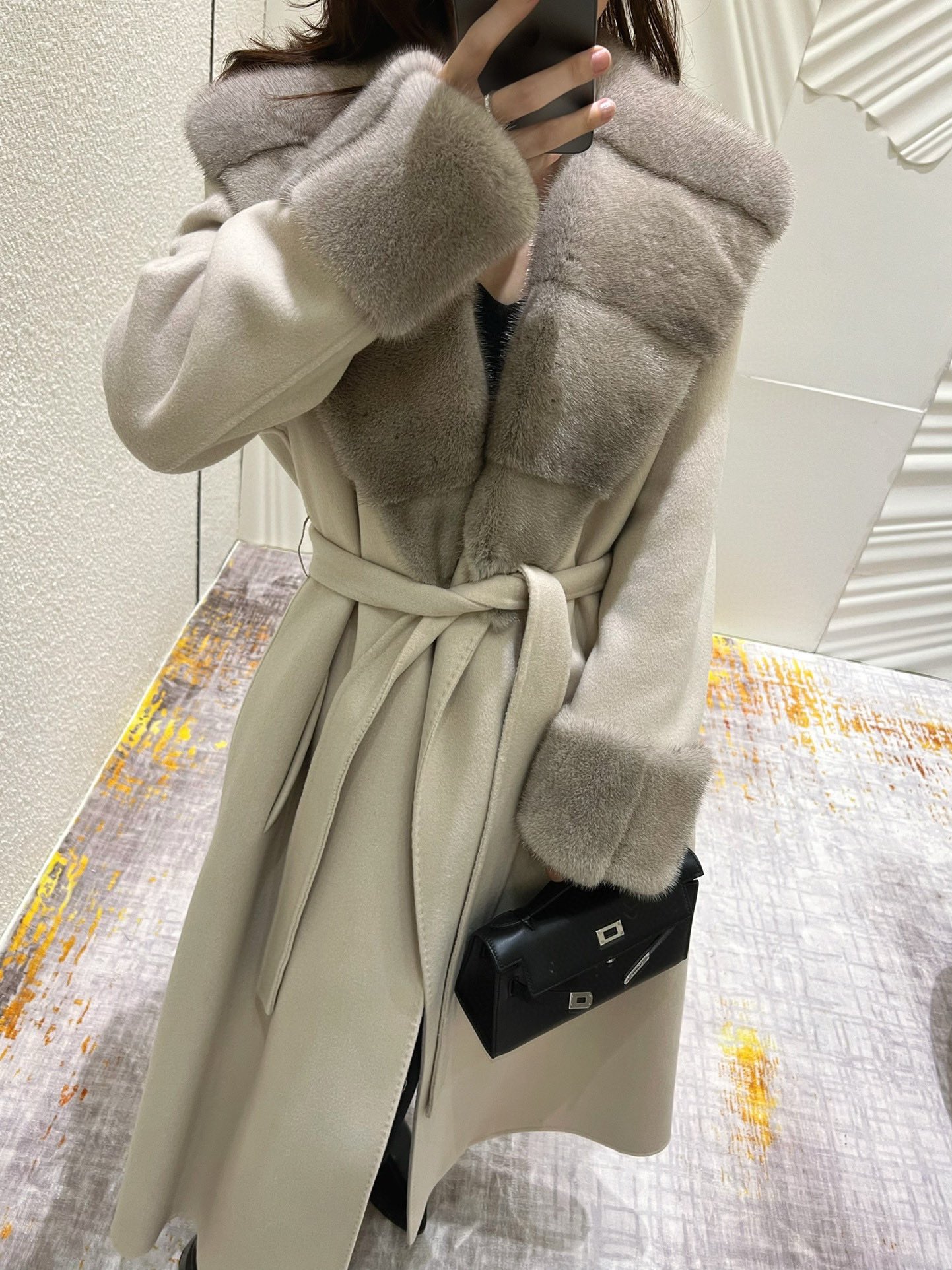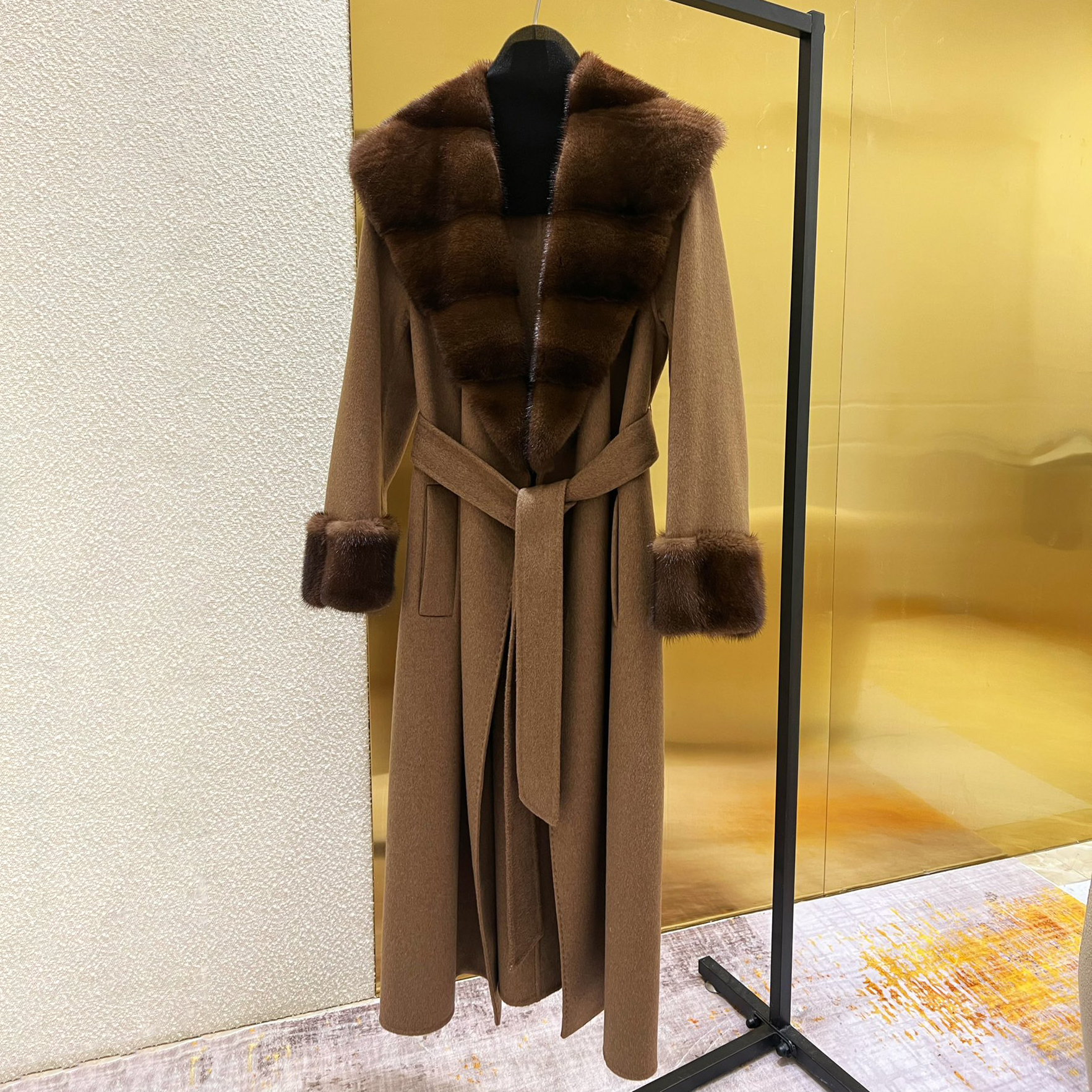 NIGO Loro Piana Women's Fall And Winter Solid Color Mink Shawl Collar Wool Fabric Drawstring Long Coat Jacket #nigo74642