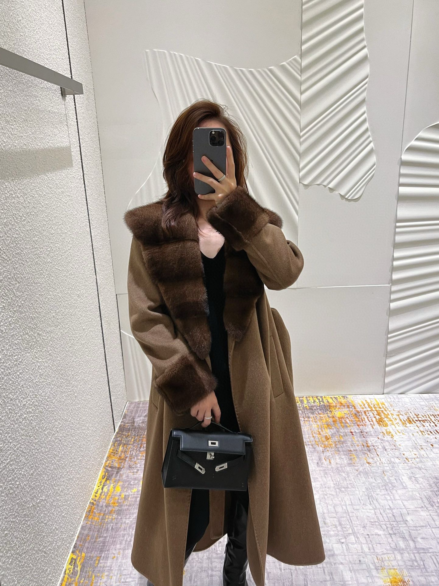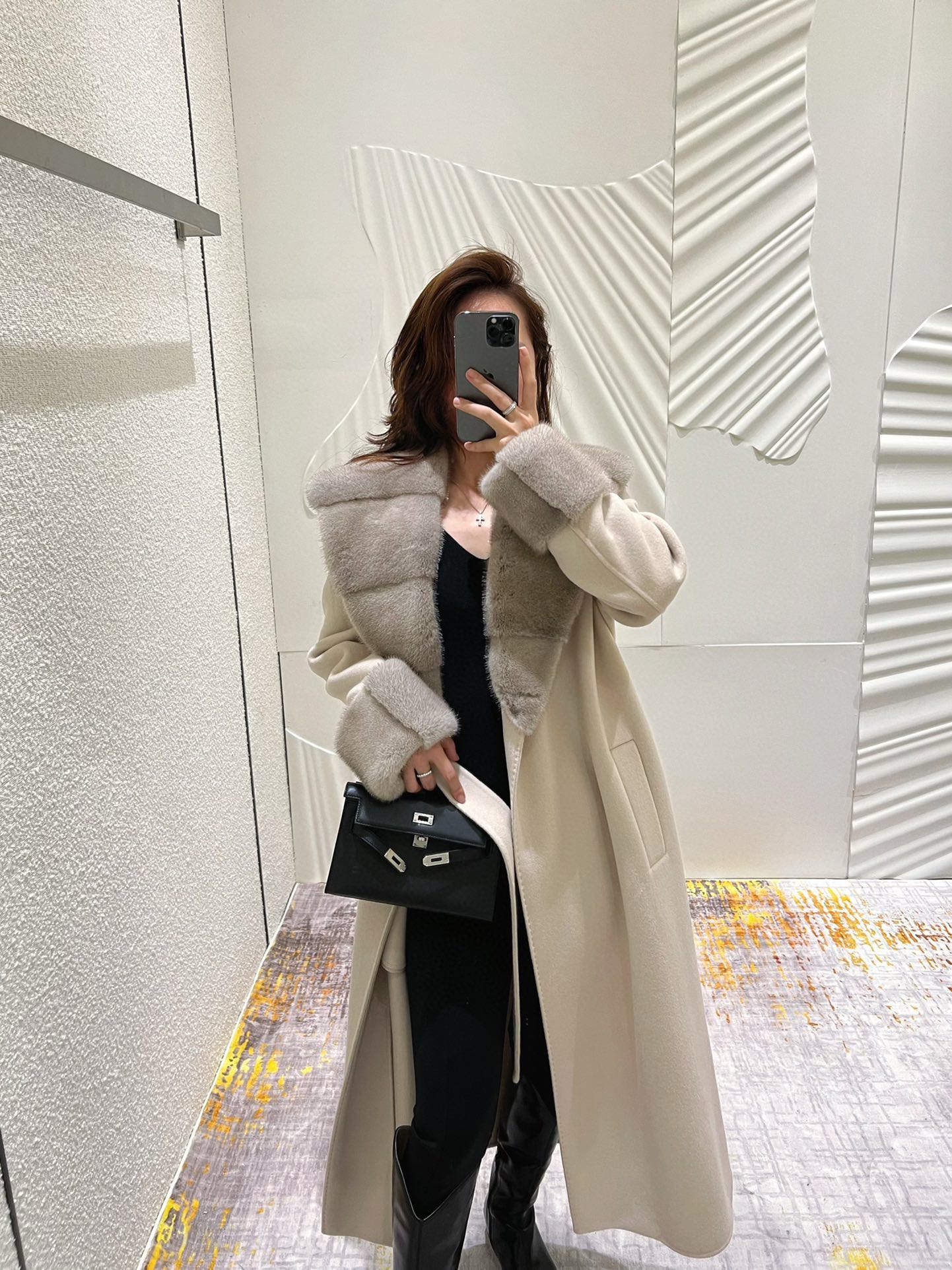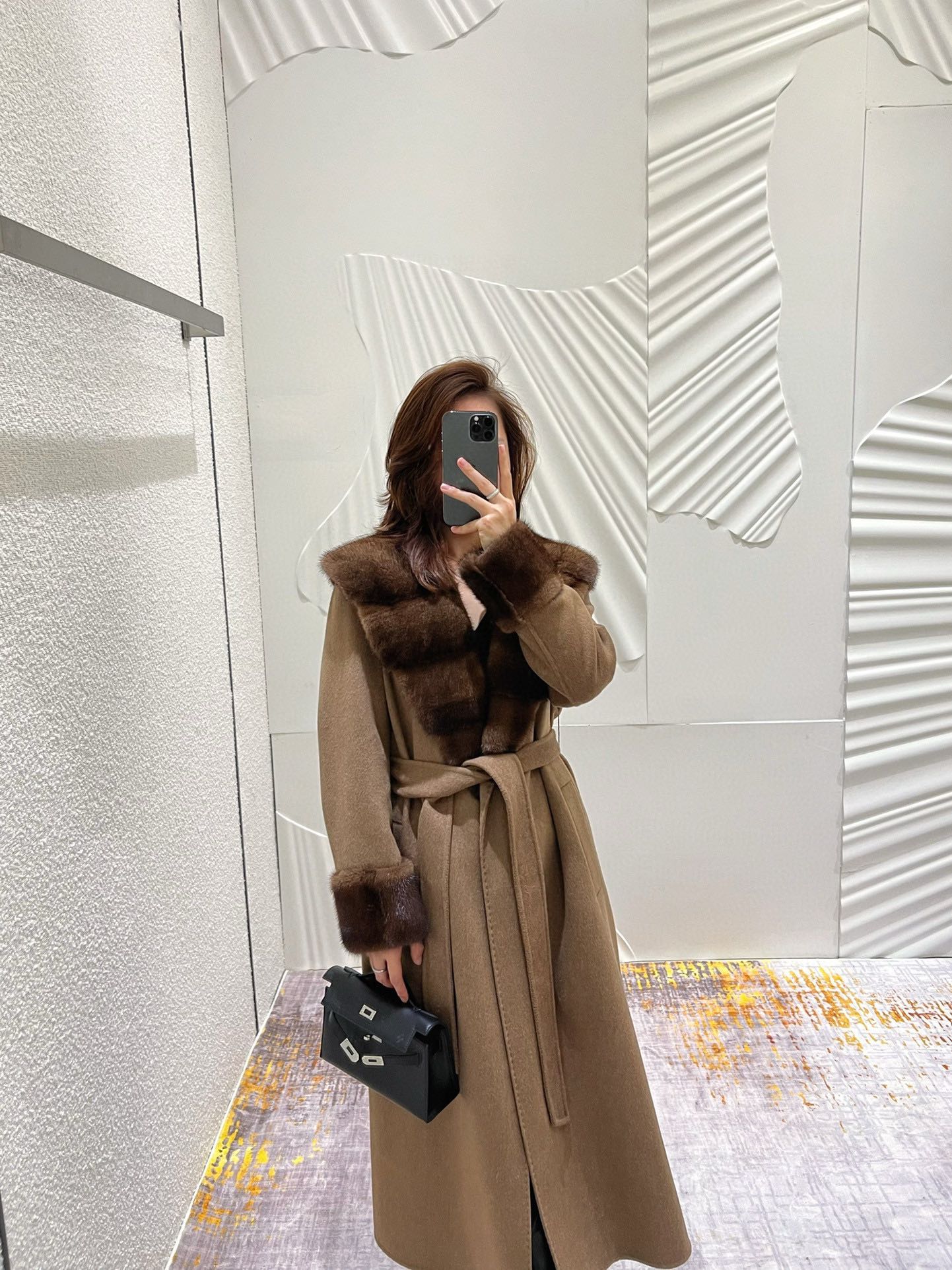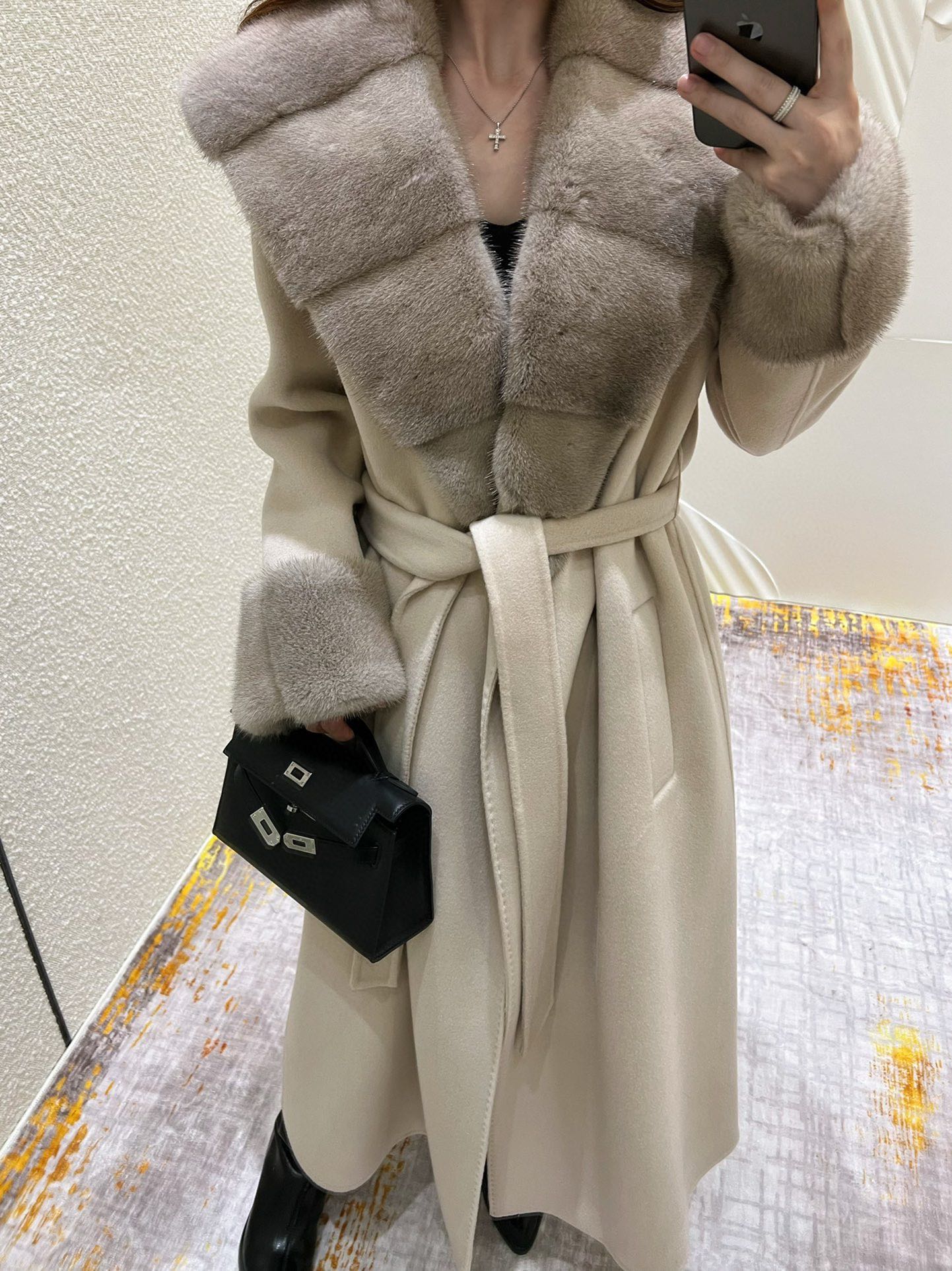 NIGO Loro Piana Women's Fall And Winter Solid Color Mink Shawl Collar Wool Fabric Drawstring Long Coat Jacket #nigo74642