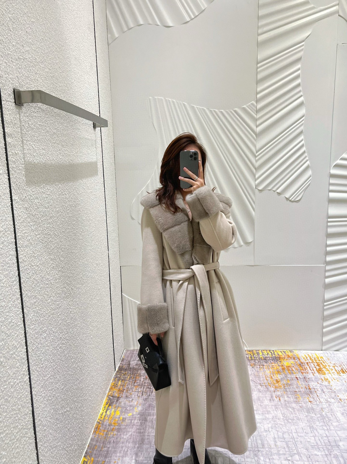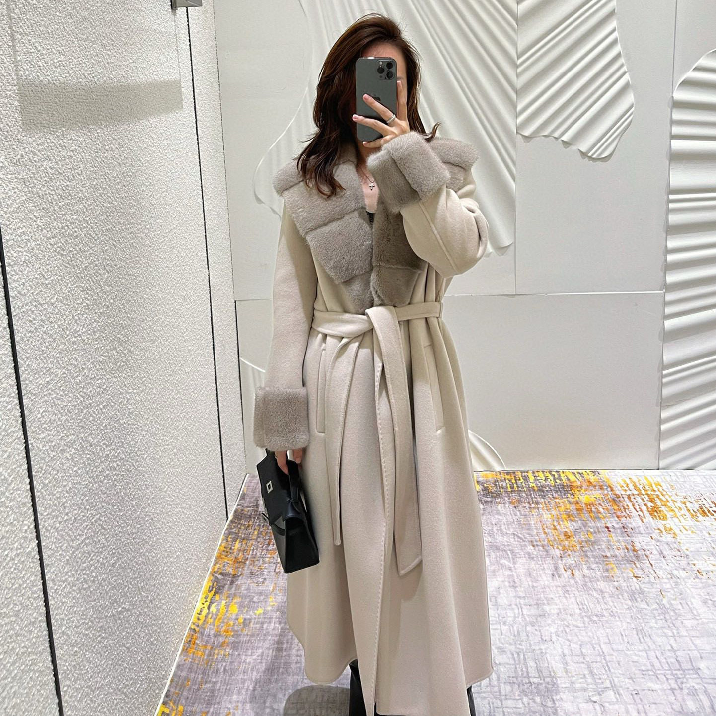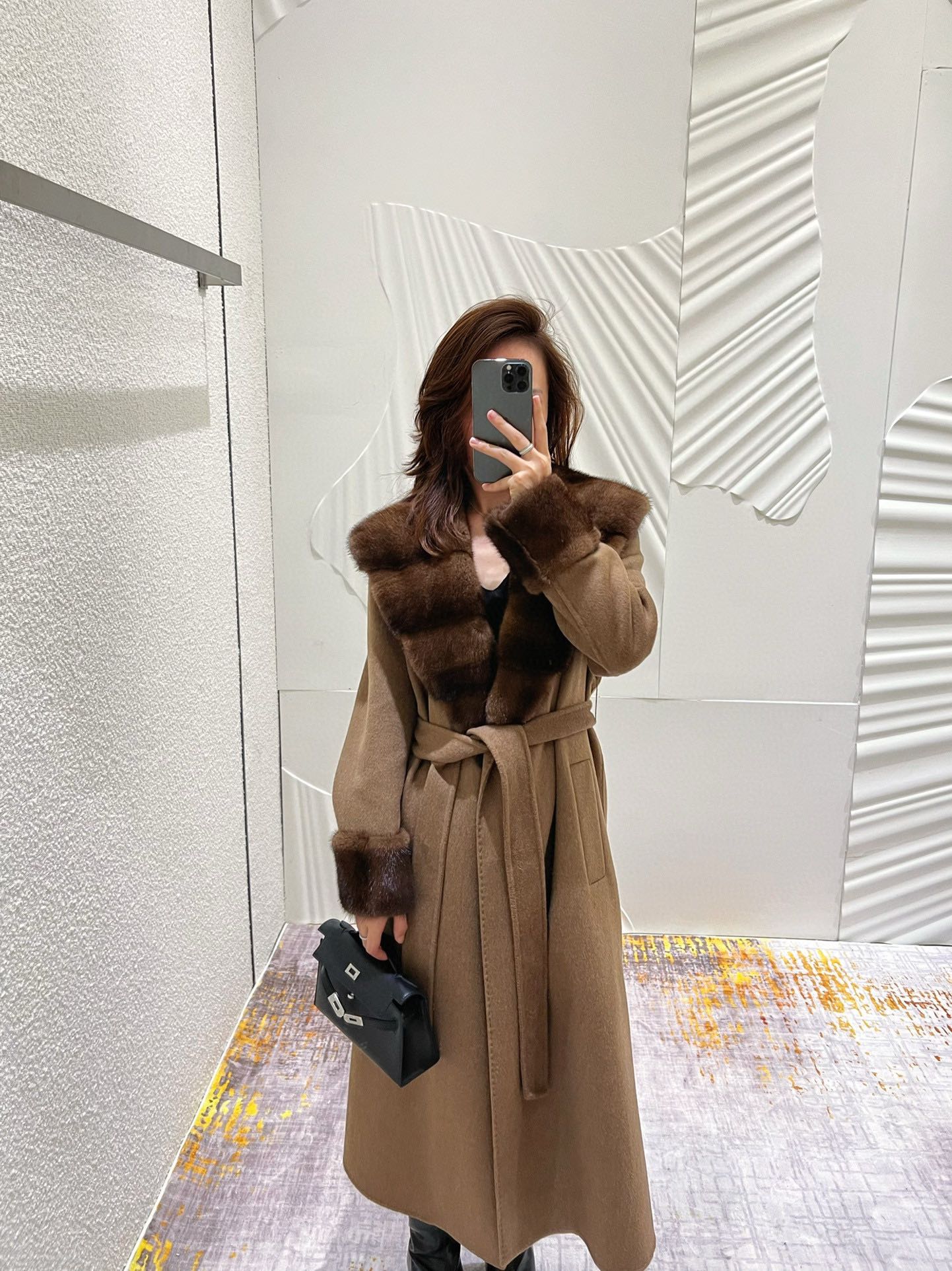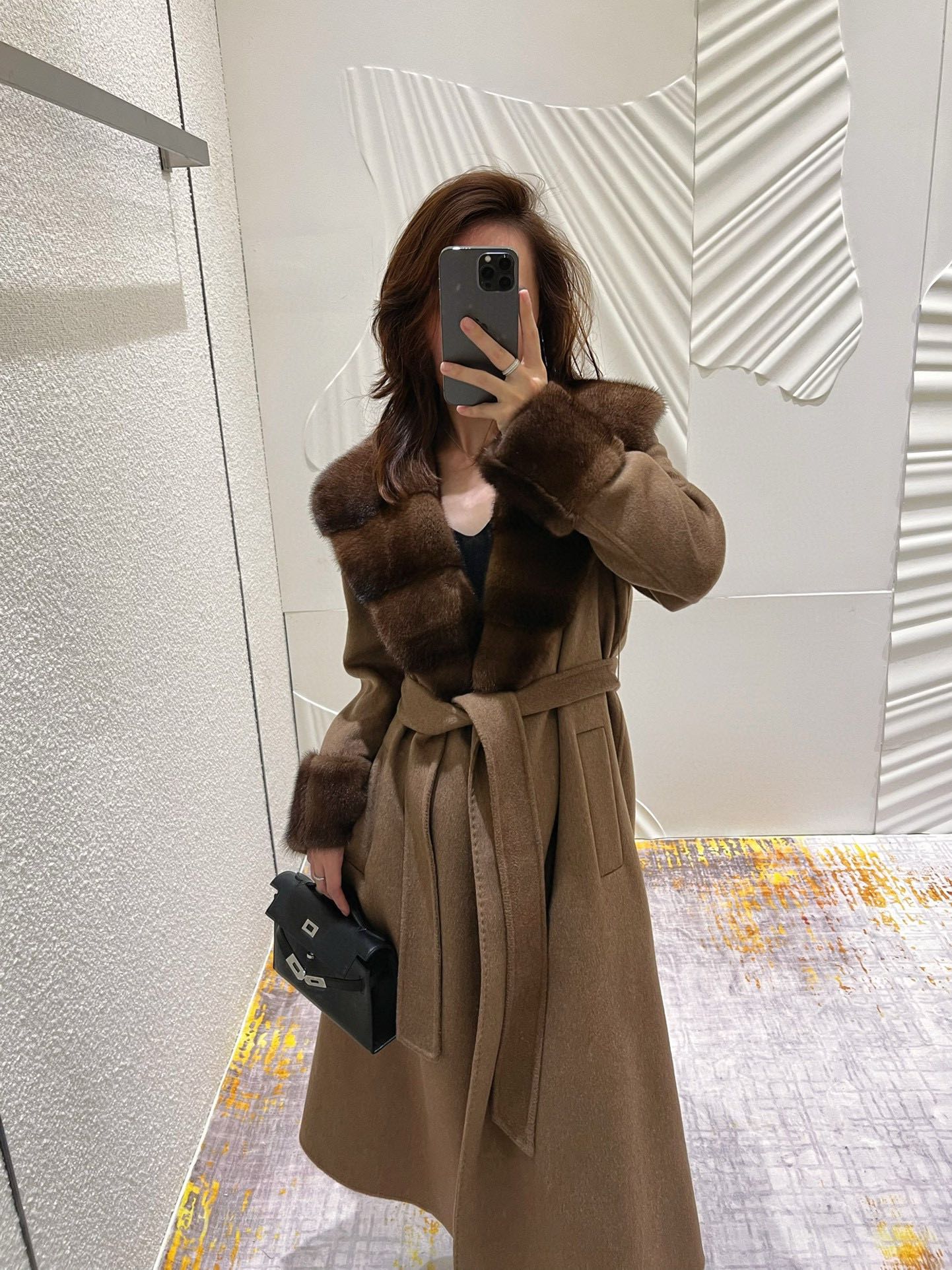 NIGO Loro Piana Women's Fall And Winter Solid Color Mink Shawl Collar Wool Fabric Drawstring Long Coat Jacket #nigo74642