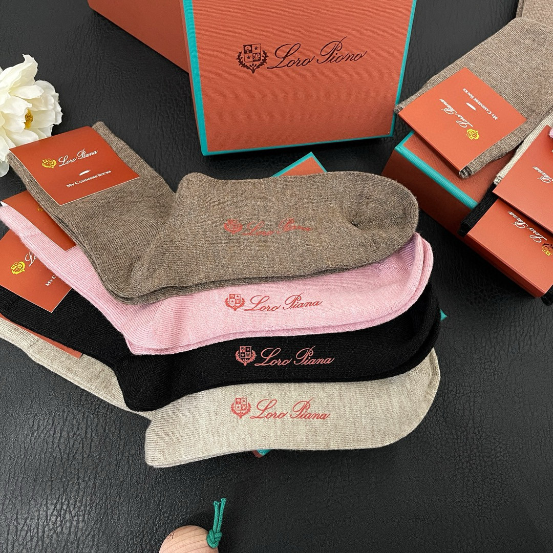 NIGO Loro Piana Women's Men's Four Seasons Cashmere Socks Four Pairs In A Box High Quality Four Color Socks #nigo98291