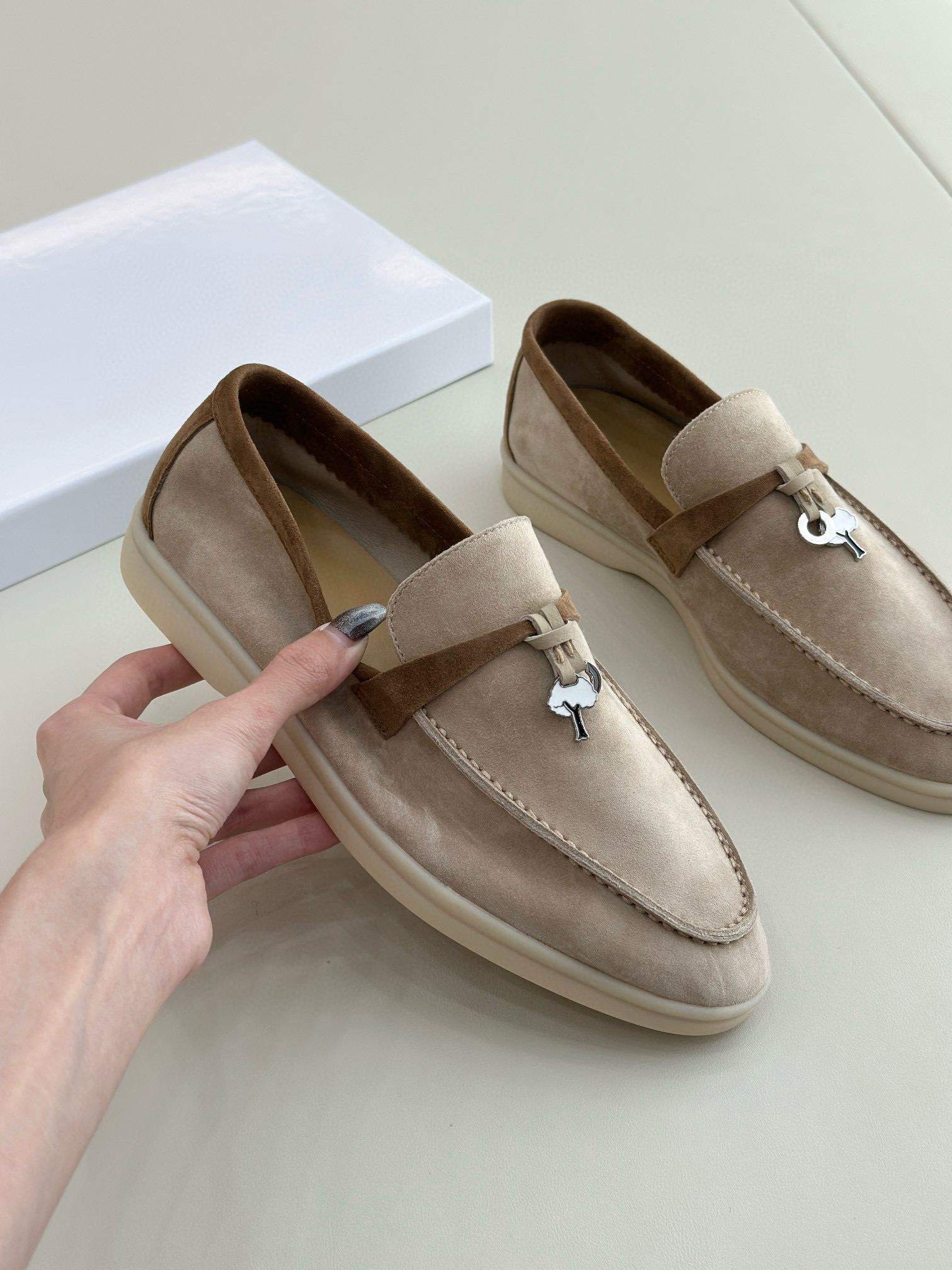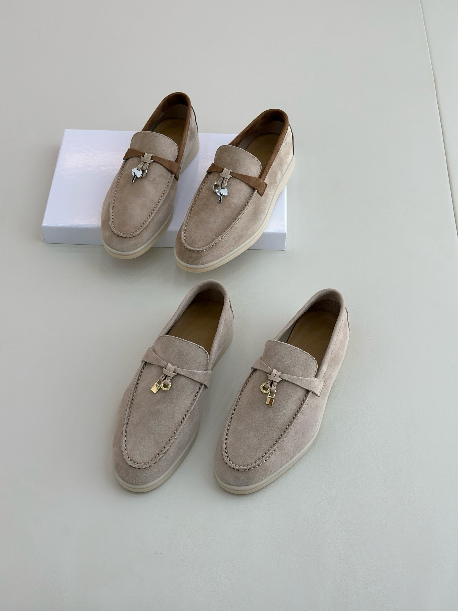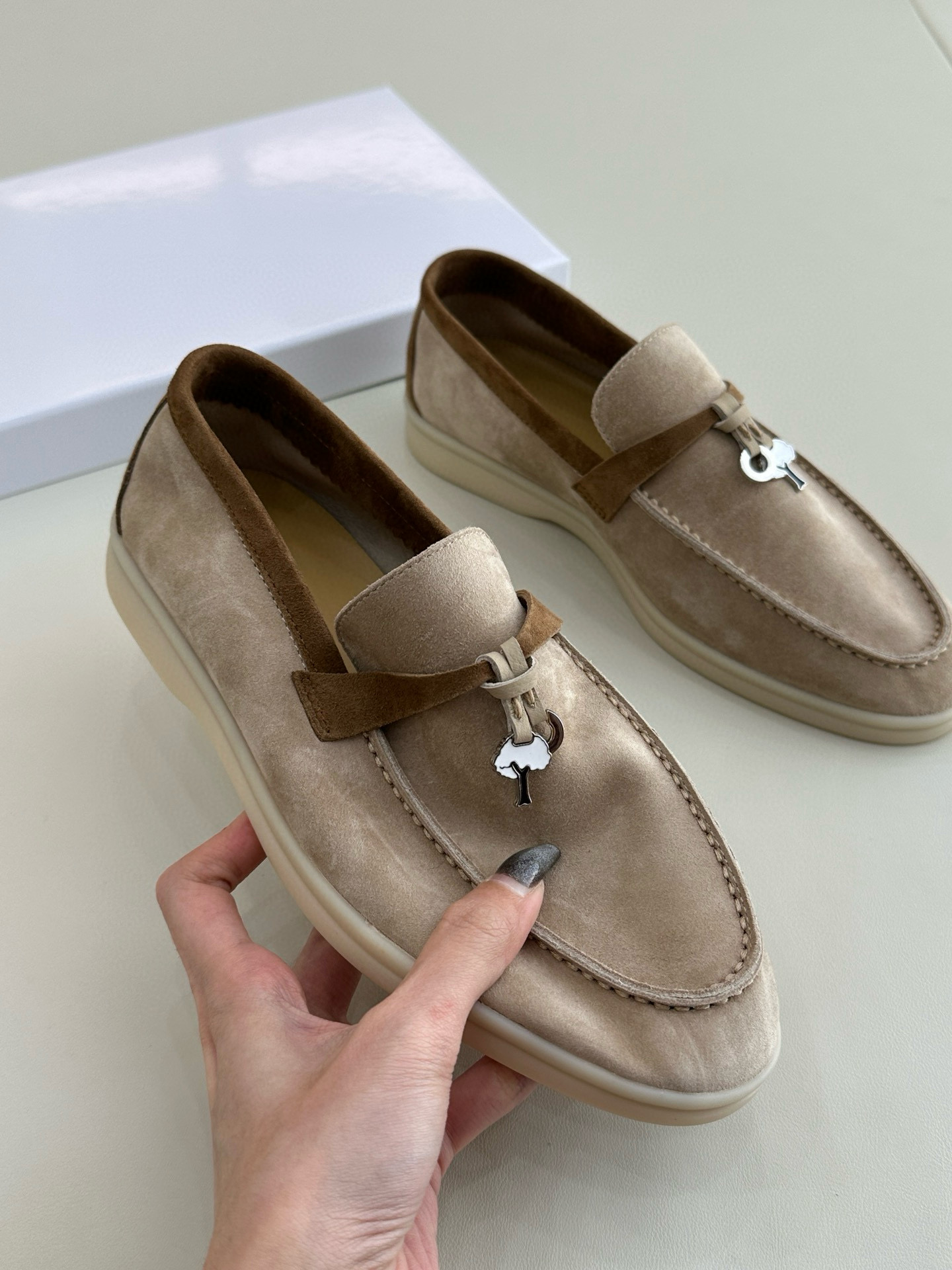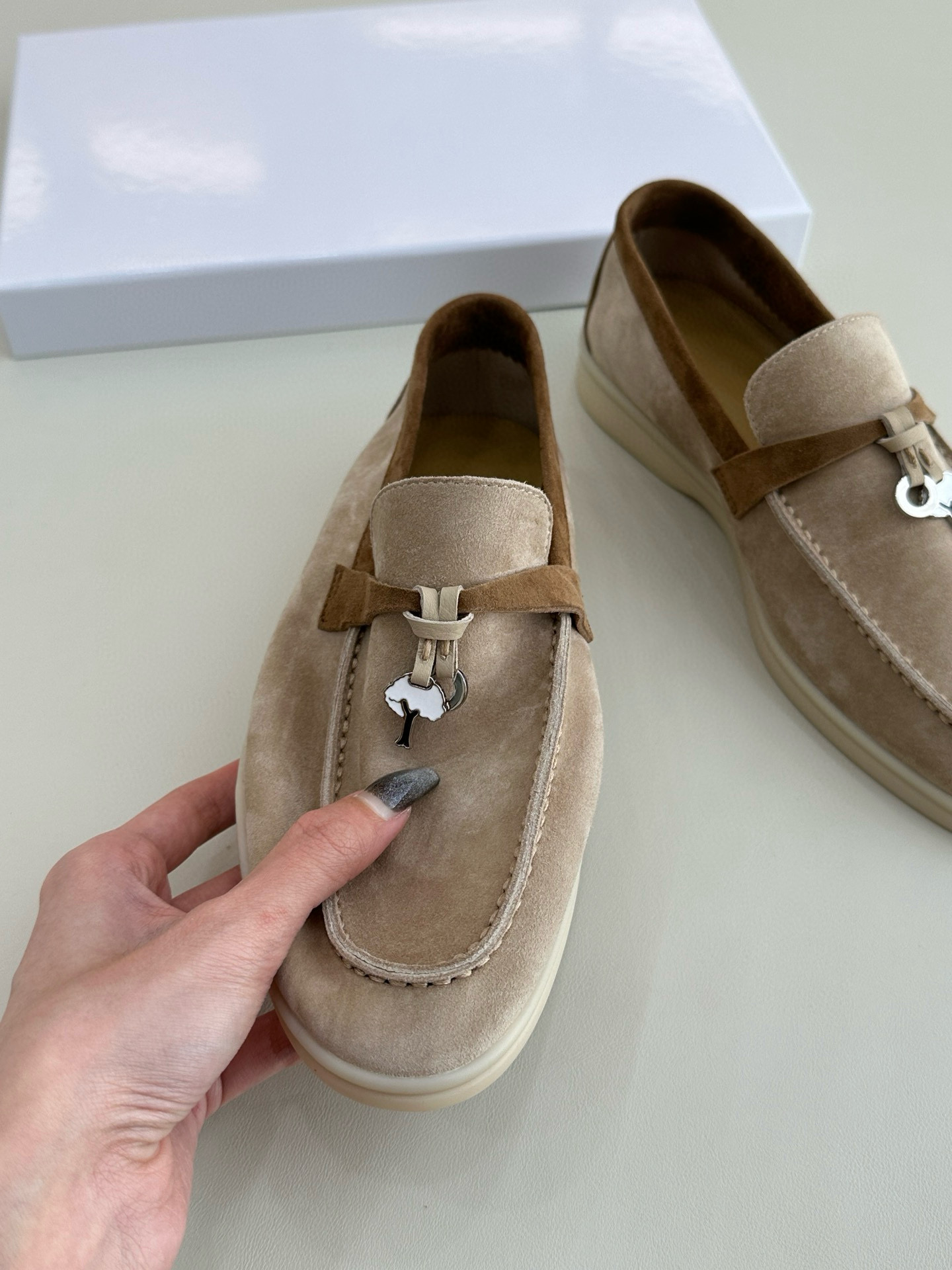 NIGO Loro Piana Women's Solid Color Suede Leather Pendant Flat Loafers Shoes #nigo98125