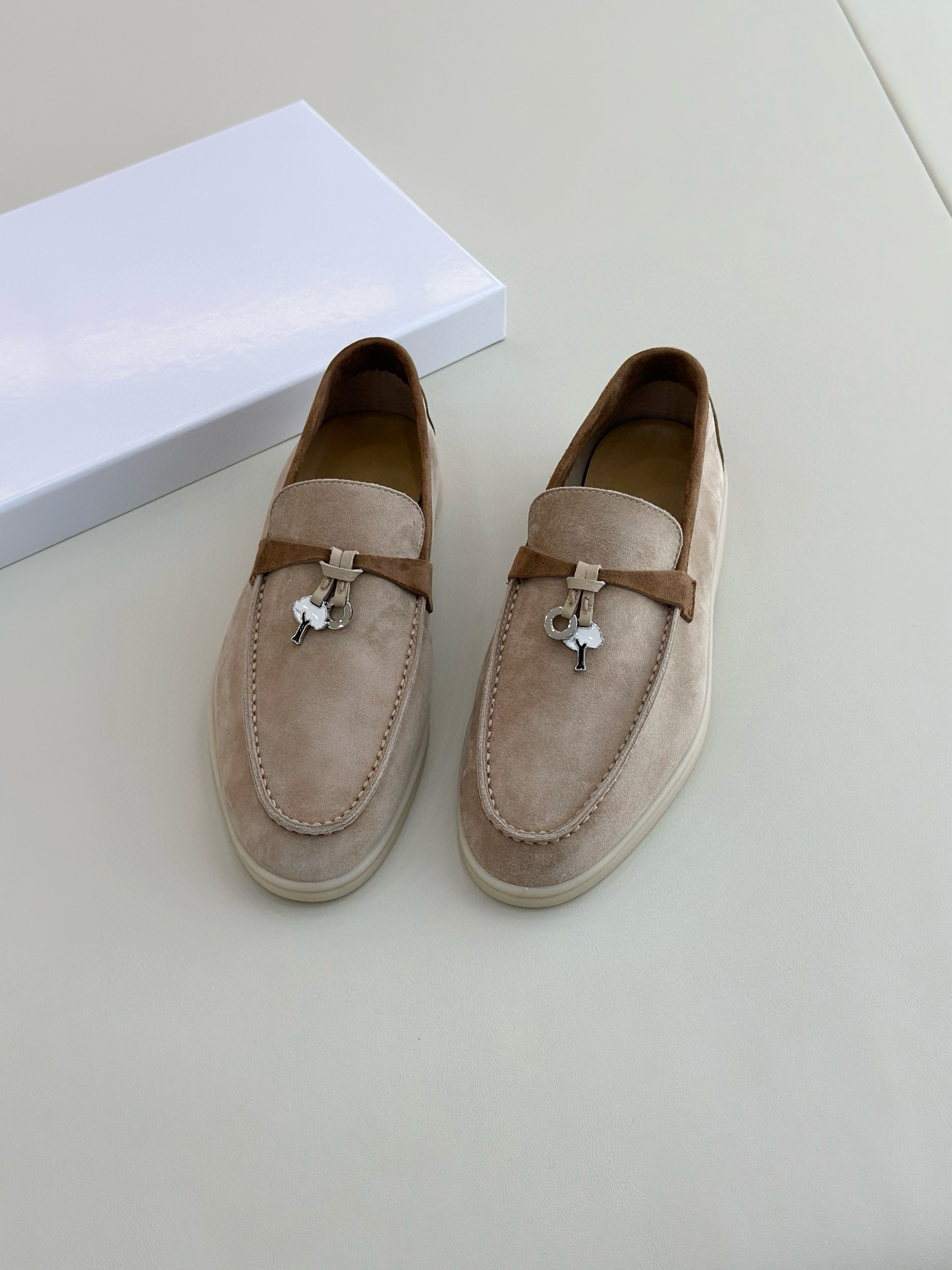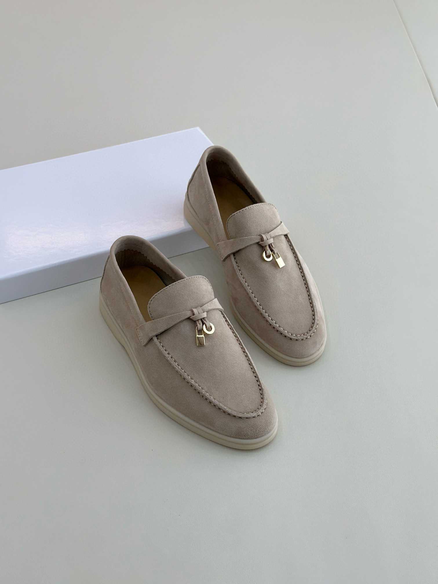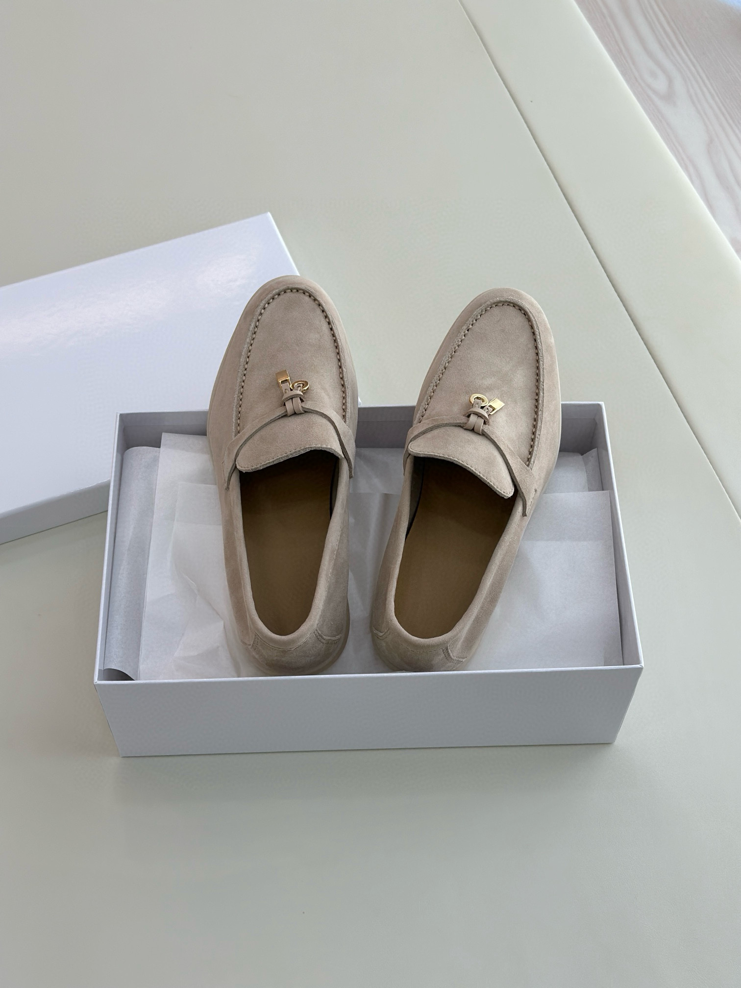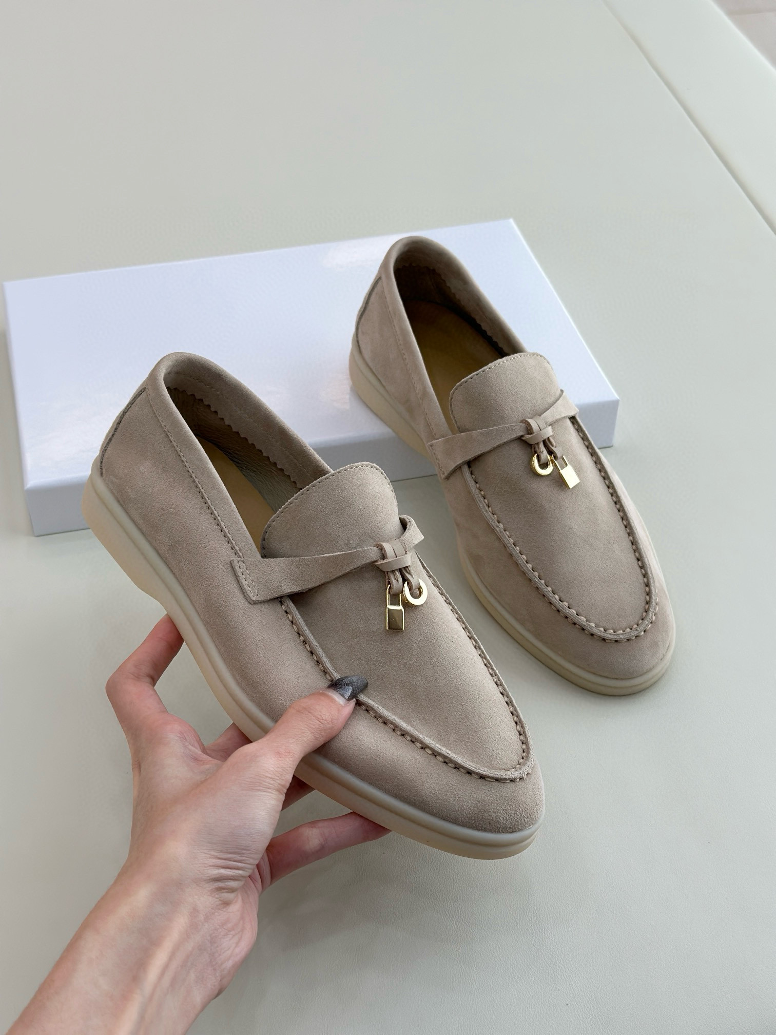 NIGO Loro Piana Women's Solid Color Suede Leather Pendant Flat Loafers Shoes #nigo98125