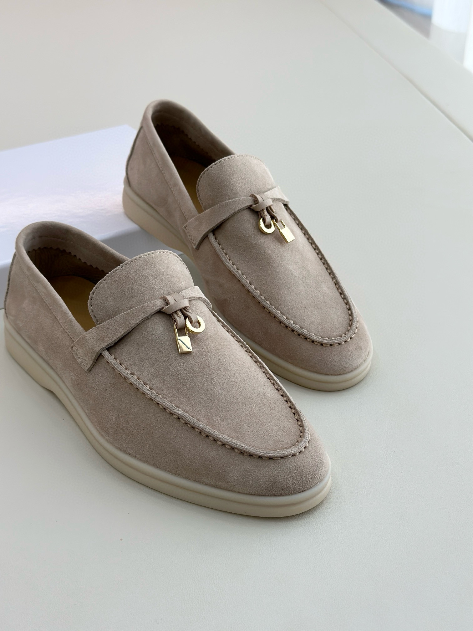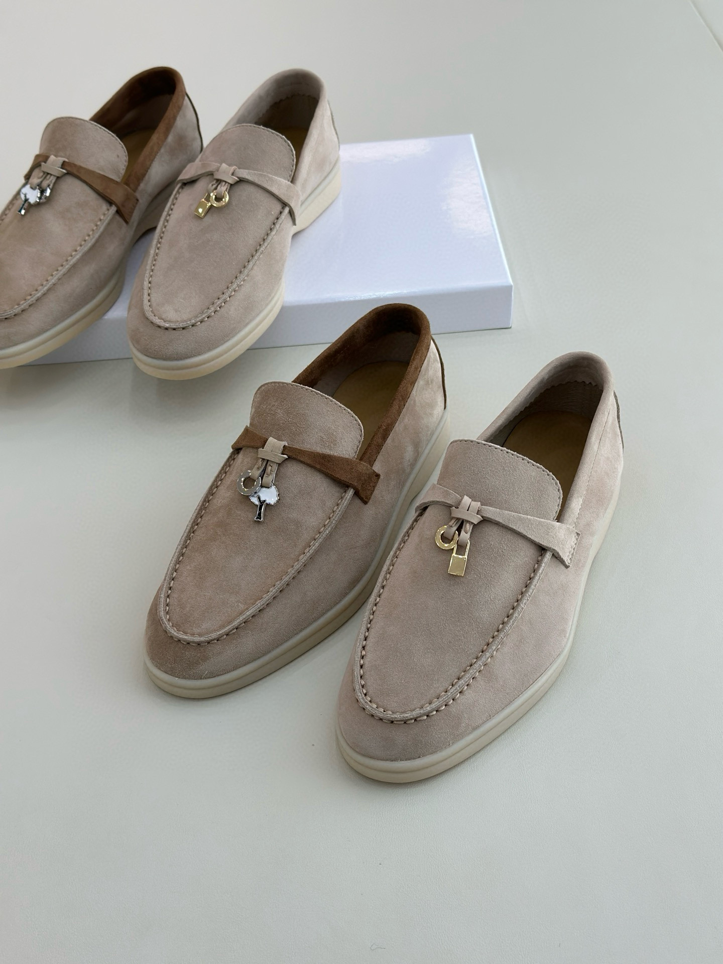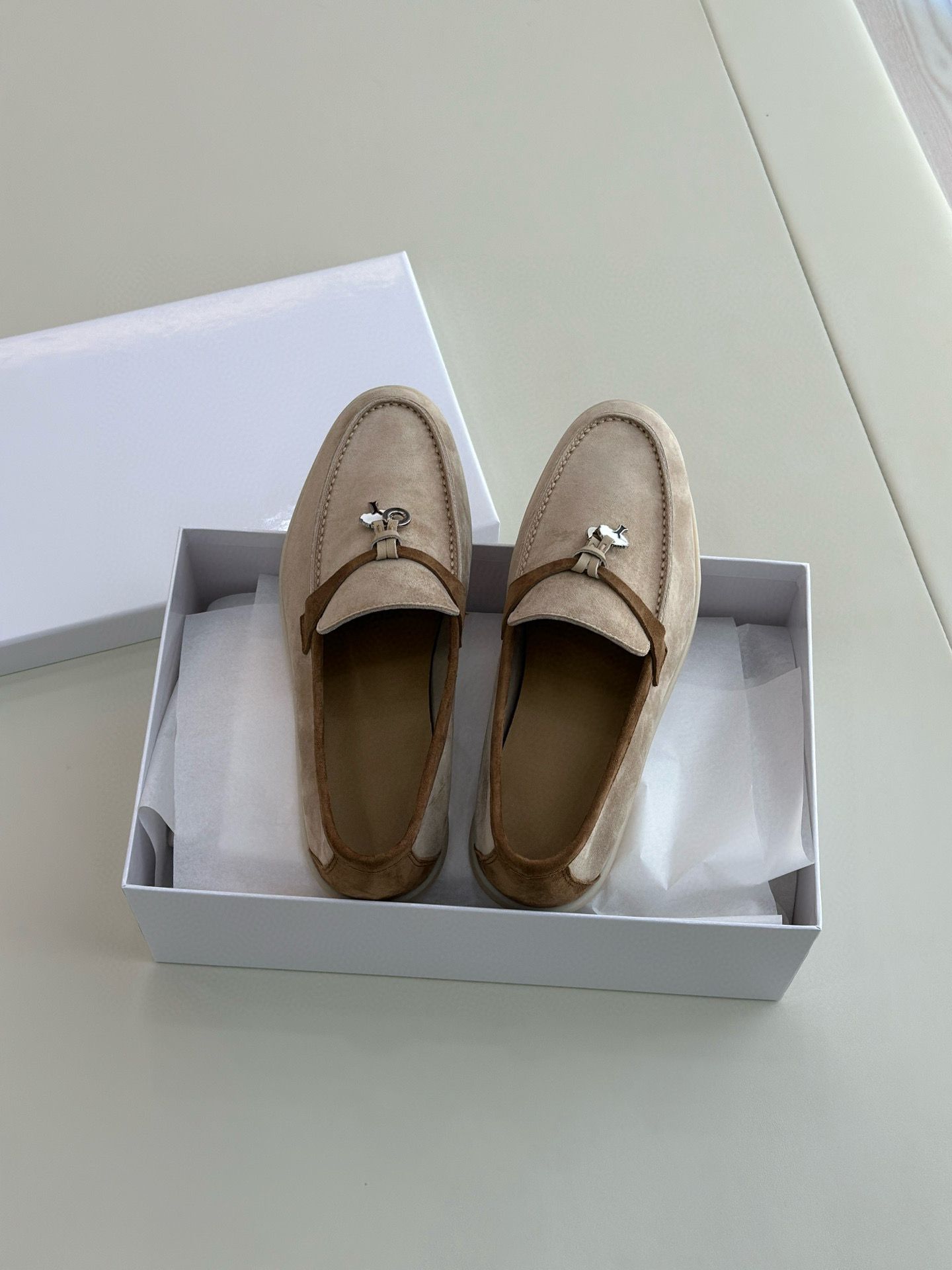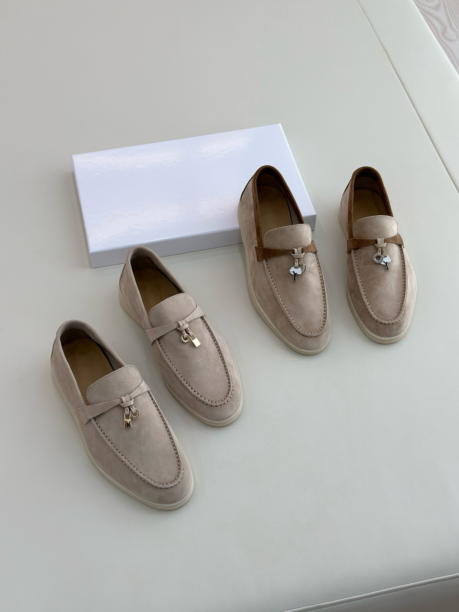 NIGO Loro Piana Women's Solid Color Suede Leather Pendant Flat Loafers Shoes #nigo98125