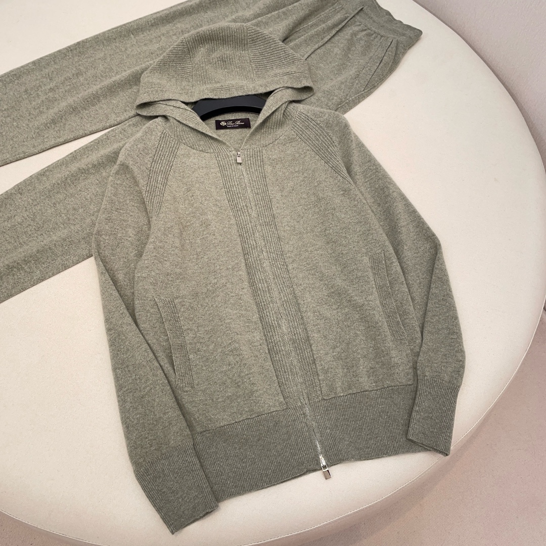 NIGO Loro Piana Women's Spring Autumn Winter Bomber Merano Jacket Cashmere Solid Color Zipper Long Sleeve Hooded Coat Casual Drawstring Merano Pants Ngvp #nigo9722