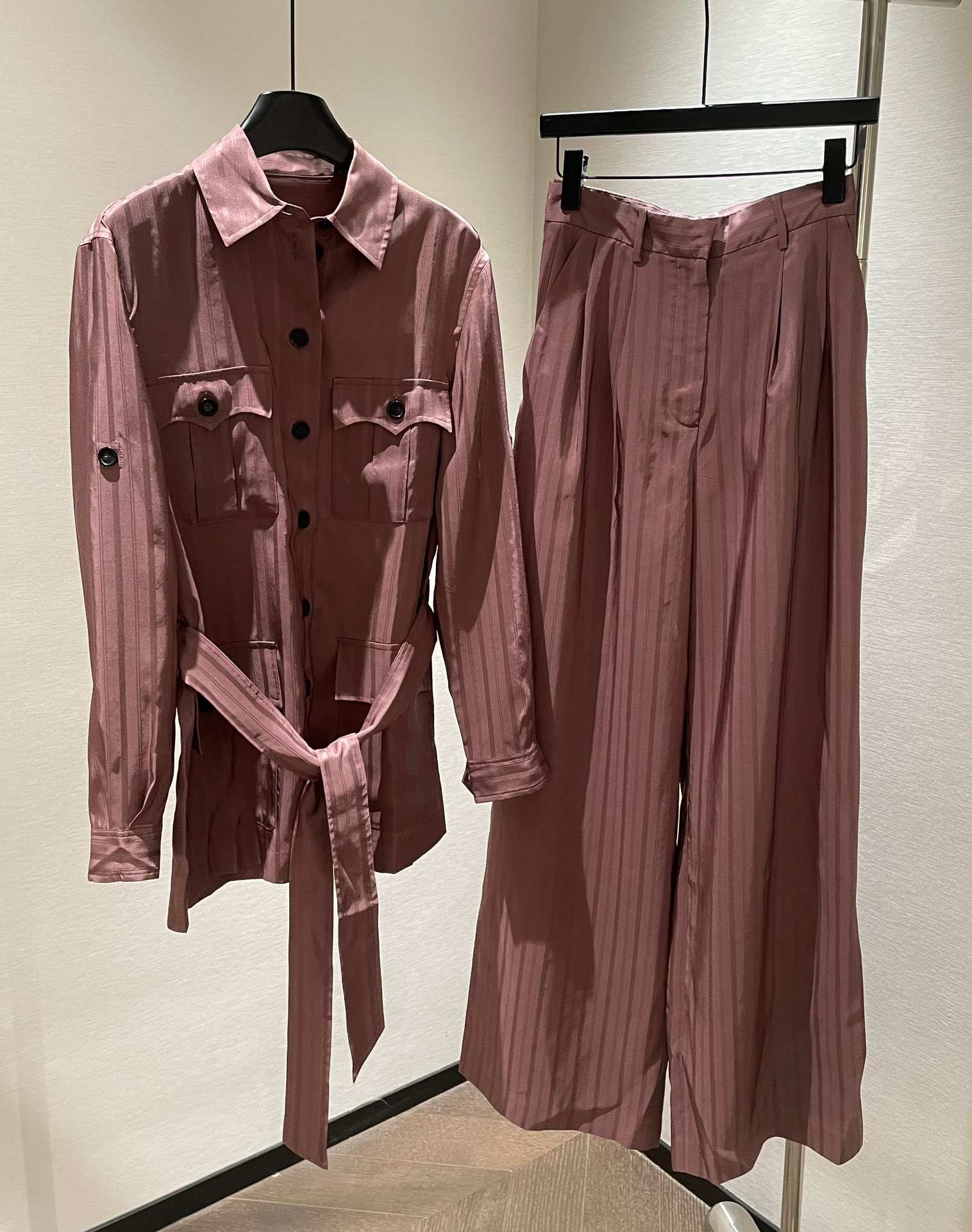 NIGO Loro Piana Women's Spring Summer Autumn Amanda Solid Color Striped Belt Silk Long Sleeve Shirt Casual Wide Leg Pants Haris Pants Ngvp #nigo1841