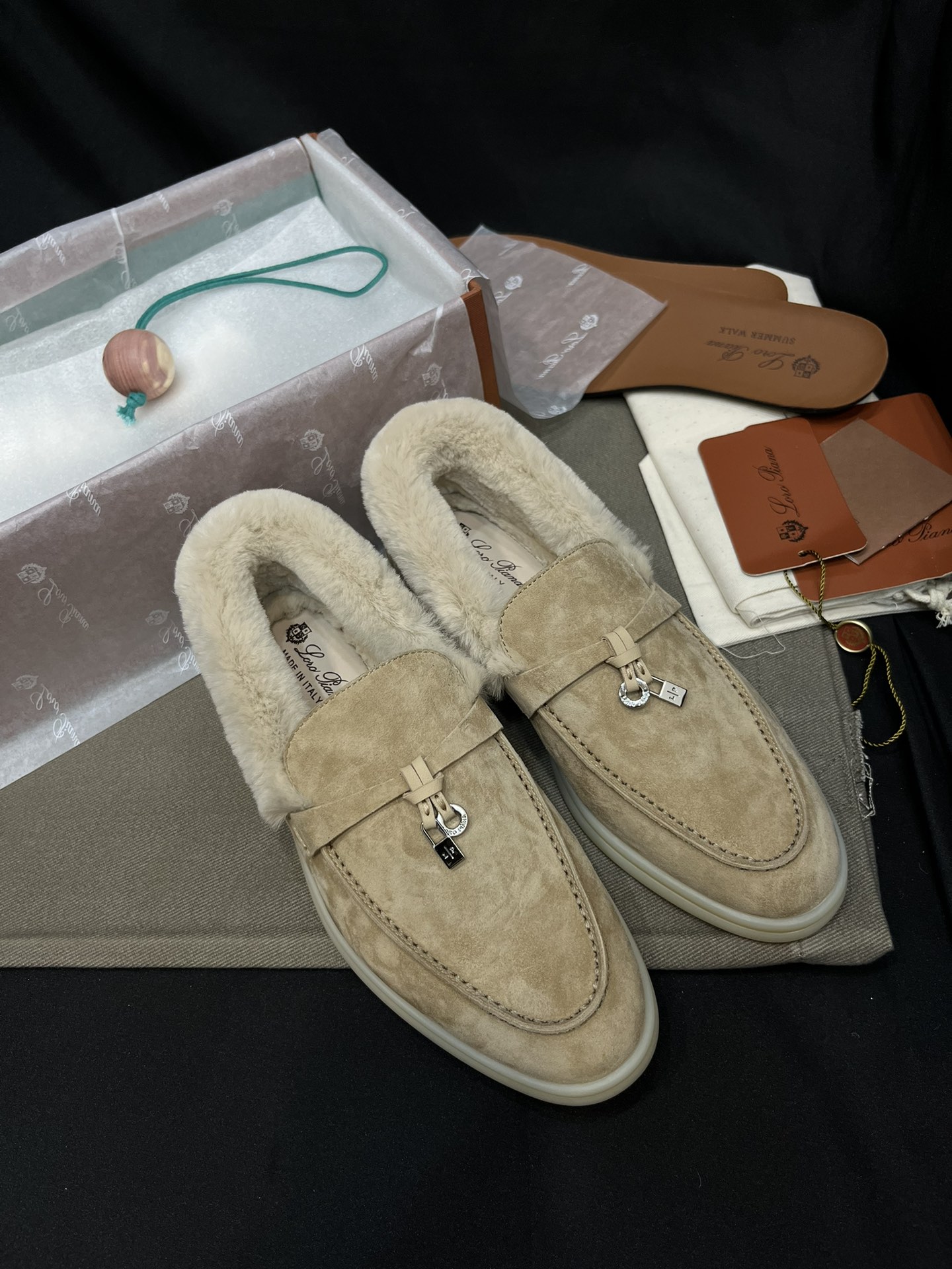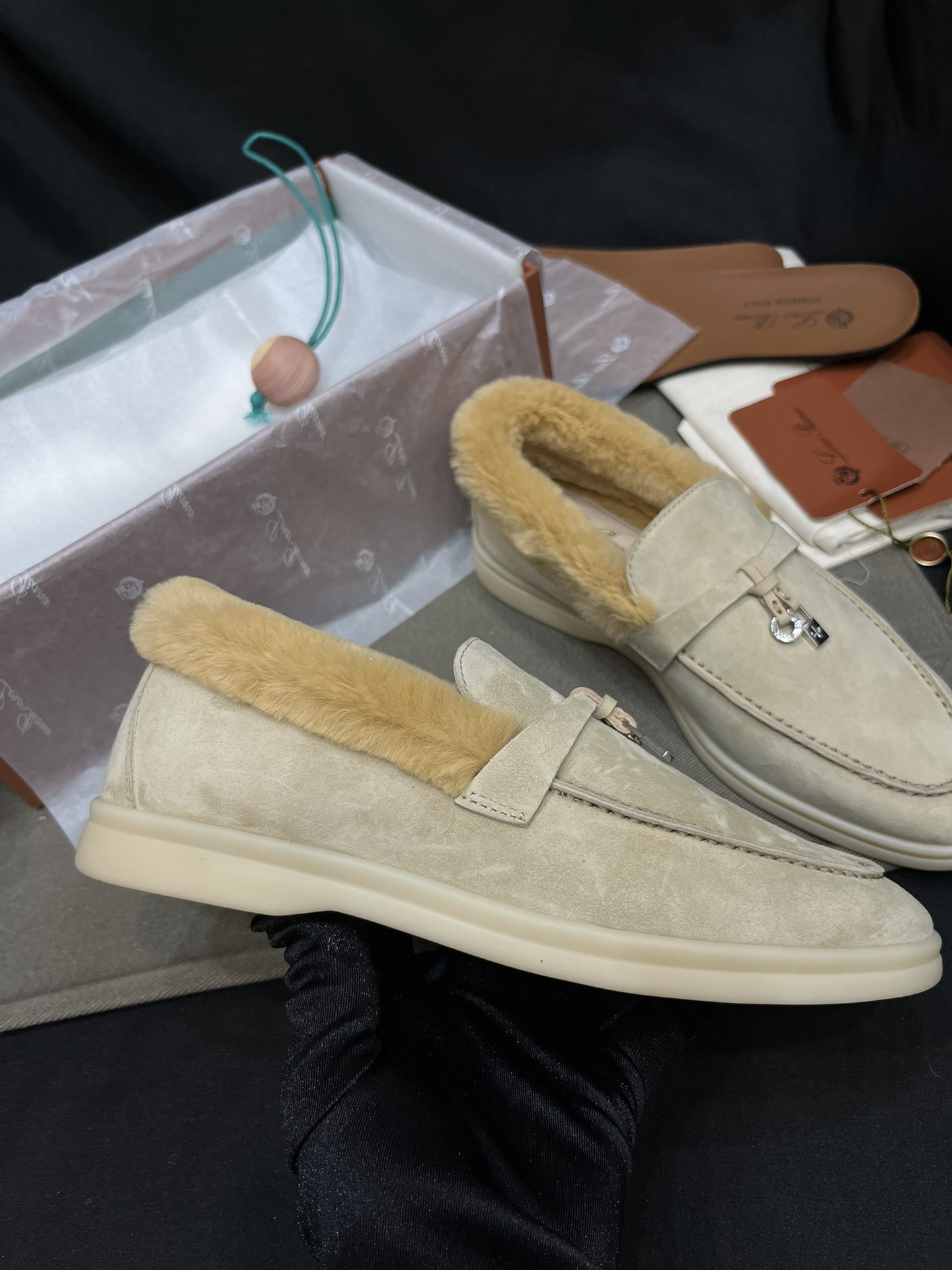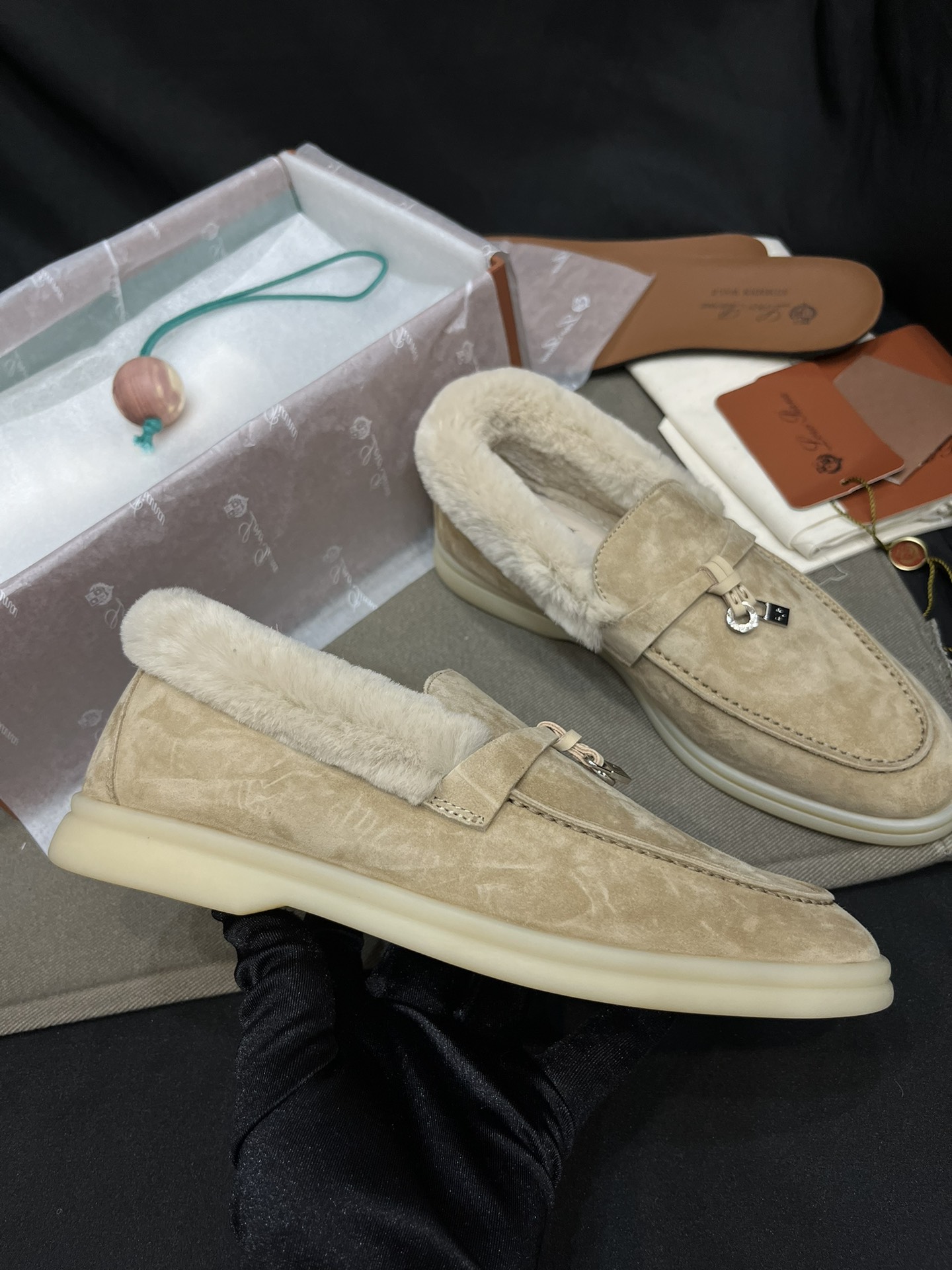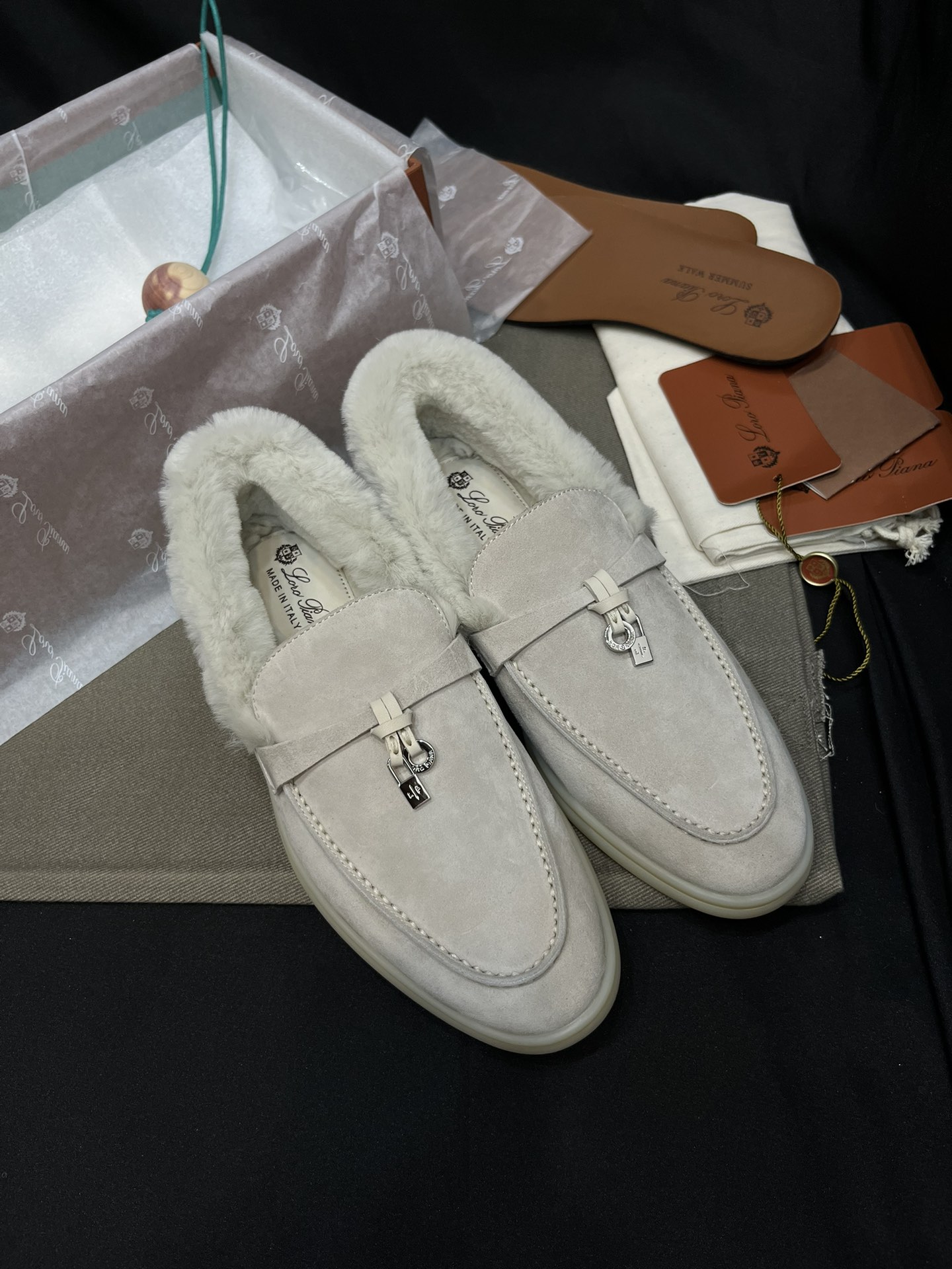 NIGO Loro Piana Women's Summer Charms Walk Moccasin Shoes Spring/Summer/Fall Solid-Color Beaver Fur Round-Toe Loafers Casual Shoes #nigo81598