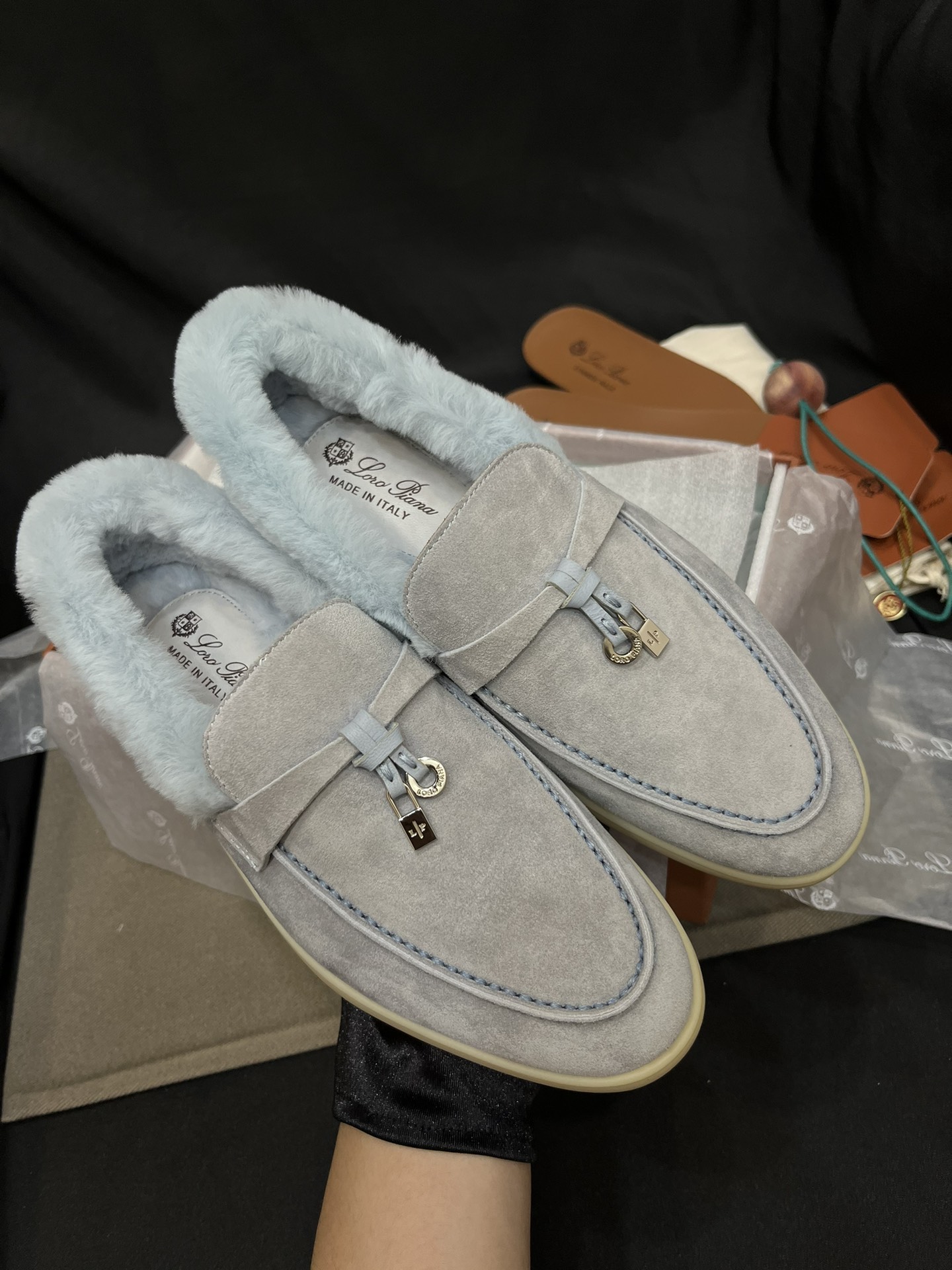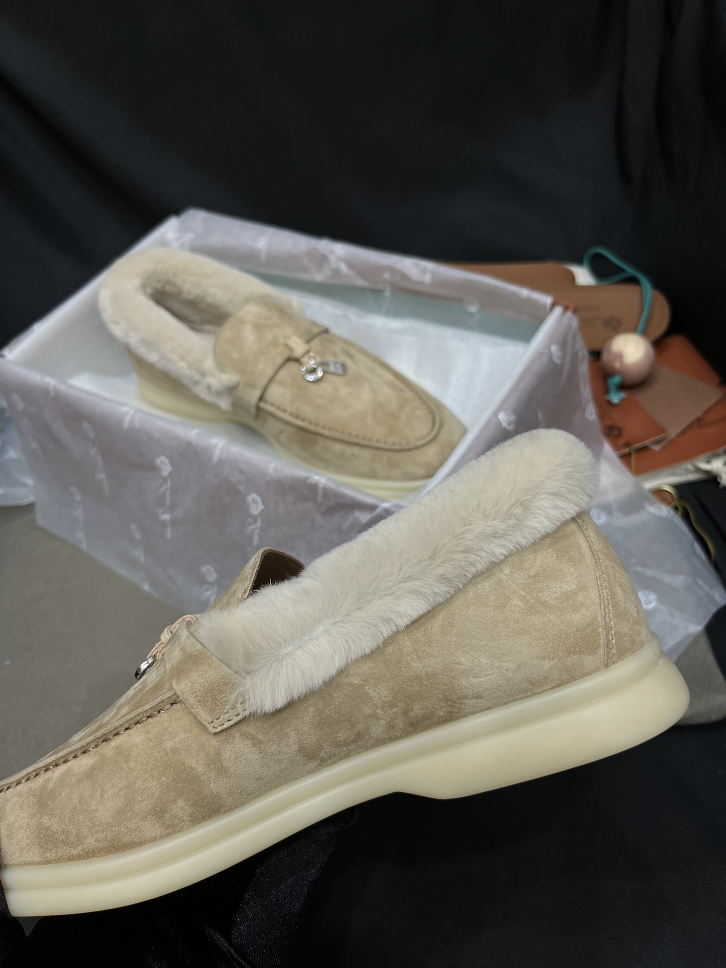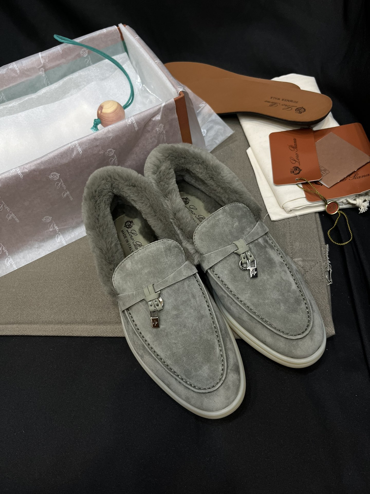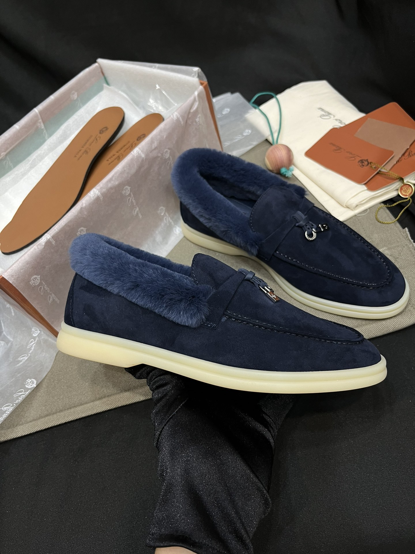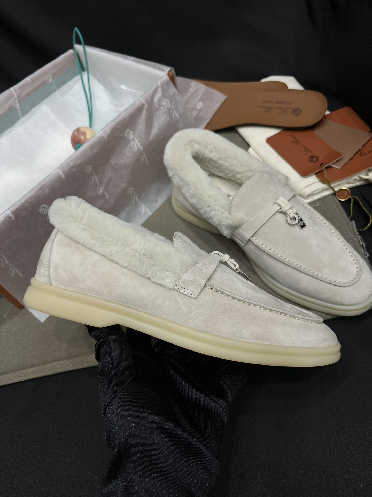 NIGO Loro Piana Women's Summer Charms Walk Moccasin Shoes Spring/Summer/Fall Solid-Color Beaver Fur Round-Toe Loafers Casual Shoes #nigo81598