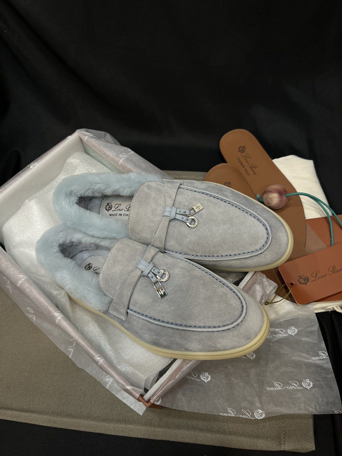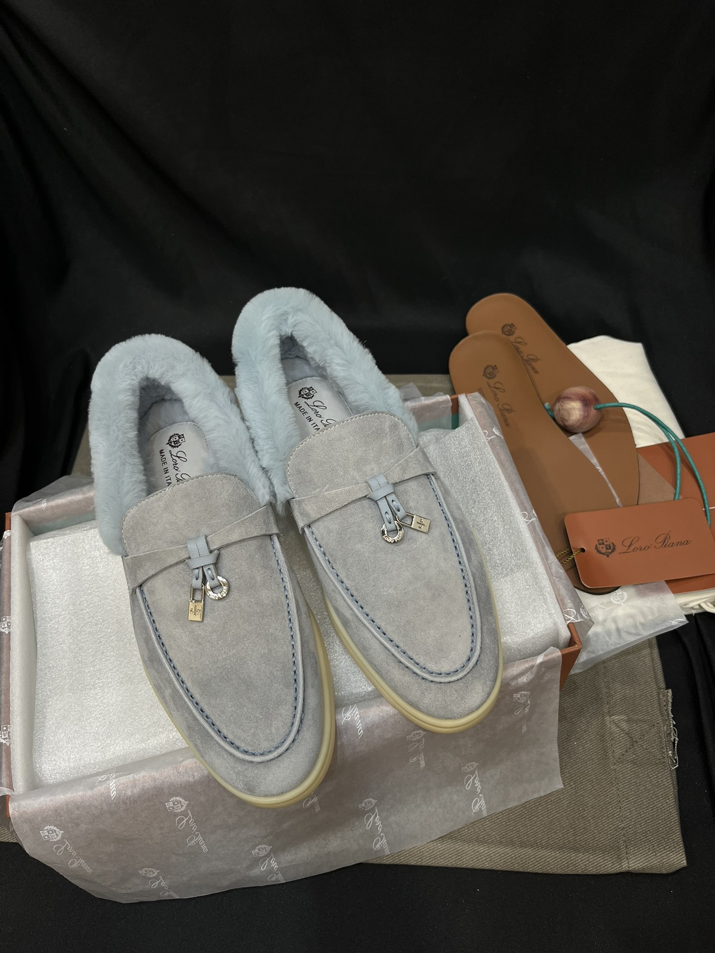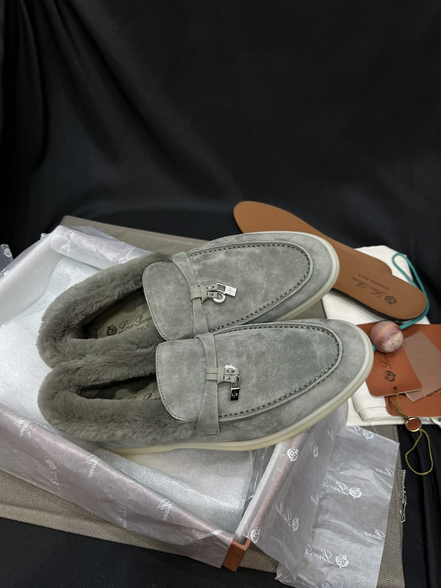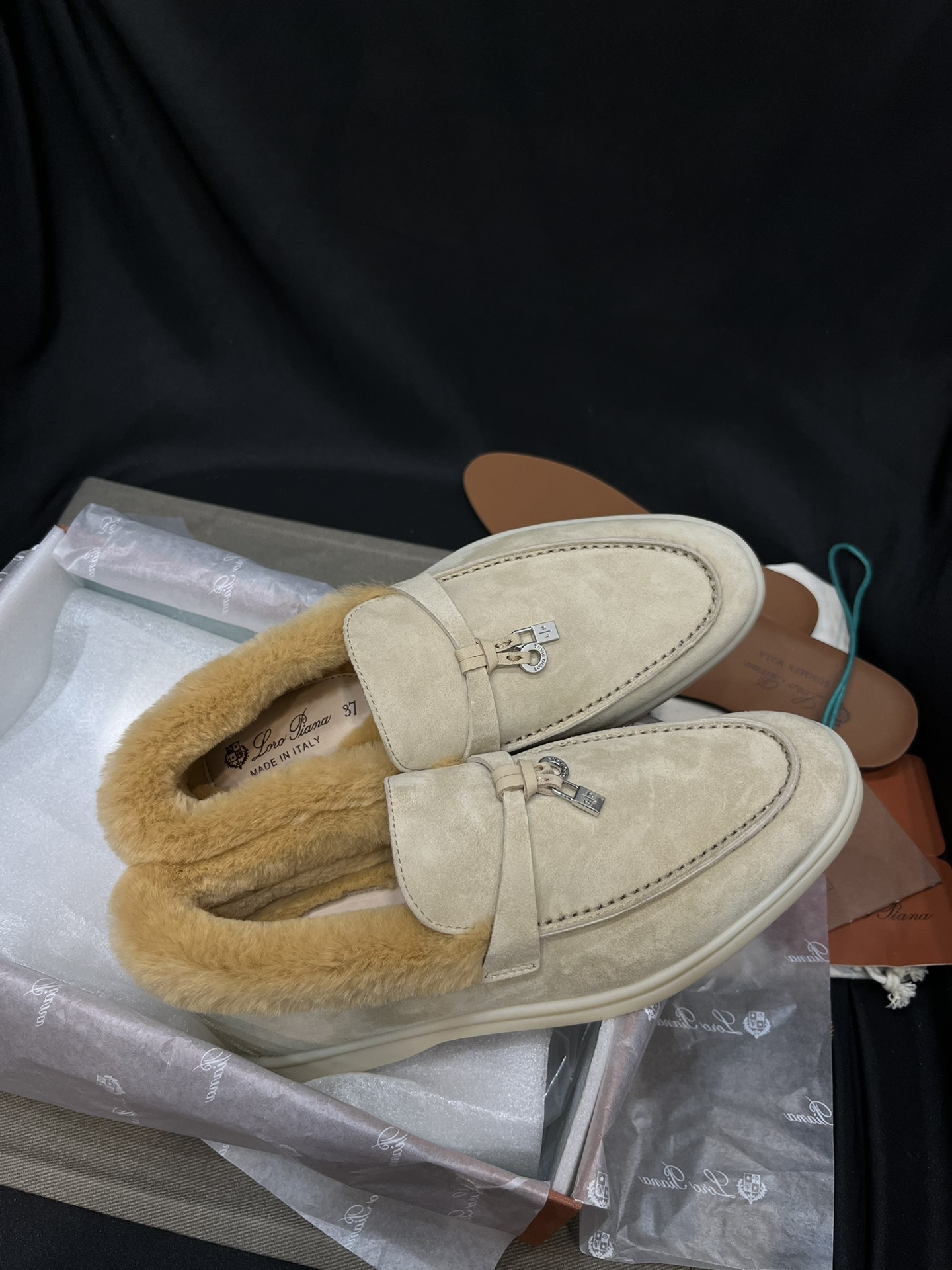 NIGO Loro Piana Women's Summer Charms Walk Moccasin Shoes Spring/Summer/Fall Solid-Color Beaver Fur Round-Toe Loafers Casual Shoes #nigo81598