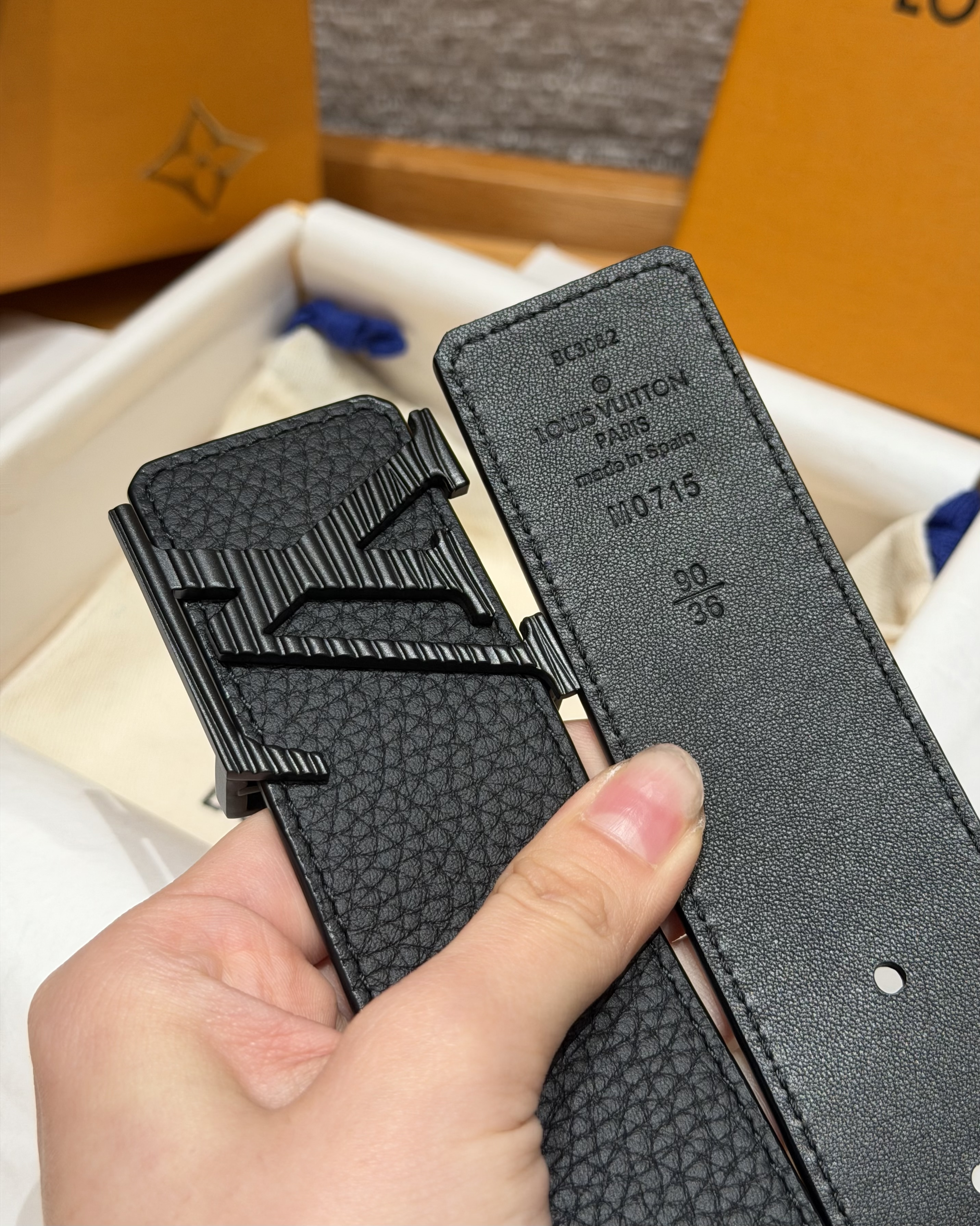 This Louis Vuitton belt showcases the brand's exceptional craftsmanship and attention to detail. this piece combines timeless luxury with modern style.