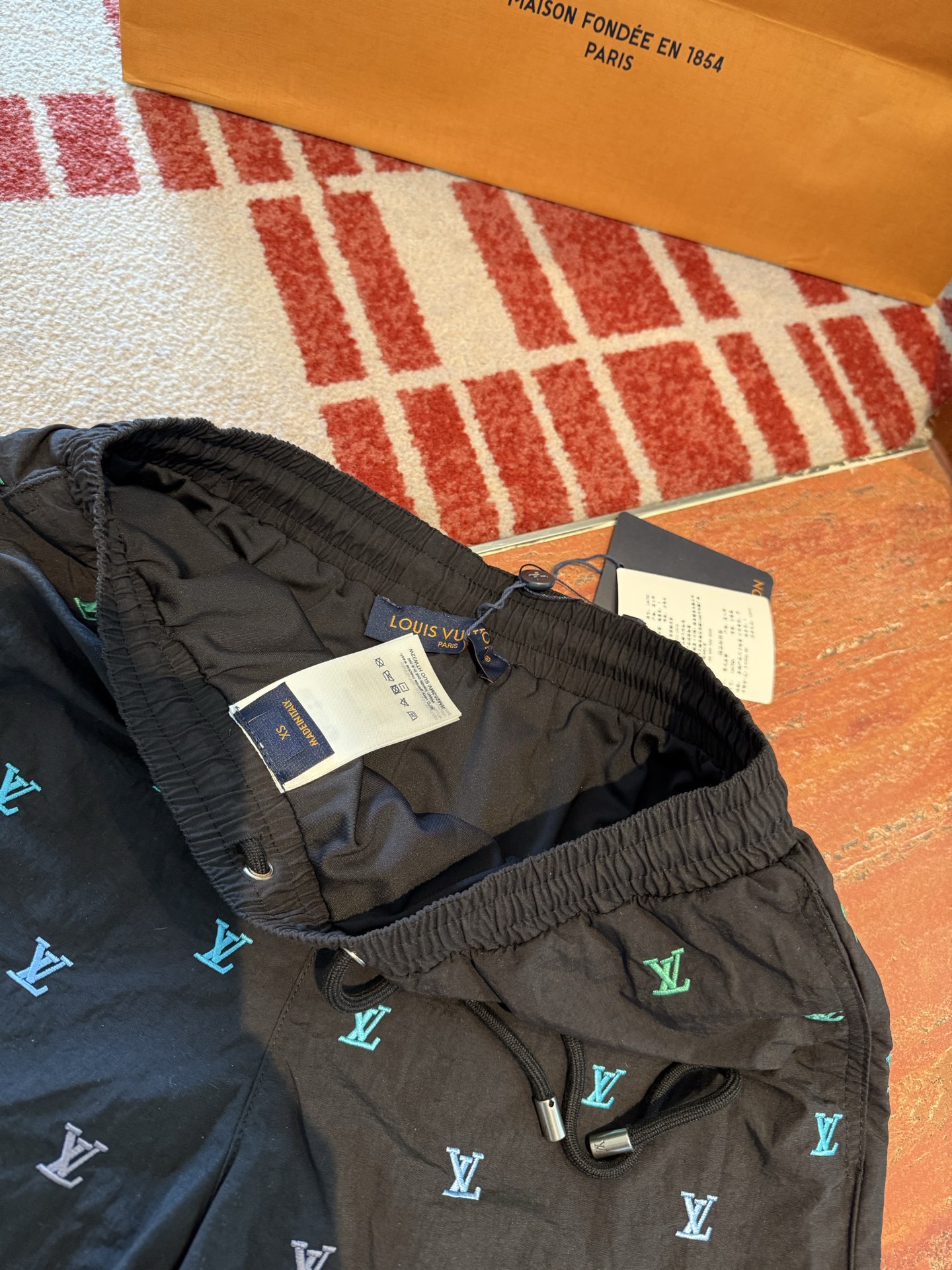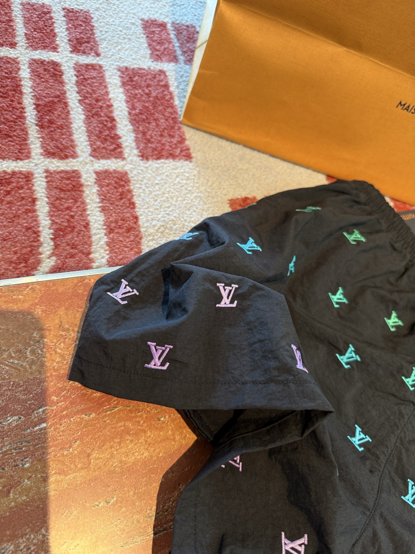 NIGO Louis Vuitton LV BLASON Men's Gradient Embroidered Logo Print Solid Color Drawstring Beach Shorts #nigo77563