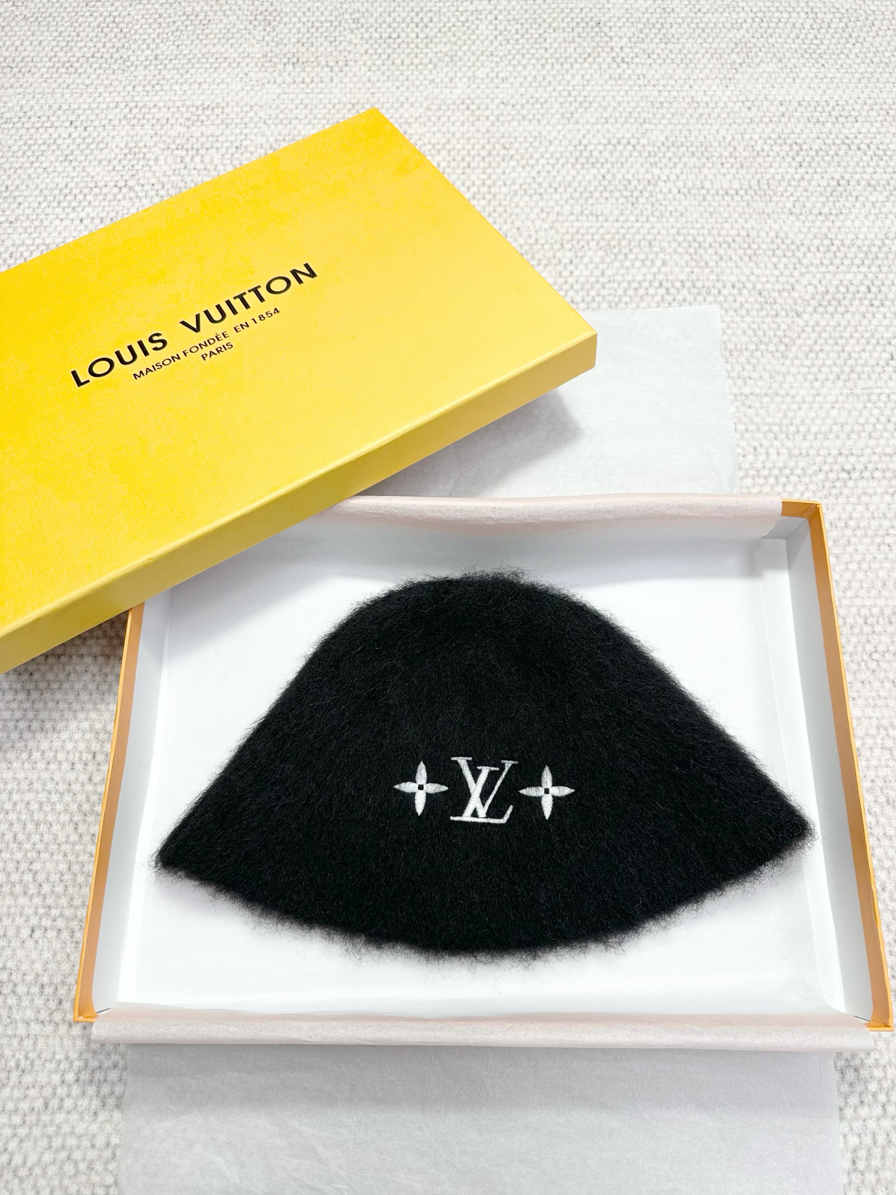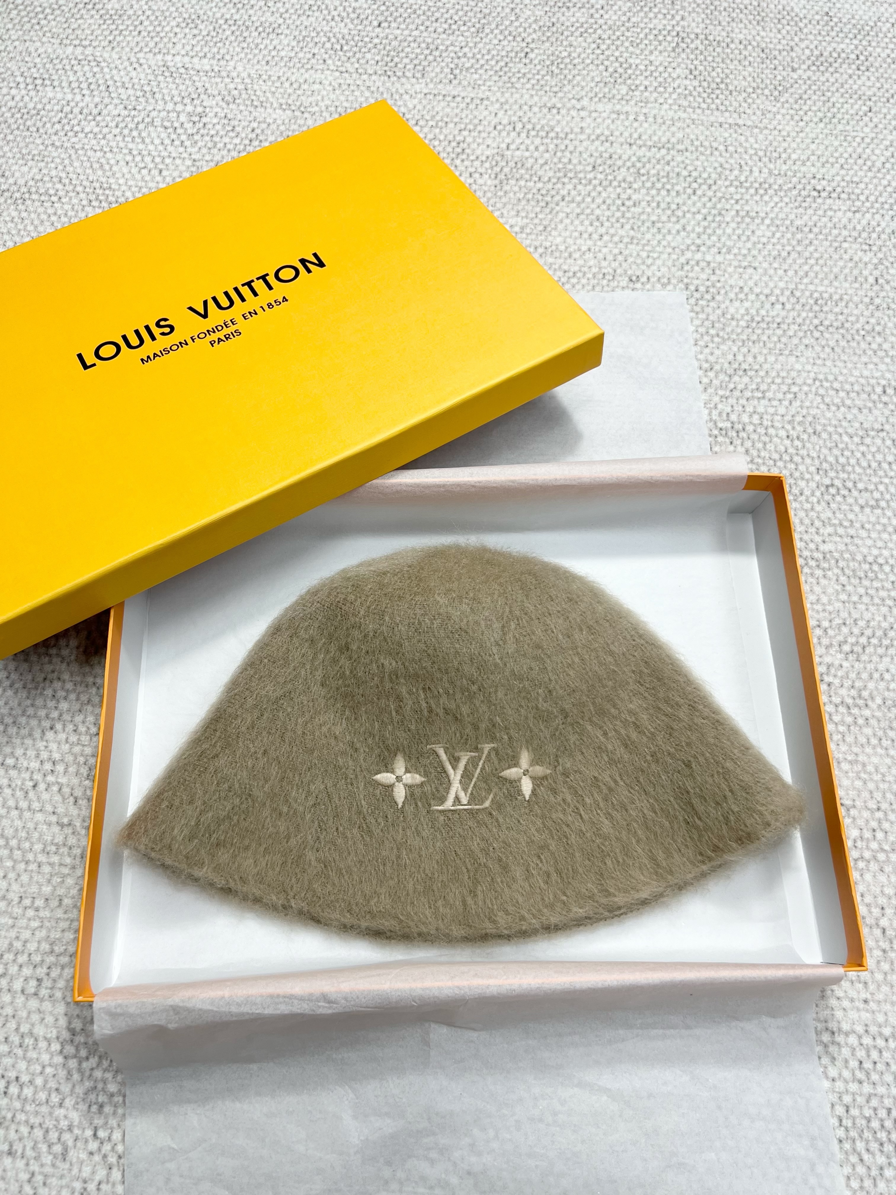 NIGO Louis Vuitton LV Fluffy Women's Autumn and Winter Solid Color Embroidered Logo Logo Mohair Fisherman's Hat Cap #nigo74912