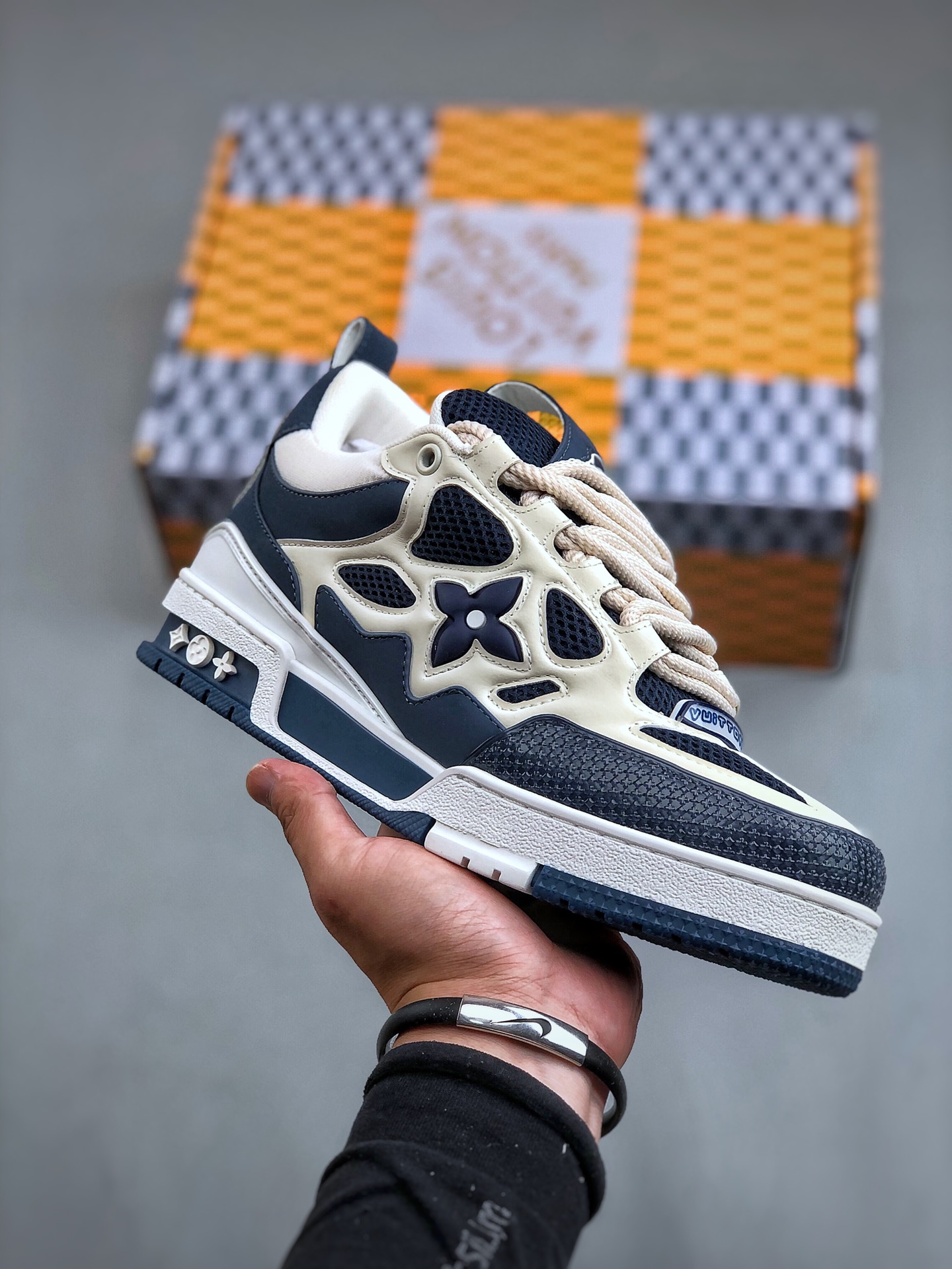 NIGO Louis Vuitton LV Skate Men's Logo Leather Low Cut Lace Up Board Shoes With Color Blocking Fashionable And Comfortable Casual Shoes #nigo72658