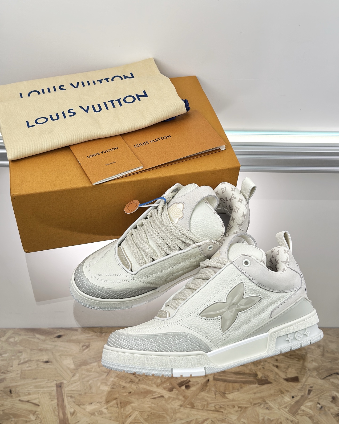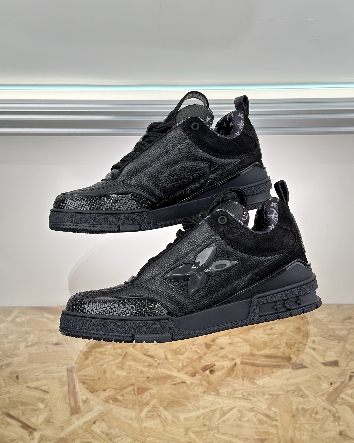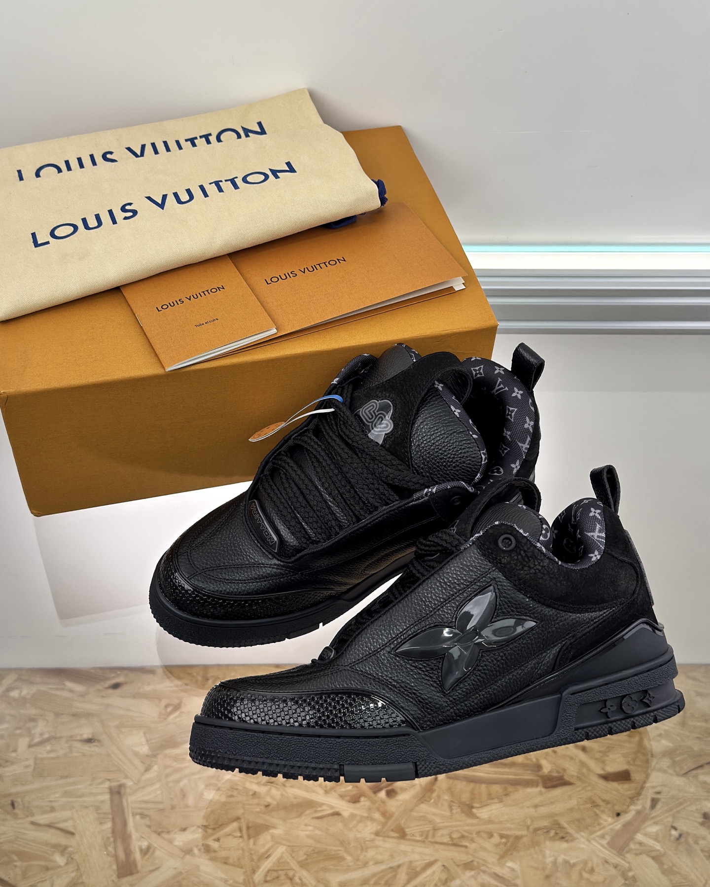 NIGO Louis Vuitton LV Skate Sneaker Men's Solid Color Calfskin Round Toe Low Top Lace Up Casual Board Shoes #nigo75534