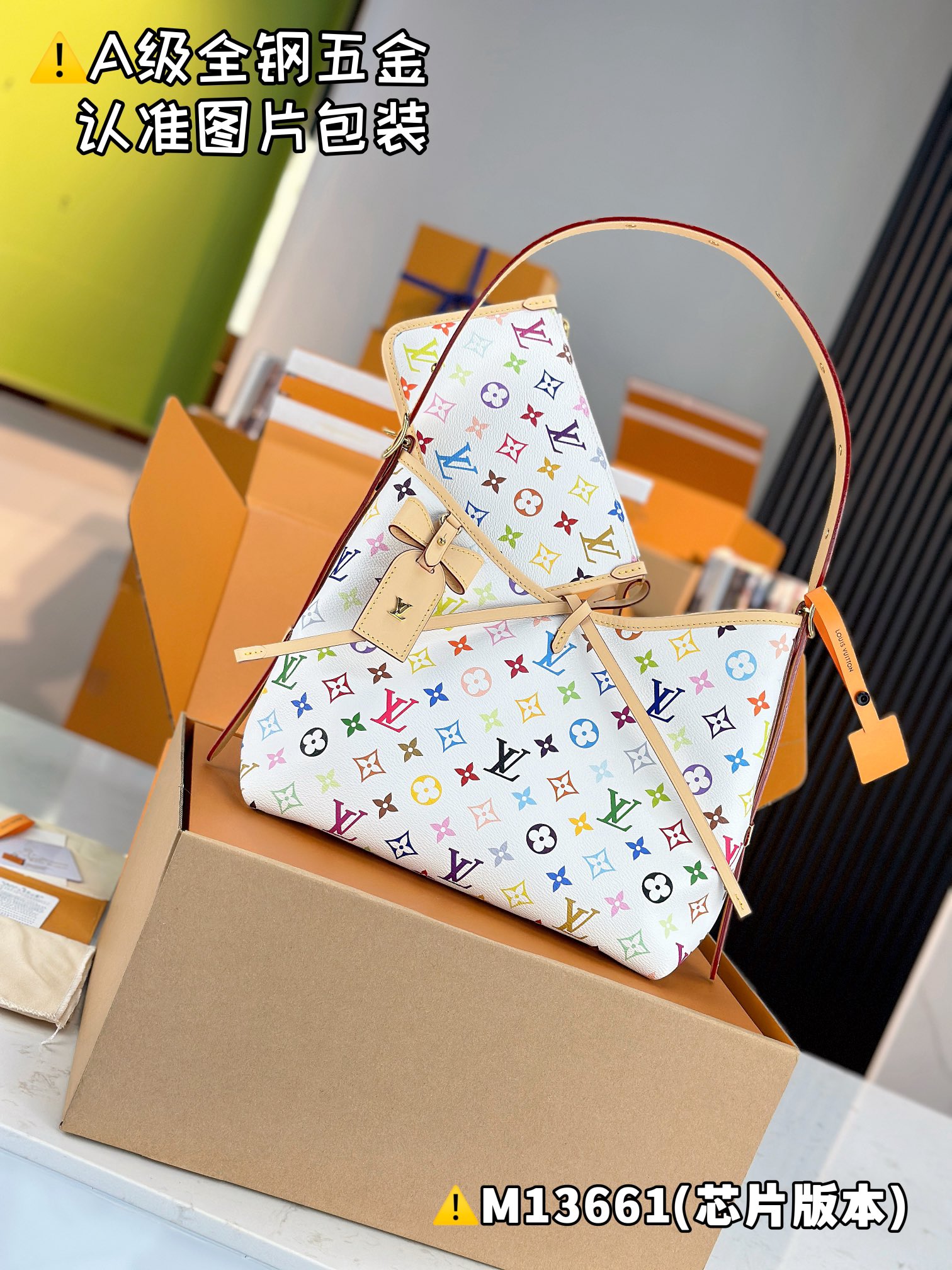 NIGO Louis Vuitton LV x TM CARRYALL Women's Detachable Adjustable Shoulder Strap Colorful Logo Printed Coated Canvas Tote Shoulder Bag Bags #nigo75793