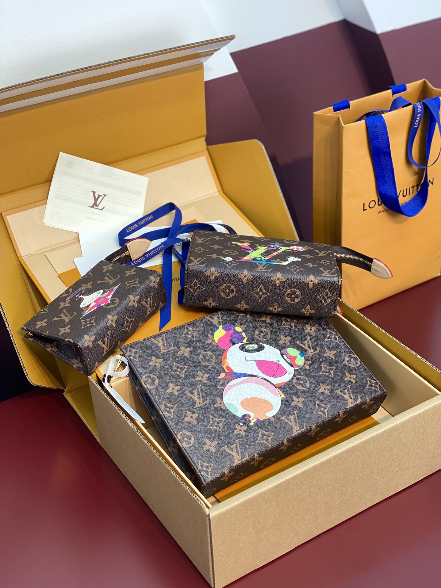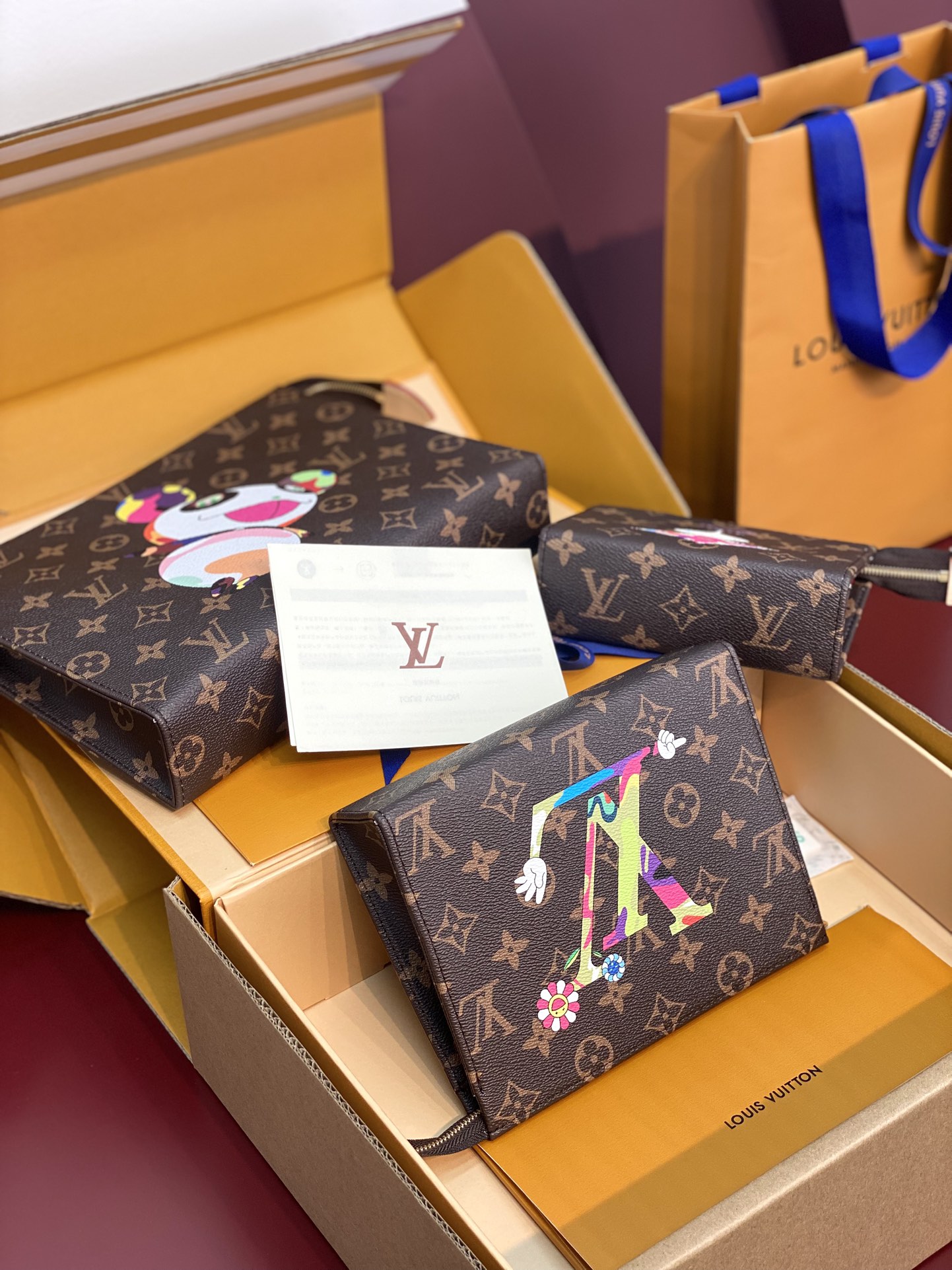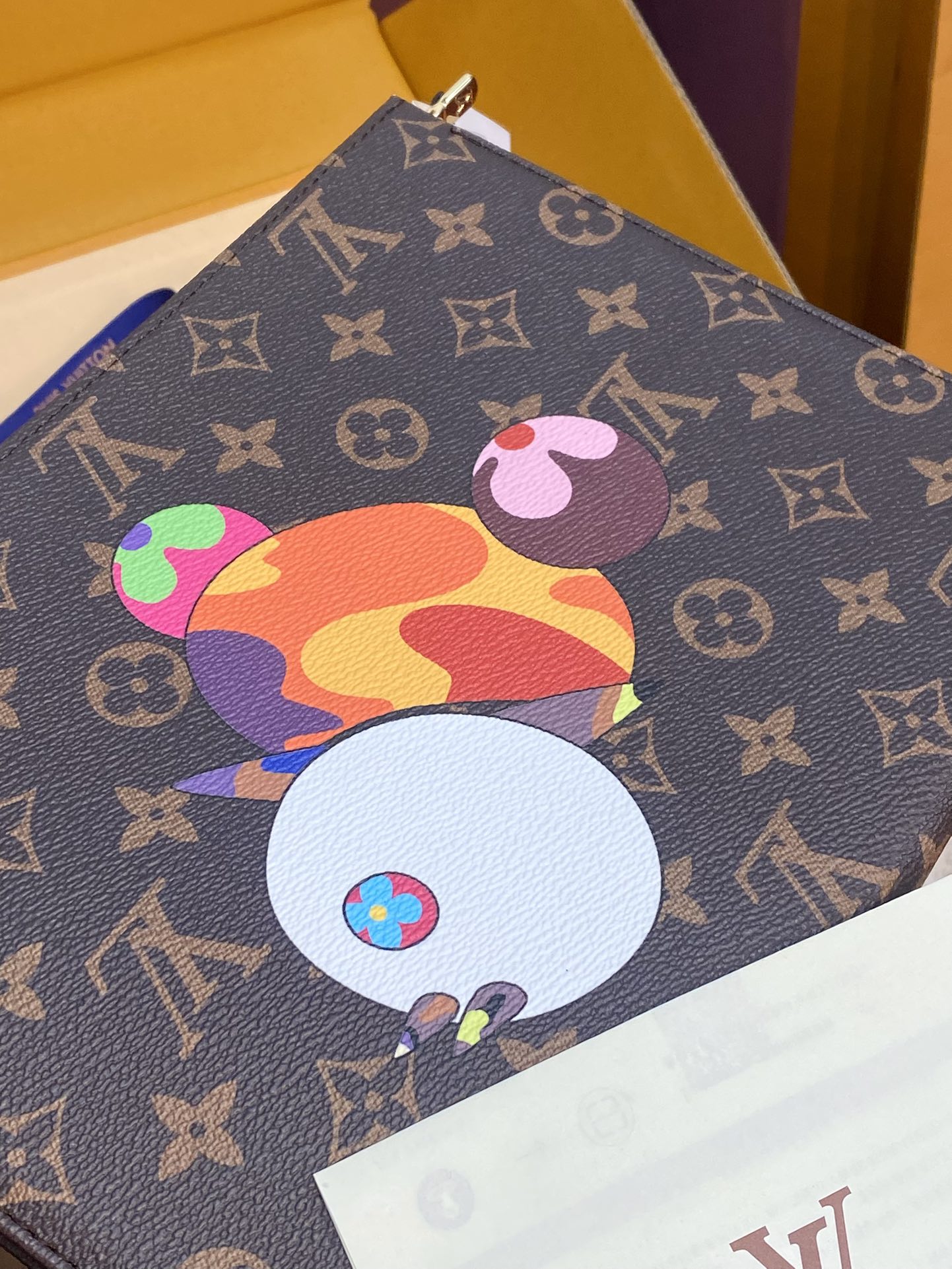 NIGO Louis Vuitton LV x TM Women's Solid Color Letter Print Graffiti Pattern Leather Zipper Closure Three-in-One Clutch Bag Bags #nigo77916