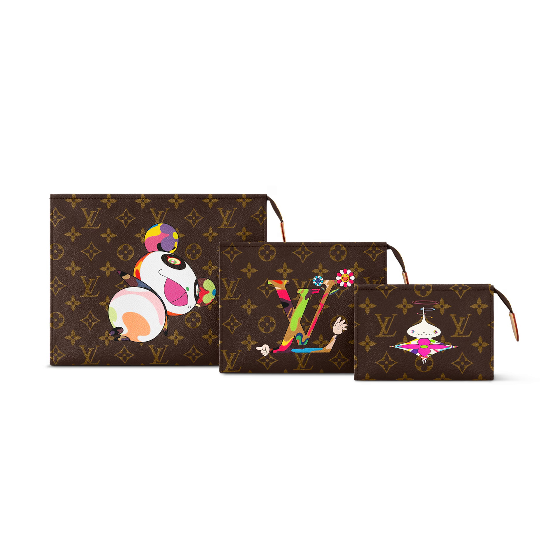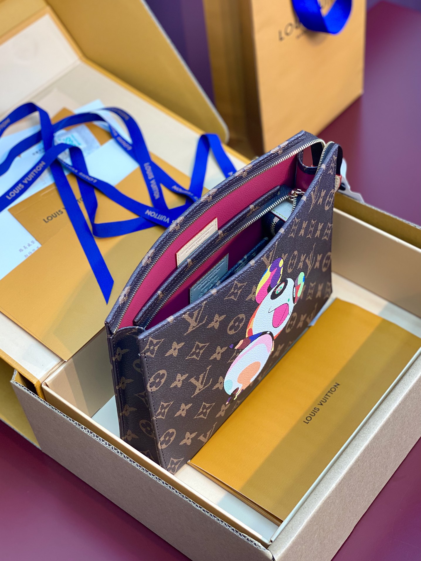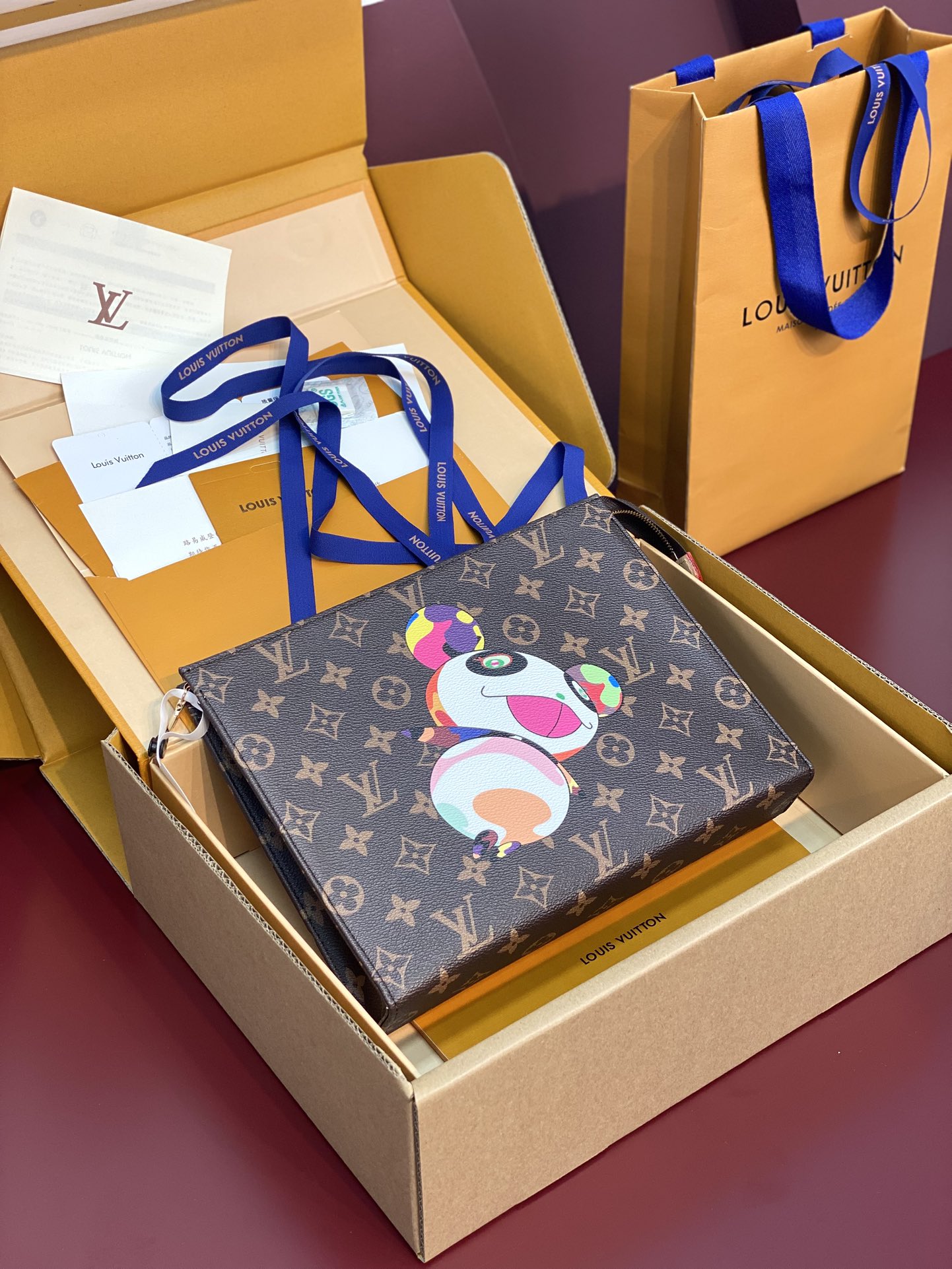 NIGO Louis Vuitton LV x TM Women's Solid Color Letter Print Graffiti Pattern Leather Zipper Closure Three-in-One Clutch Bag Bags #nigo77916