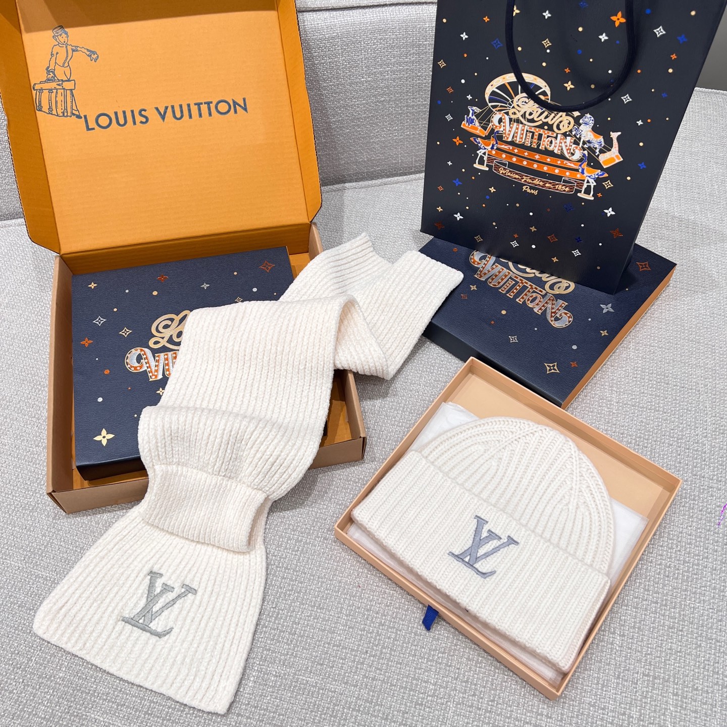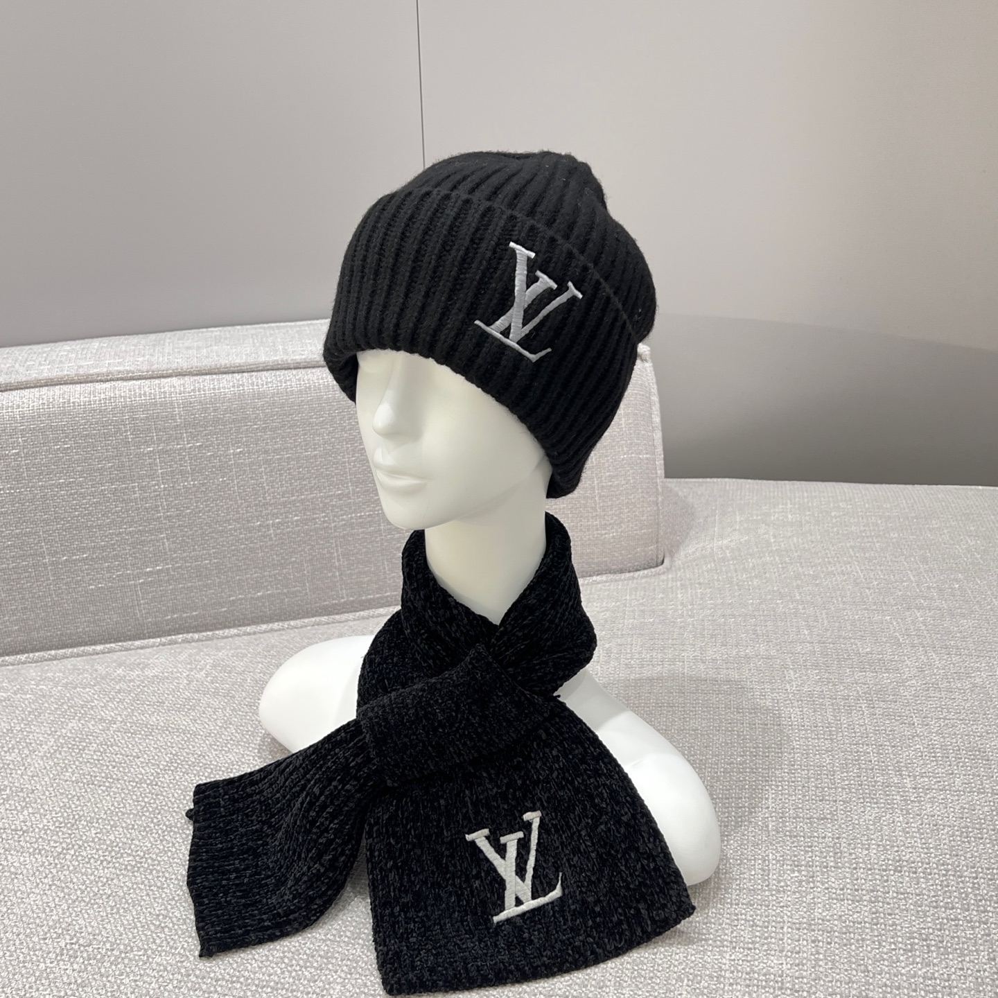 NIGO Louis Vuitton Men's and Women's Autumn and Winter Solid Color Embroidery Logo Printed Wool Knit Hat Cap Scarf #nigo75639