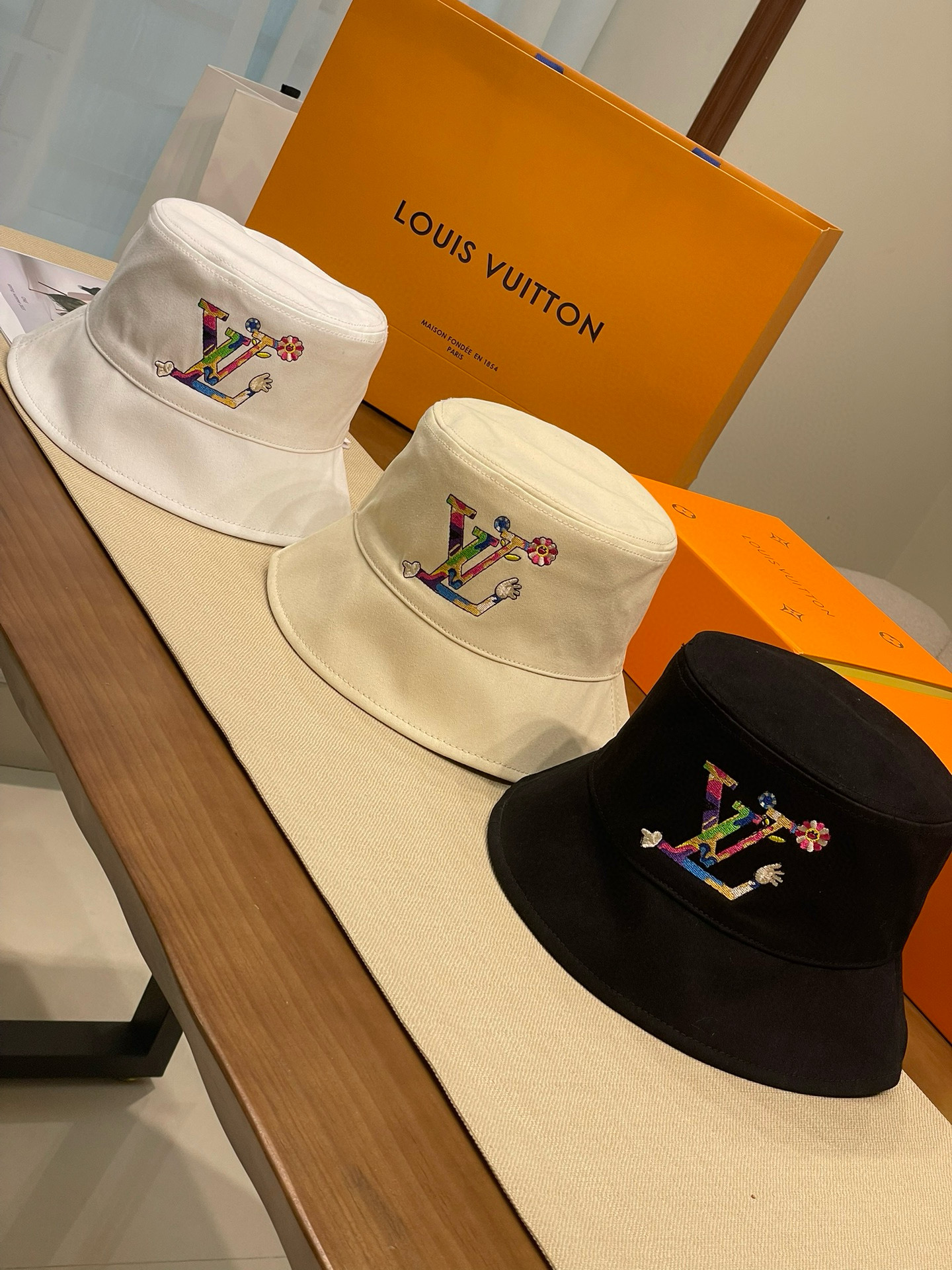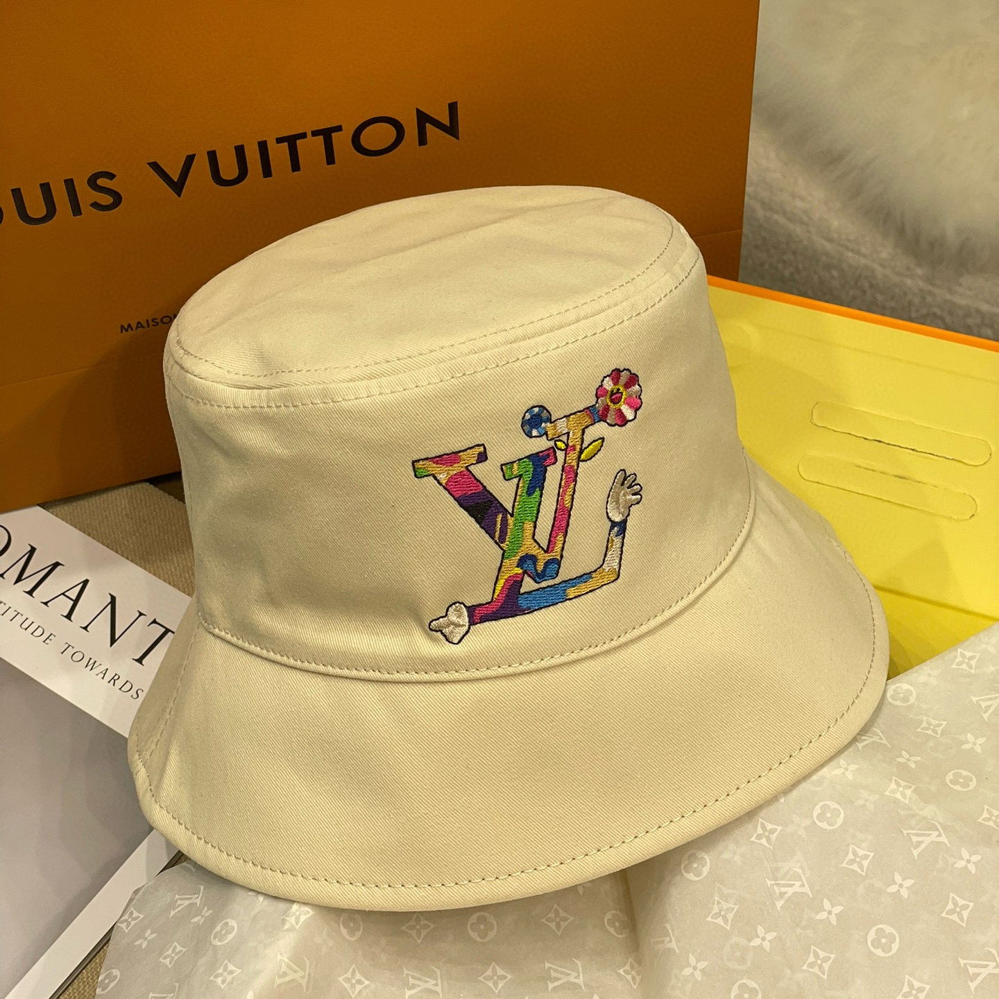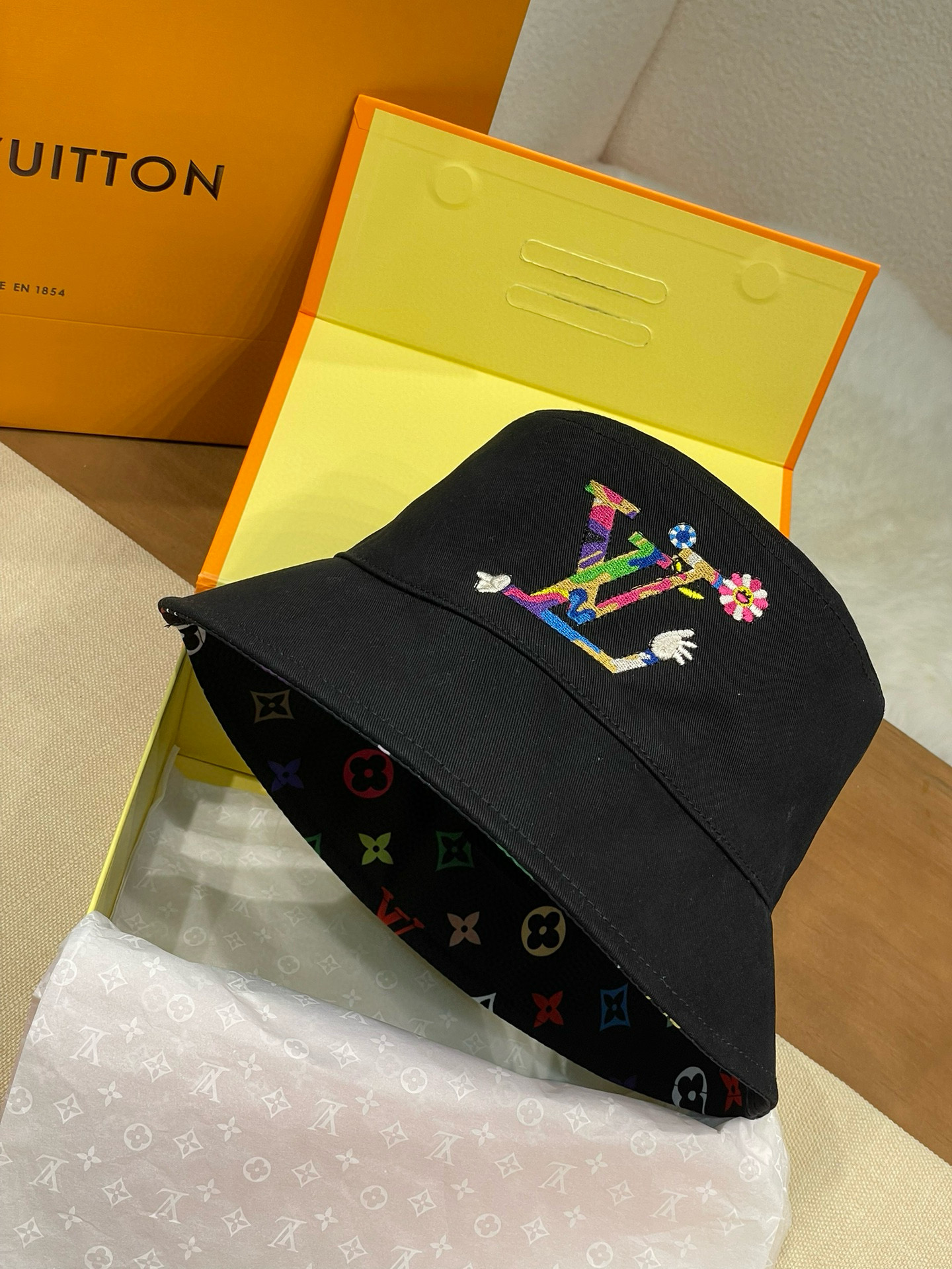 NIGO Louis Vuitton Men's And Women's Colorful Letters Embroidered Printed Cotton Reversible Fisherman's Hat Cap #nigo75642