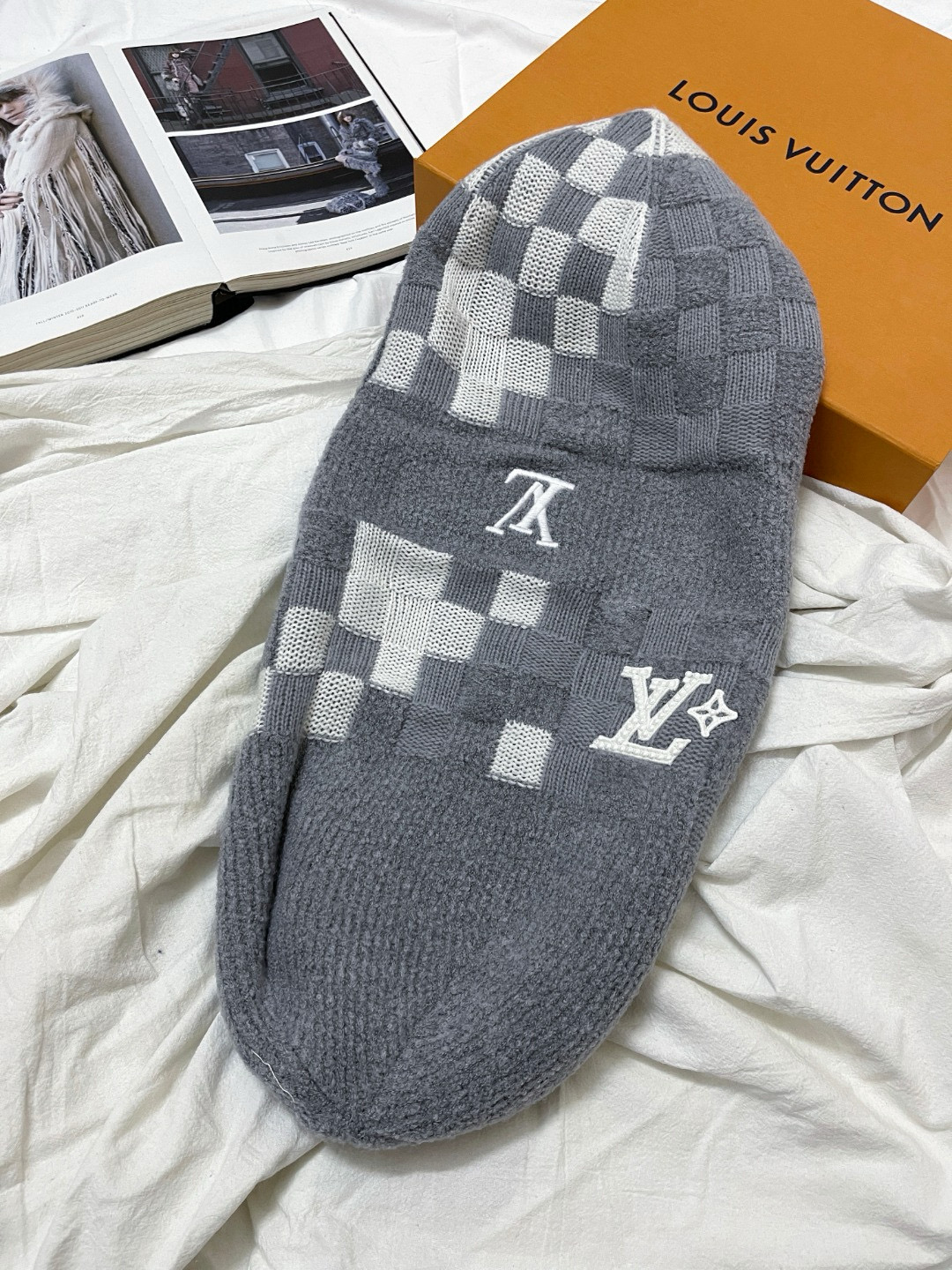 NIGO Louis Vuitton Men's and Women's Logo Embroidered Gray Sheep Wool Pom Pom Hat Cap Scarf #nigo73793