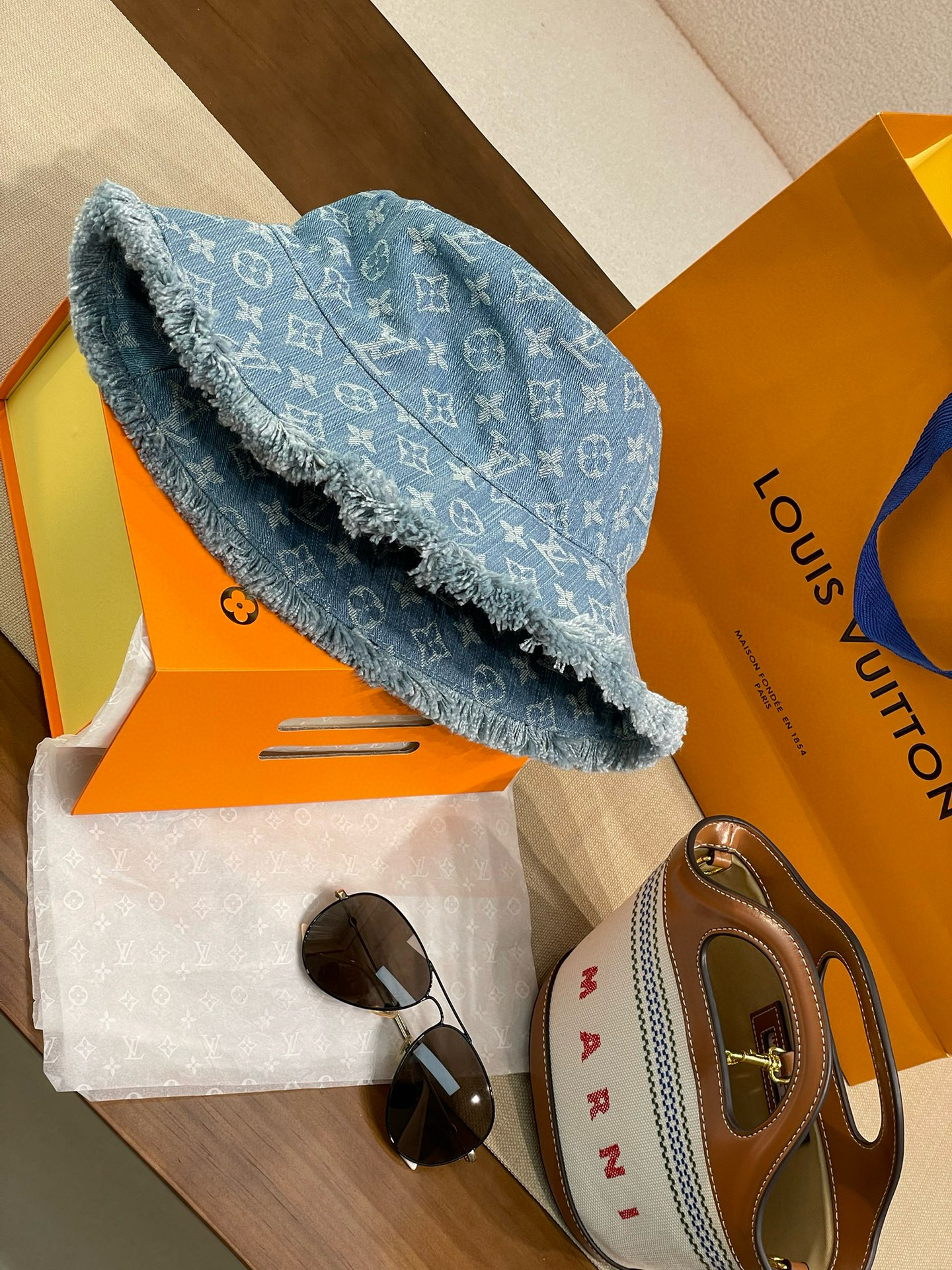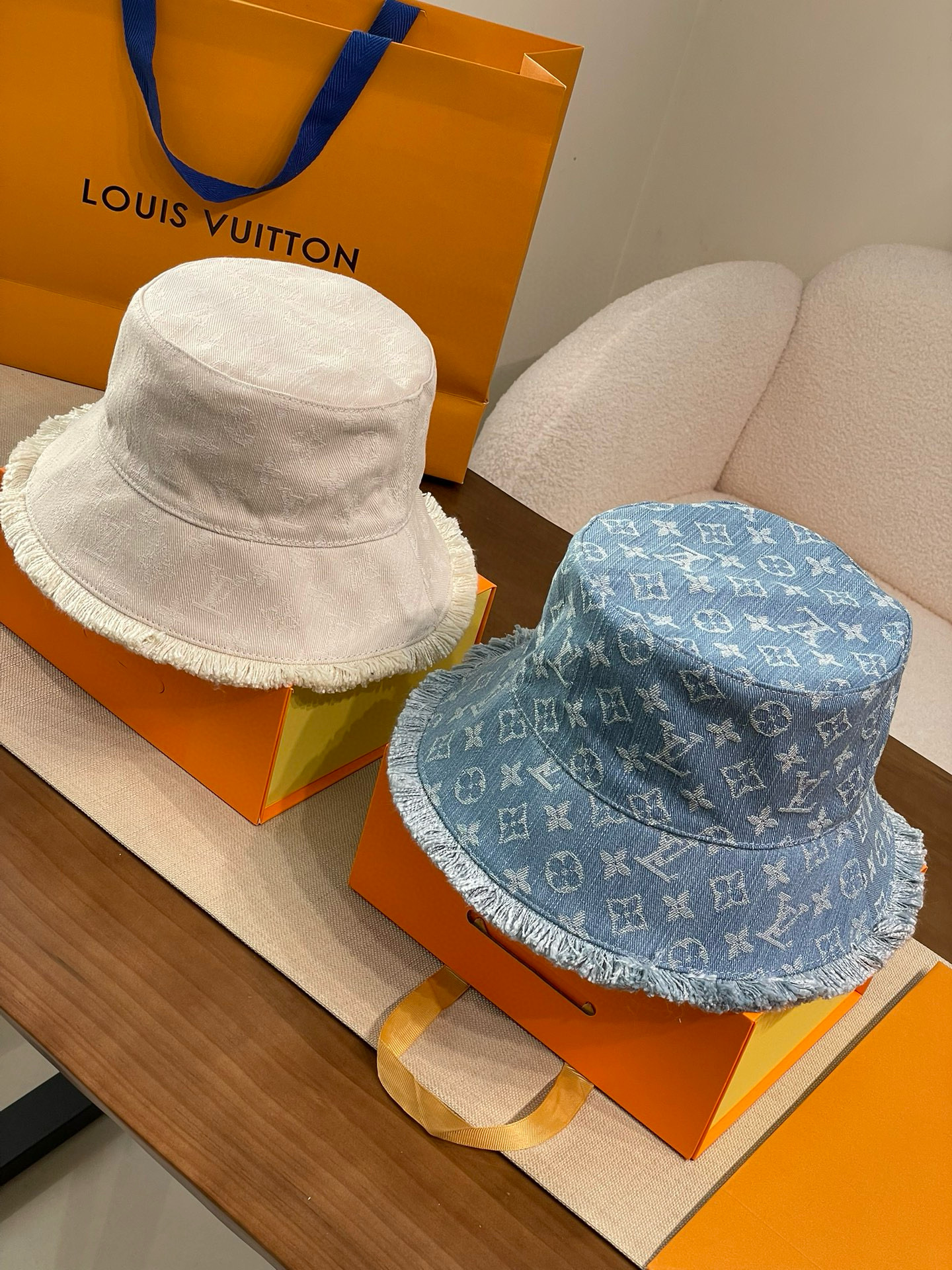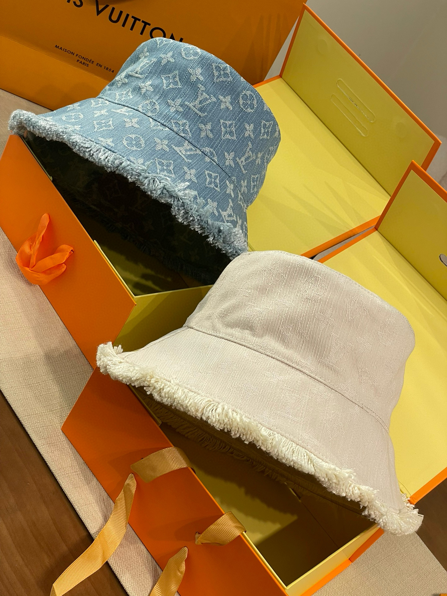 NIGO Louis Vuitton Men's and Women's Solid Color Letter Jacquard Raw Edge Cotton Fisherman's Hat Cap #nigo76292